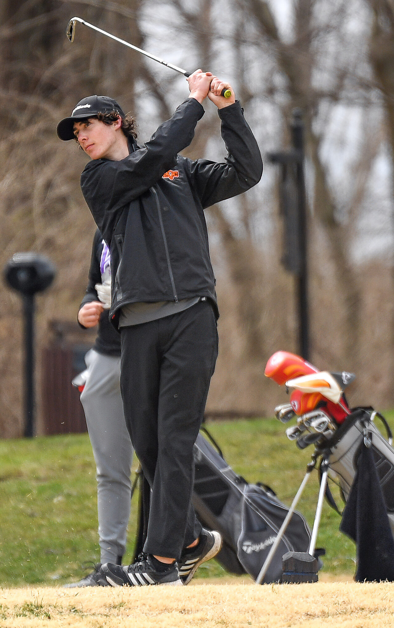 Platte County junior Jackson Gabbert watches a shot off the tee during the Winnetonka Invitational on Tuesday at Hodge Park Golf Course in Kansas City.