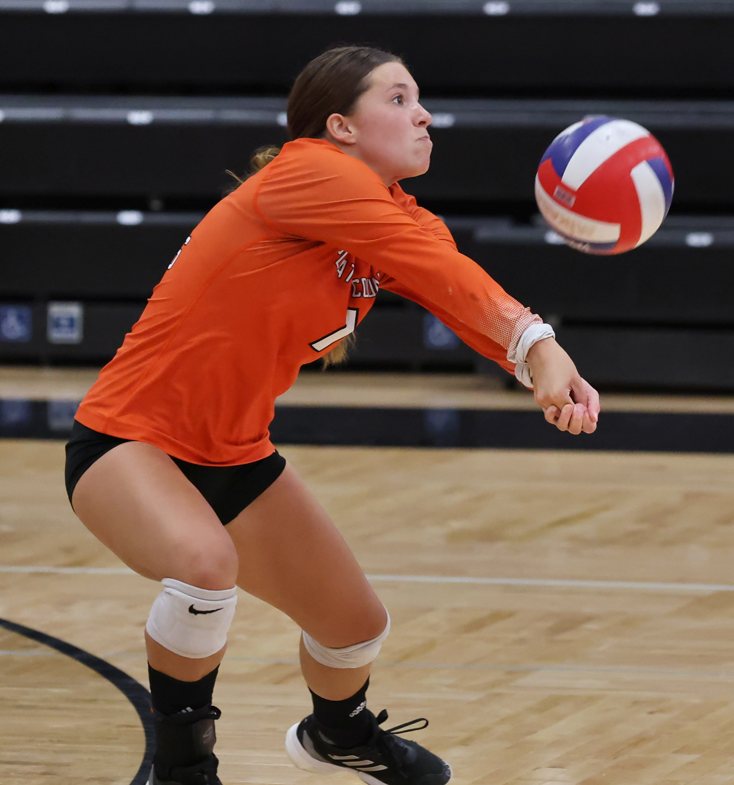 All five of Platte County’s matches in the tournament went two sets. The Pirates opened by beating Topeka Seaman 26-24, 25-10 with Bacon and Brunner recording six kills apiece, while sophomore Charlotte Schlake, who saw a lot of playing time early in the season with Omoike out, made three blocks while appearing in only one of the two sets.