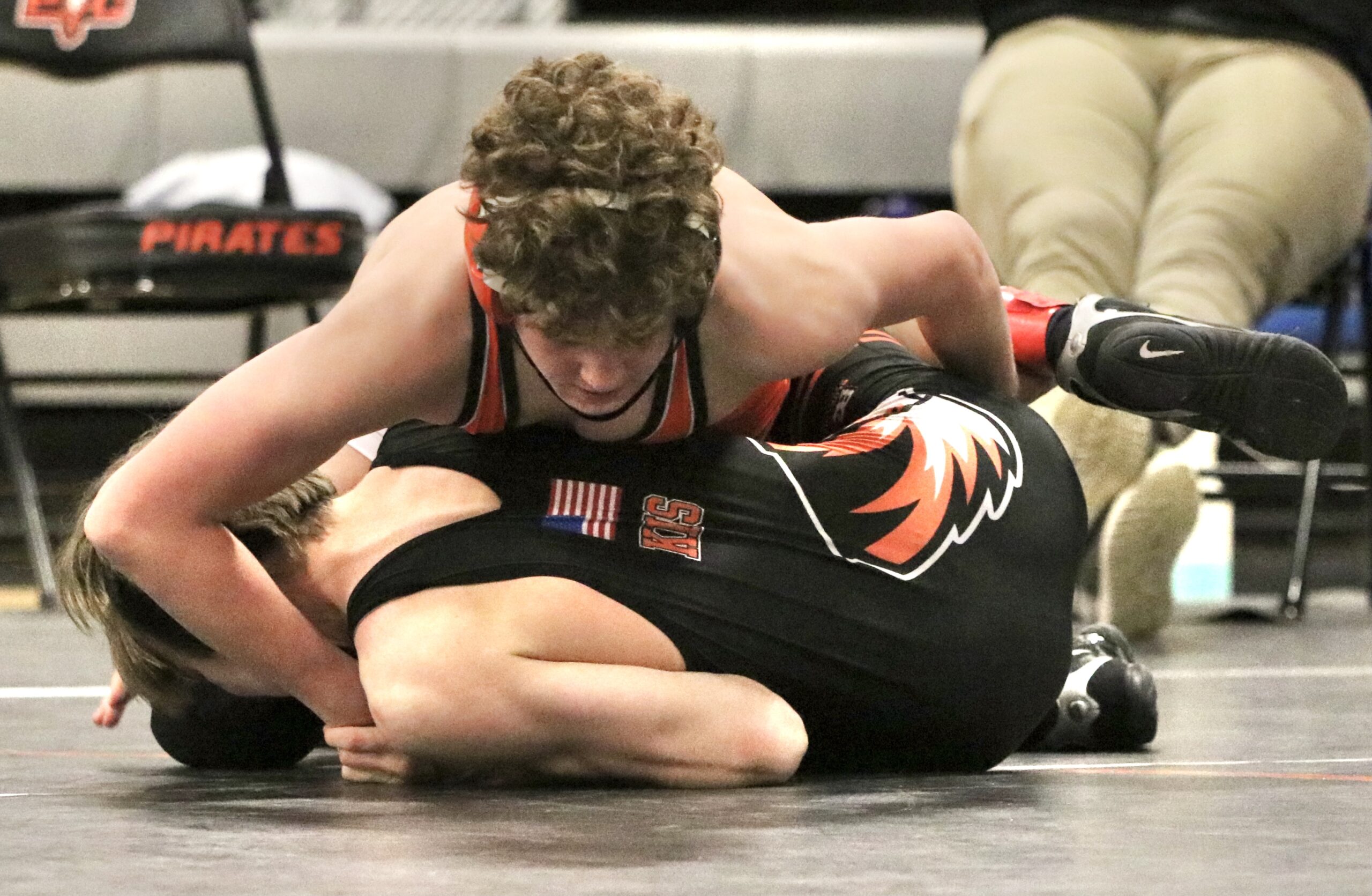 Keuhn’s pin at 170 pulled Platte County back within two points, but Gjoni, replacing Fernandez in the lineup, ended up turned and pinned in the final second of the second period of the 182 match to negate the potential swing. The Pirates took the lead back at 28-24 with a pin from Walls and a forfeit for Shillinger at 220.