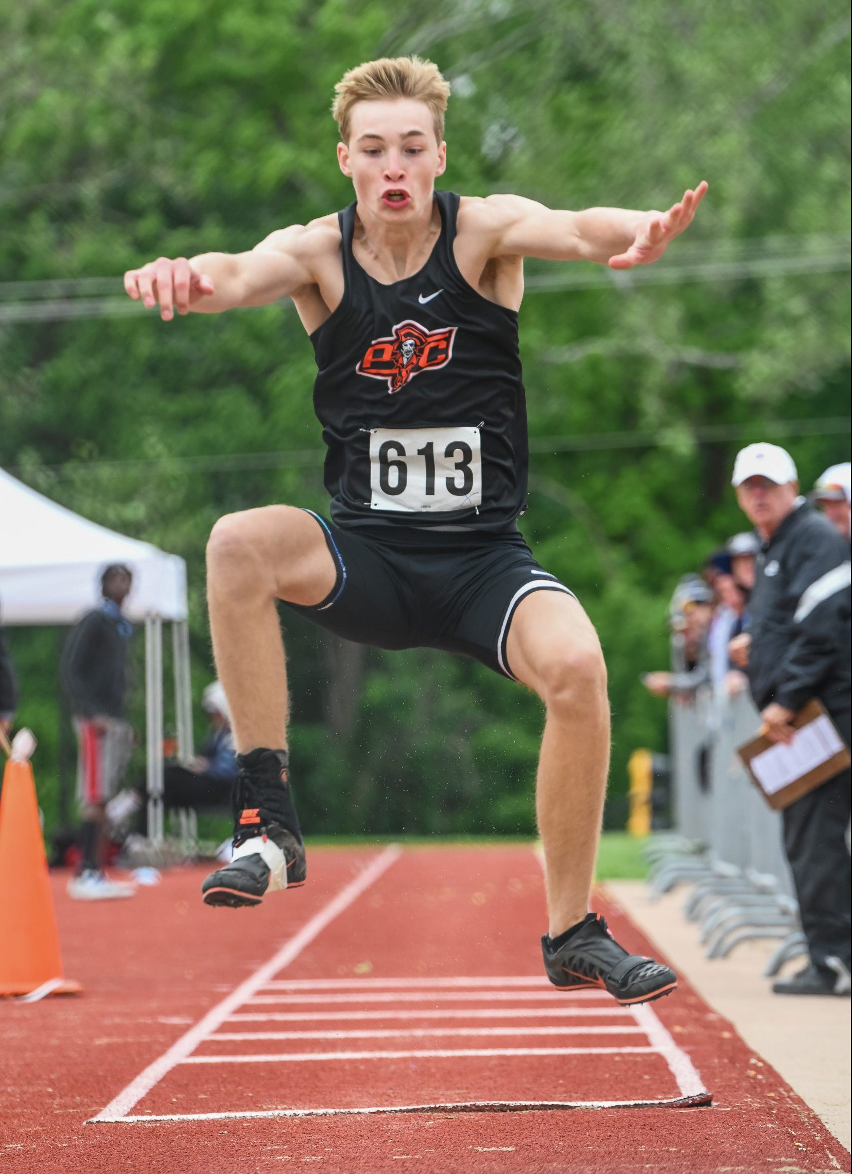 Fowler’s season nearly ended in the Class 4 District 8 competition when a season-low 38.99 mark on his final try placed him fourth and advanced him. He then won the Sectional 4 title with another late effort of 49.61 that came up just 7 inches short of Dakota Schmidt’s school record of 163 feet, 4 inches set in 2018.