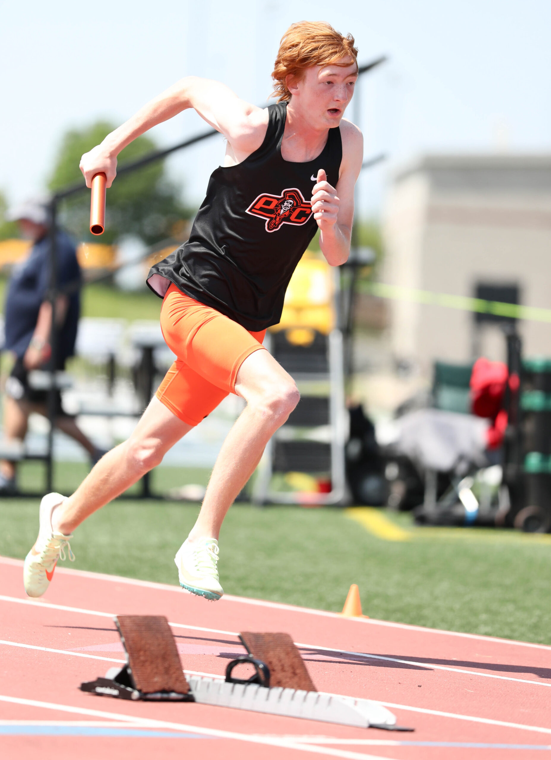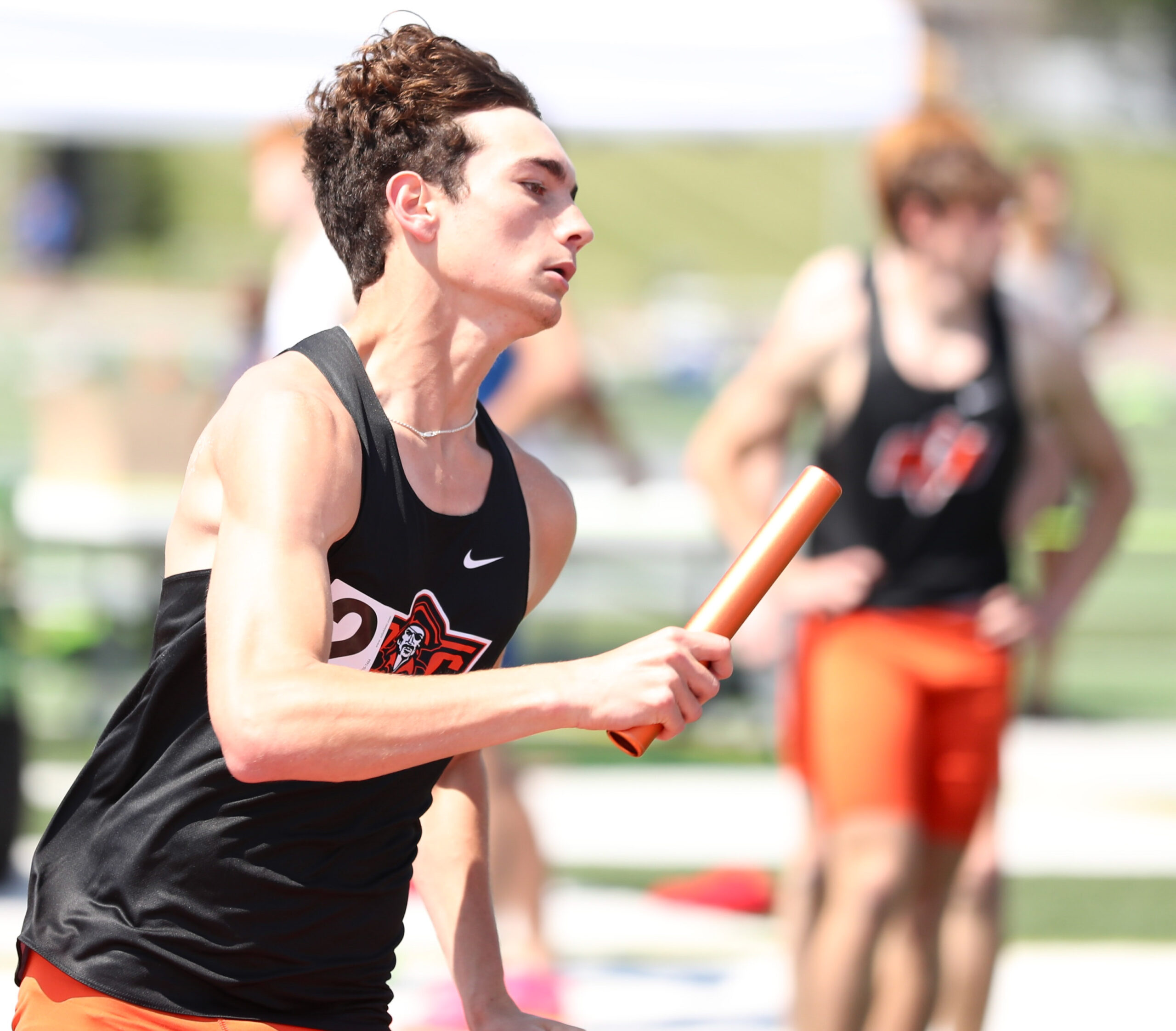 Cordova kept Platte County in thick of the race and navigated the always crowded second handoff, passing the baton to a finally fully healthy Eschliman. The Pirates were likely about fifth at this point, but Eschliman tracked down a pair of runners on the third leg.