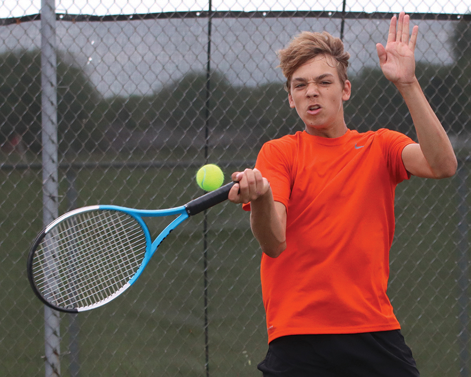 Platte County freshman Gavin Nichols hits a forehand during a Class 2 Missouri State Tennis Championships singles match last week at Cooper Tennis Complex in Springfield.