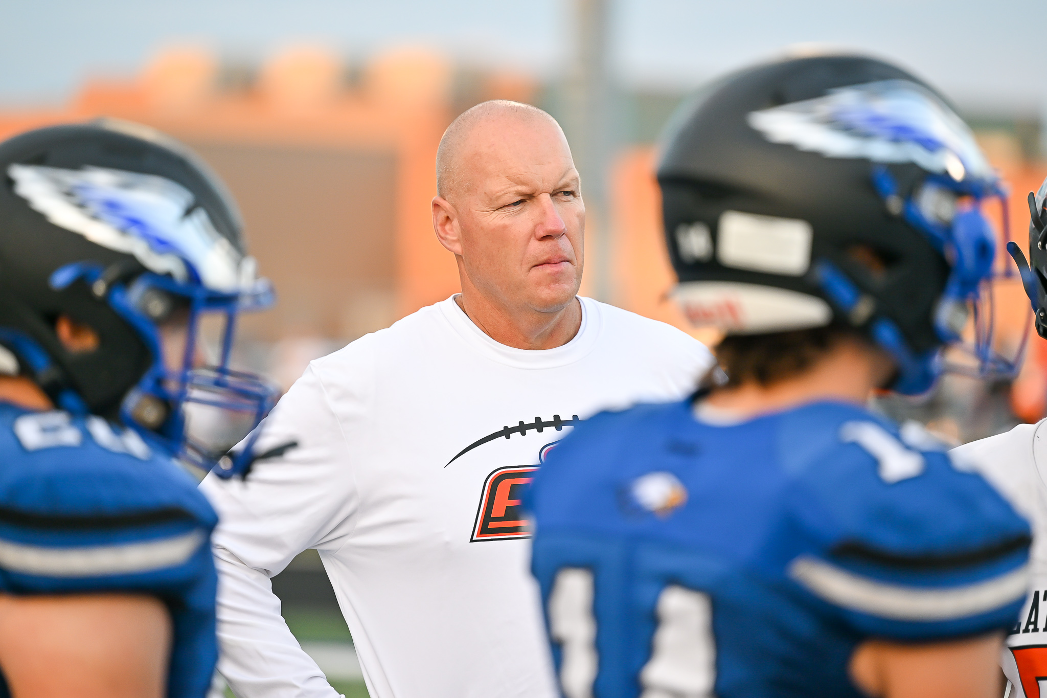 Platte County coach Bill Utz waits for the coin toss before a game against Grain Valley last season.