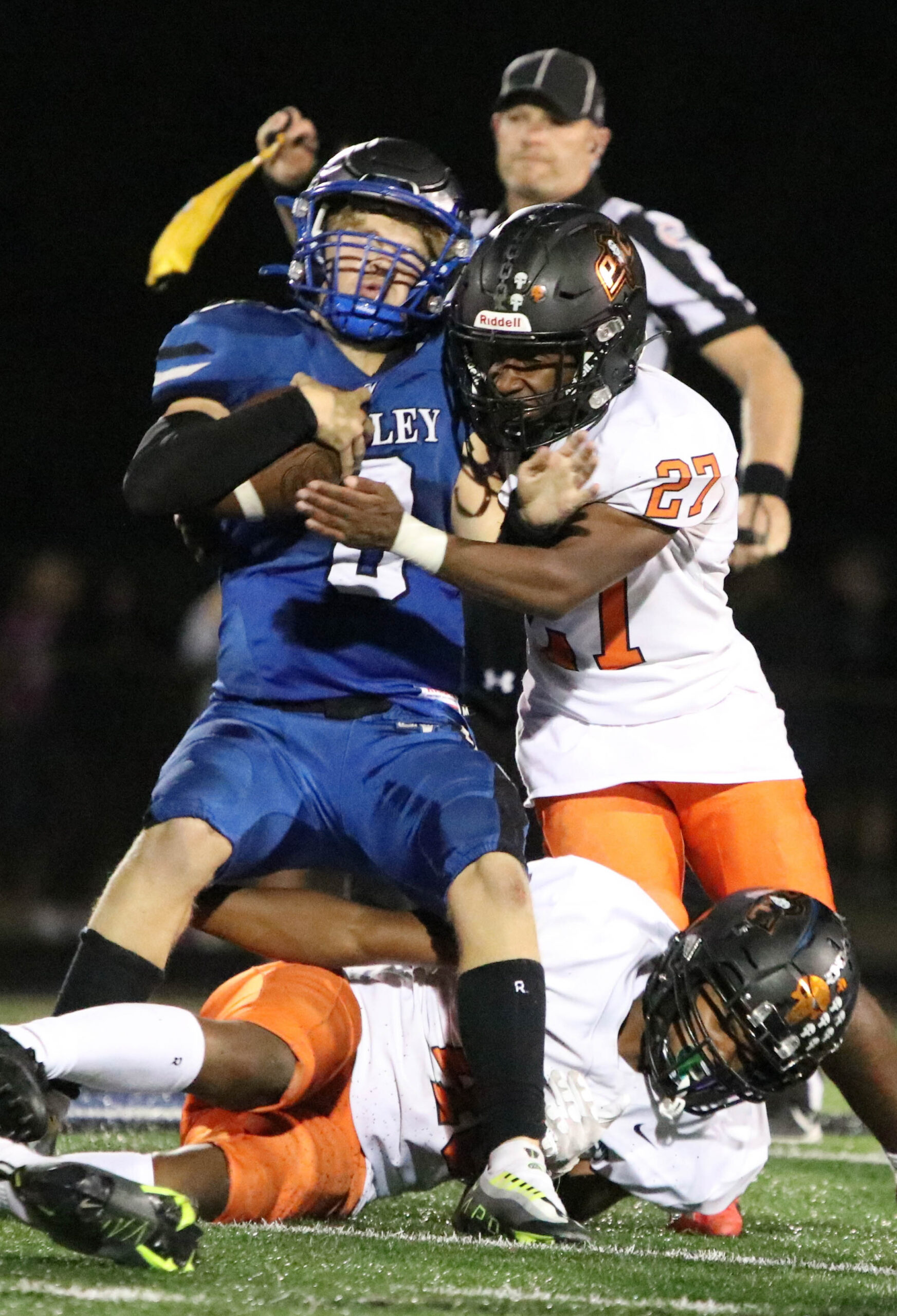 Platte County’s safeties include sophomore Ty Christopher, a converted wide receiver, and juniors Caden McGhee and Montez Clemons. A starting corner for much of his sophomore season who settled in at free safety, McGhee recorded 29 tackles (one for loss) and came up with an interception in the Class 5 District 8 semifinal loss to Oak Park. Clemons became a rotational piece with 27 tackles (one for loss).
