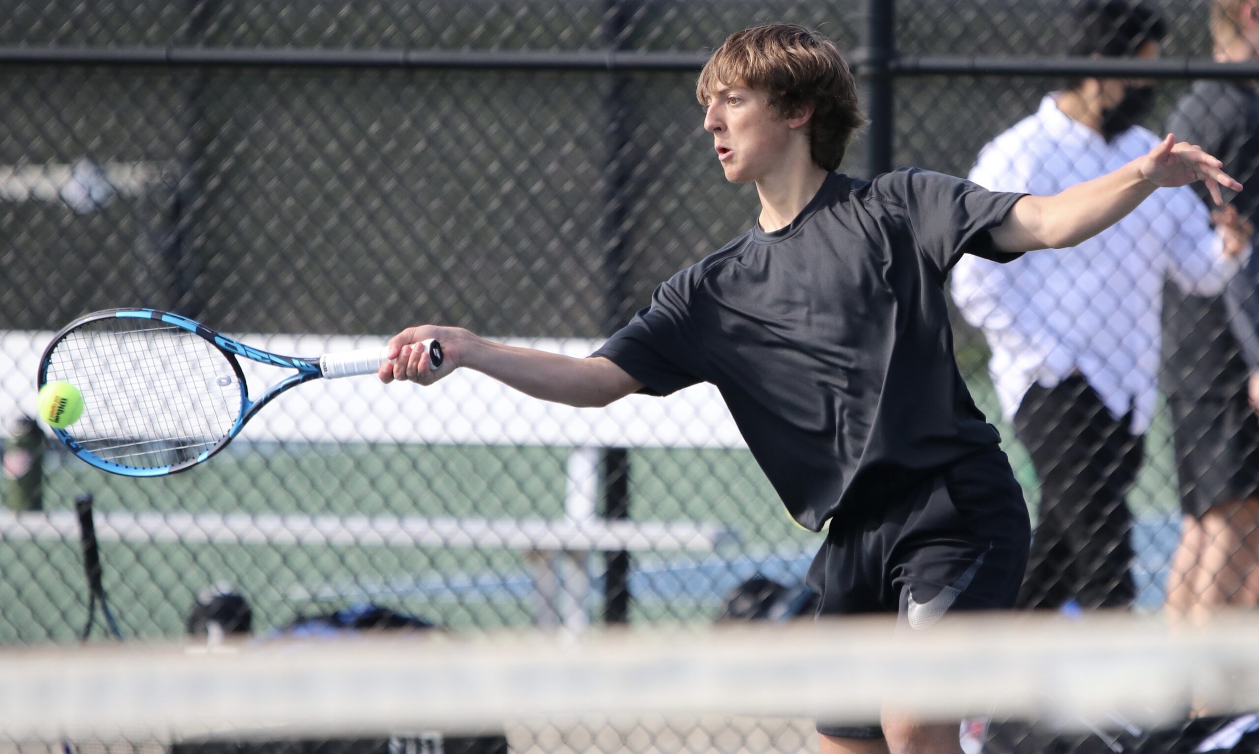 St. Joseph Central won four of six singles matches to come away with a 6-3 win in a nonconference dual Wednesday at Platte County High School.