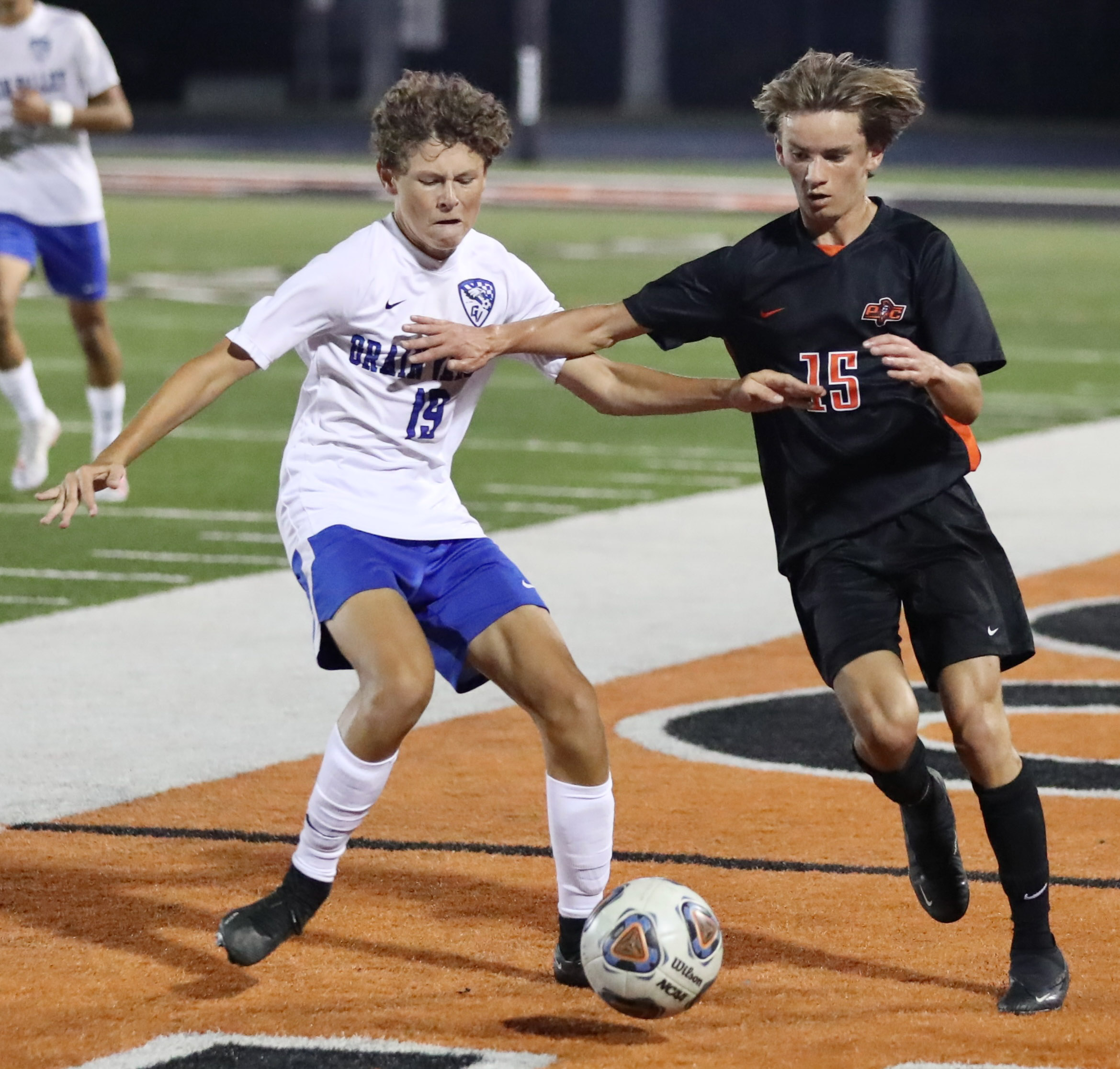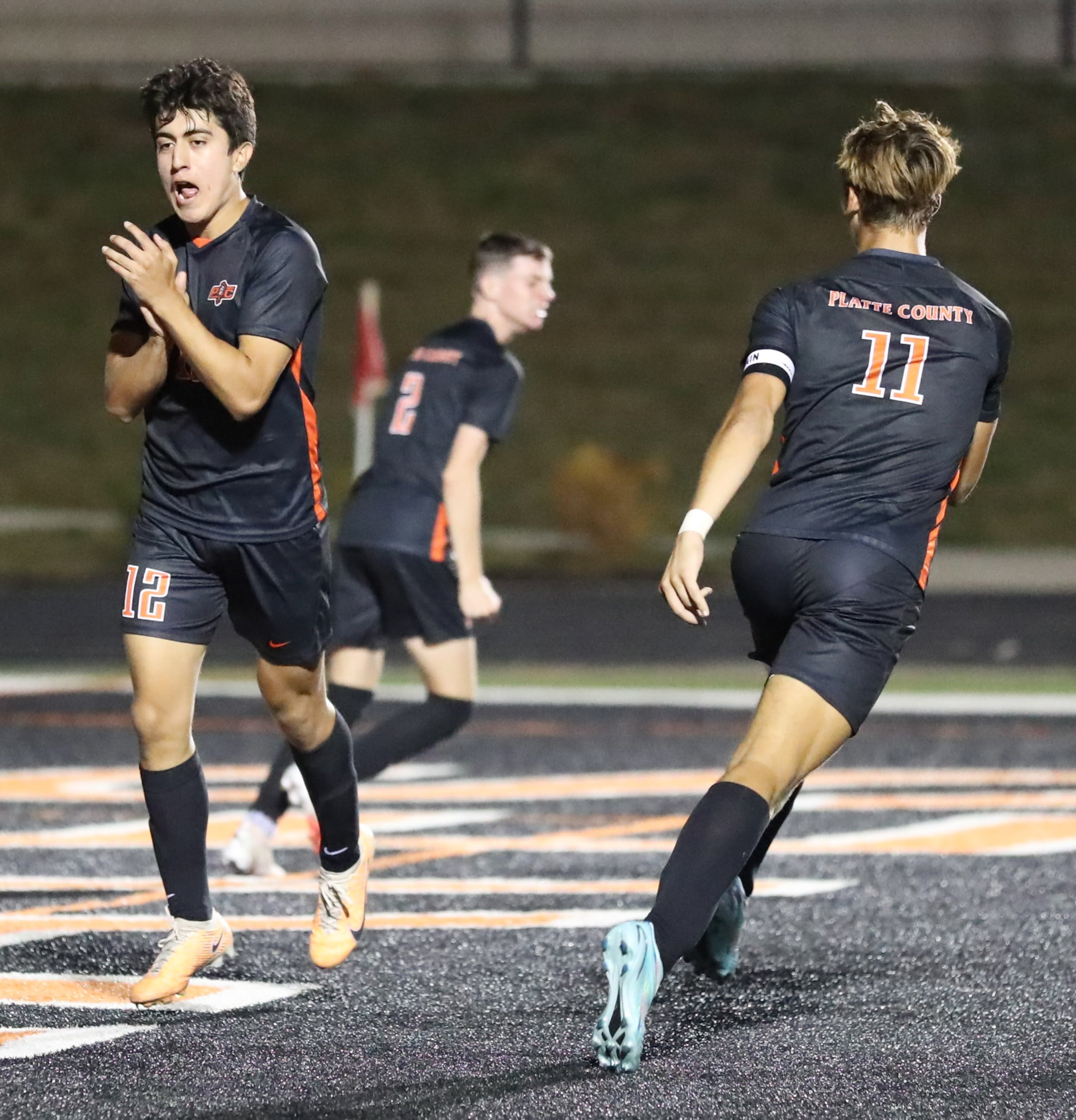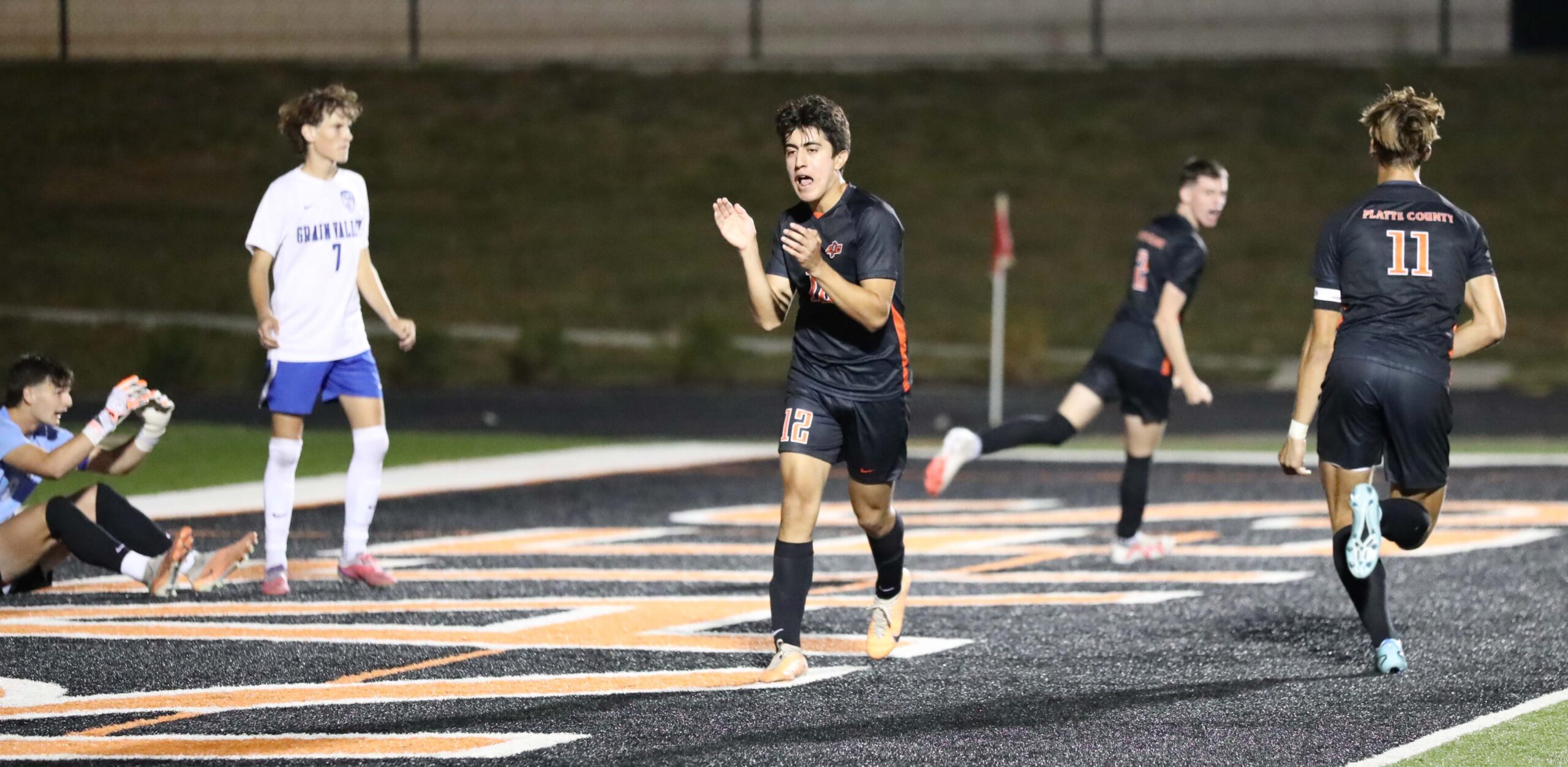 Platte County senior forward Josh Nelson scored a sudden-death, game-winning goal in the Pirates’ 2-1 victory over Grain Valley at Pirate Stadium.