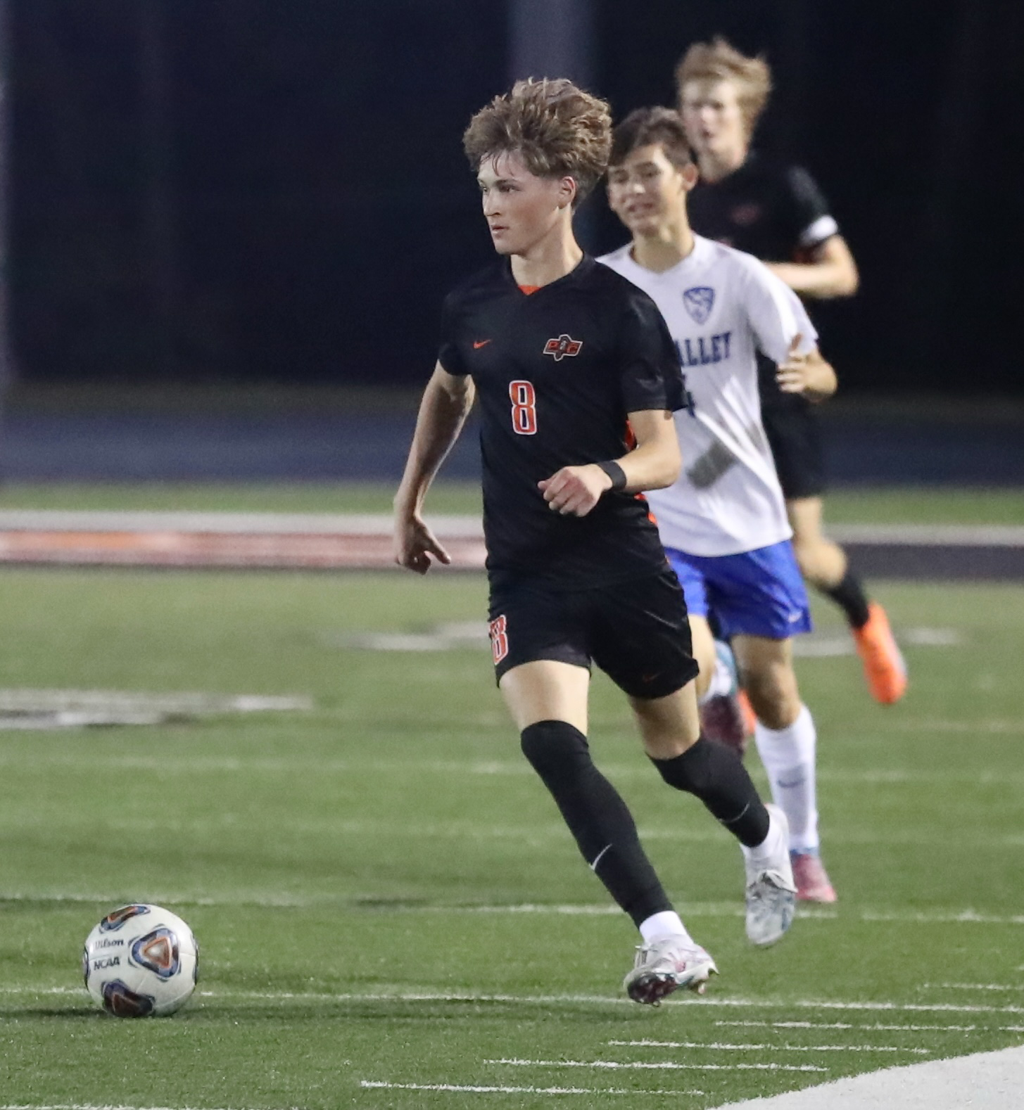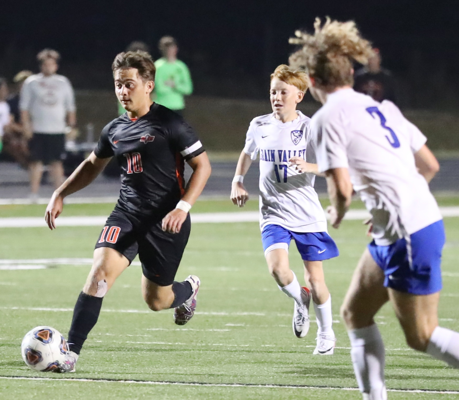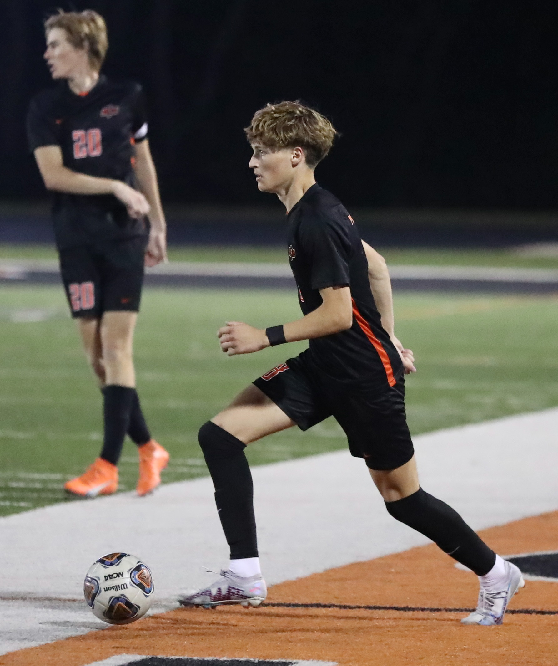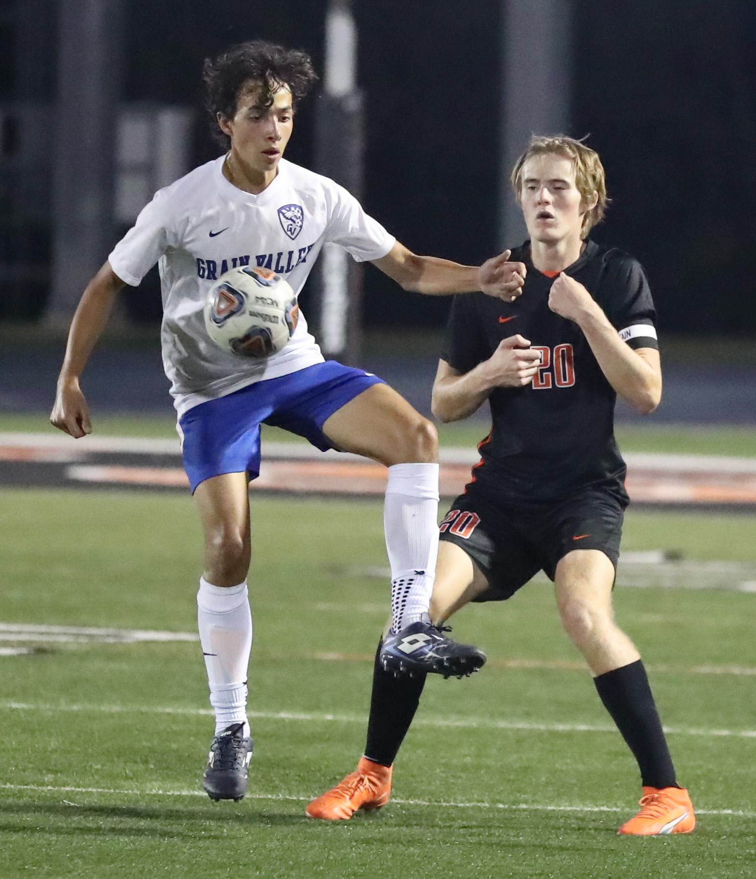 Platte County senior forward Josh Nelson scored a sudden-death, game-winning goal in the Pirates’ 2-1 victory over Grain Valley at Pirate Stadium.