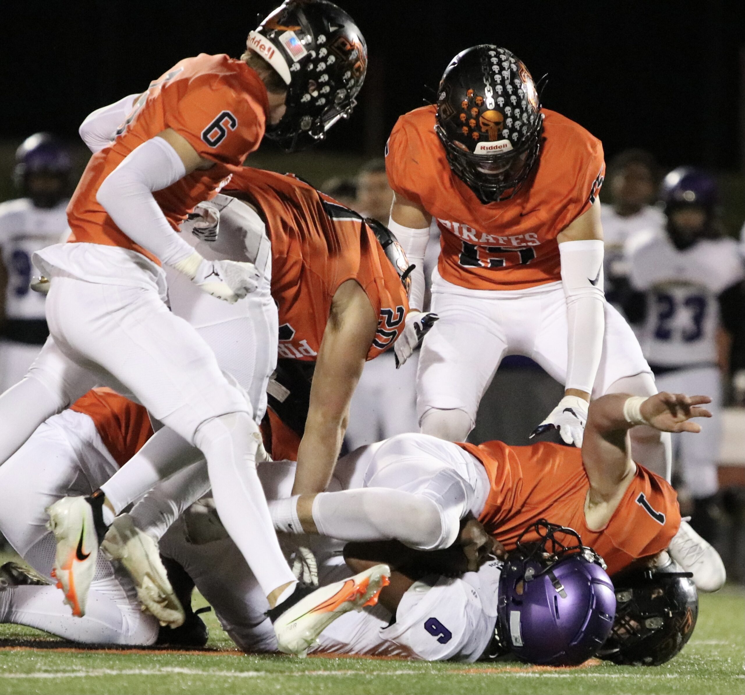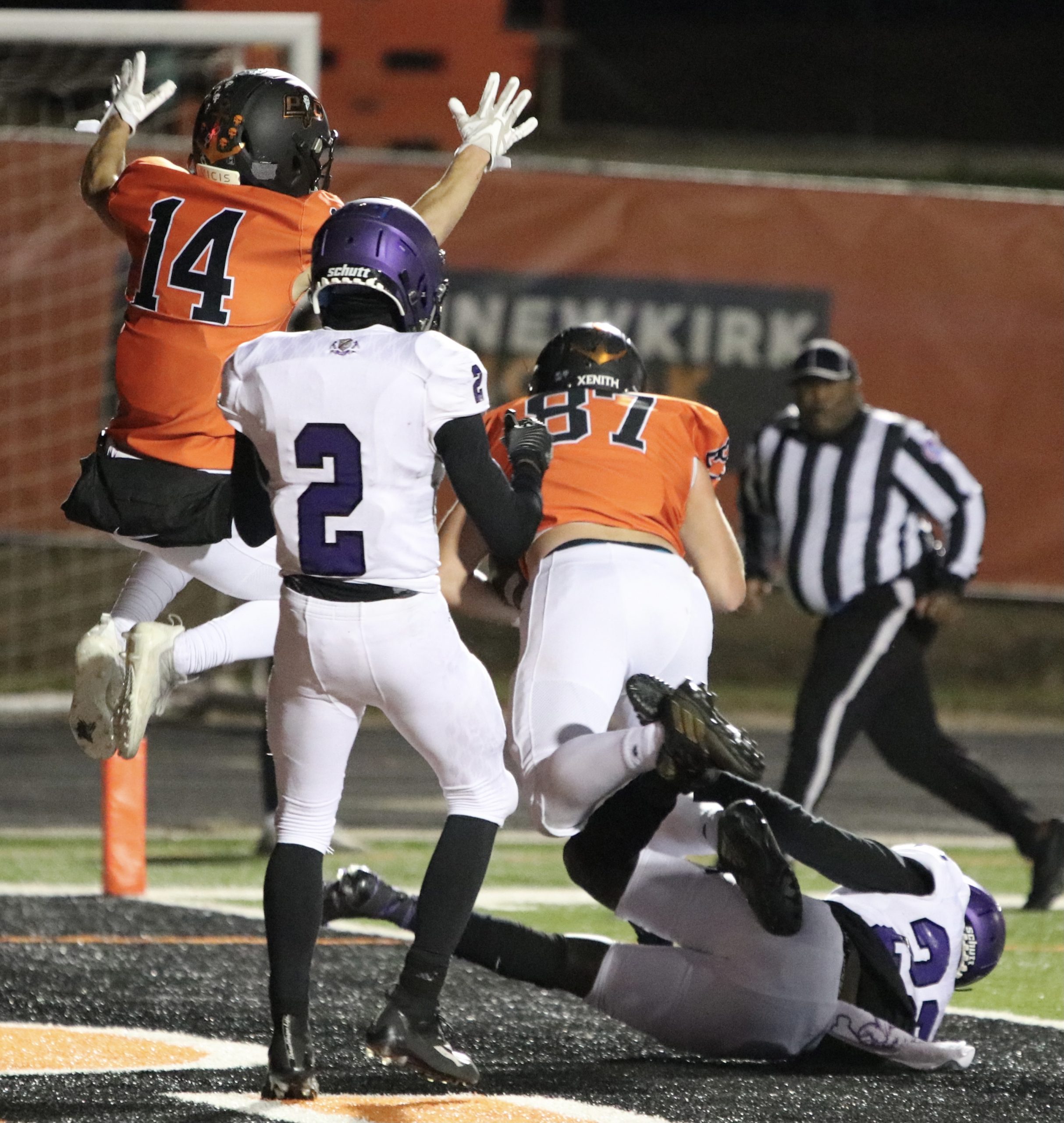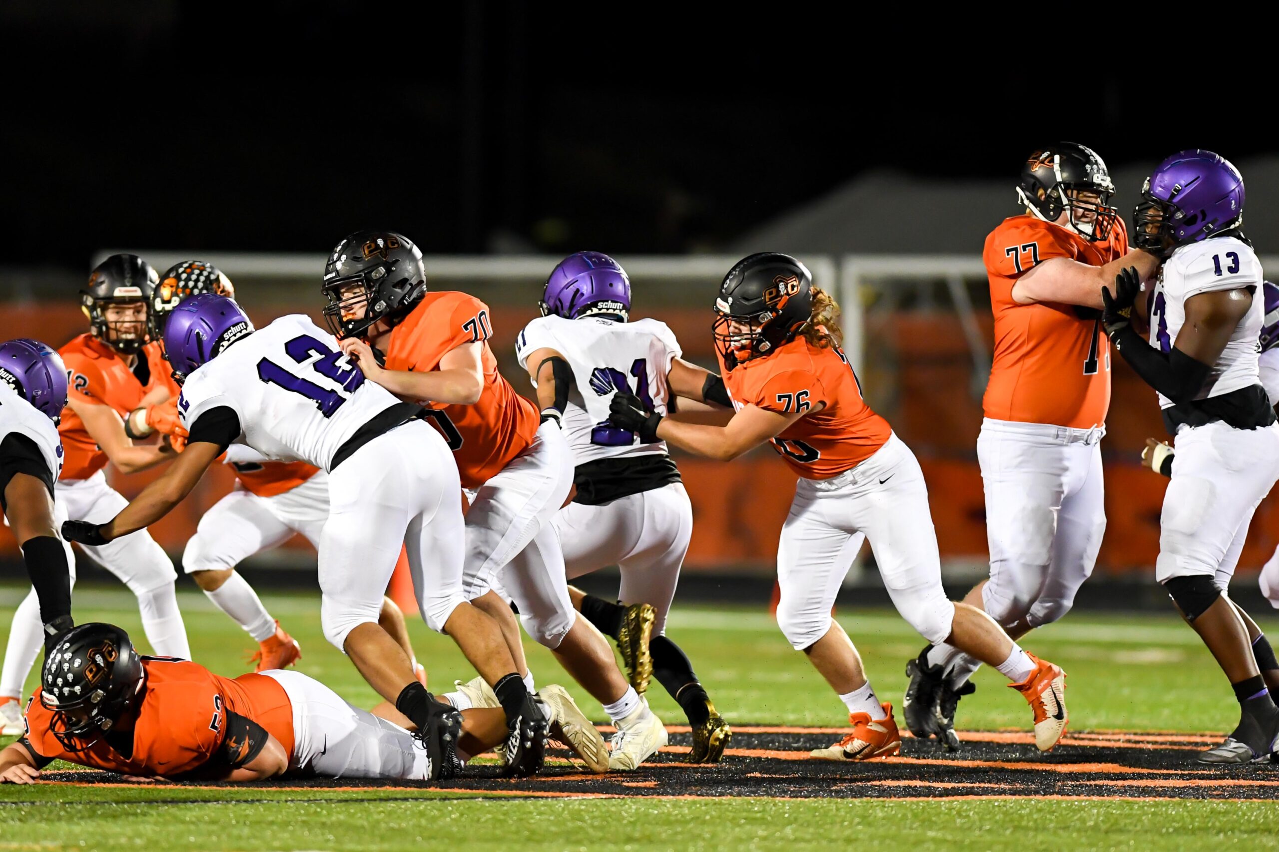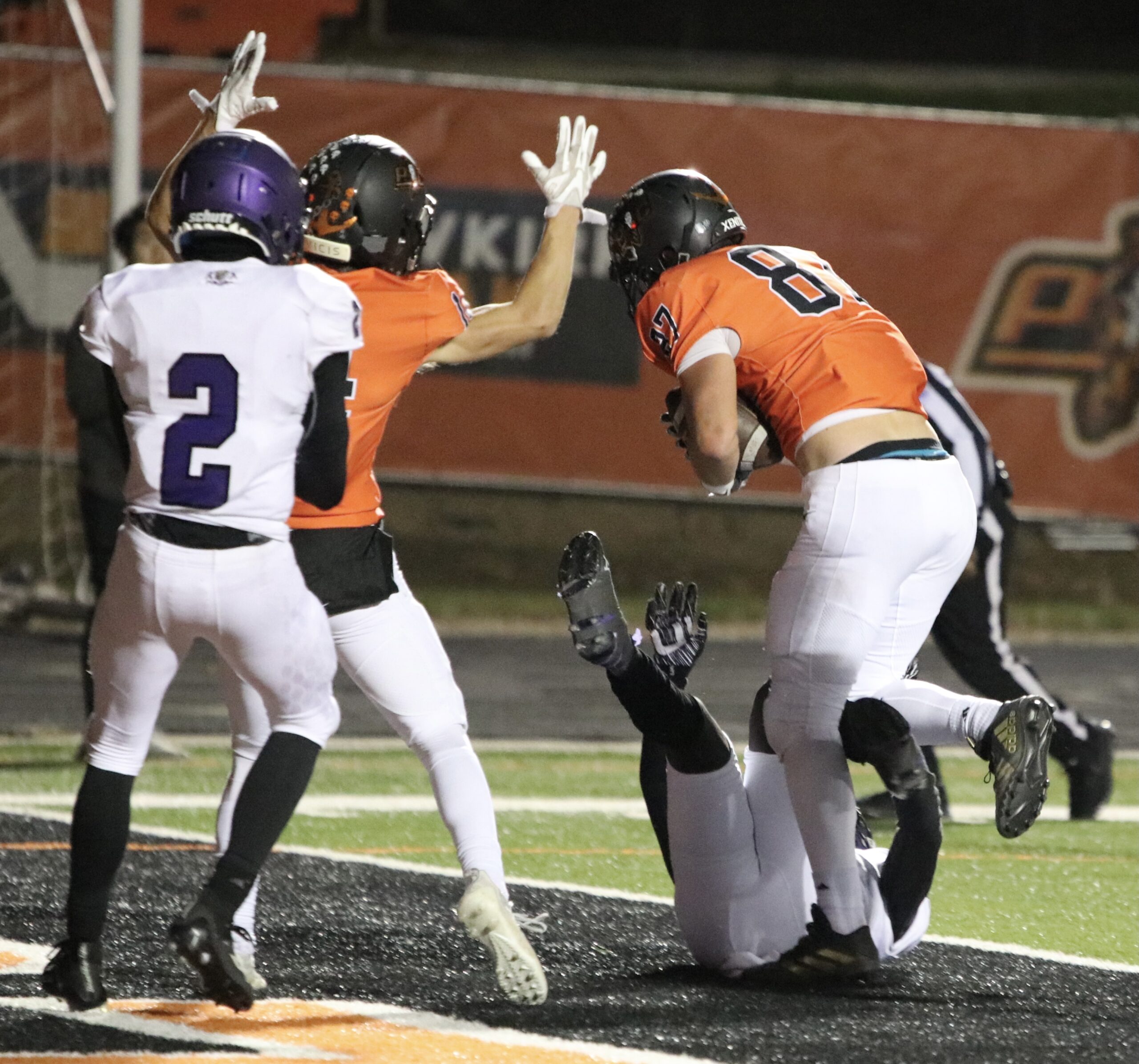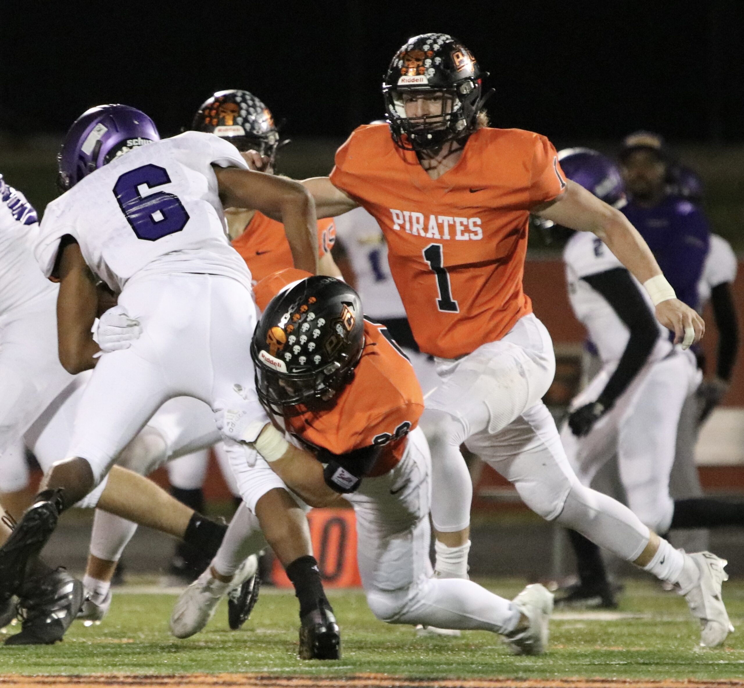Platte County scored two touchdowns late to finish off a 21-6 win over North Kansas City in a Class 5 District 8 semifinal Friday at Pirate Stadium.