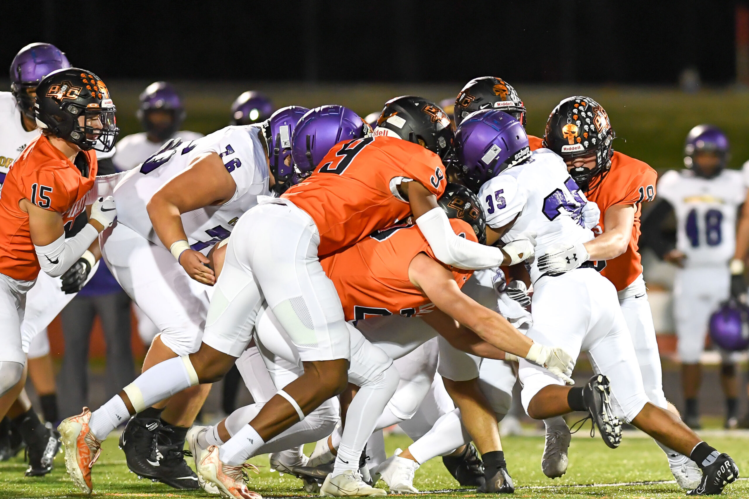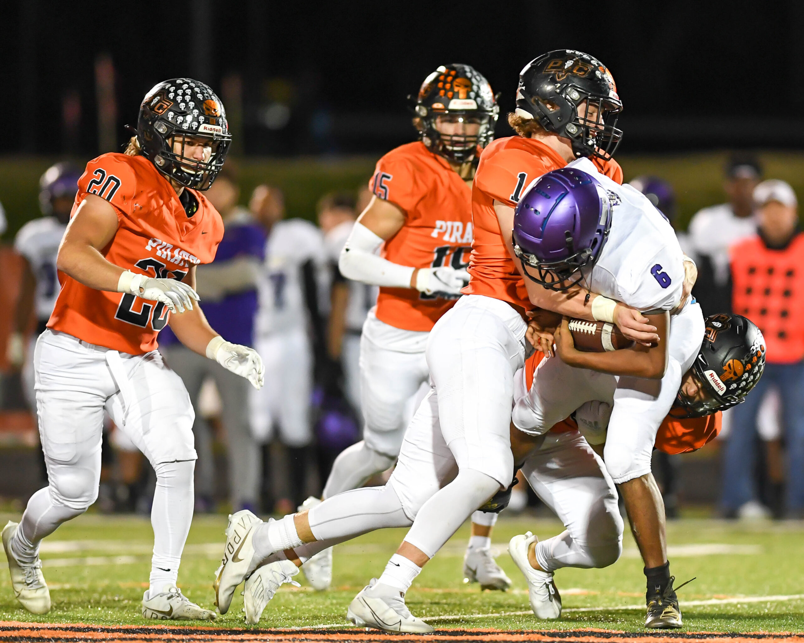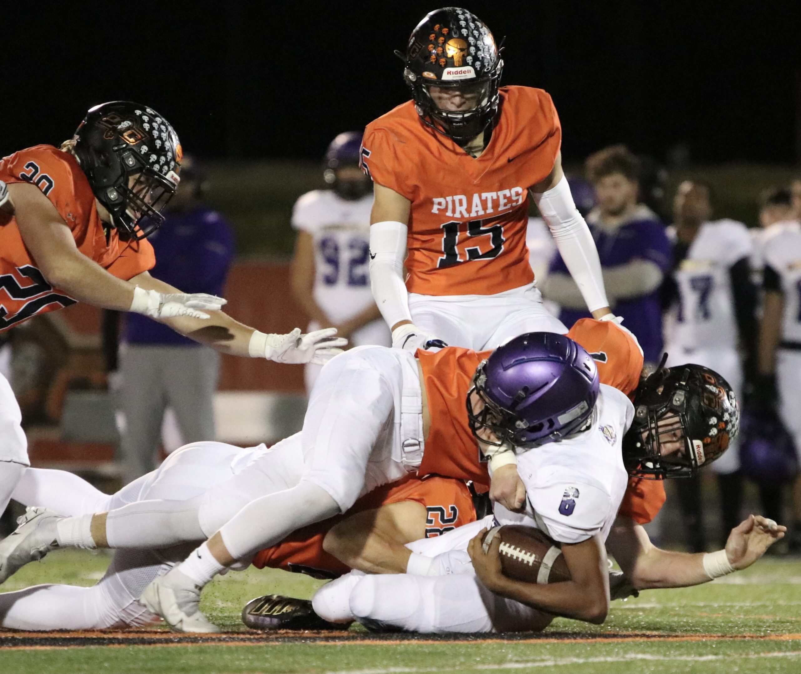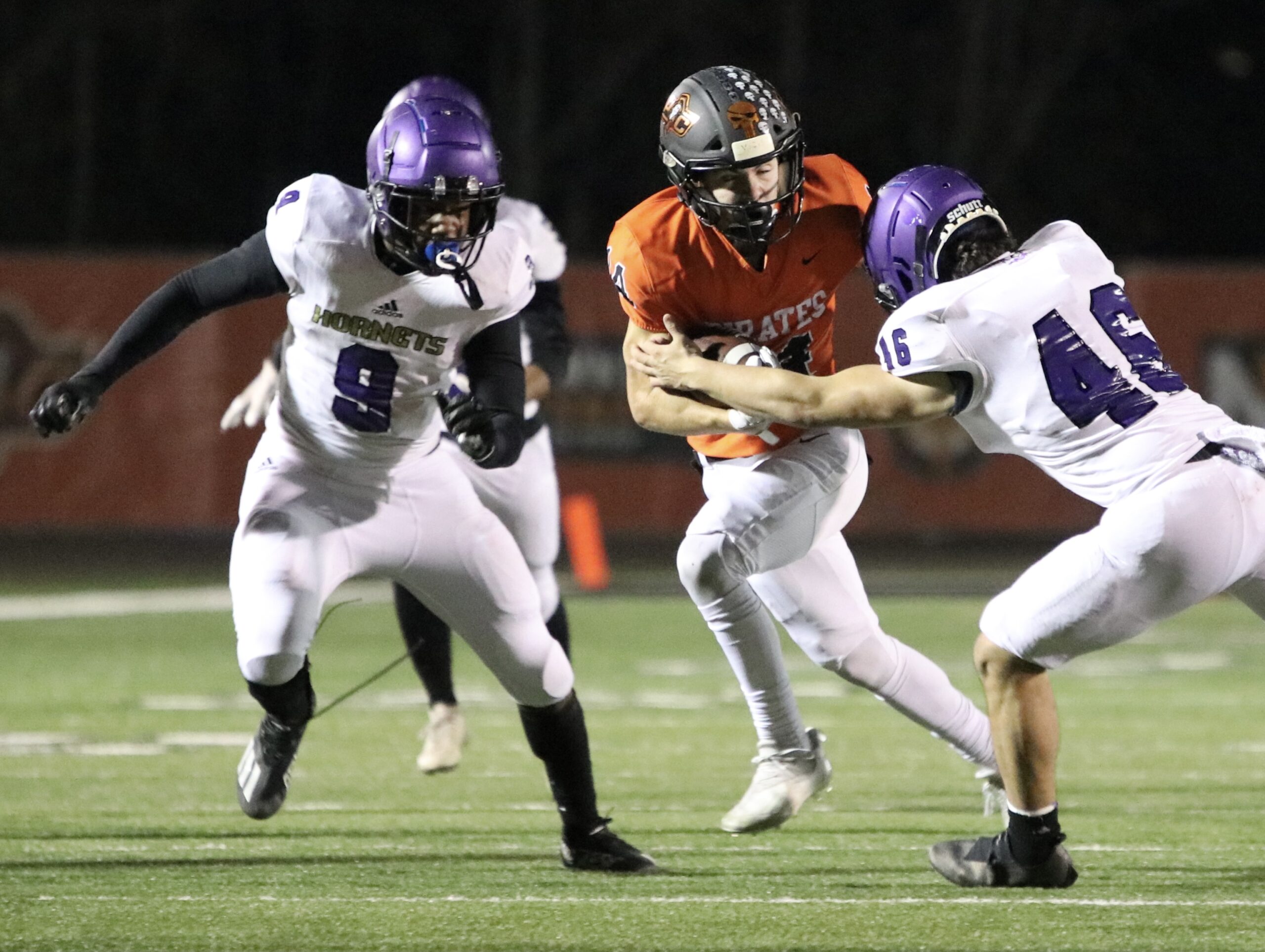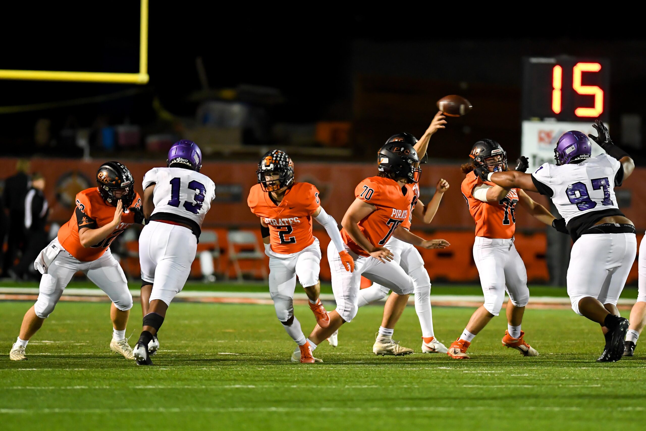 Platte County scored two touchdowns late to finish off a 21-6 win over North Kansas City in a Class 5 District 8 semifinal Friday at Pirate Stadium.