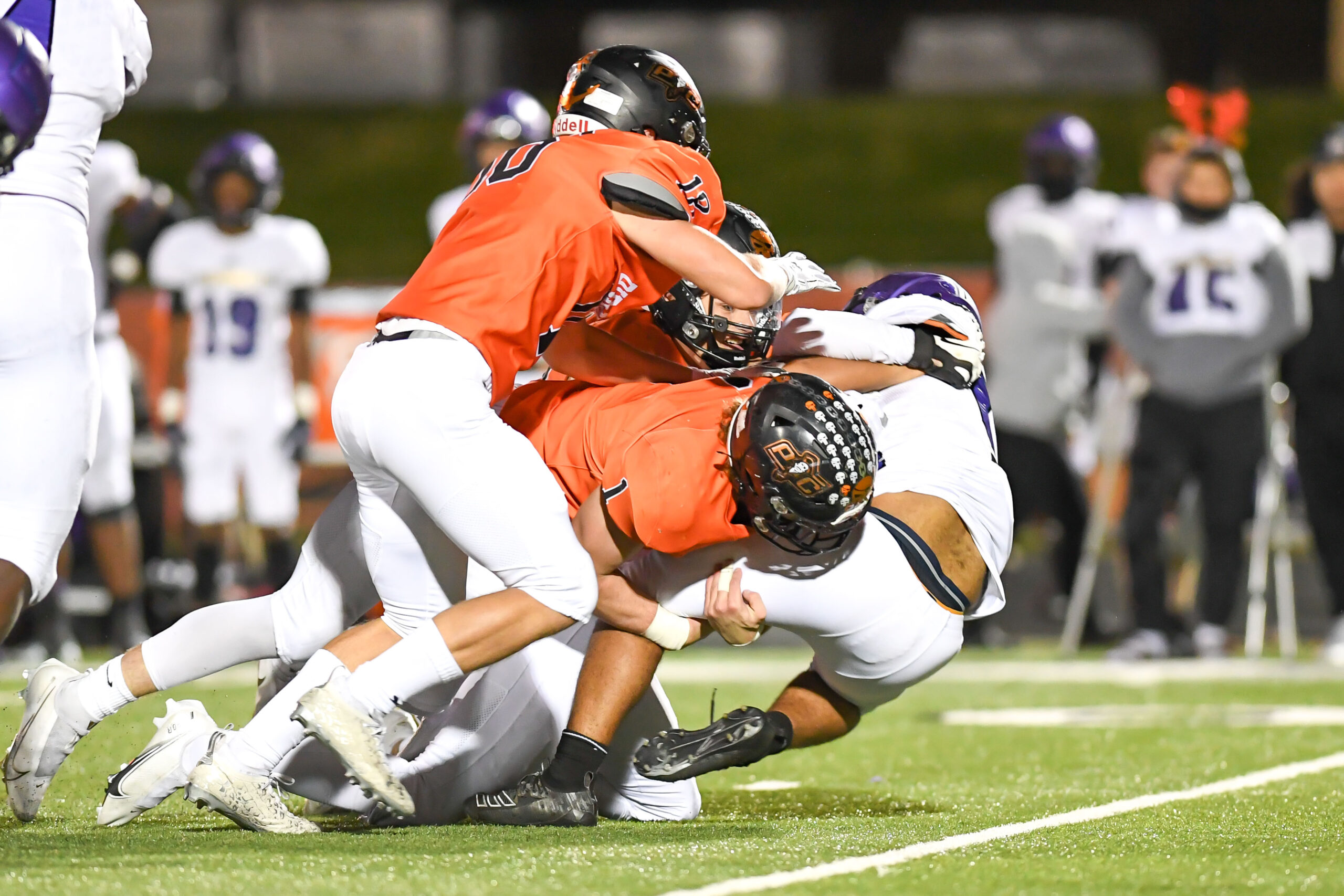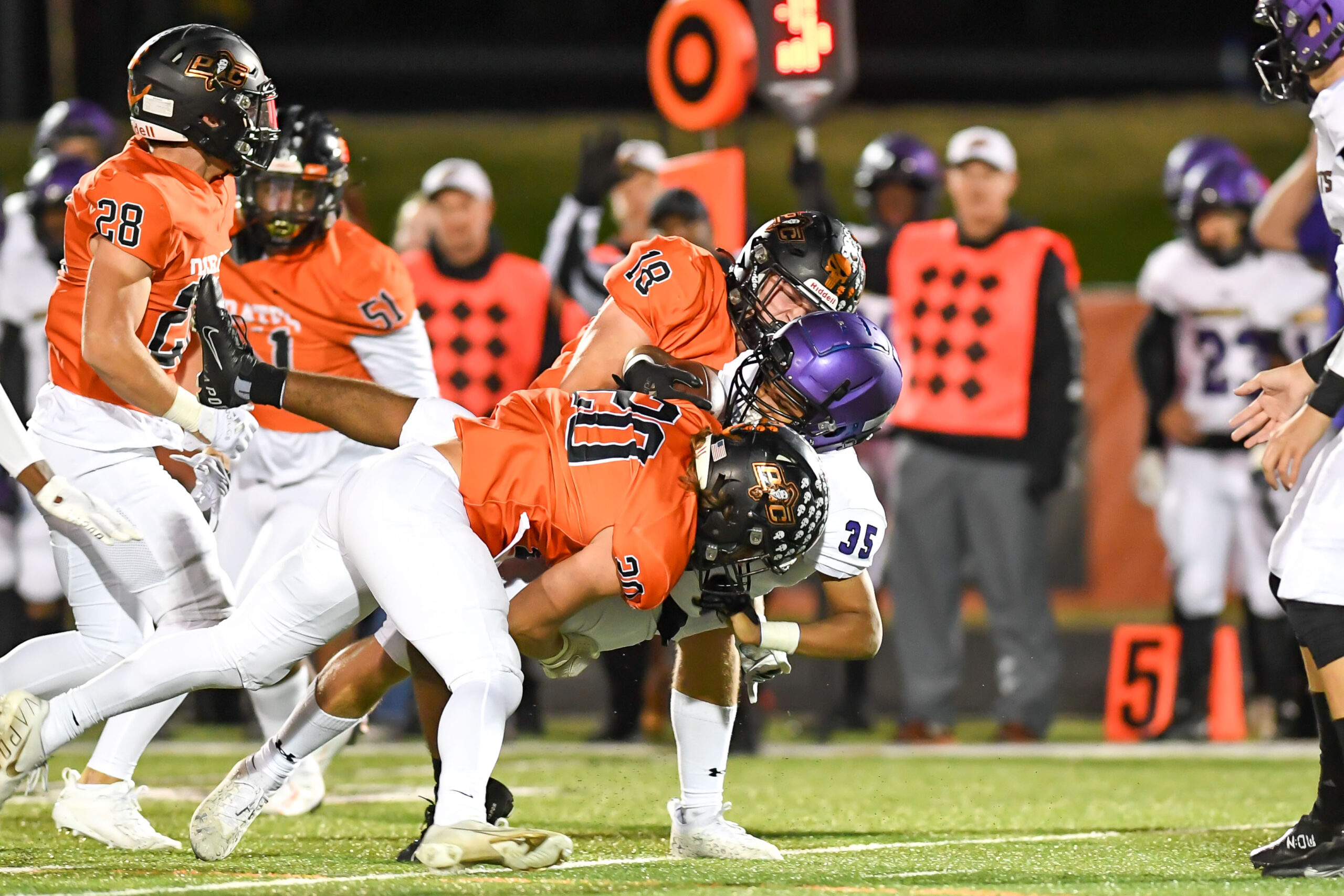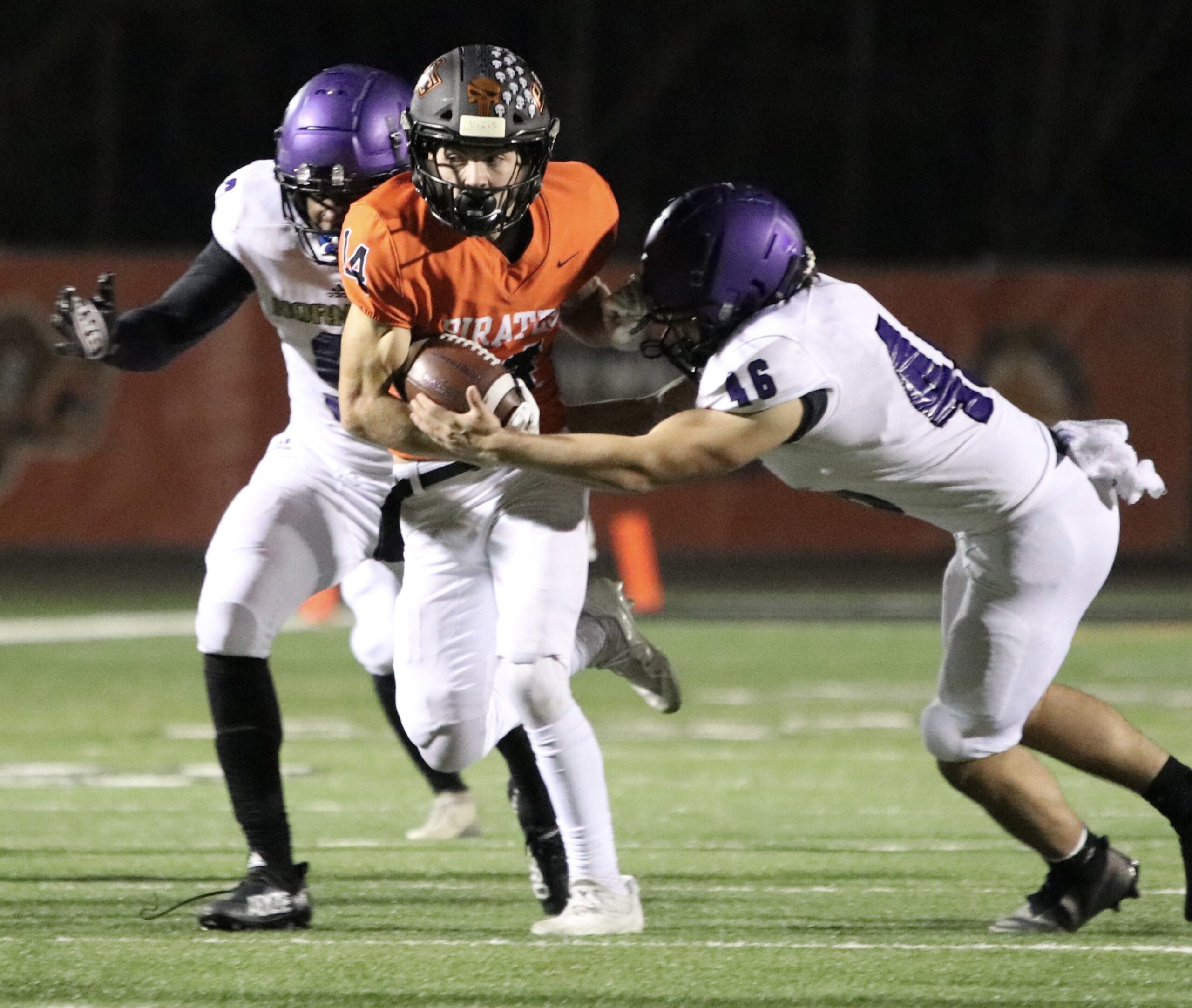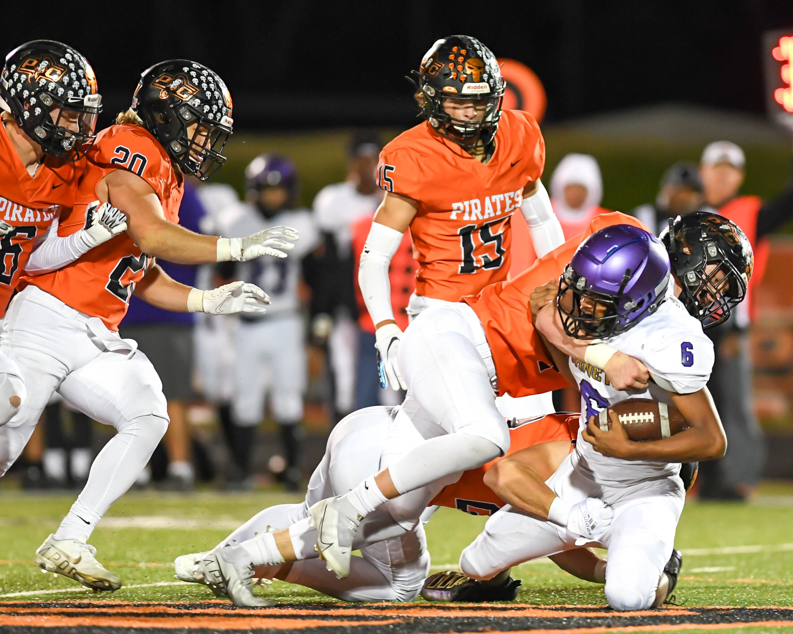 Platte County scored two touchdowns late to finish off a 21-6 win over North Kansas City in a Class 5 District 8 semifinal Friday at Pirate Stadium.
