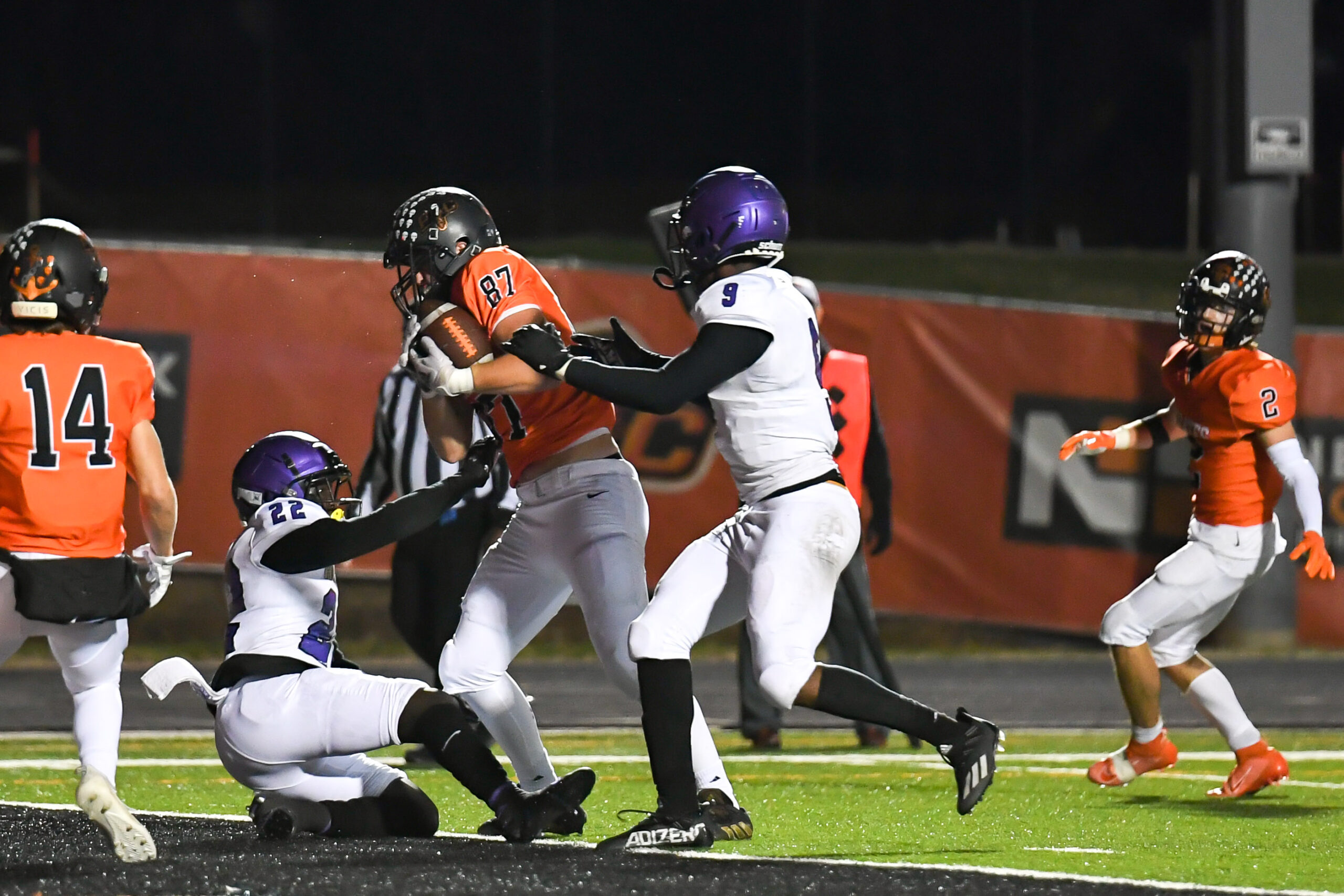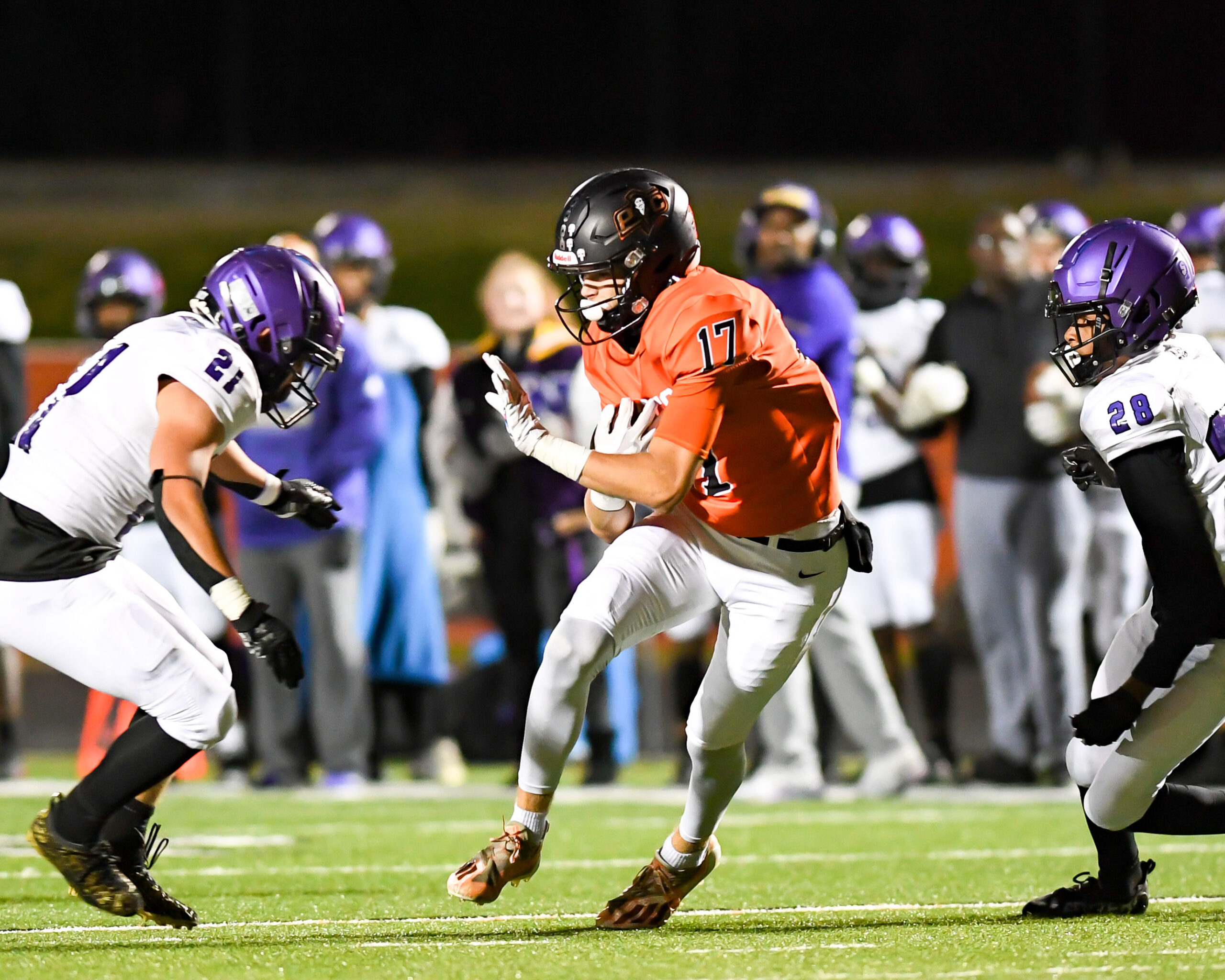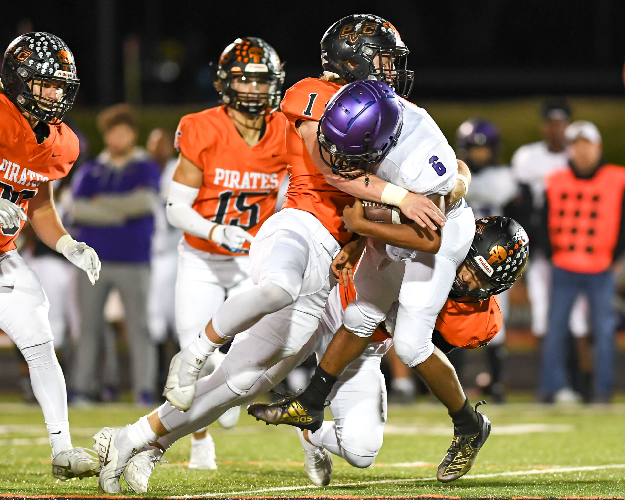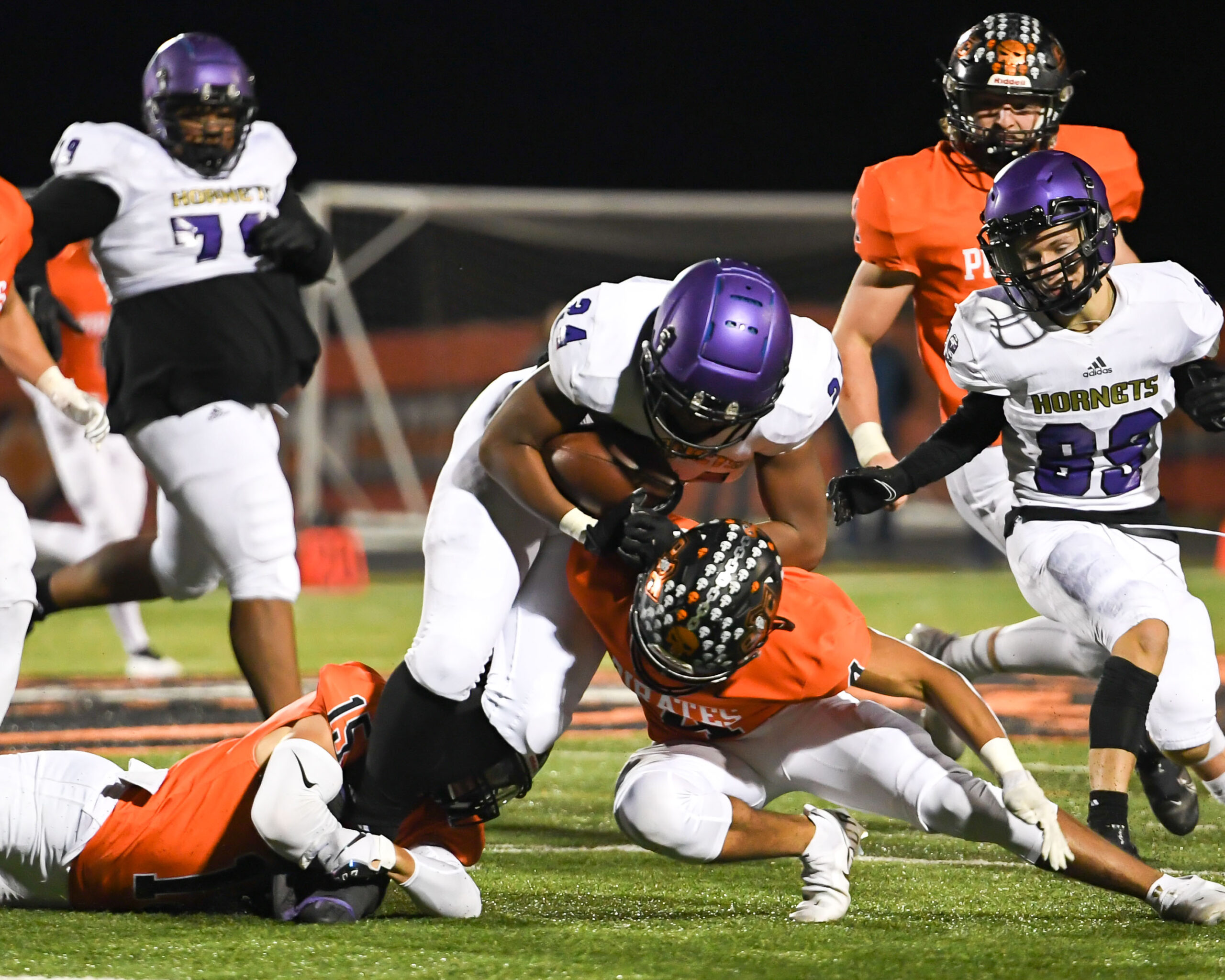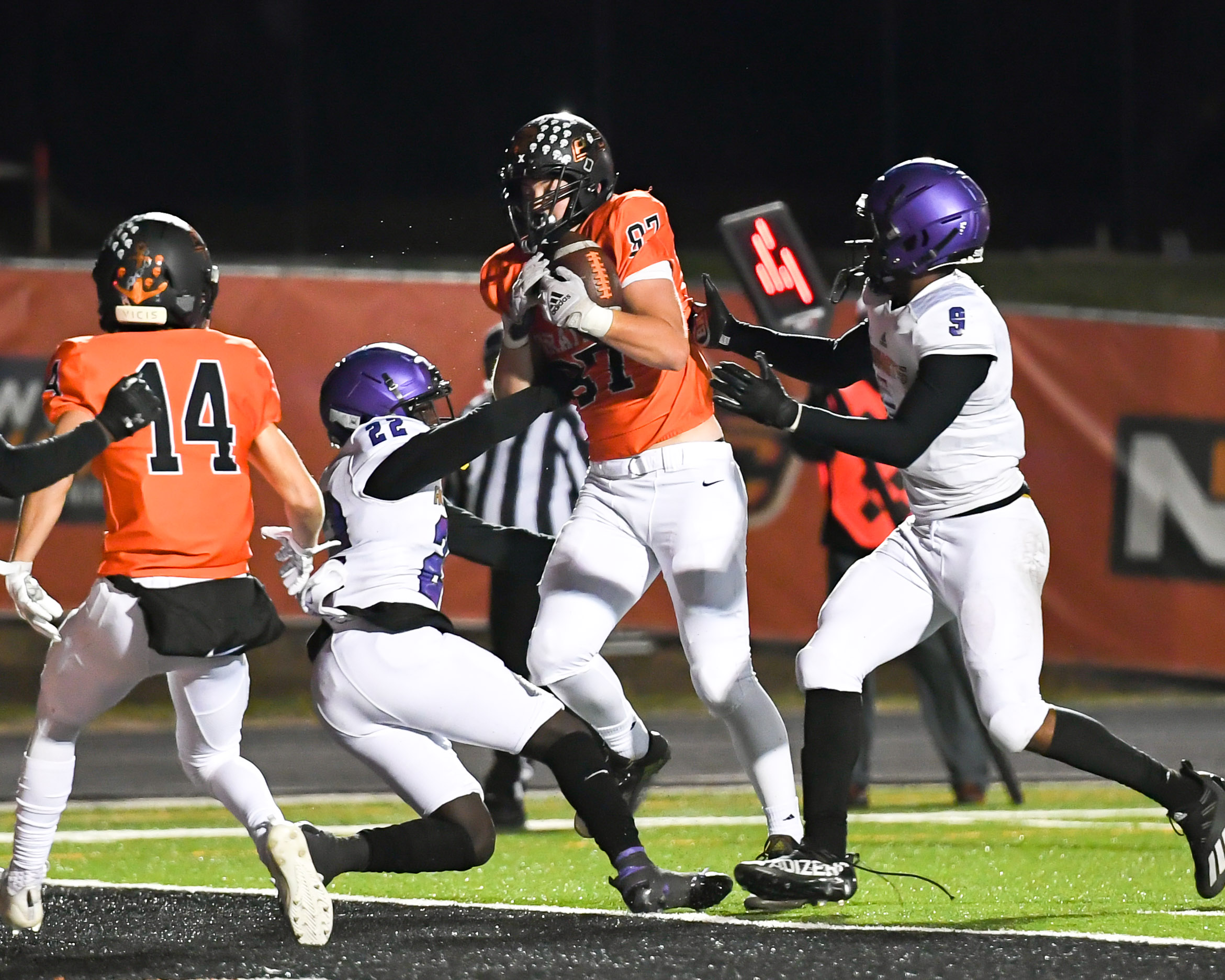 Platte County scored two touchdowns late to finish off a 21-6 win over North Kansas City in a Class 5 District 8 semifinal Friday at Pirate Stadium.