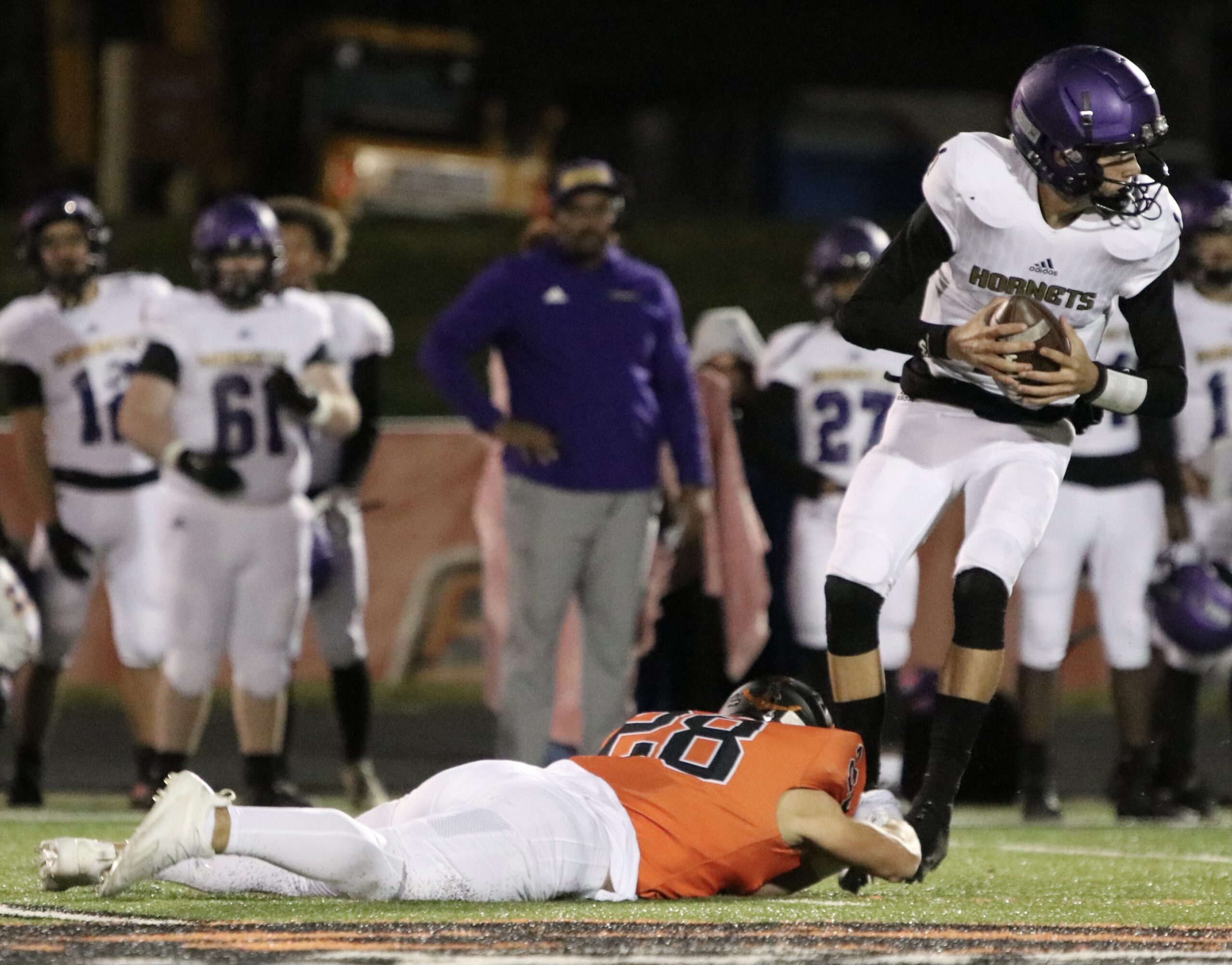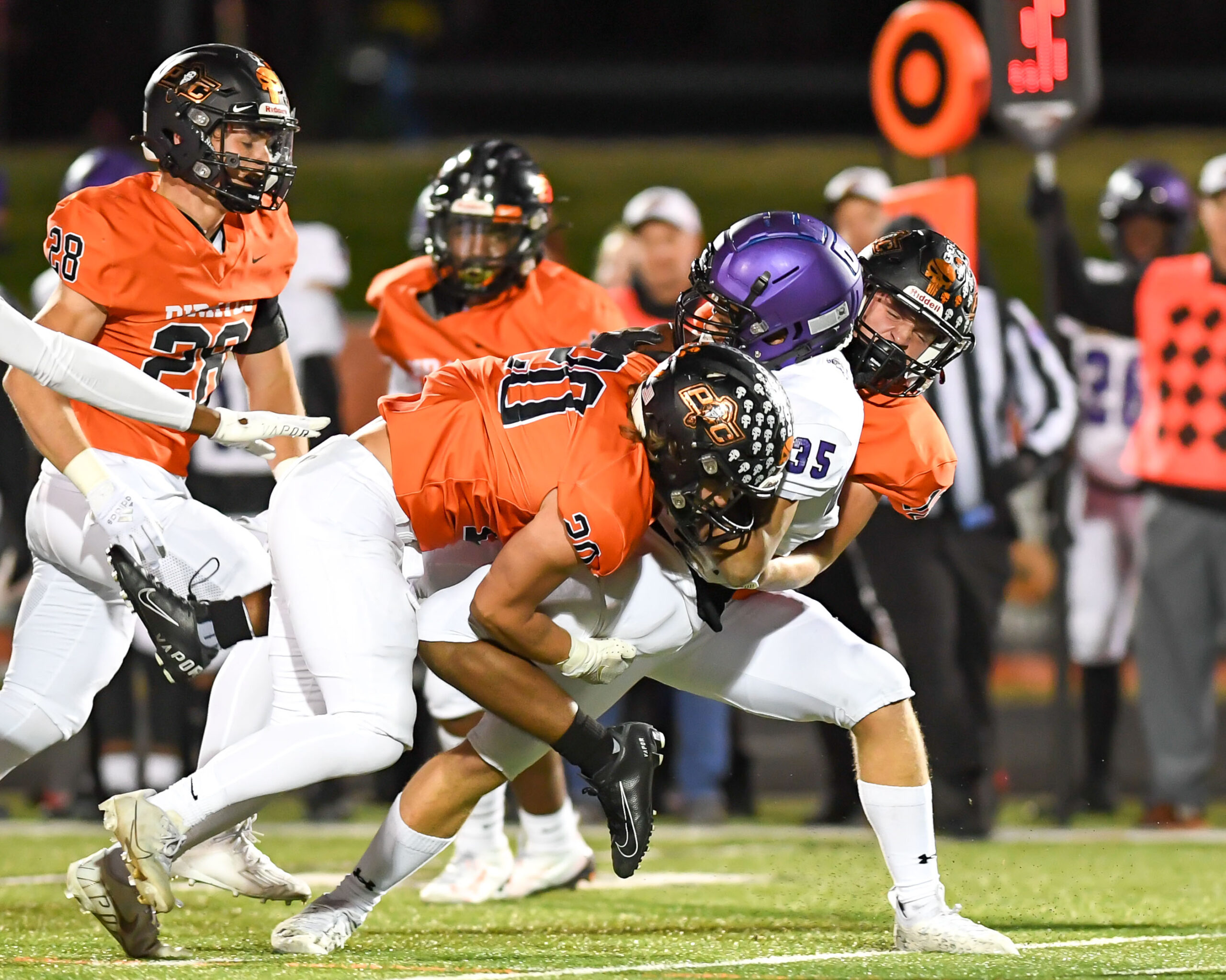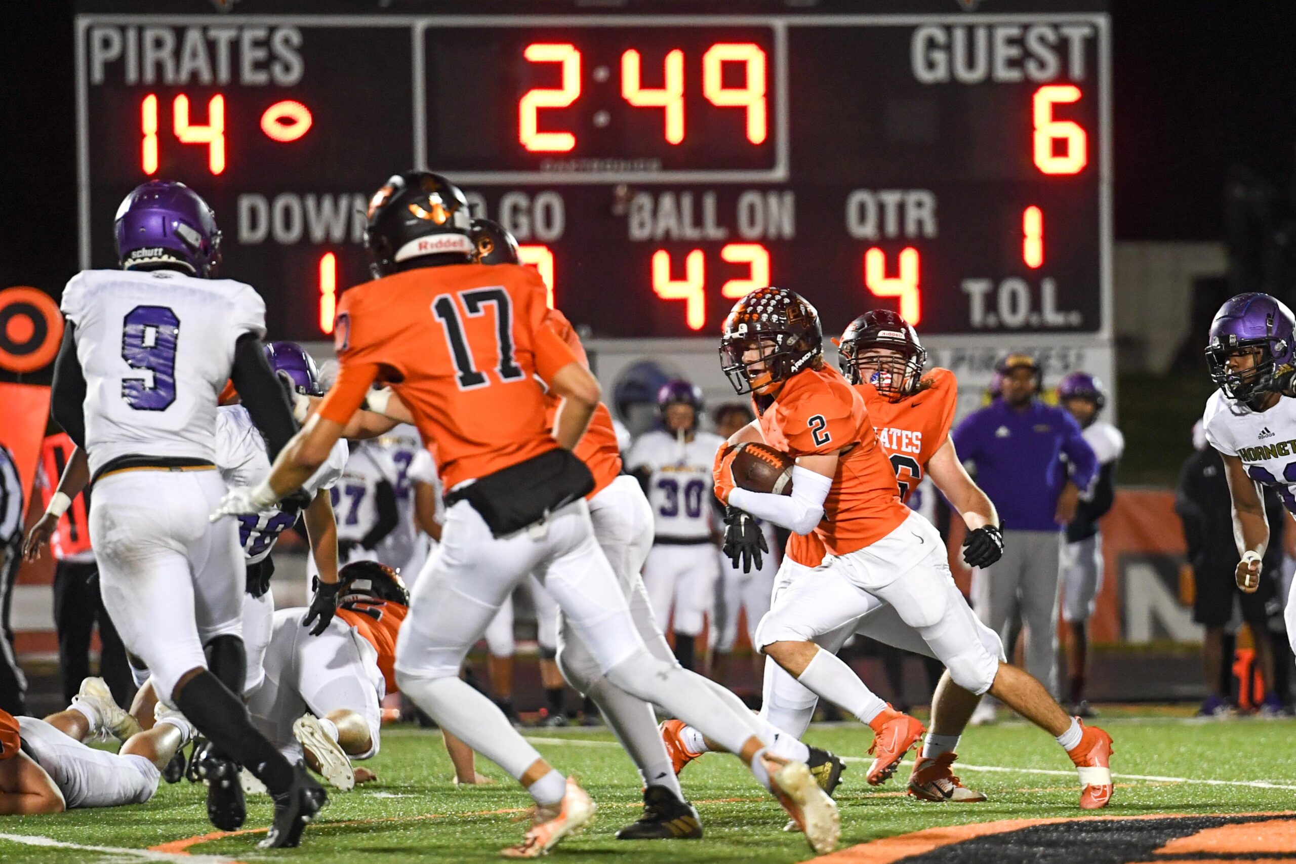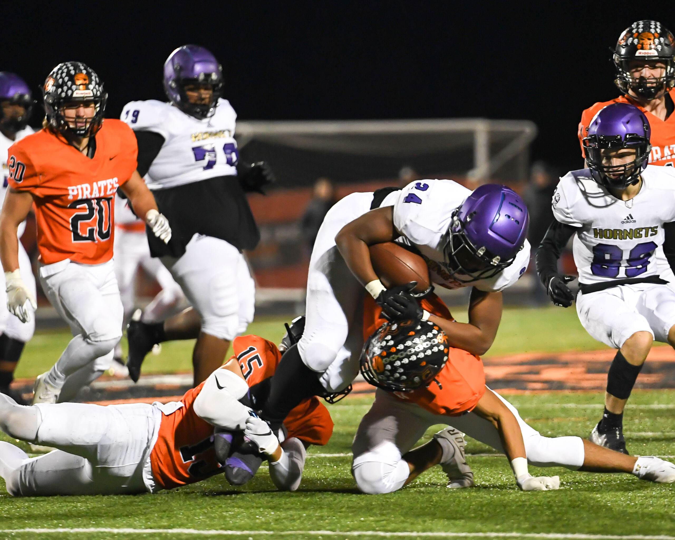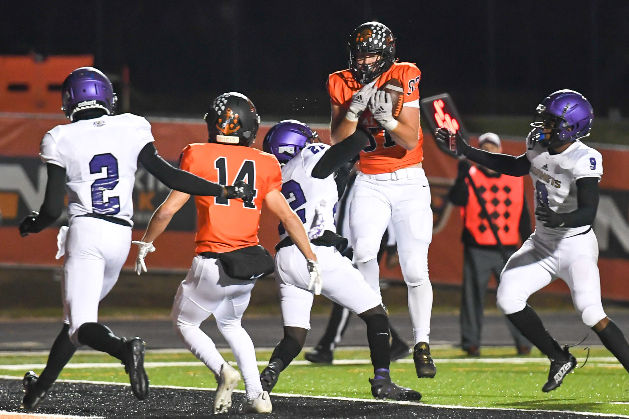 Platte County scored two touchdowns late to finish off a 21-6 win over North Kansas City in a Class 5 District 8 semifinal Friday at Pirate Stadium.