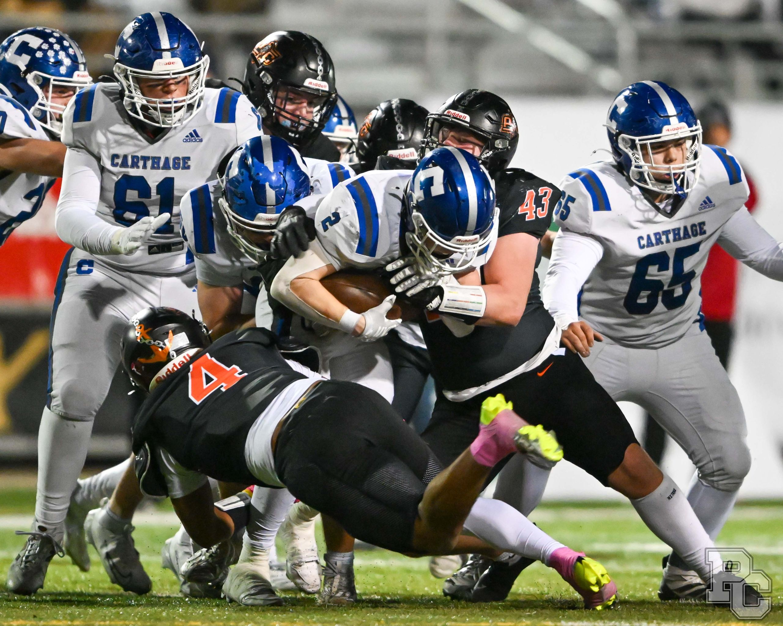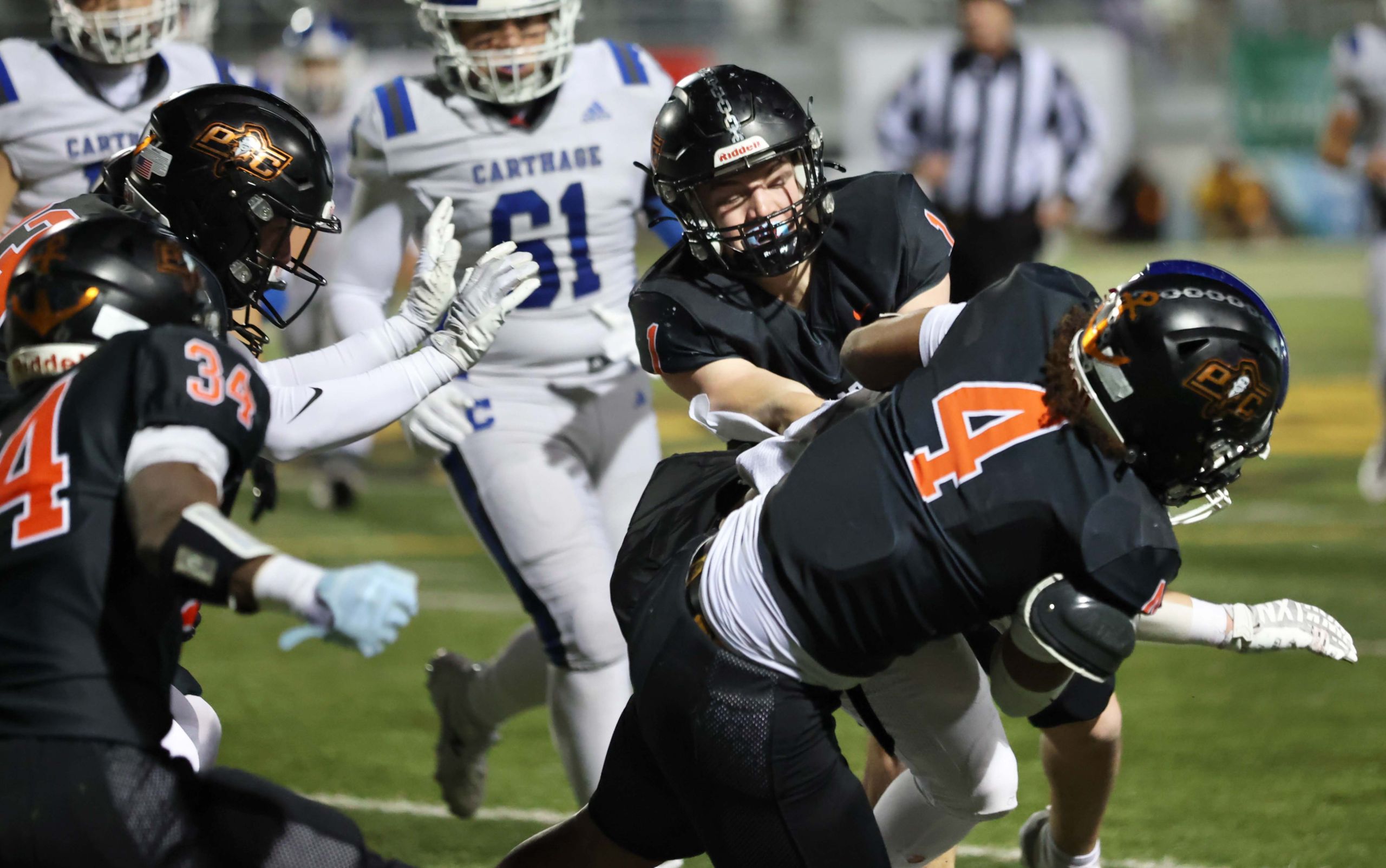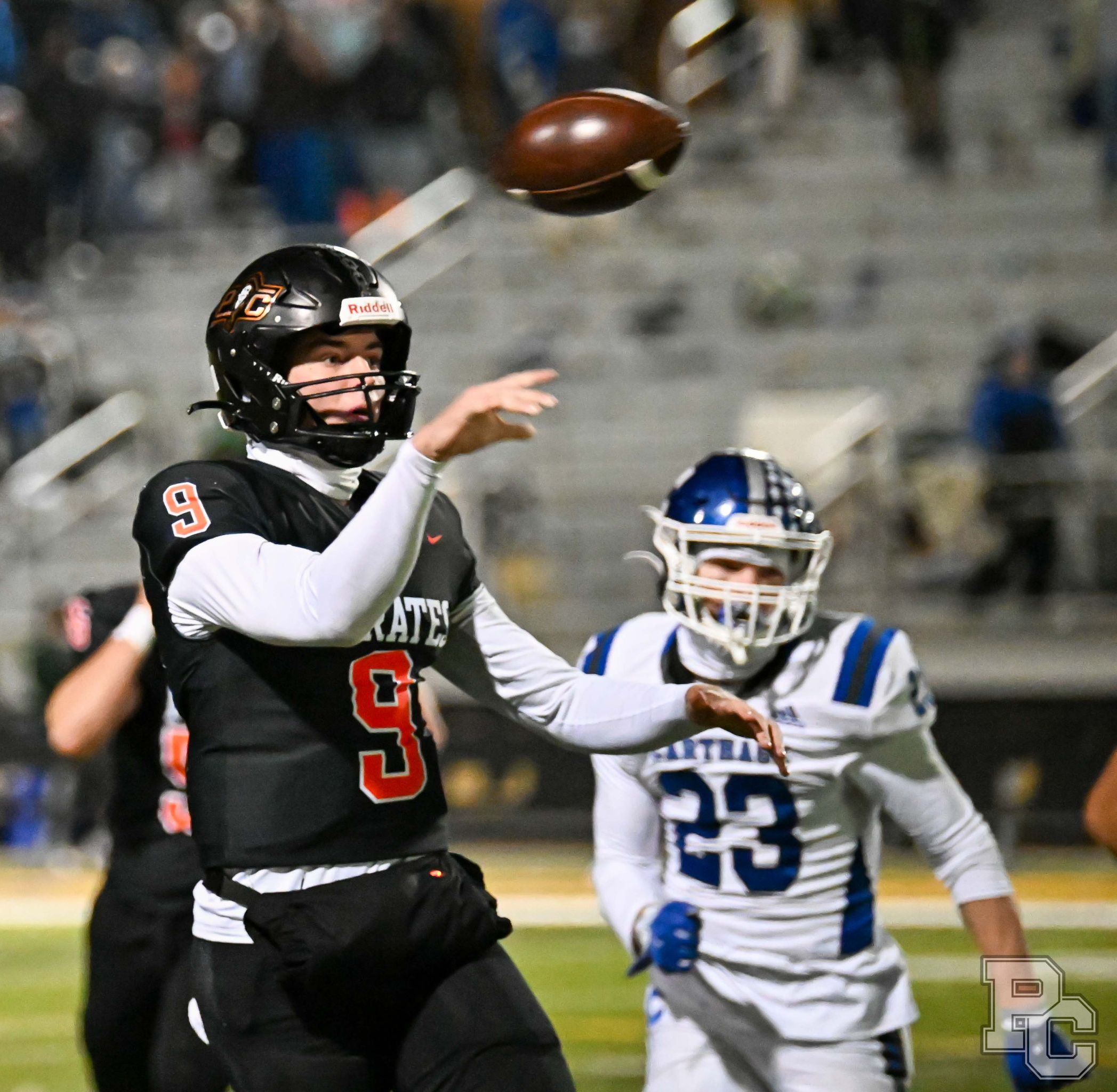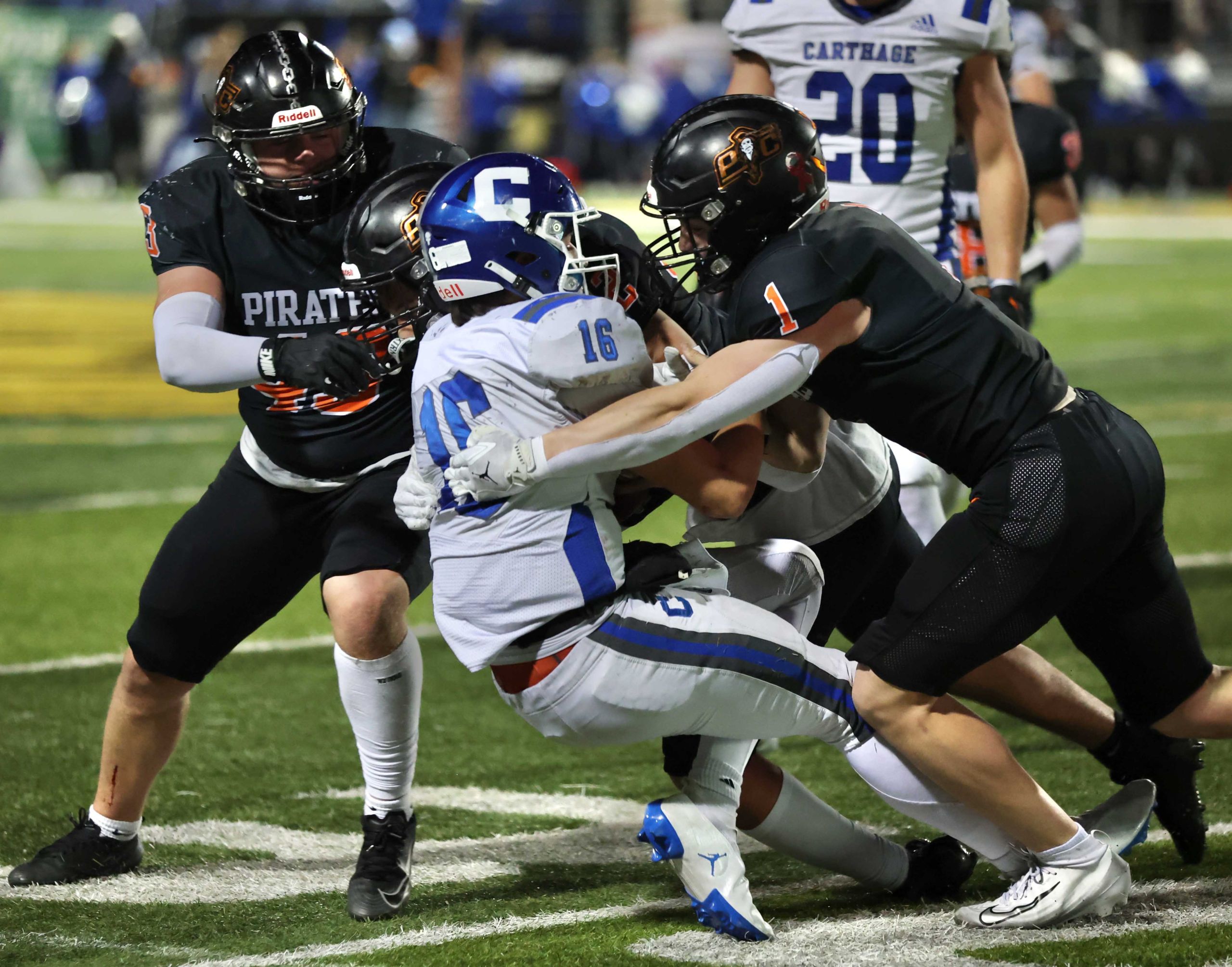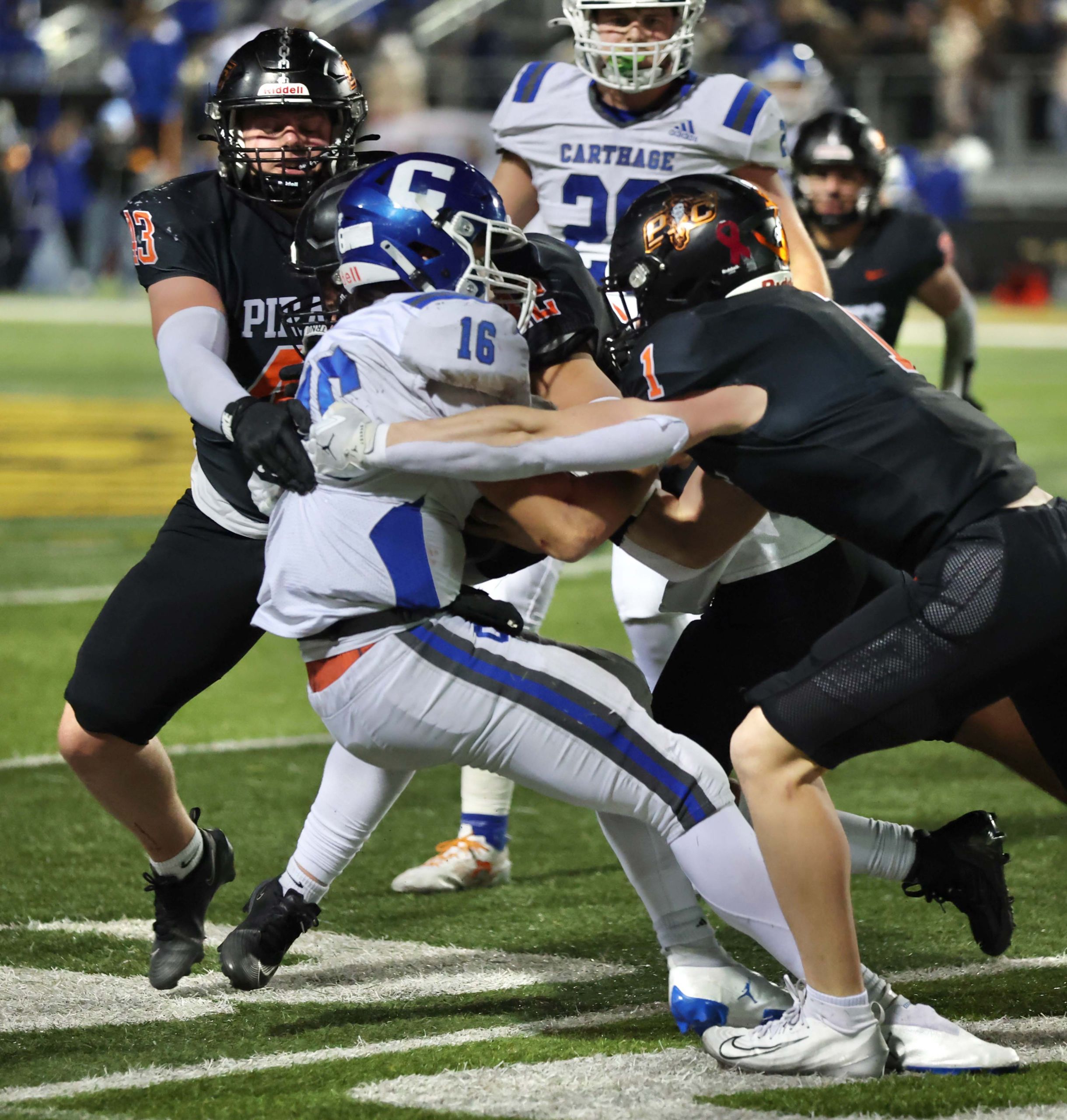 Platte County won a second straight state championship with a 34-28 victory in overtime against Carthage on Friday at Spratt Stadium on the campus of Missouri Western State University in St. Joseph.