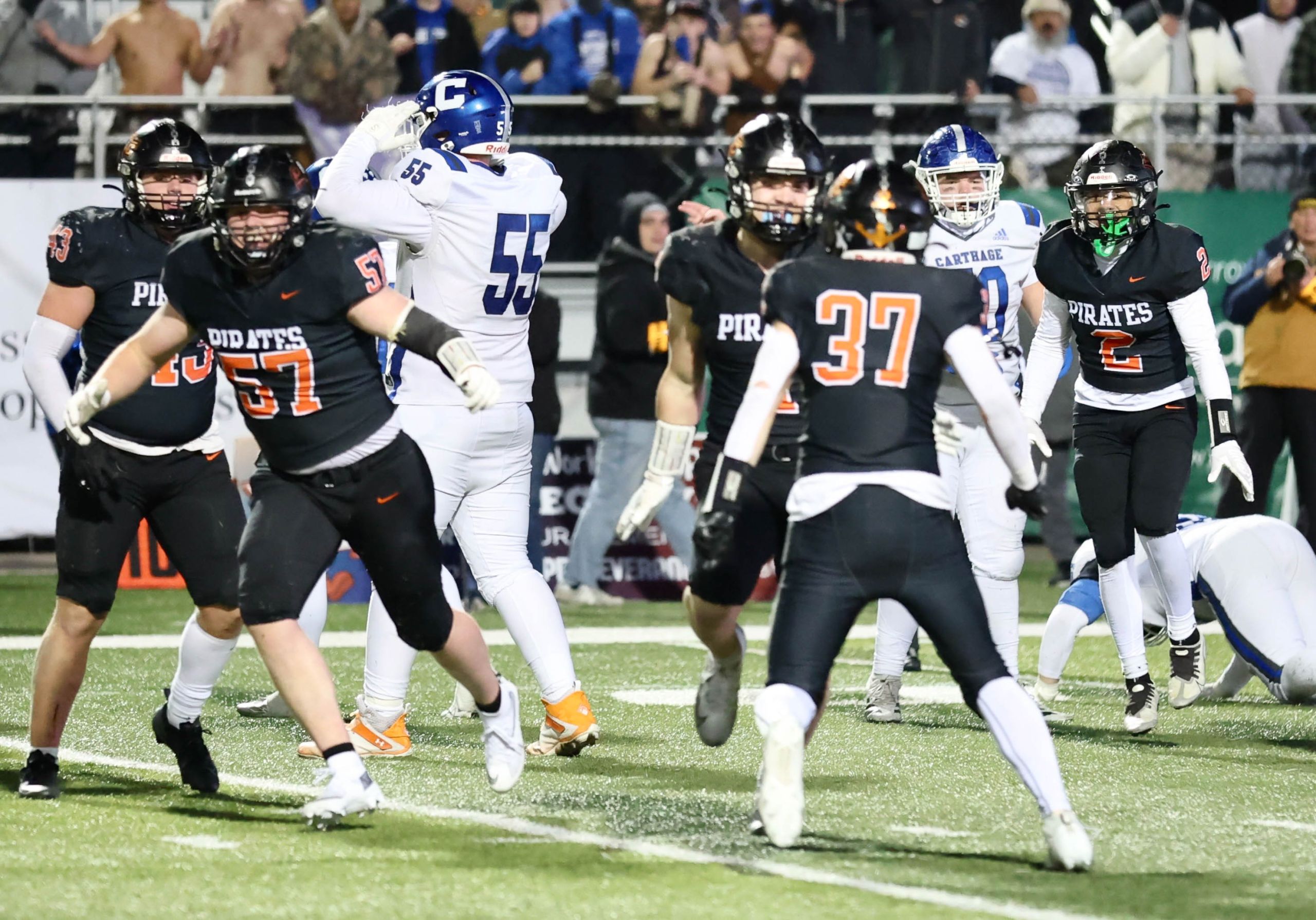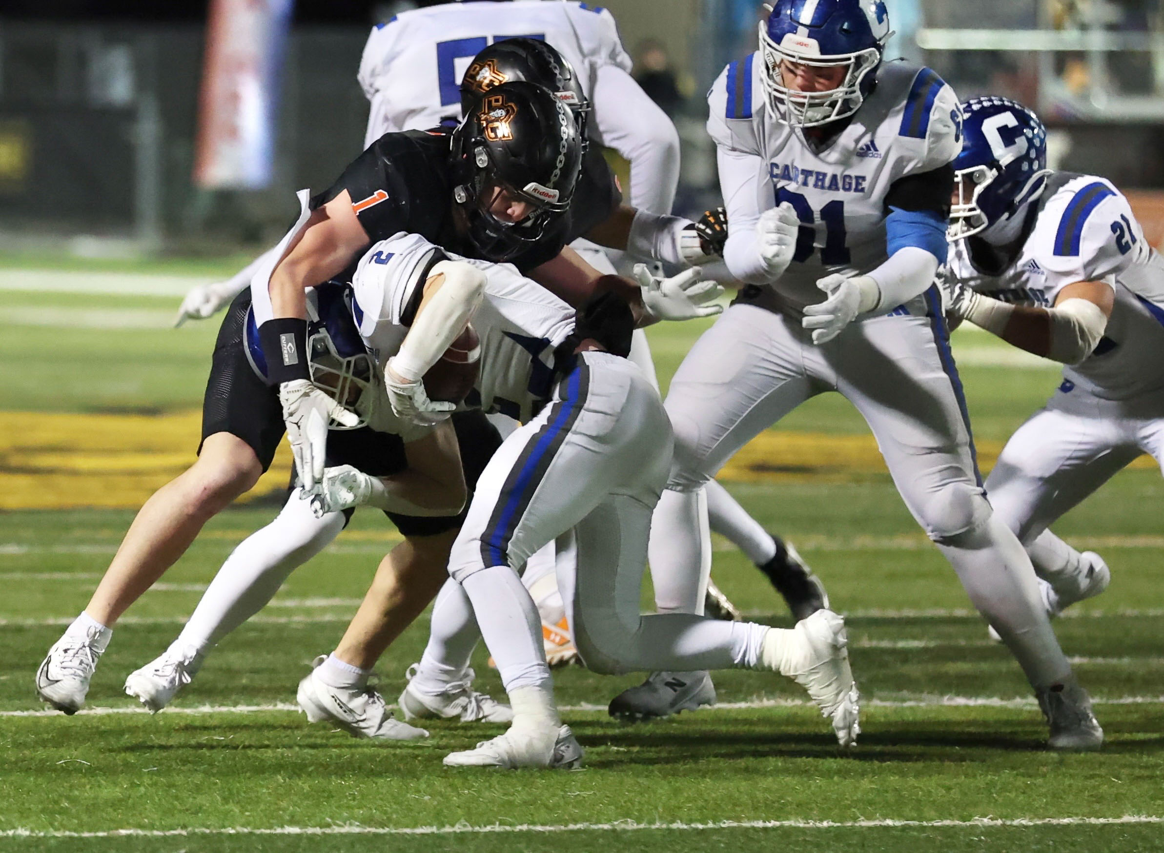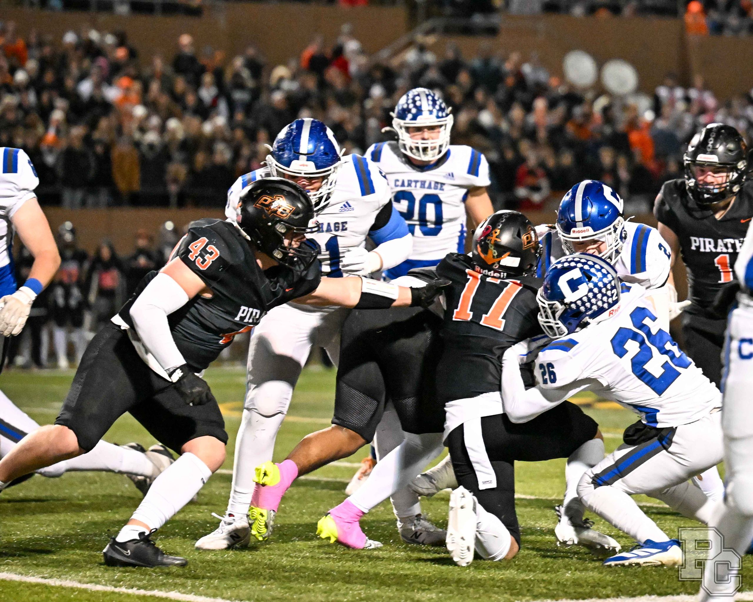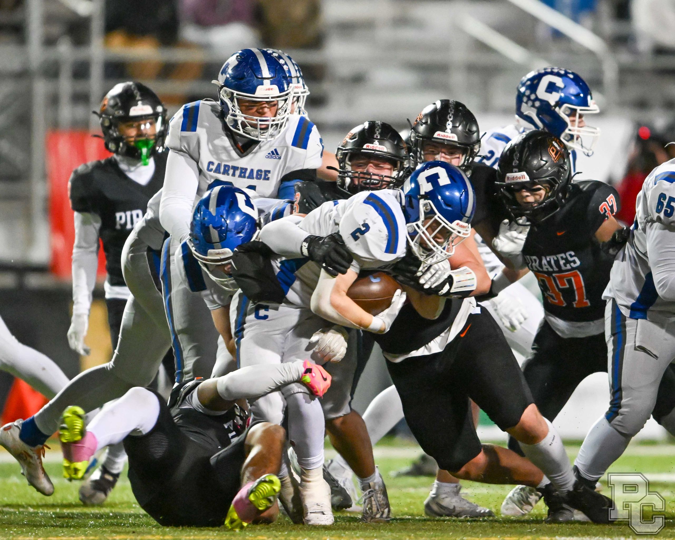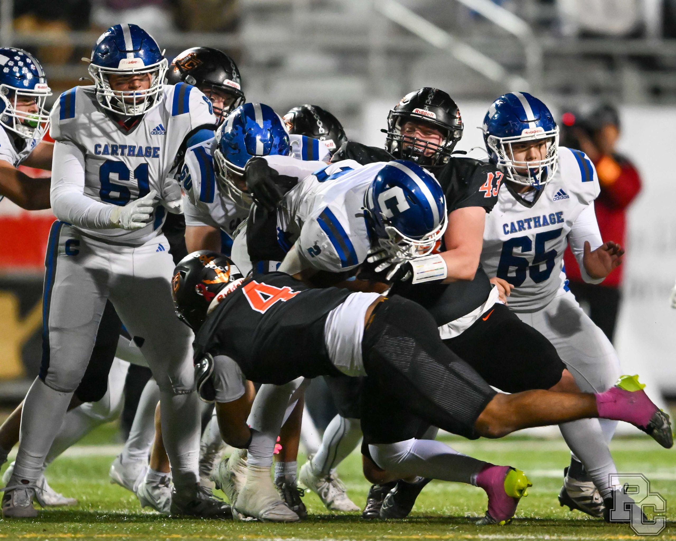 Platte County won a second straight state championship with a 34-28 victory in overtime against Carthage on Friday at Spratt Stadium on the campus of Missouri Western State University in St. Joseph.
