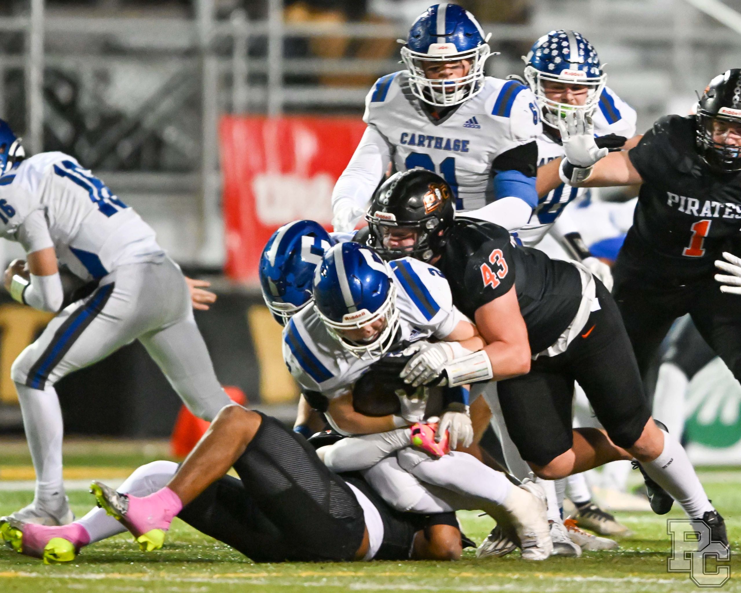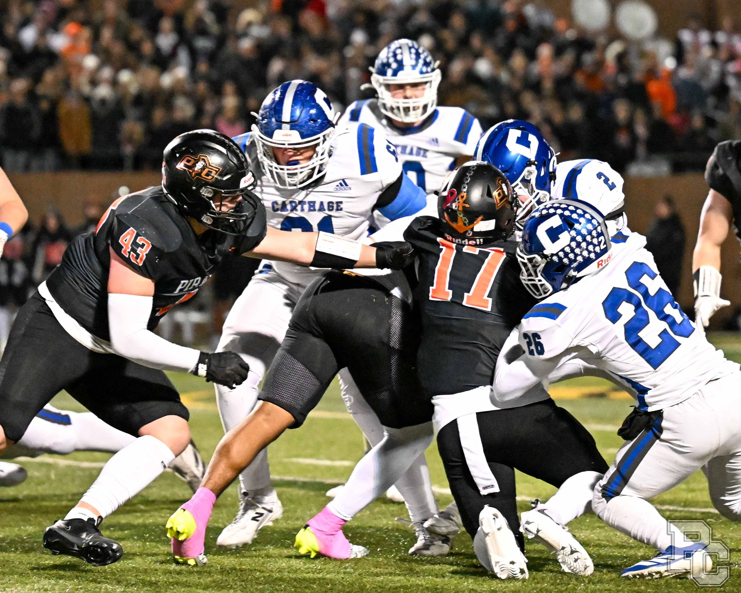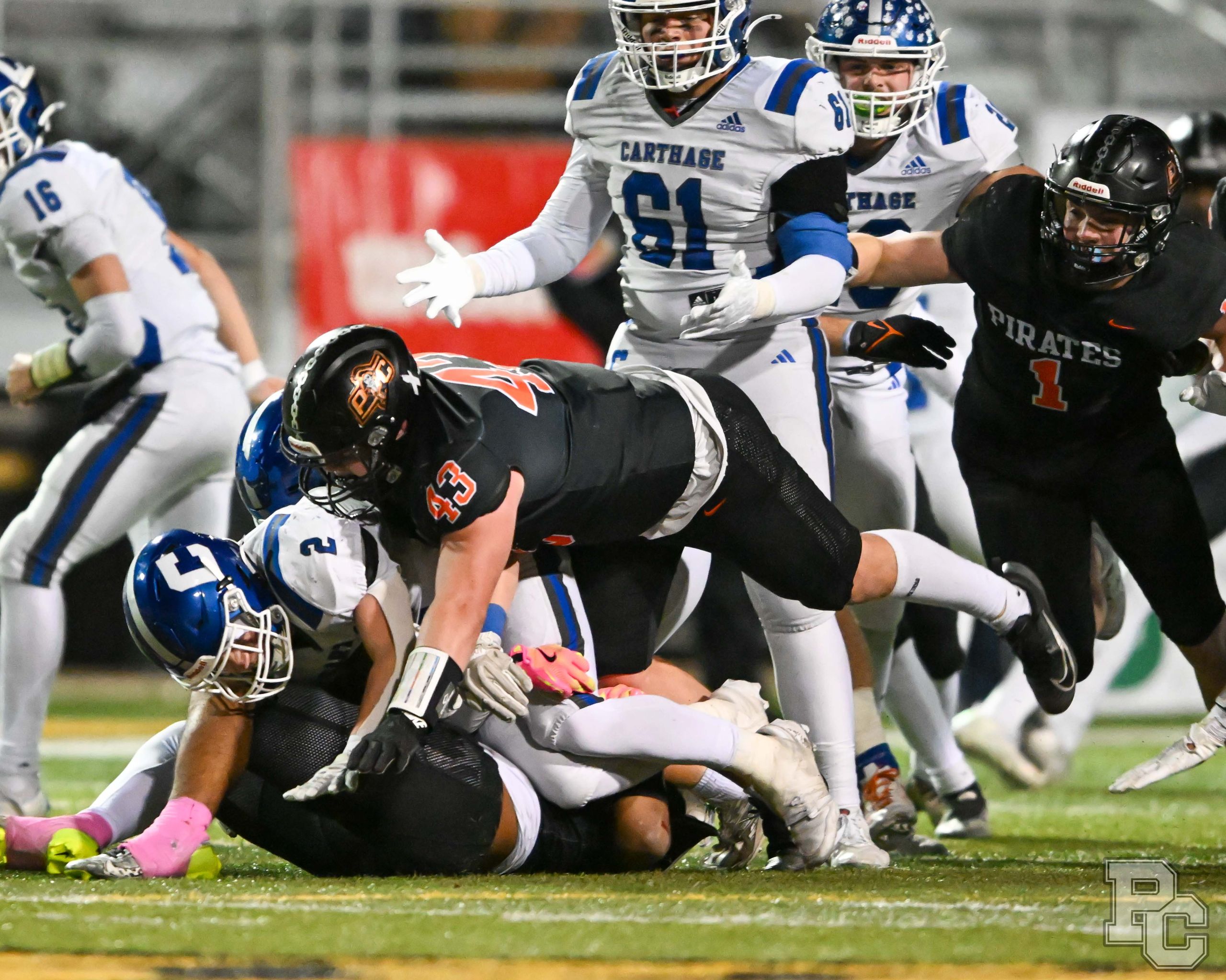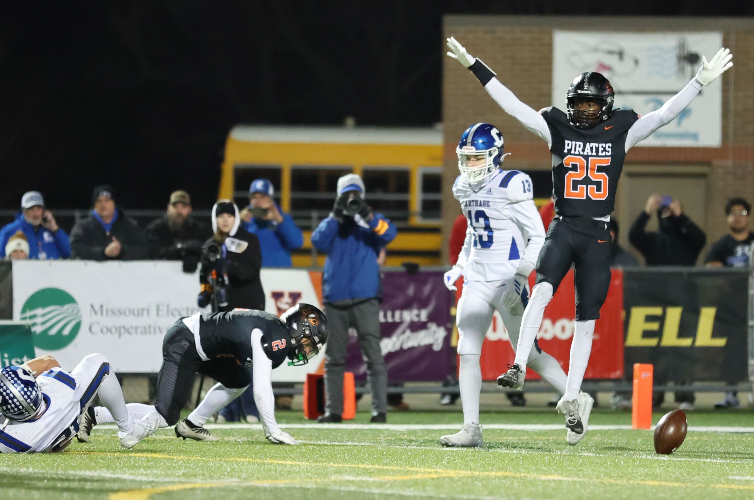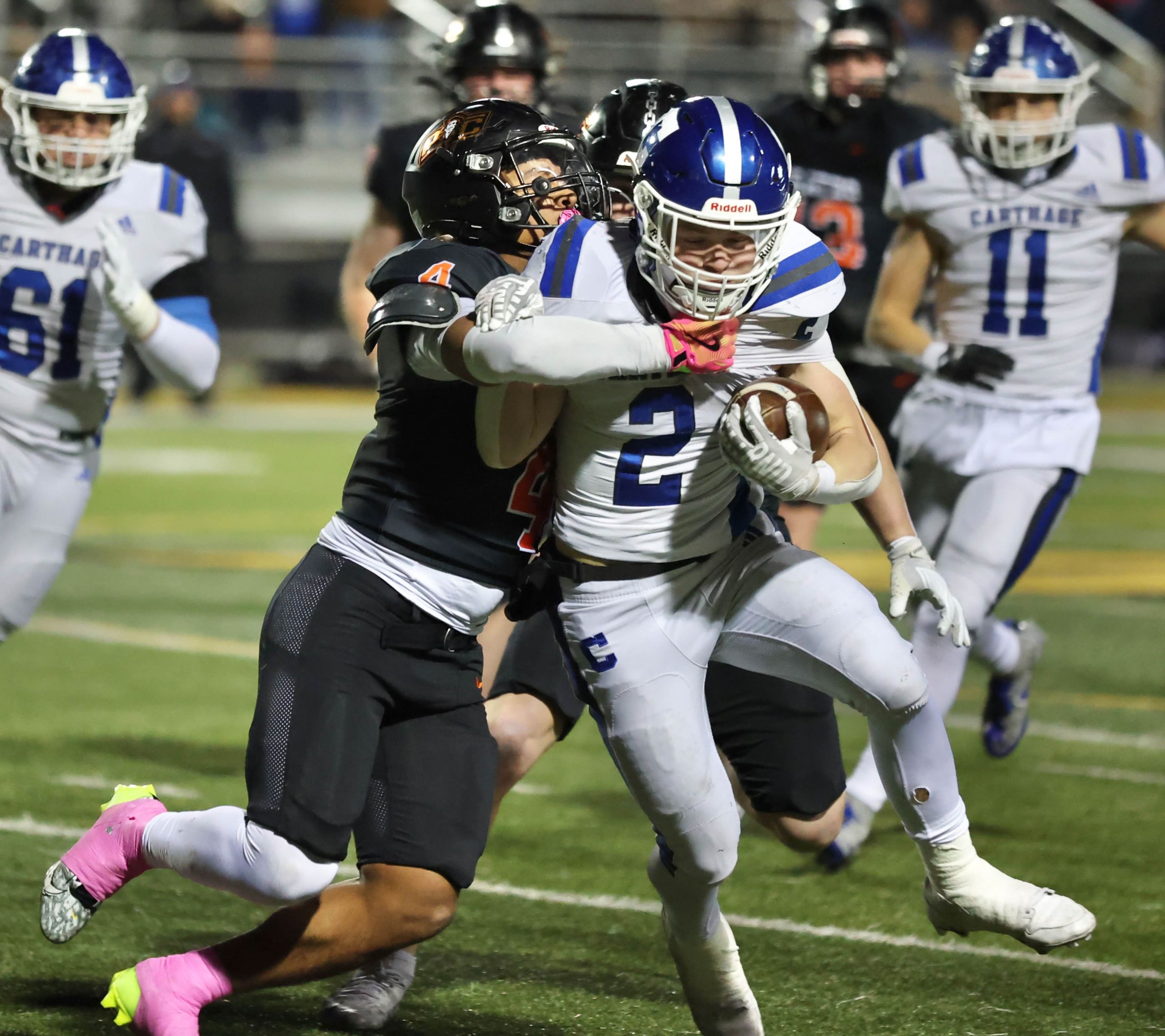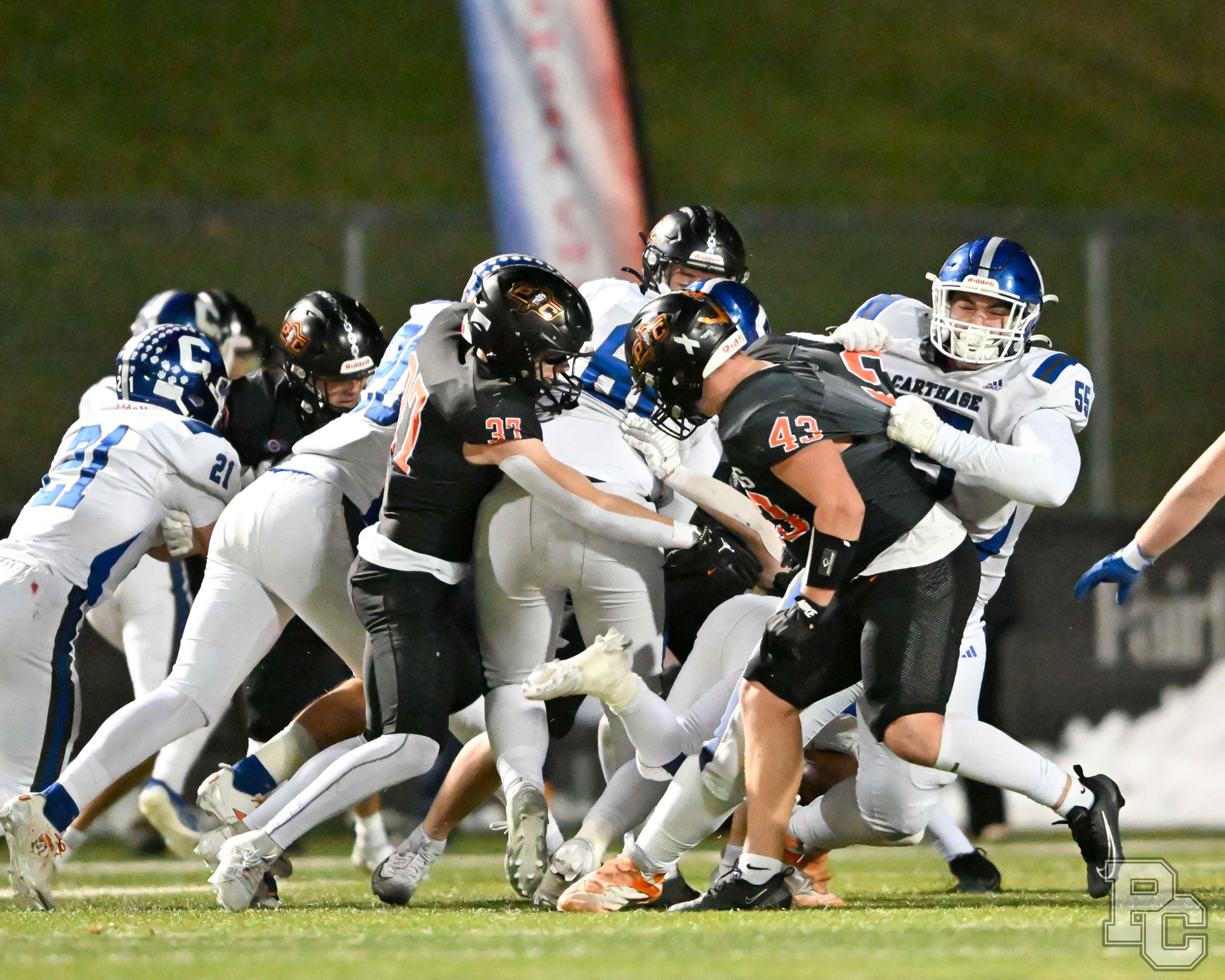 Platte County won a second straight state championship with a 34-28 victory in overtime against Carthage on Friday at Spratt Stadium on the campus of Missouri Western State University in St. Joseph.