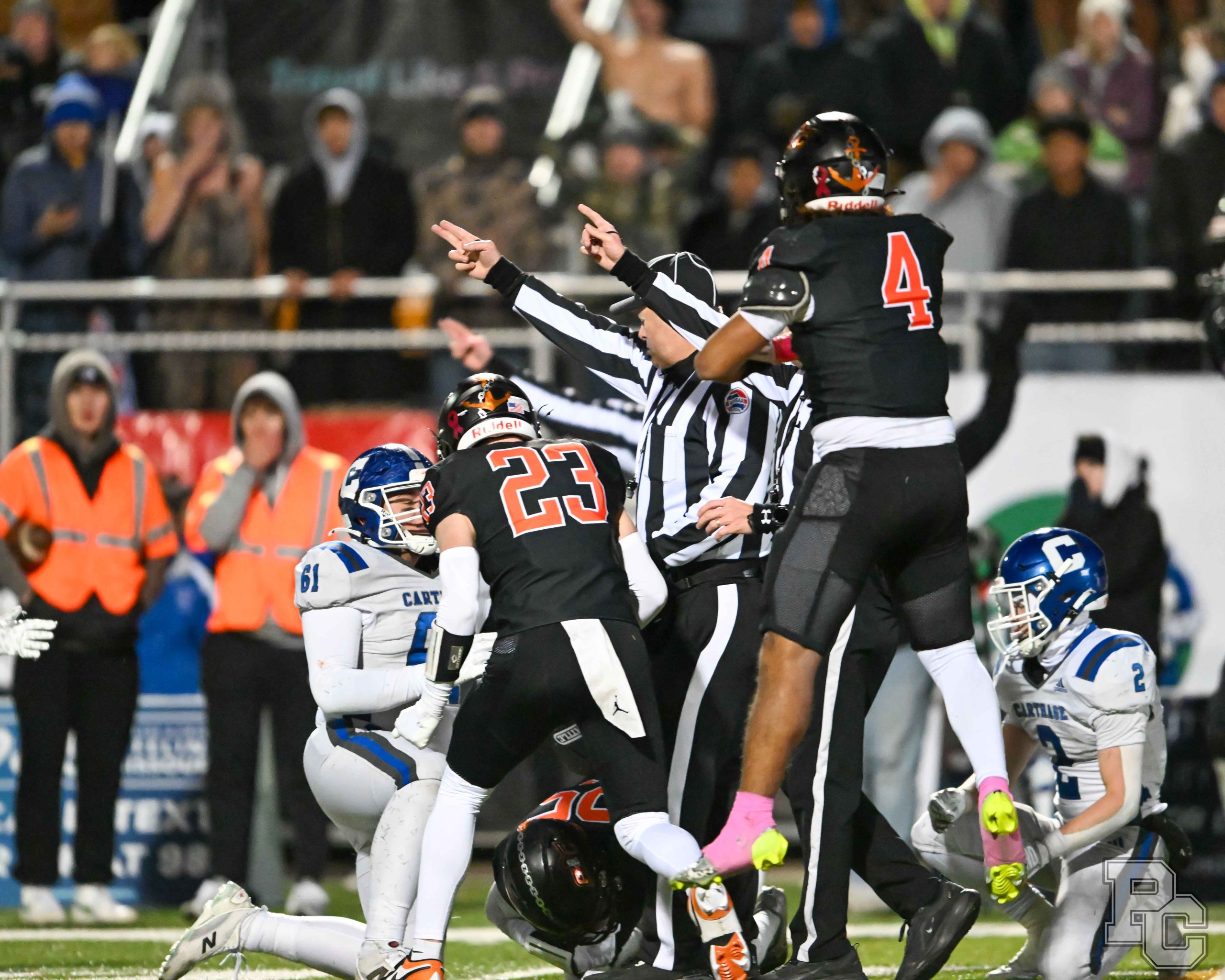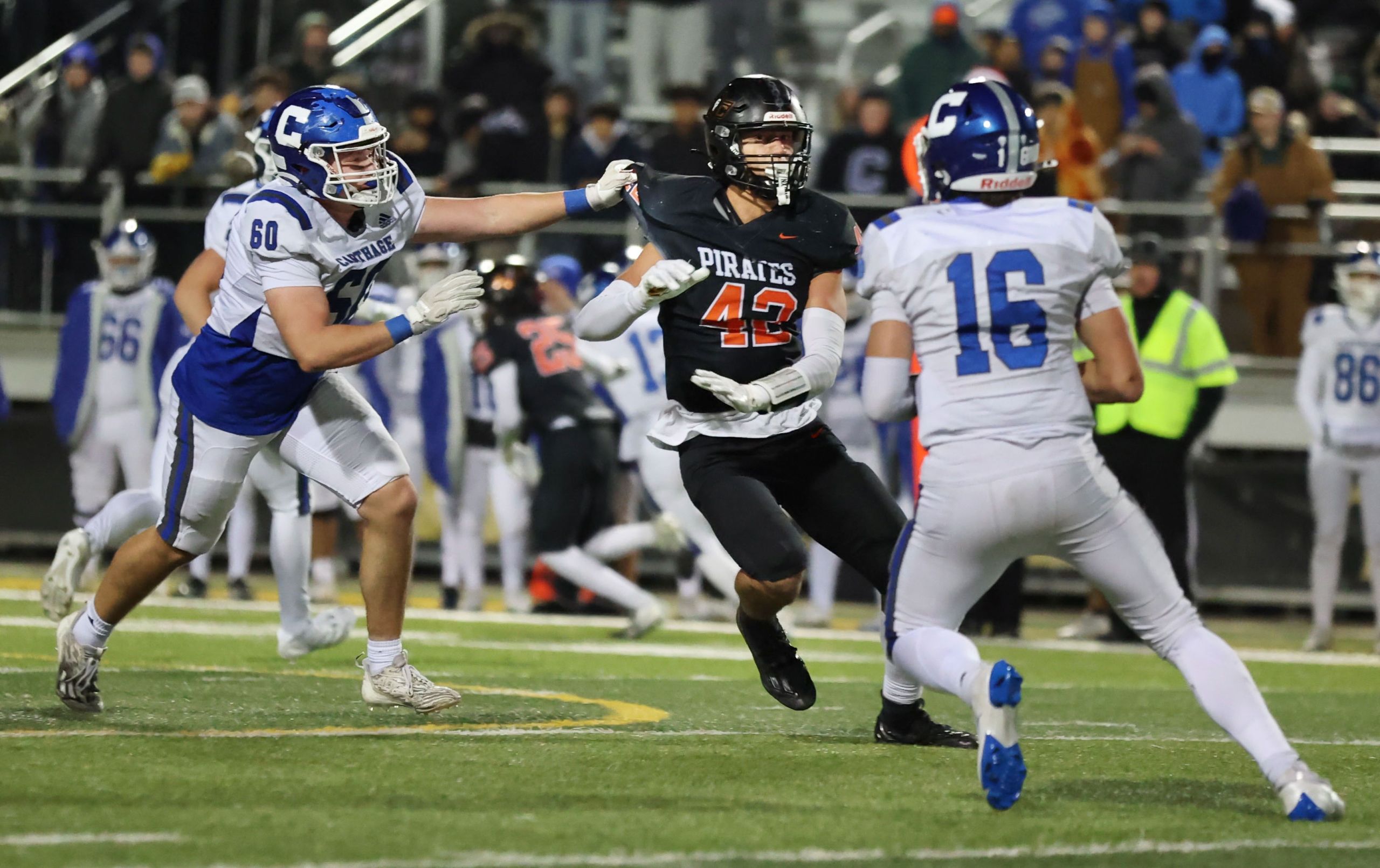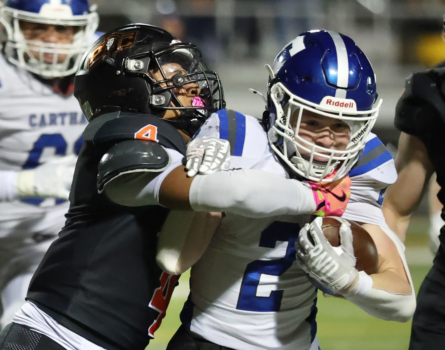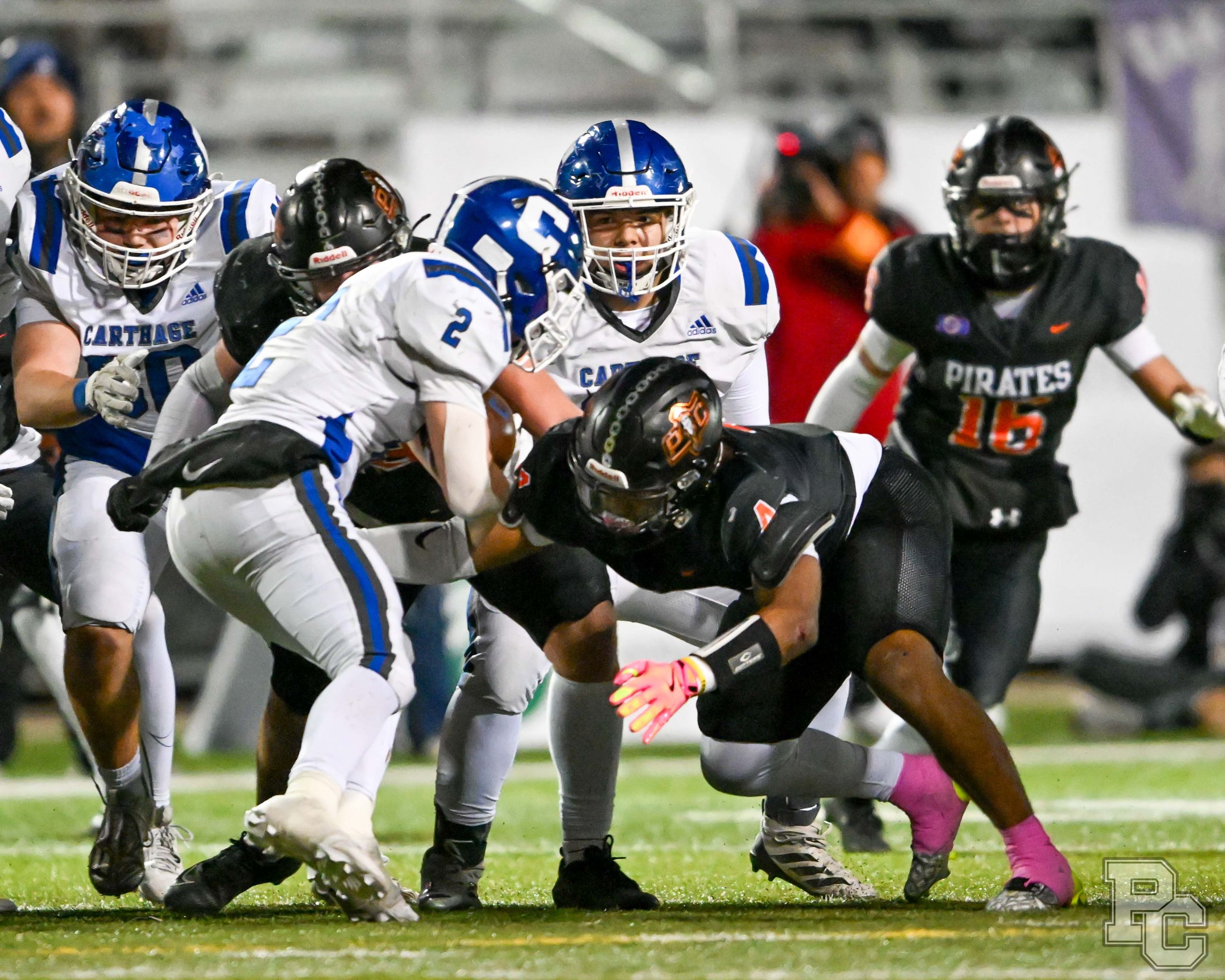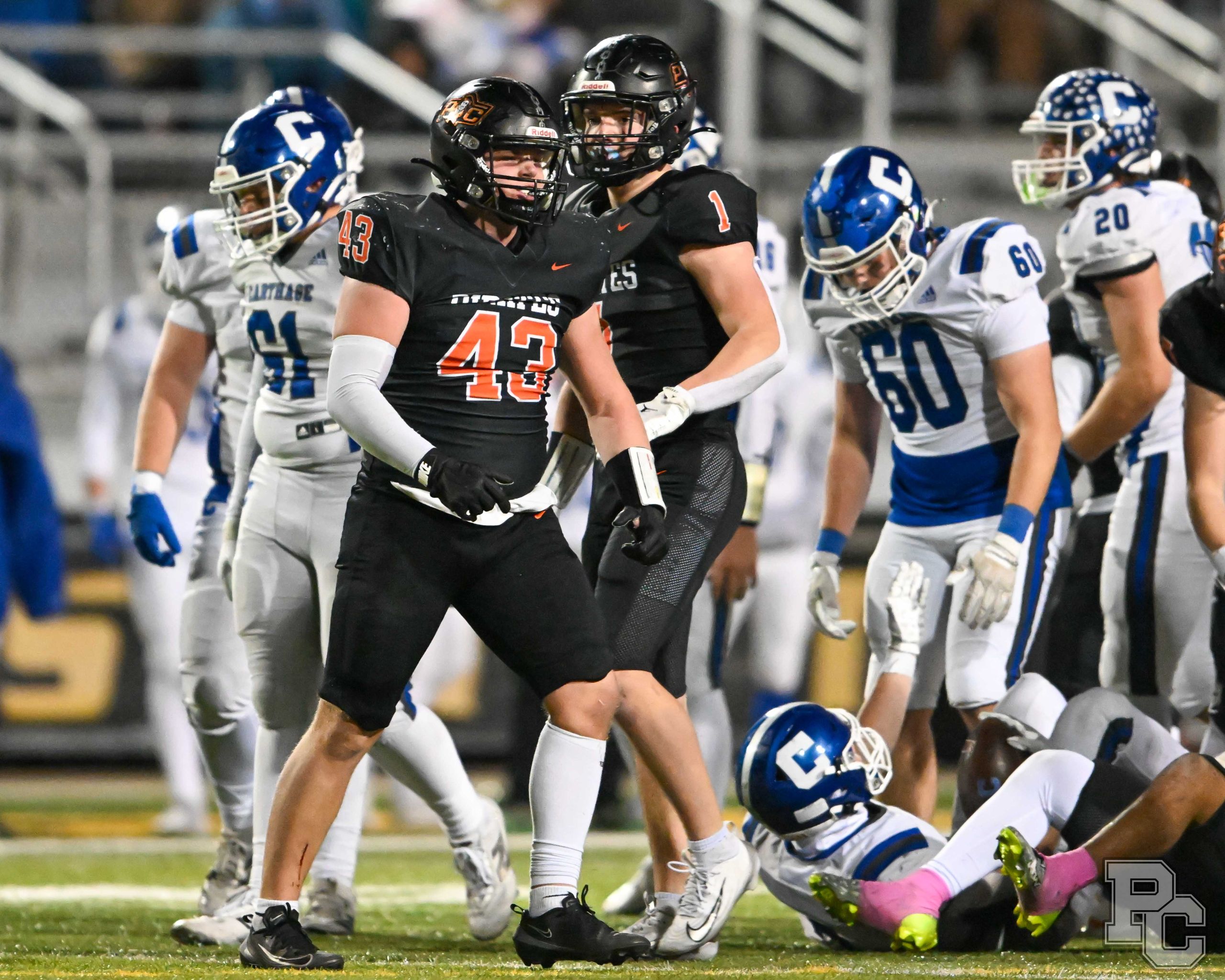 Platte County won a second straight state championship with a 34-28 victory in overtime against Carthage on Friday at Spratt Stadium on the campus of Missouri Western State University in St. Joseph.
