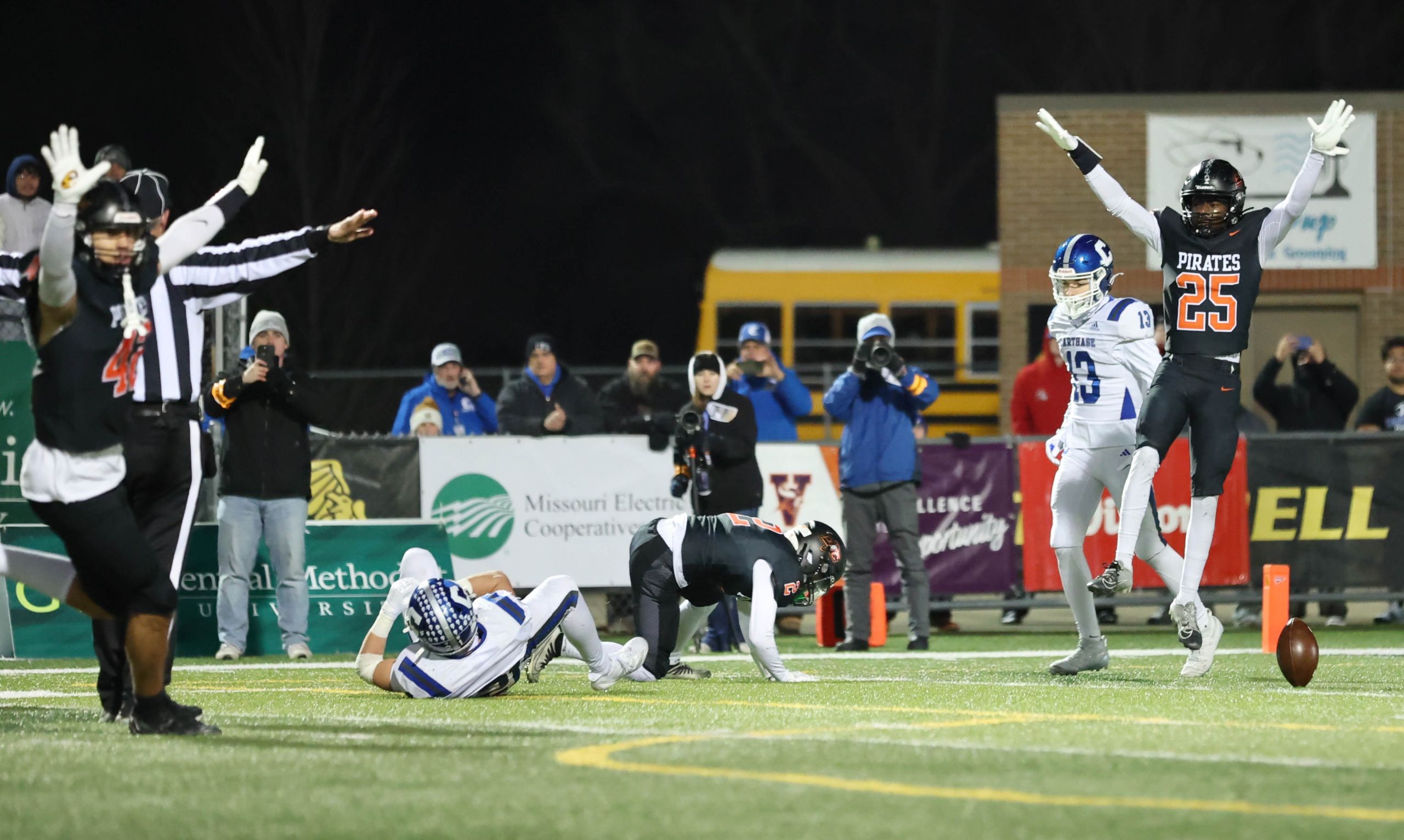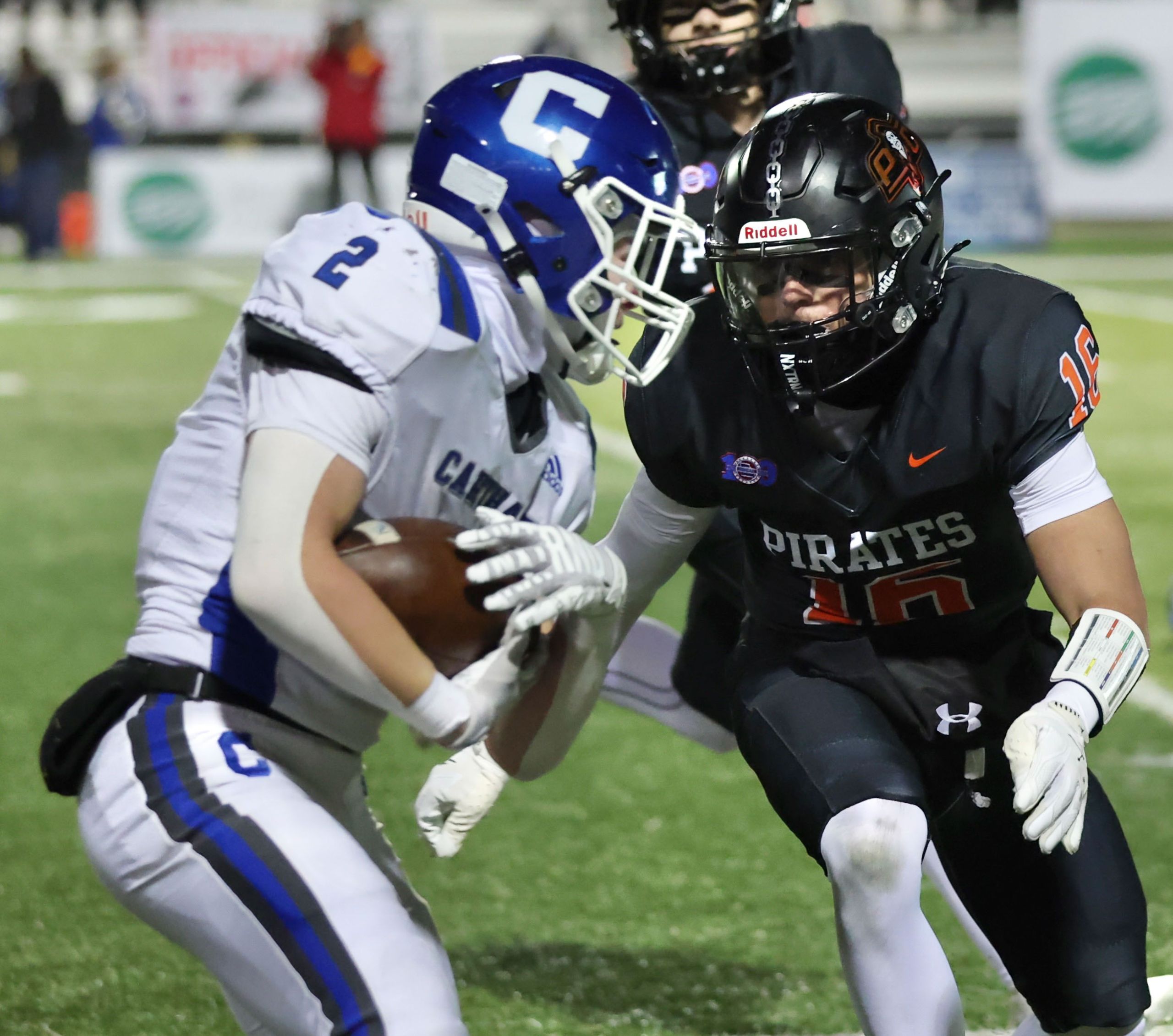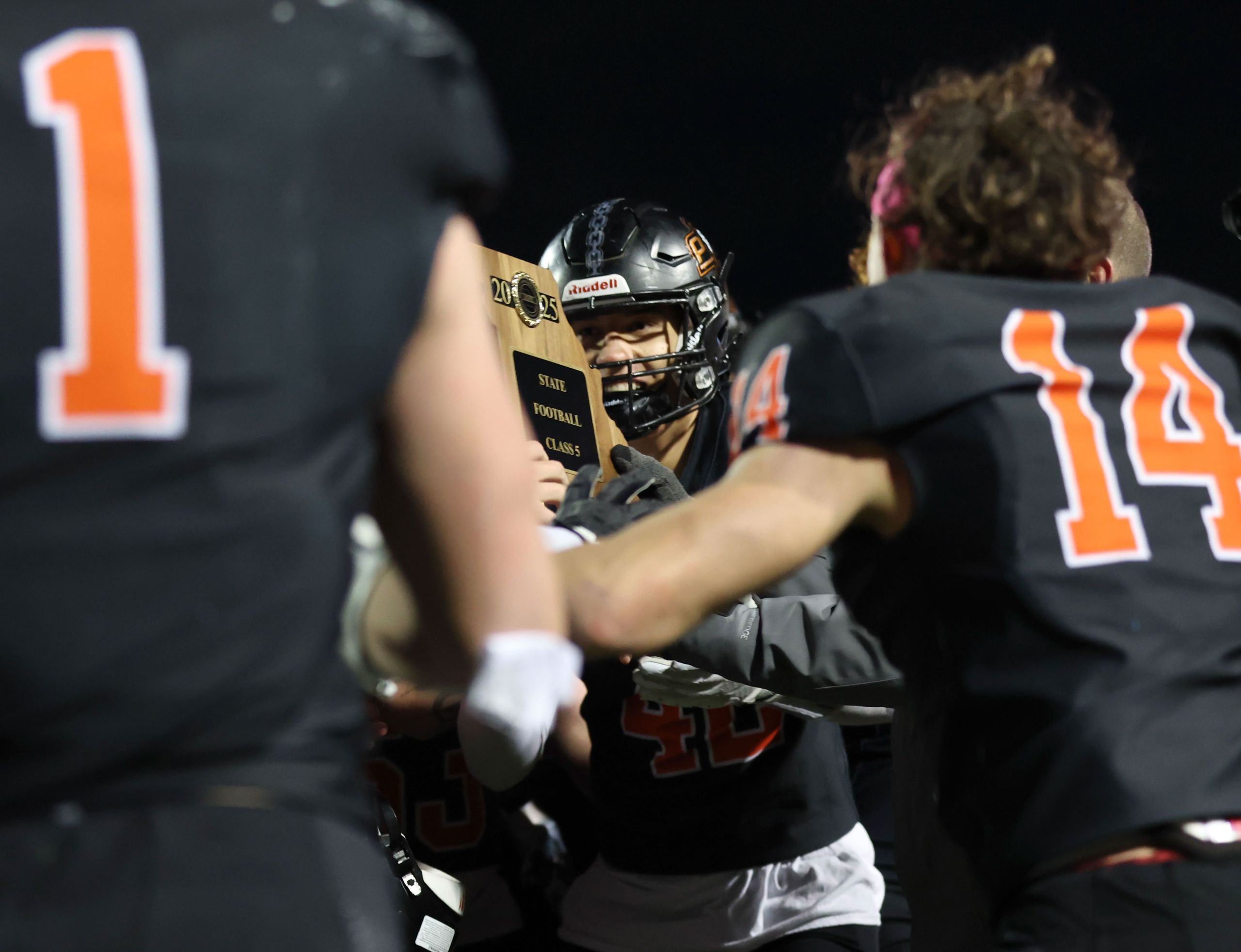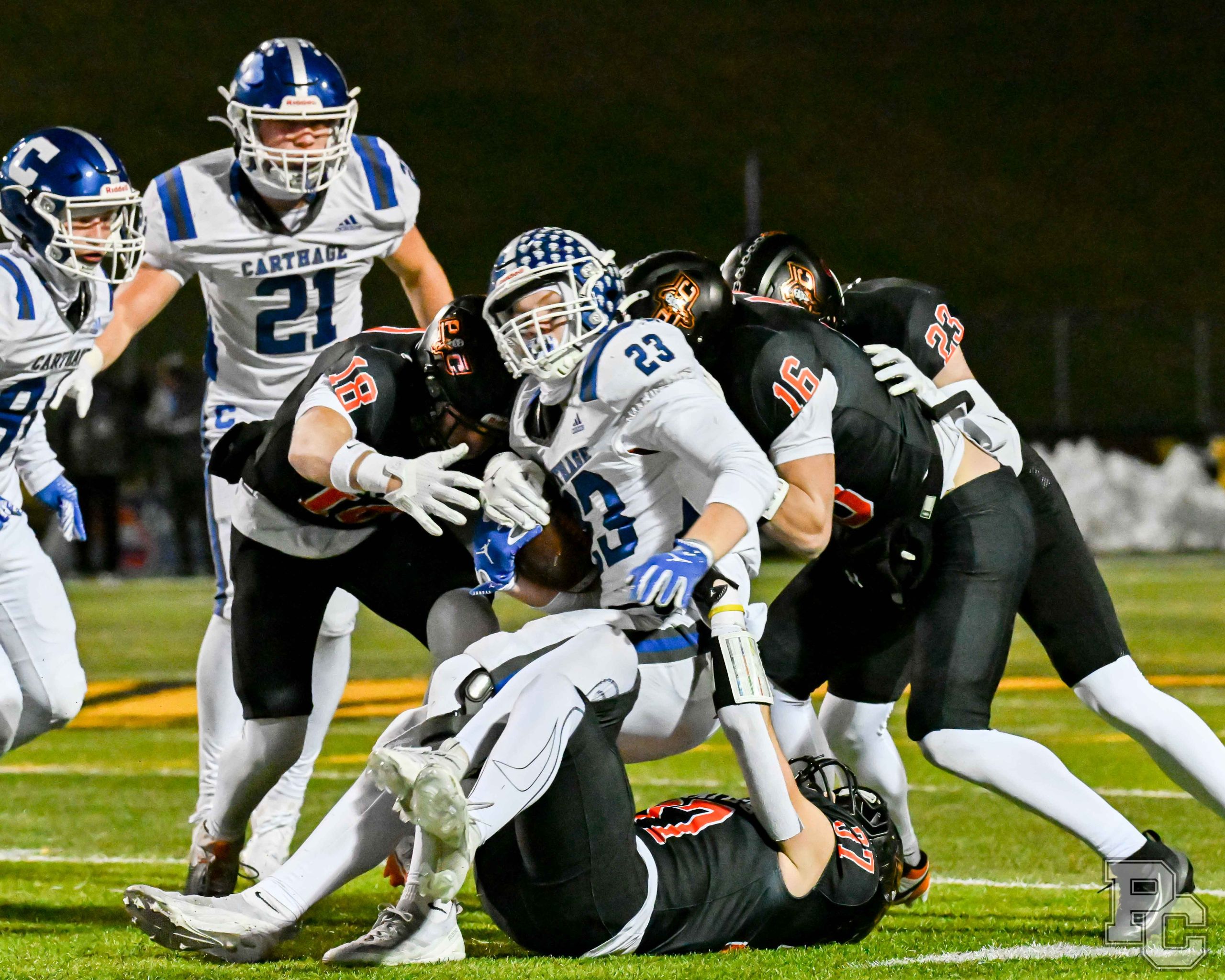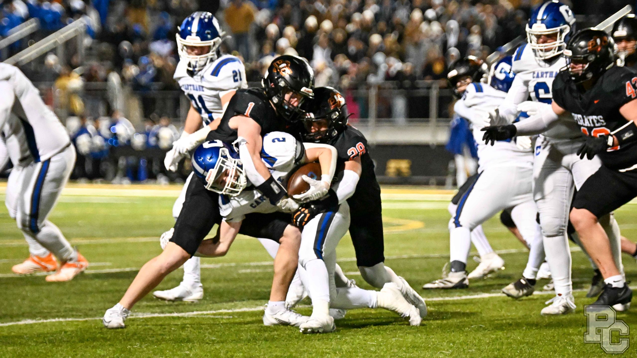 Platte County won a second straight state championship with a 34-28 victory in overtime against Carthage on Friday at Spratt Stadium on the campus of Missouri Western State University in St. Joseph.