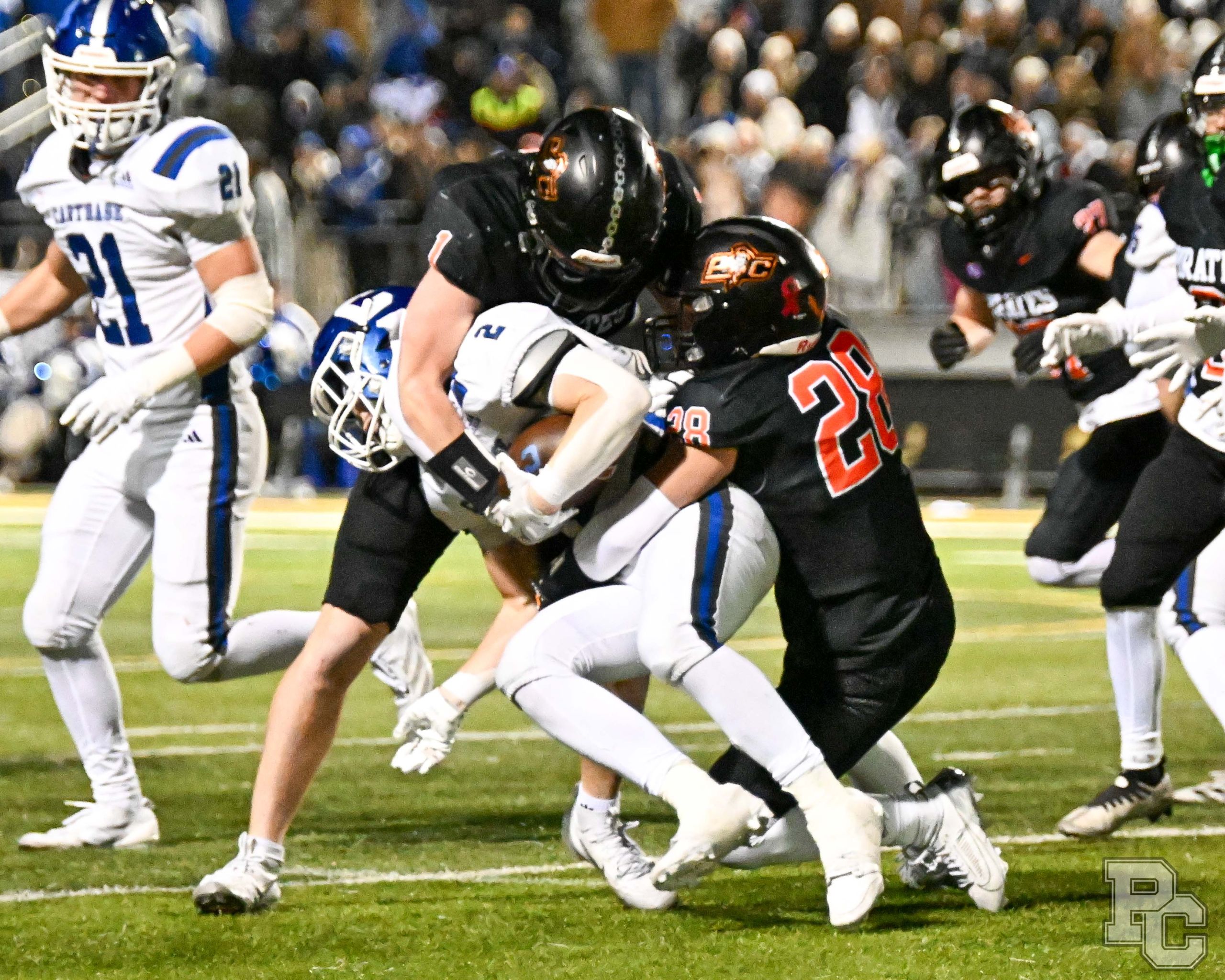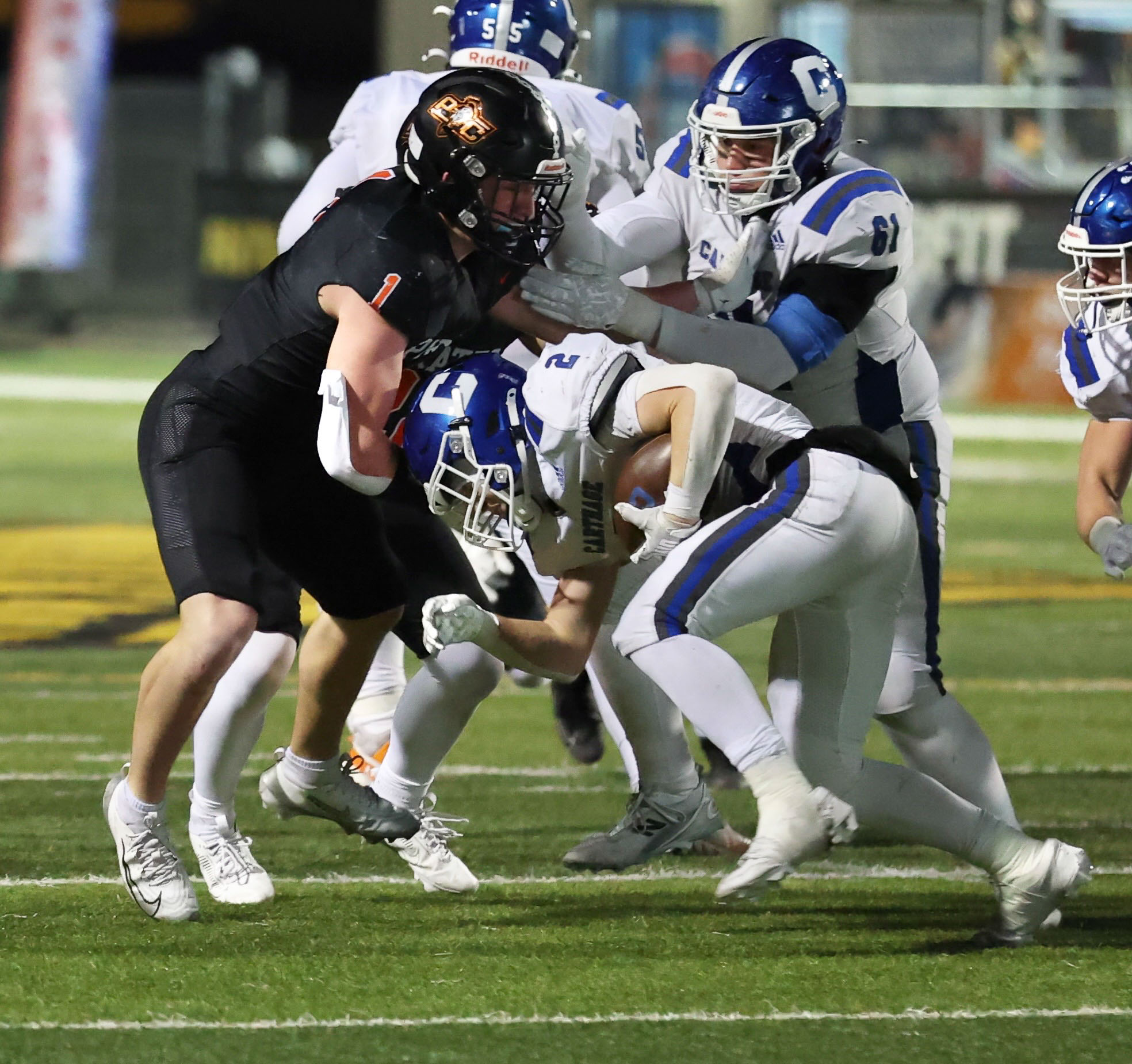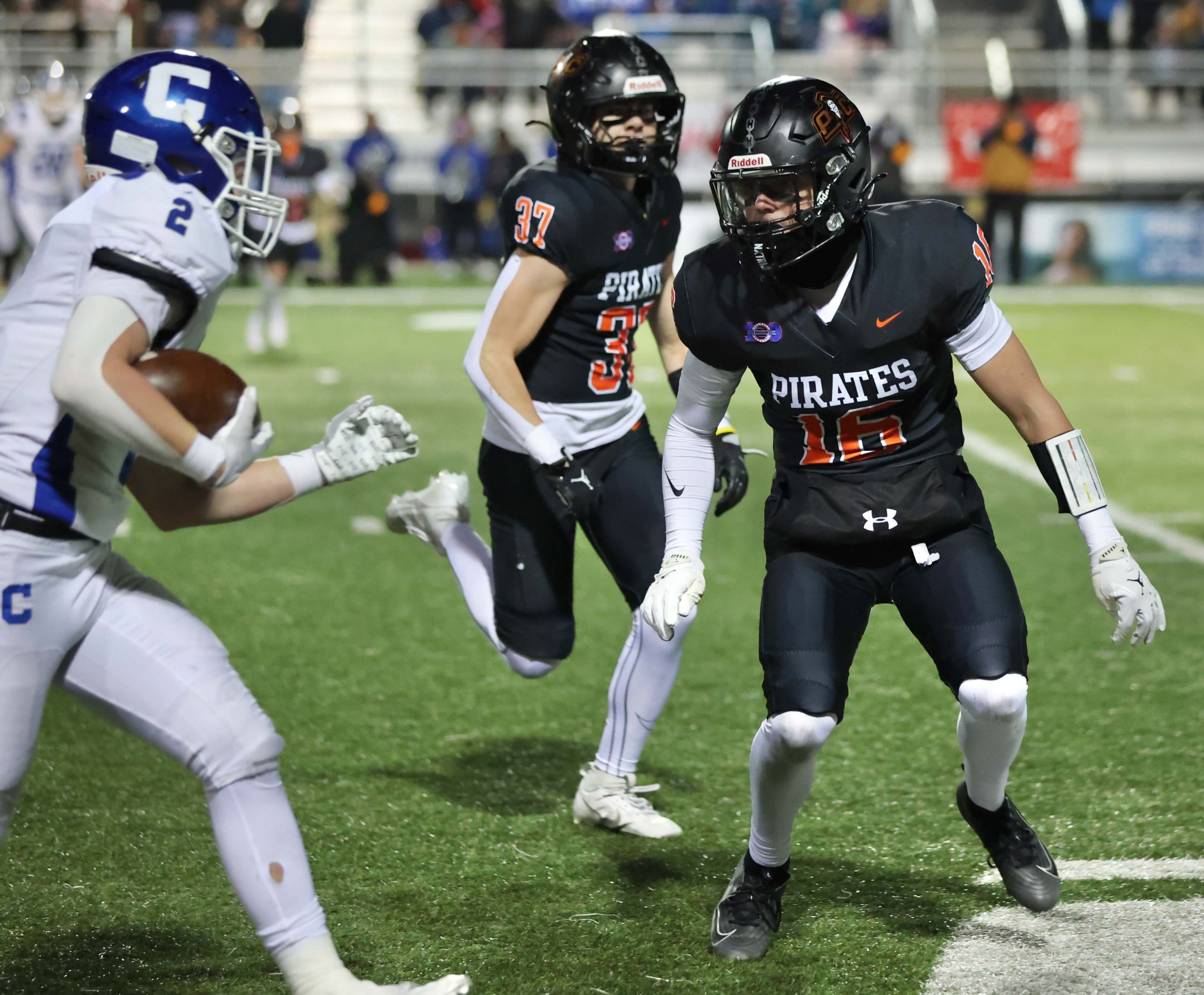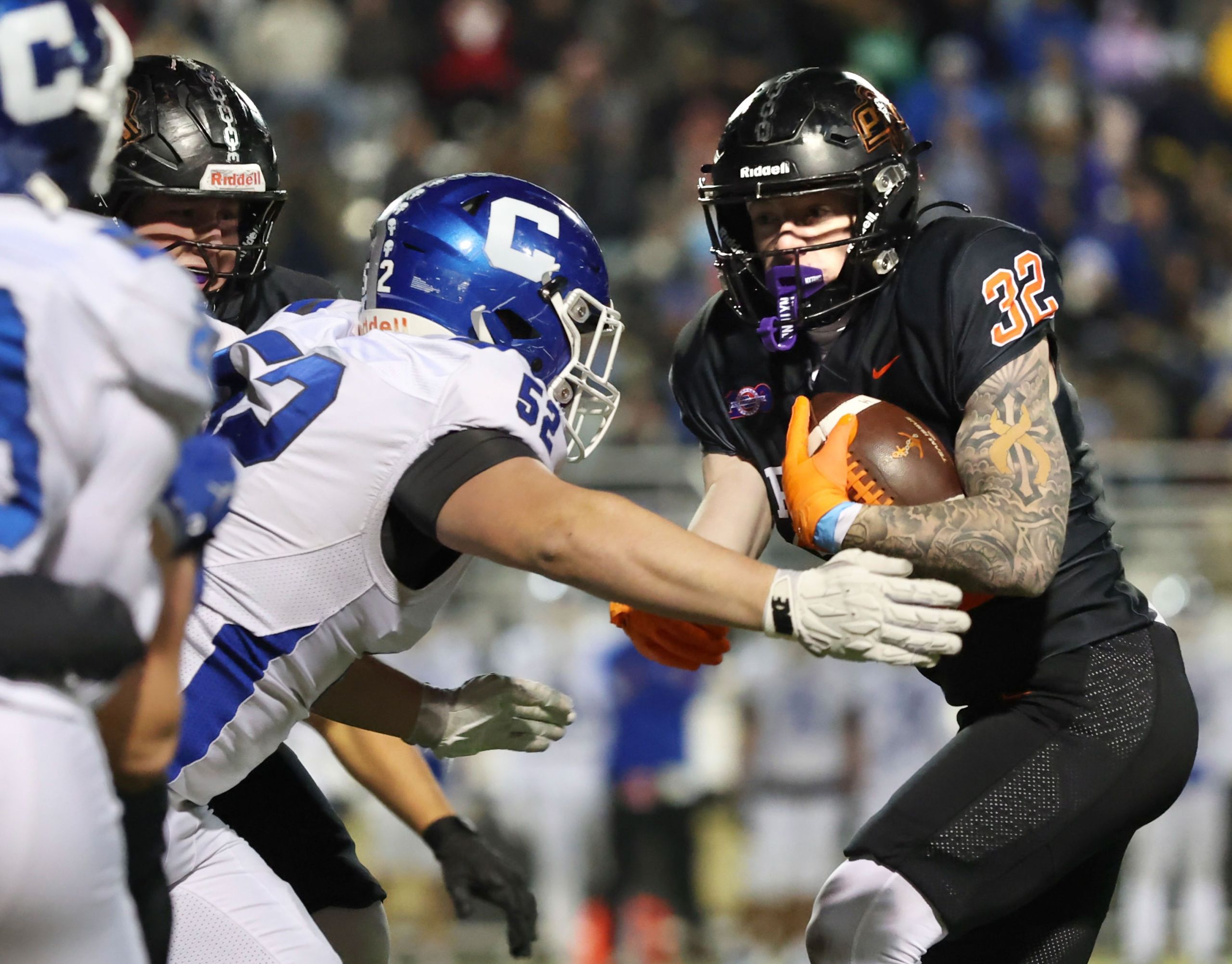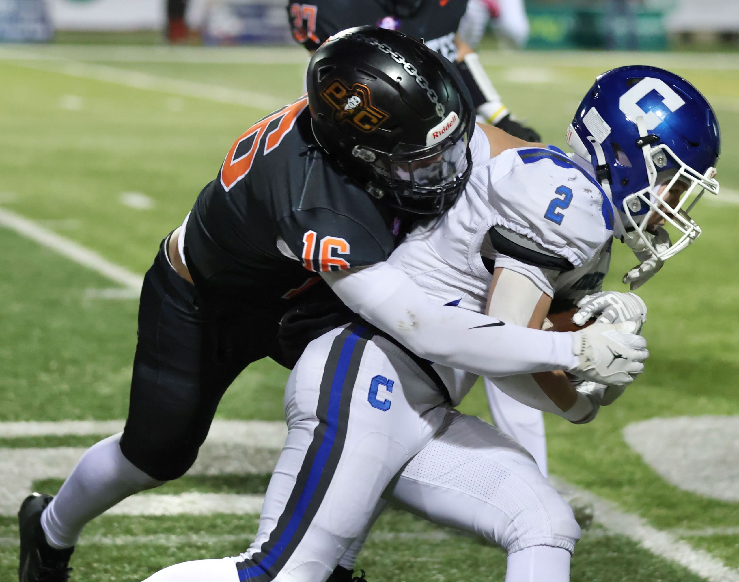 Platte County won a second straight state championship with a 34-28 victory in overtime against Carthage on Friday at Spratt Stadium on the campus of Missouri Western State University in St. Joseph.