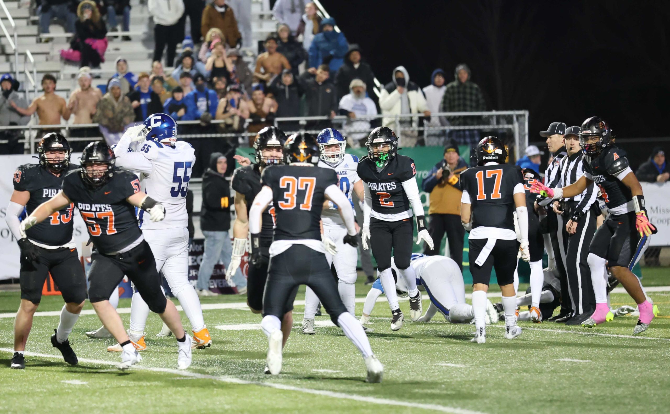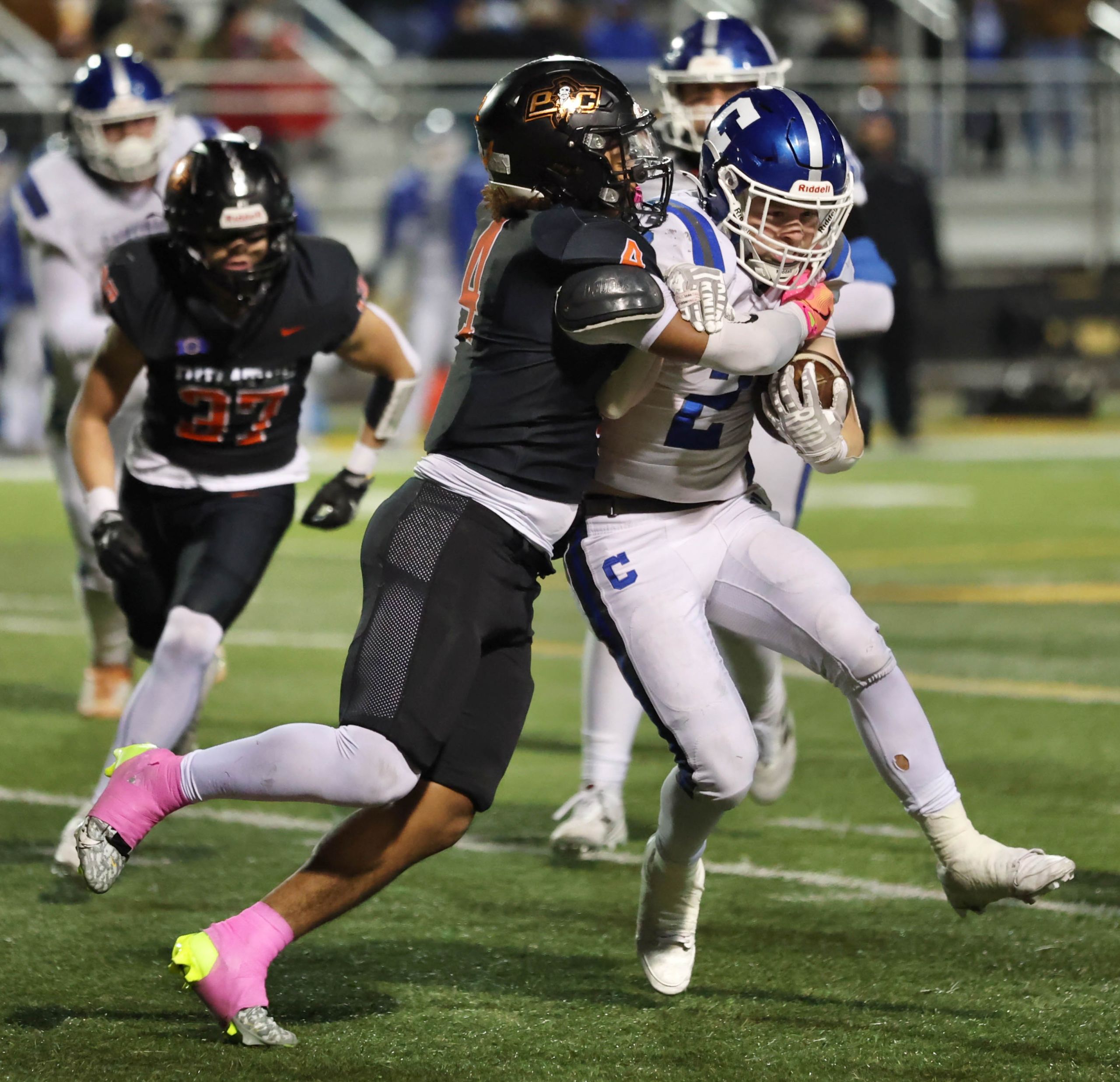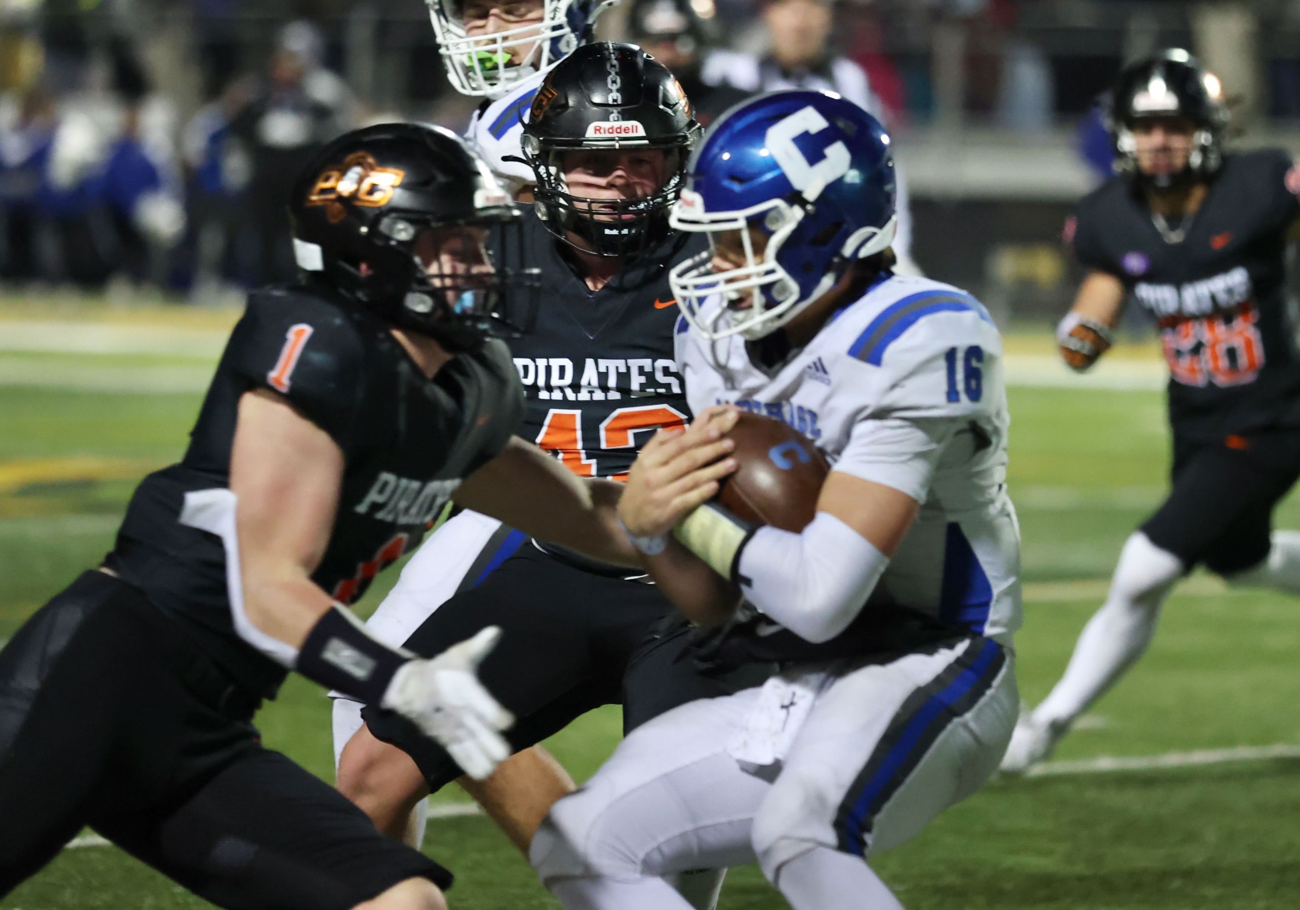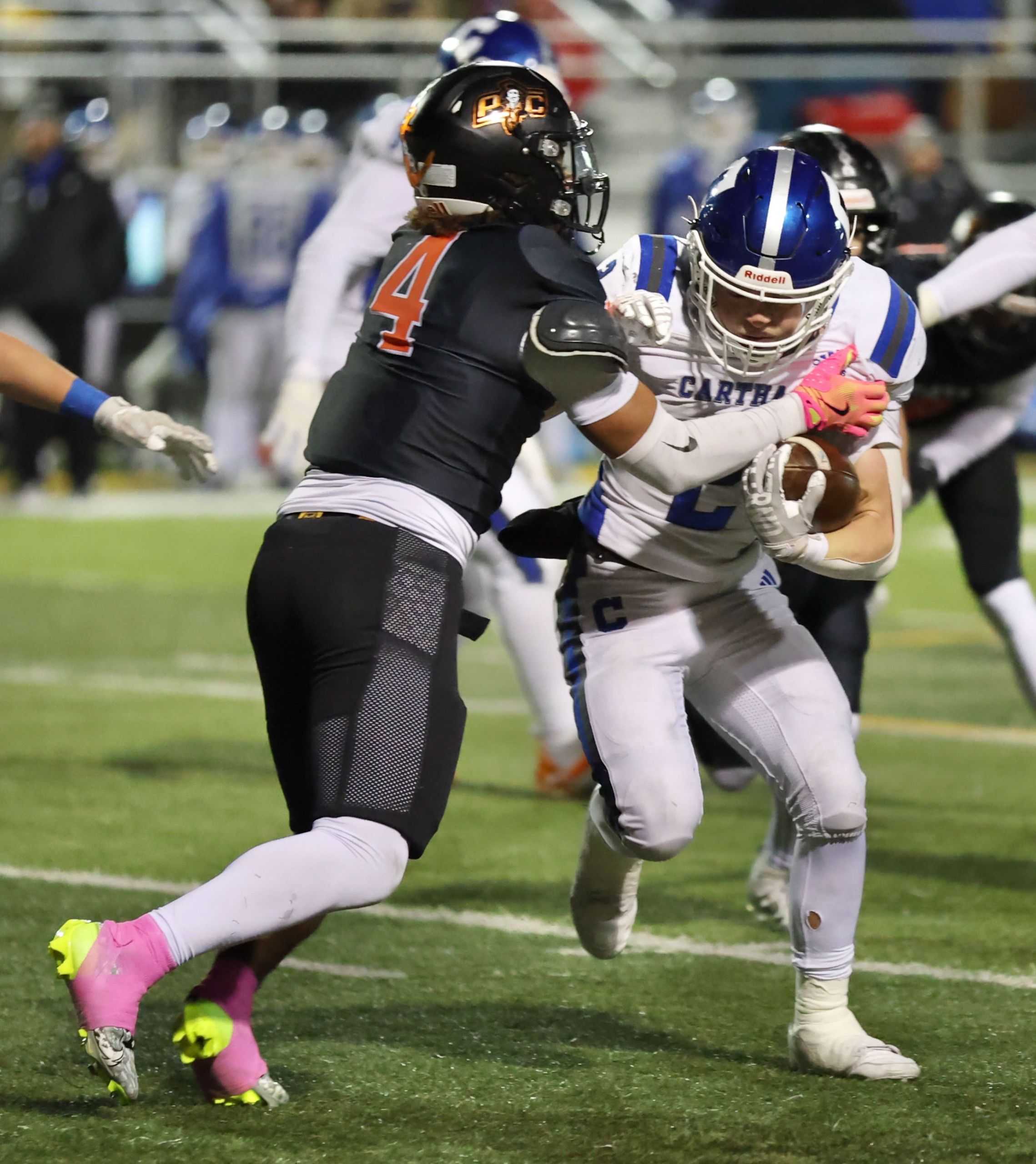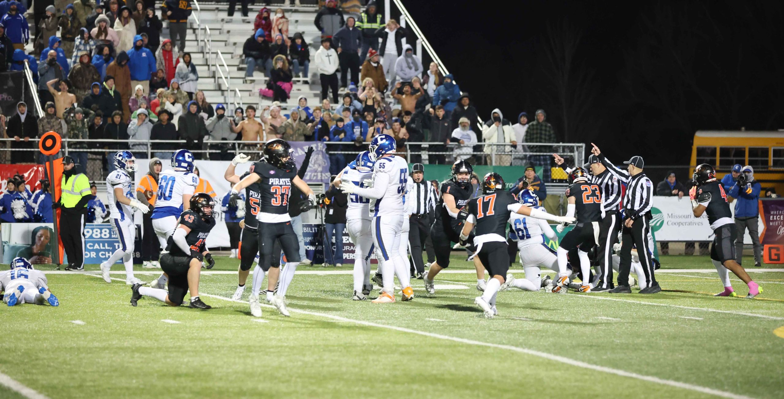 Platte County won a second straight state championship with a 34-28 victory in overtime against Carthage on Friday at Spratt Stadium on the campus of Missouri Western State University in St. Joseph.