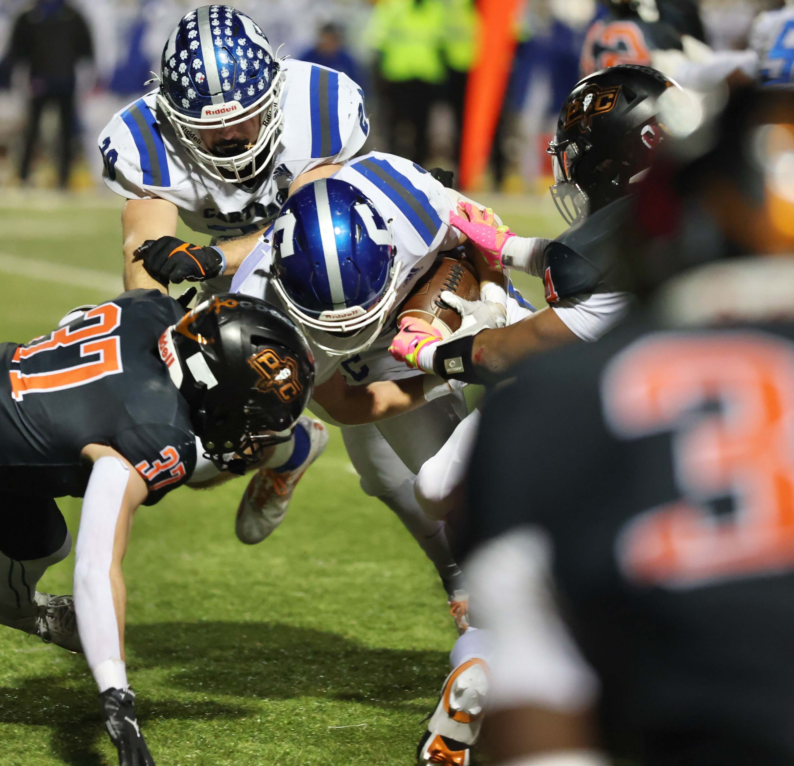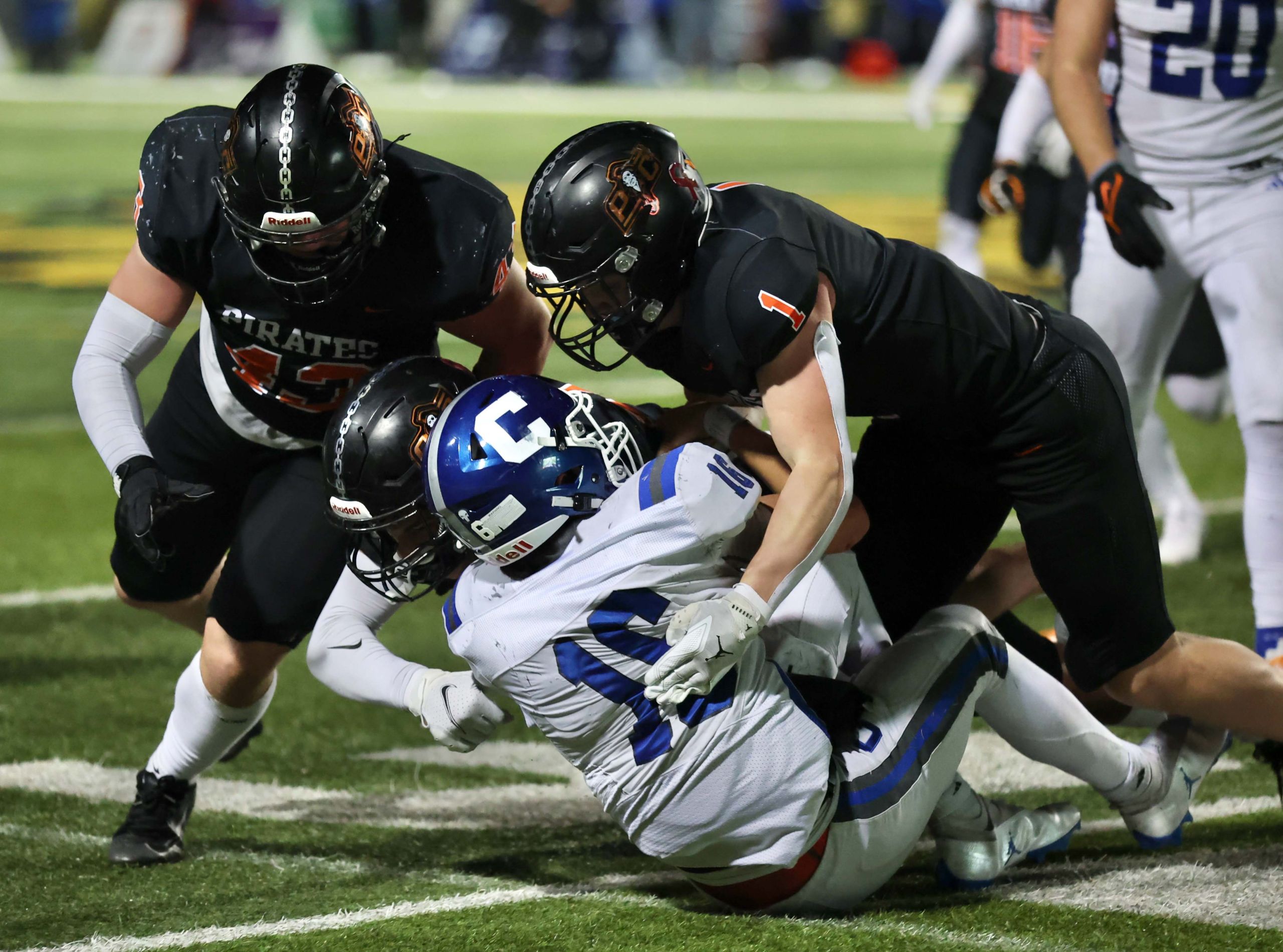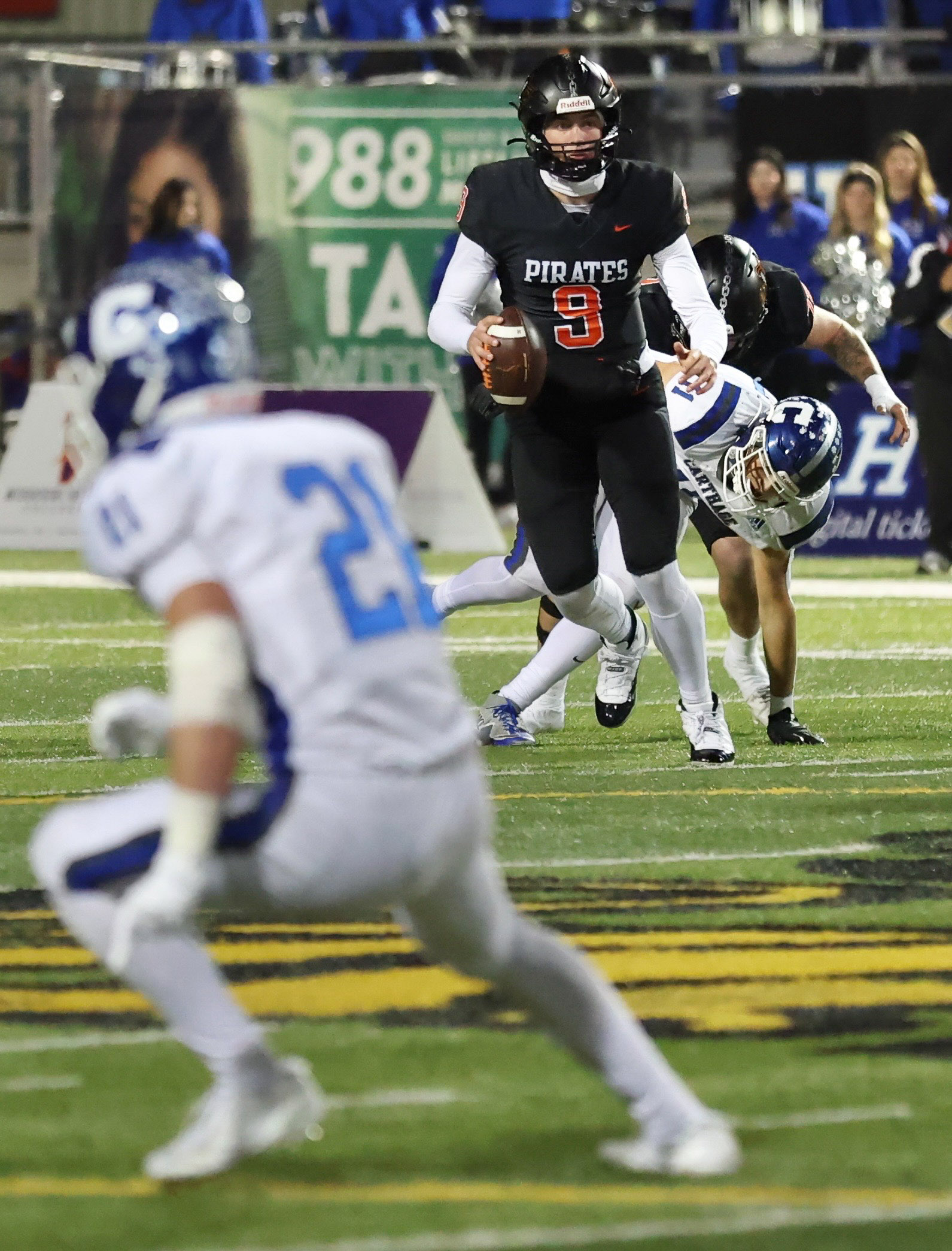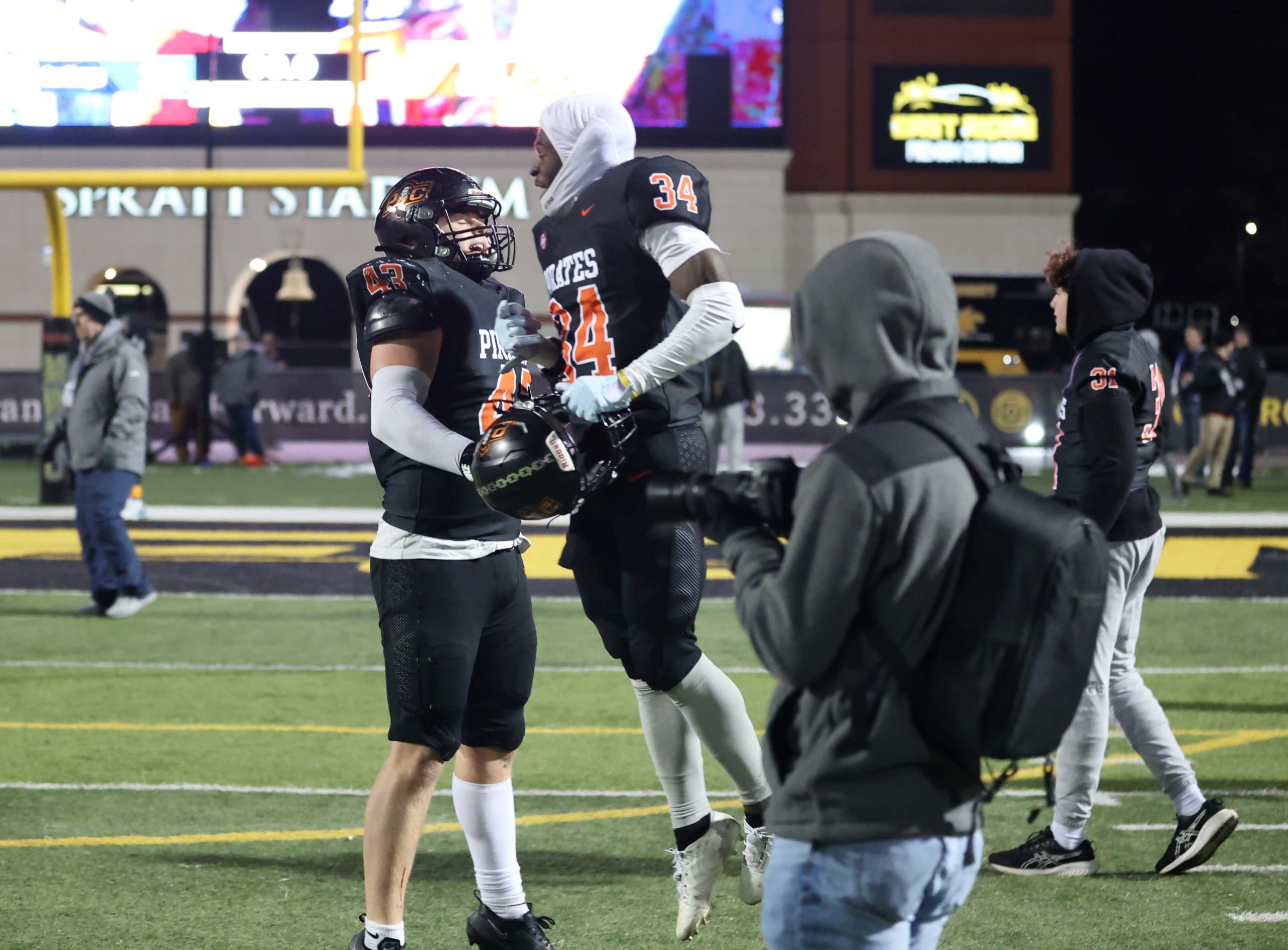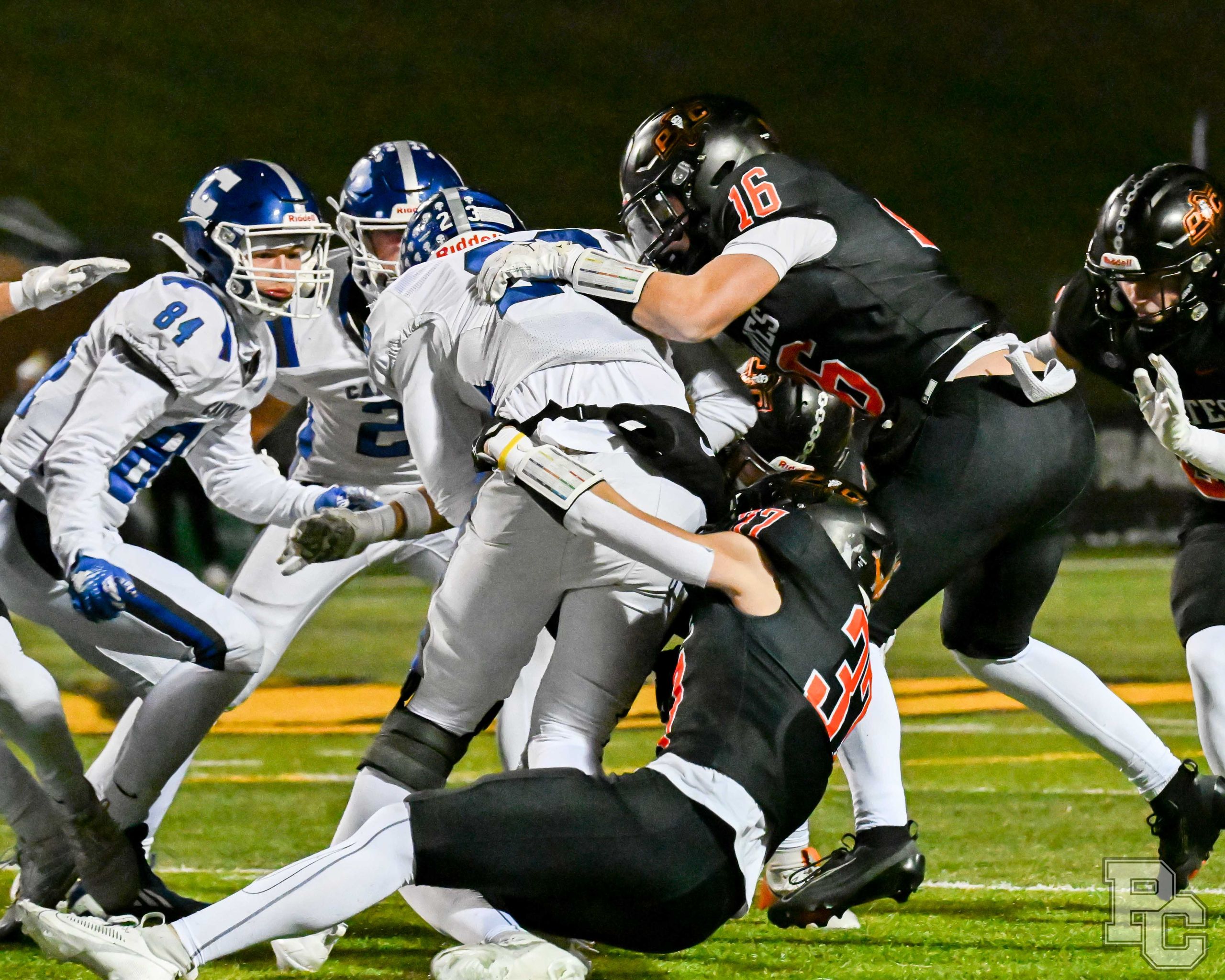 Platte County won a second straight state championship with a 34-28 victory in overtime against Carthage on Friday at Spratt Stadium on the campus of Missouri Western State University in St. Joseph.