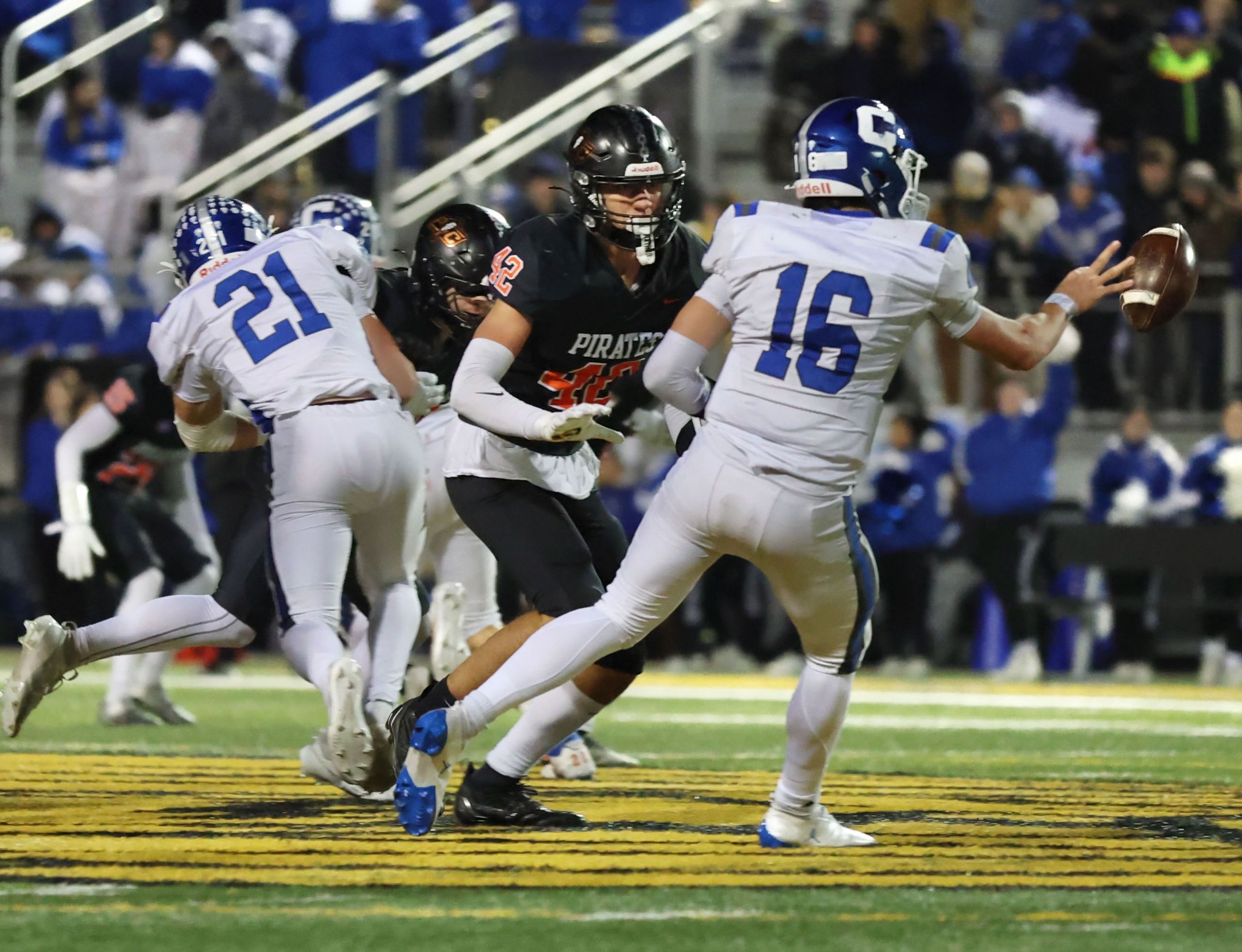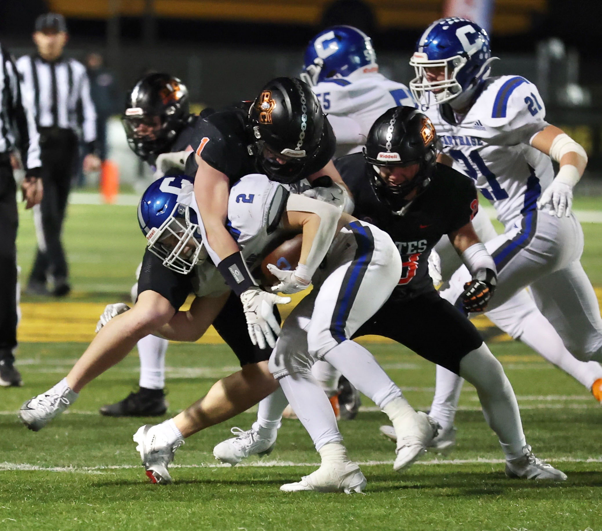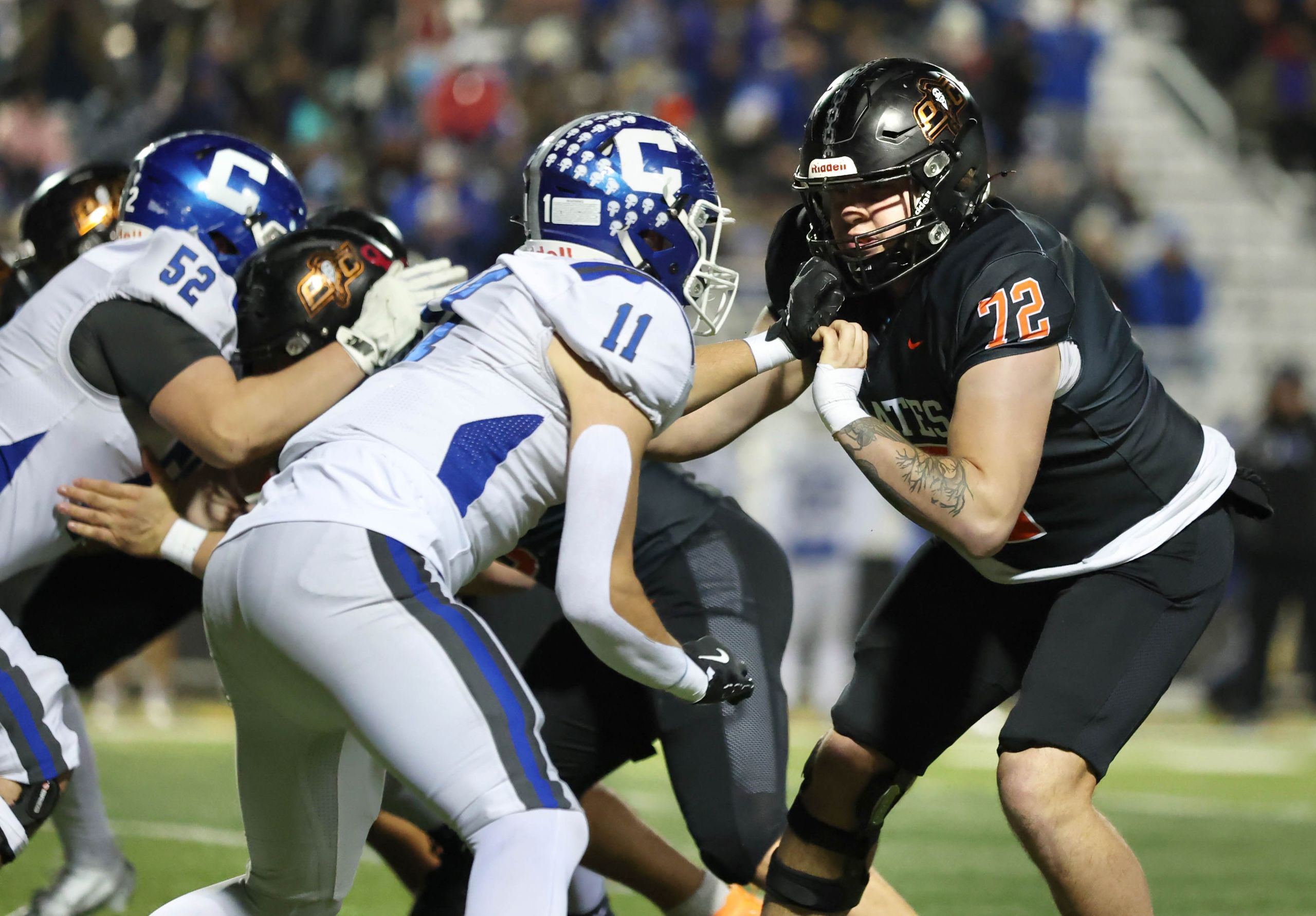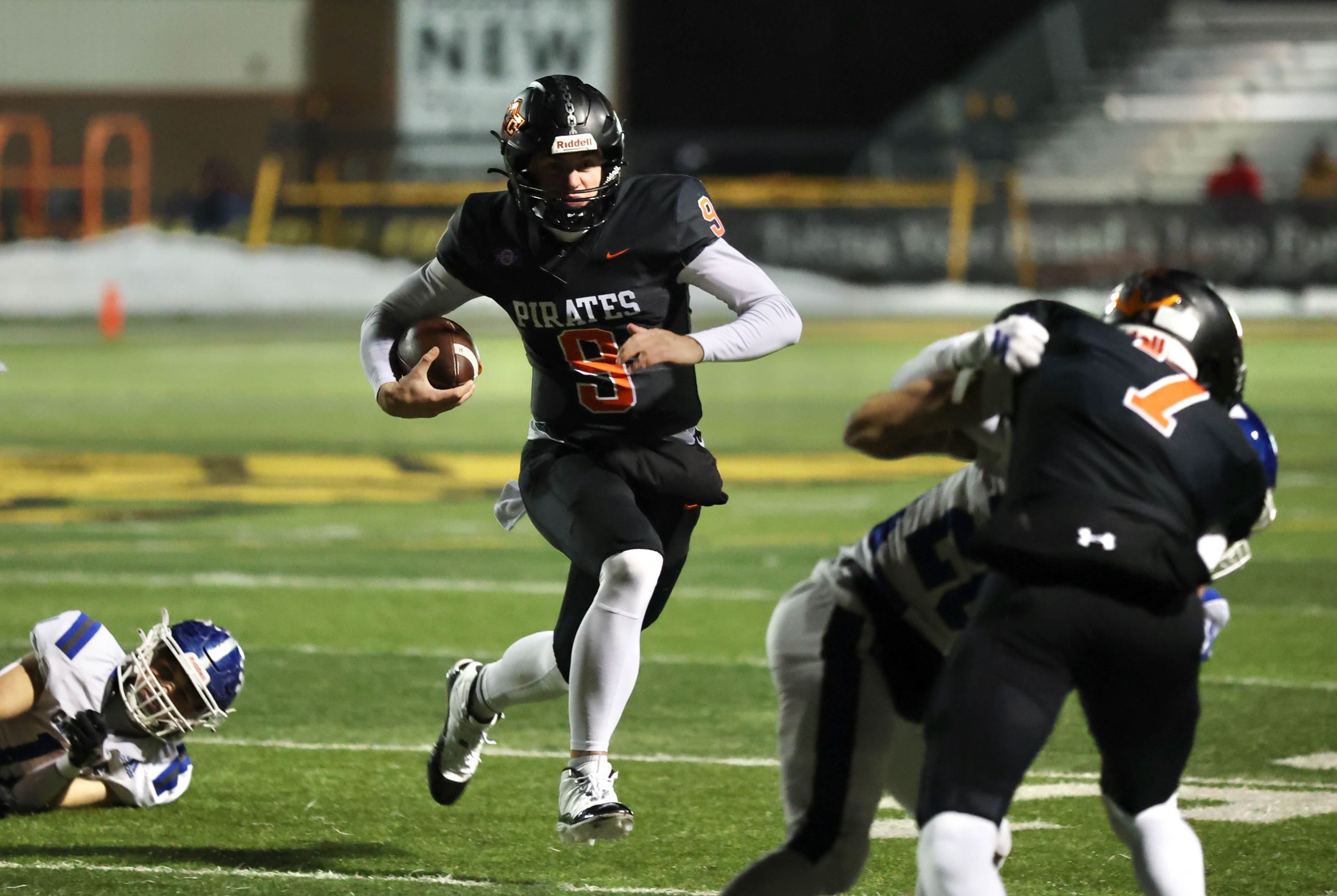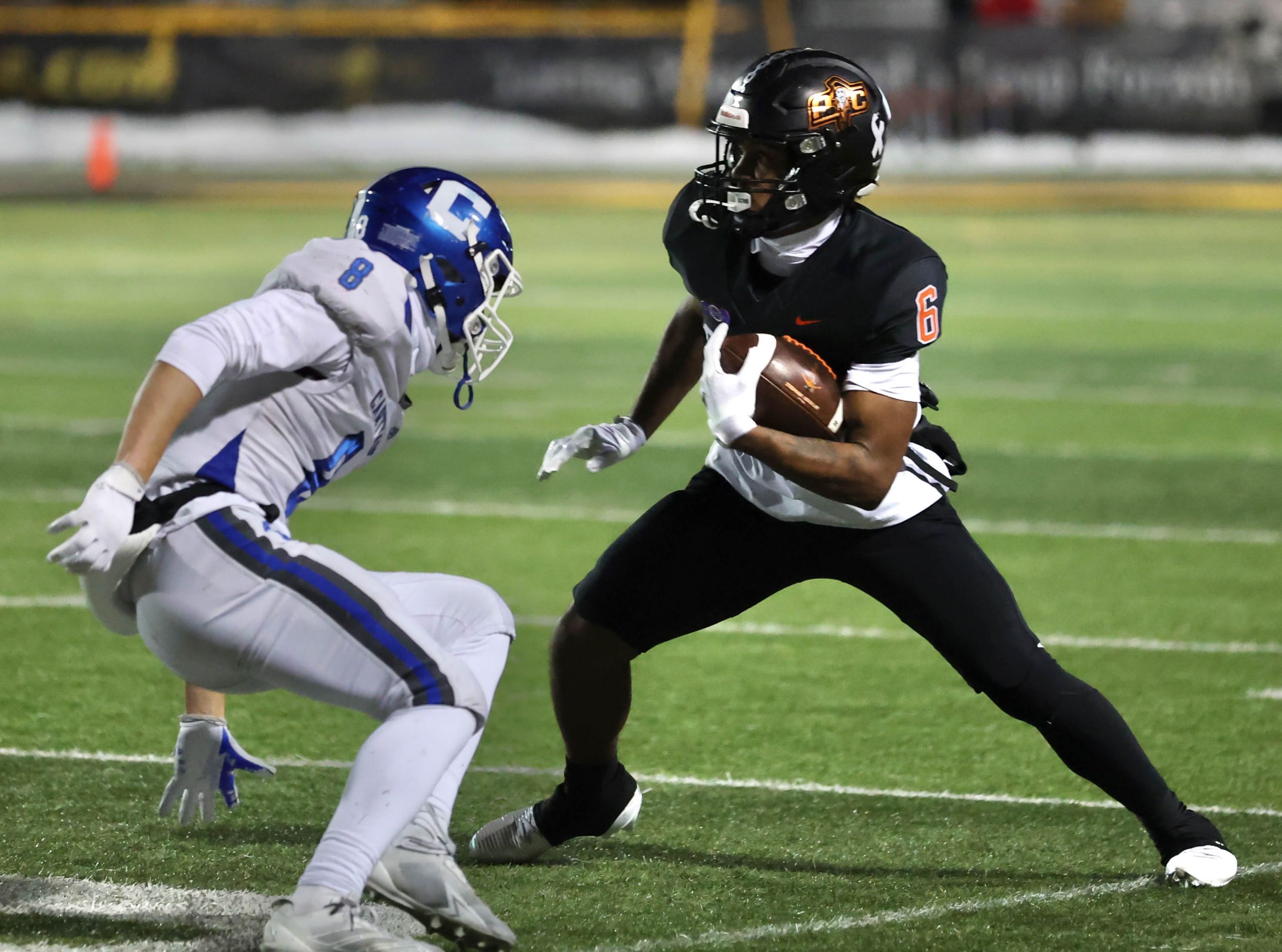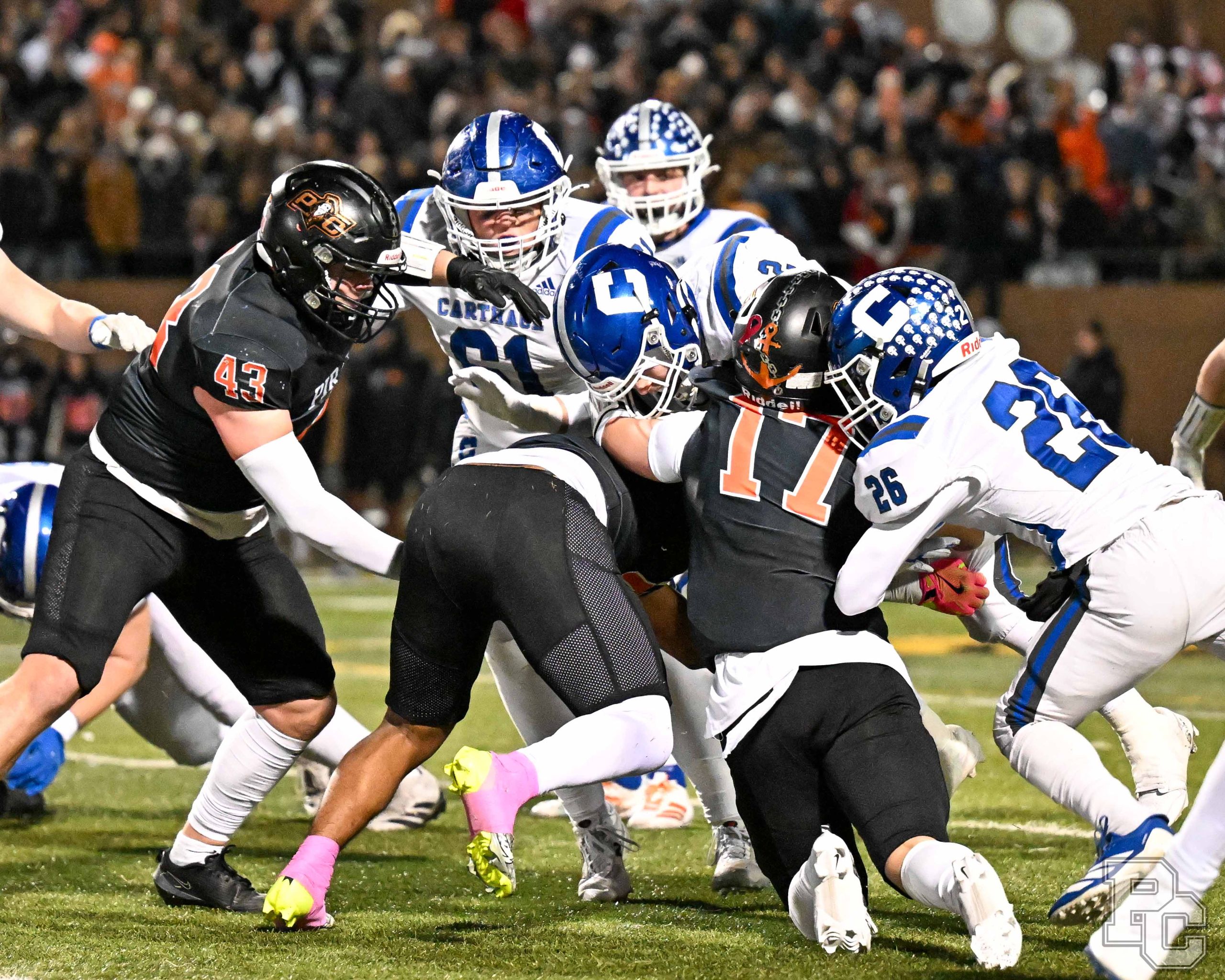 Platte County won a second straight state championship with a 34-28 victory in overtime against Carthage on Friday at Spratt Stadium on the campus of Missouri Western State University in St. Joseph.