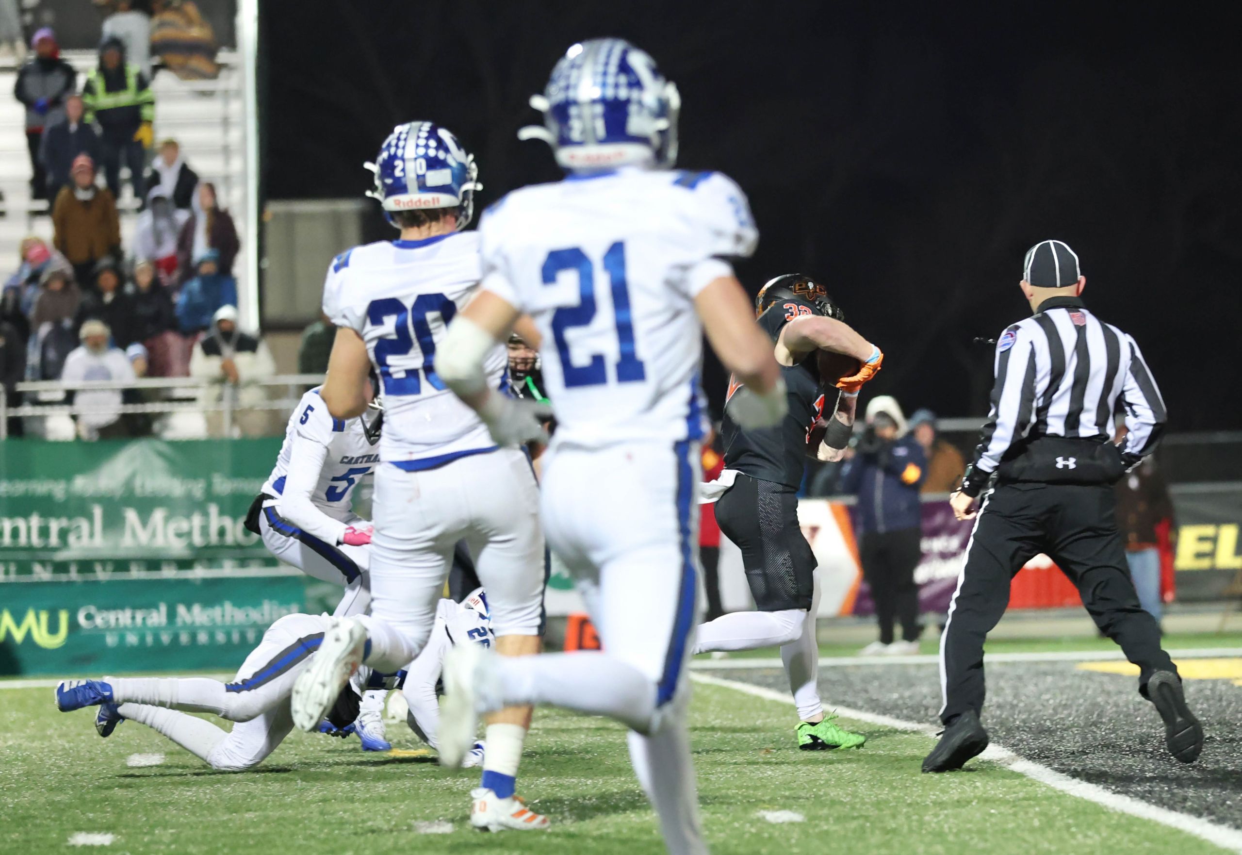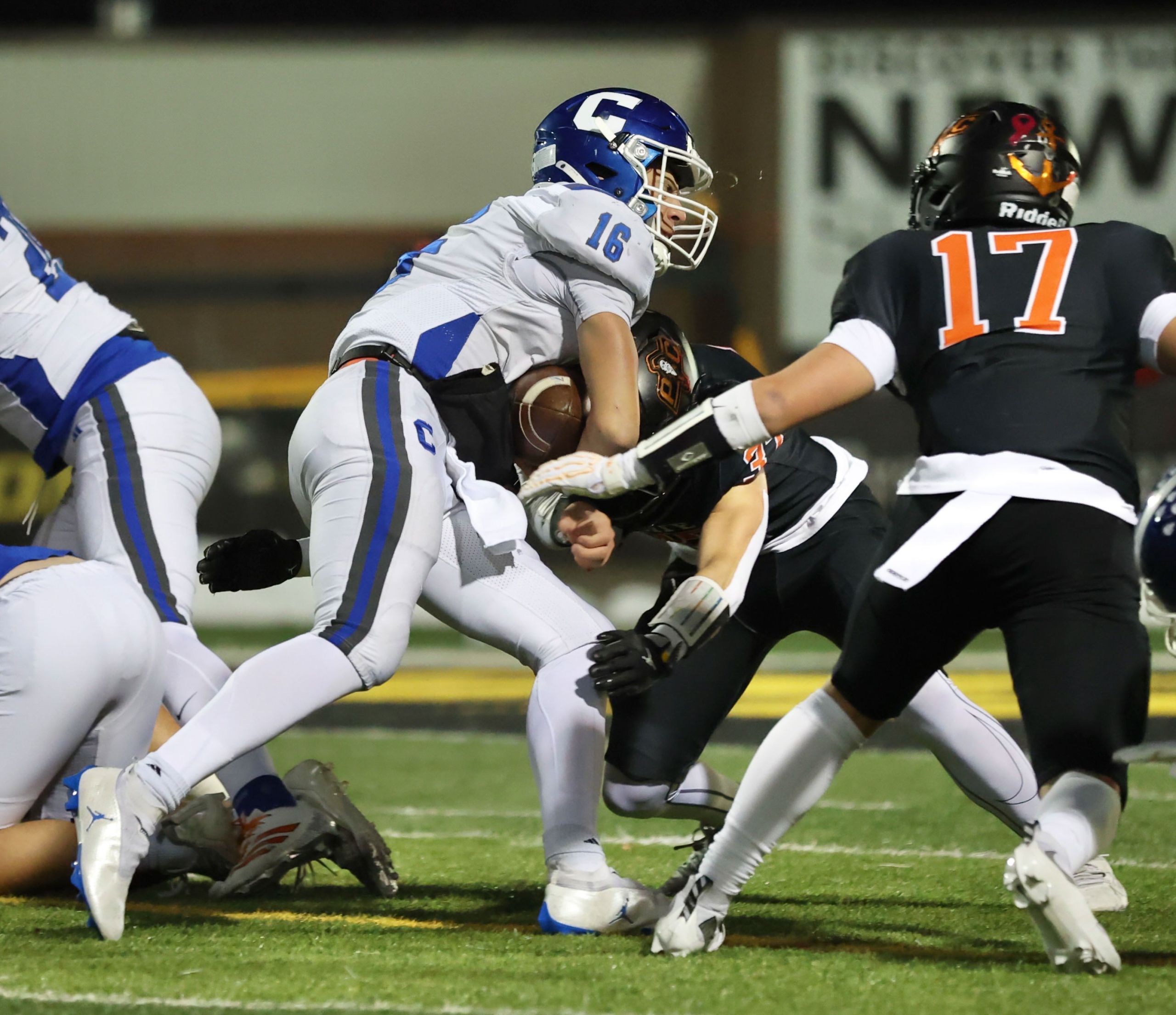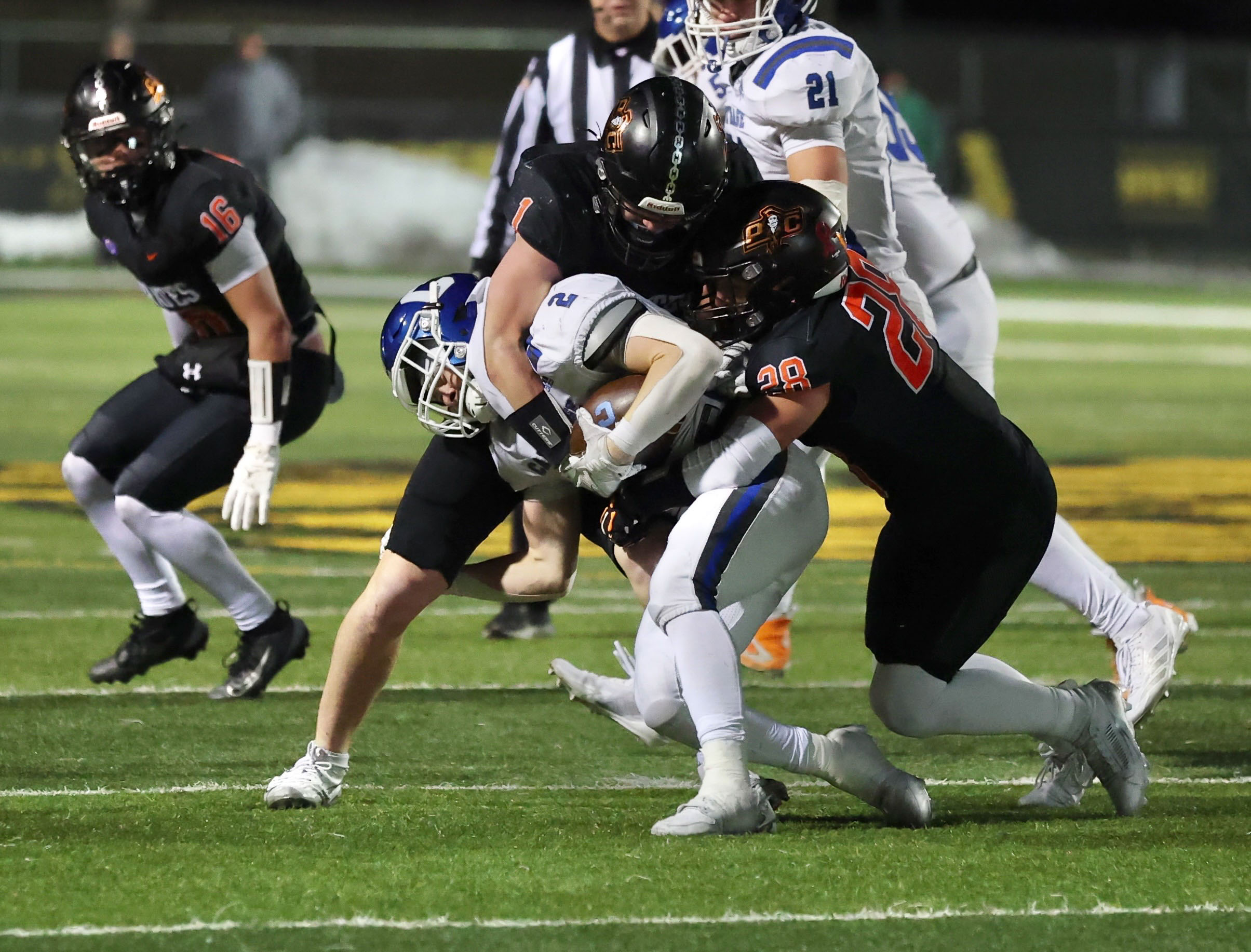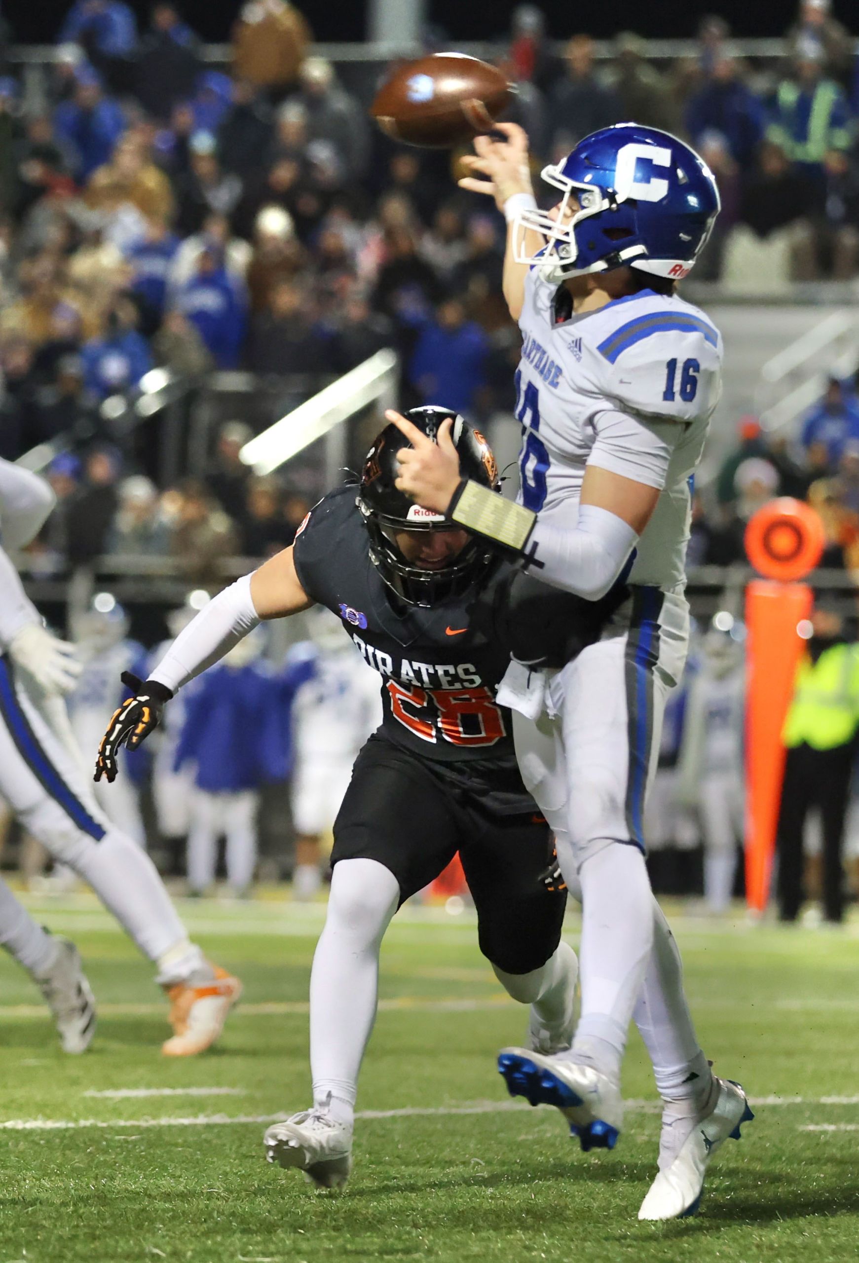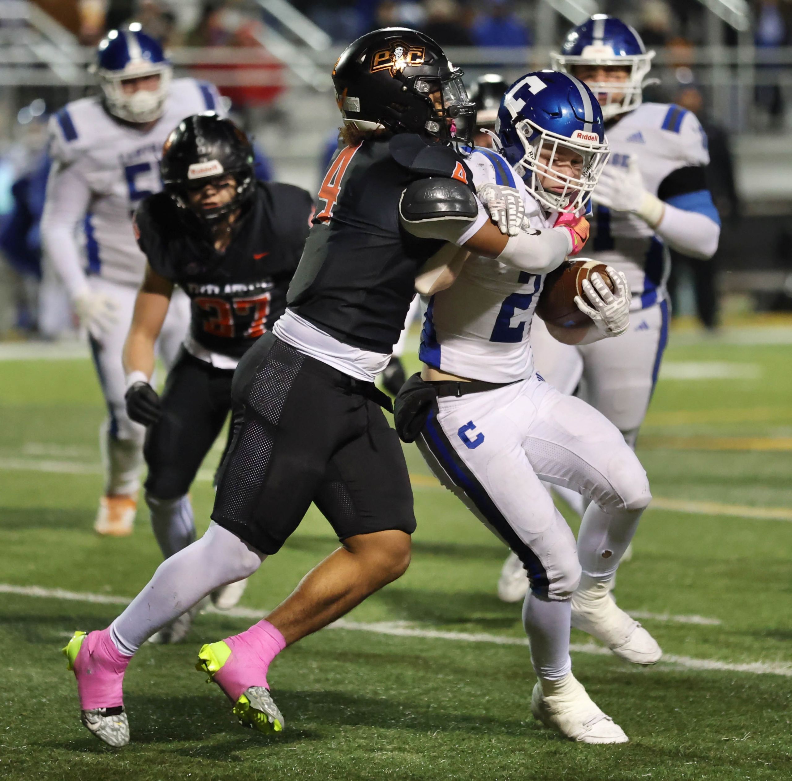Platte County won a second straight state championship with a 34-28 victory in overtime against Carthage on Friday at Spratt Stadium on the campus of Missouri Western State University in St. Joseph.