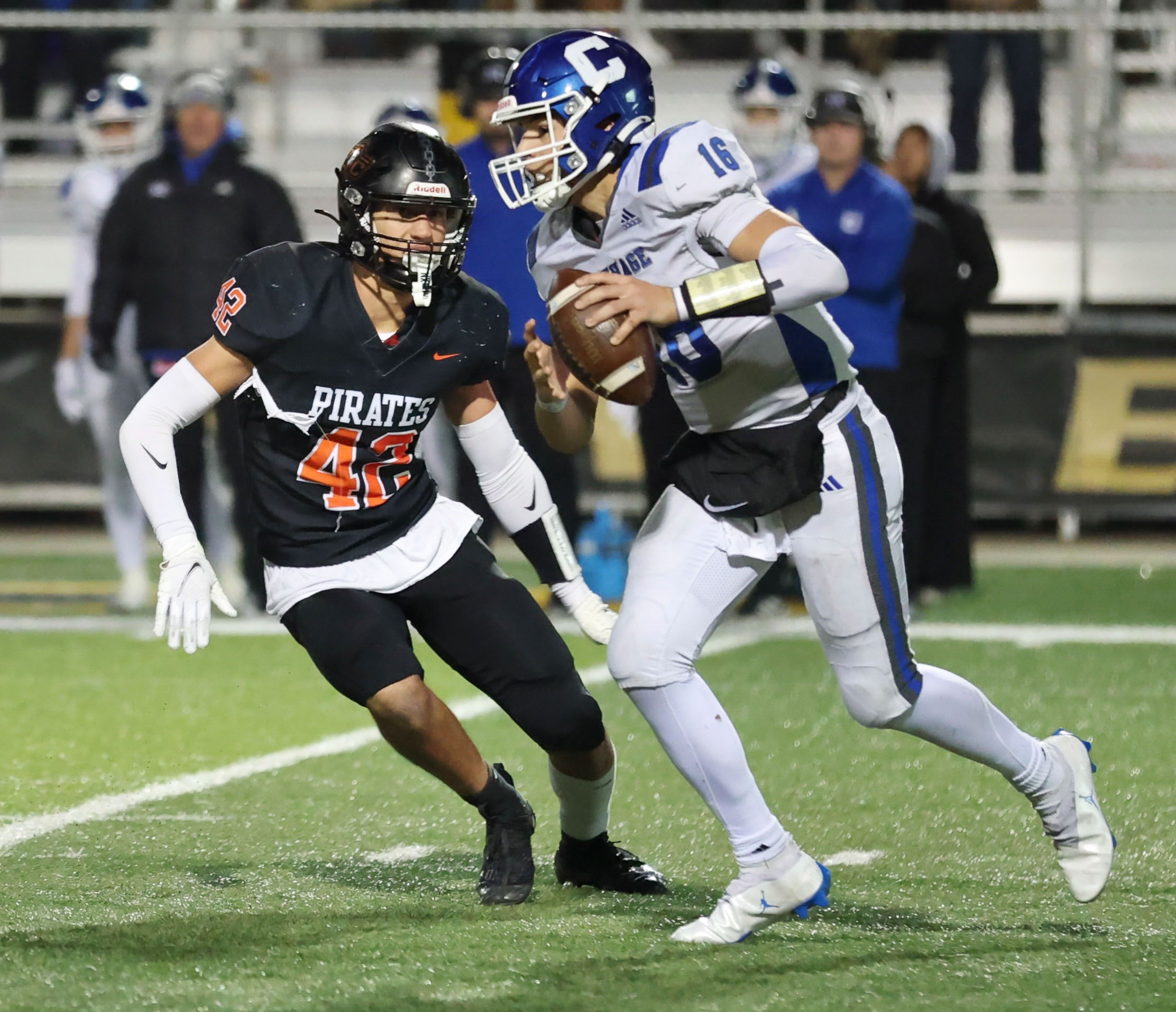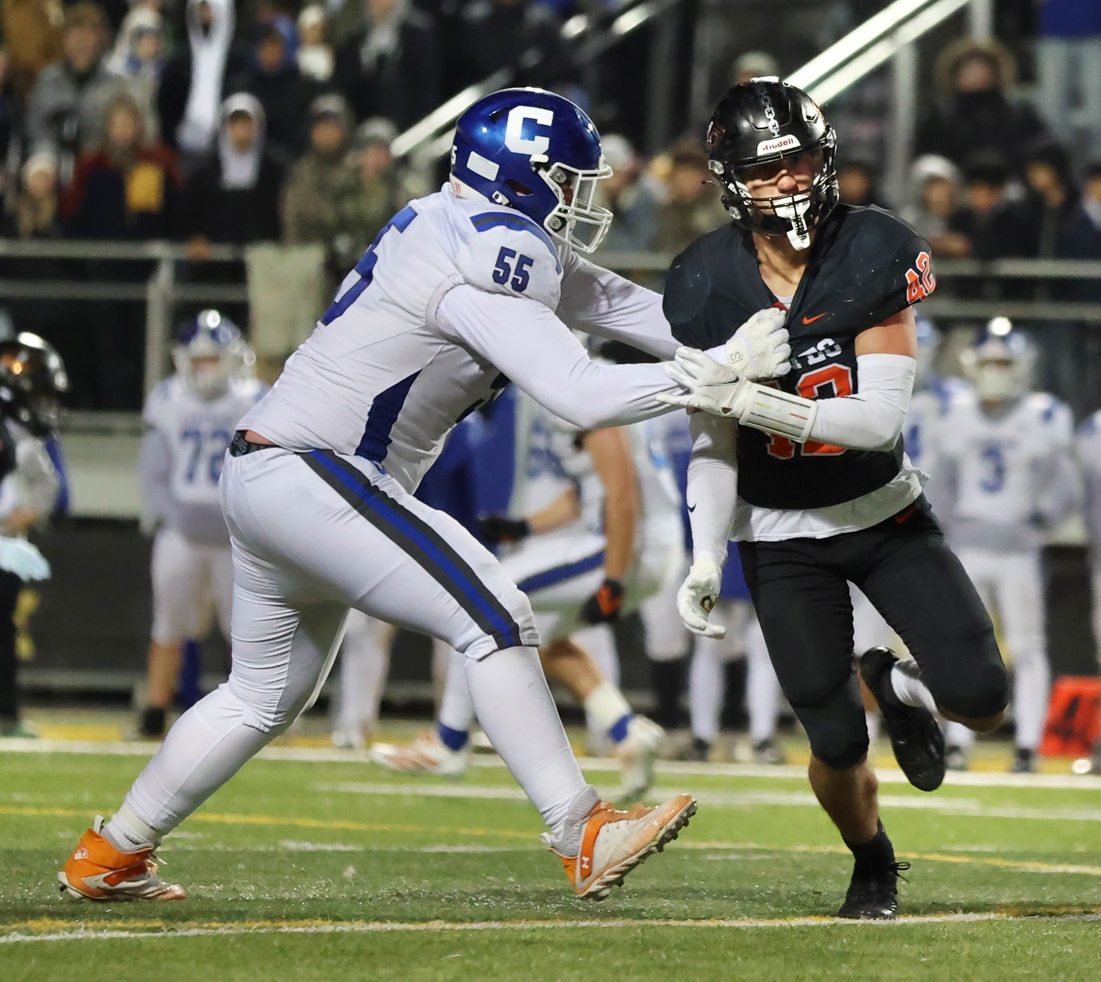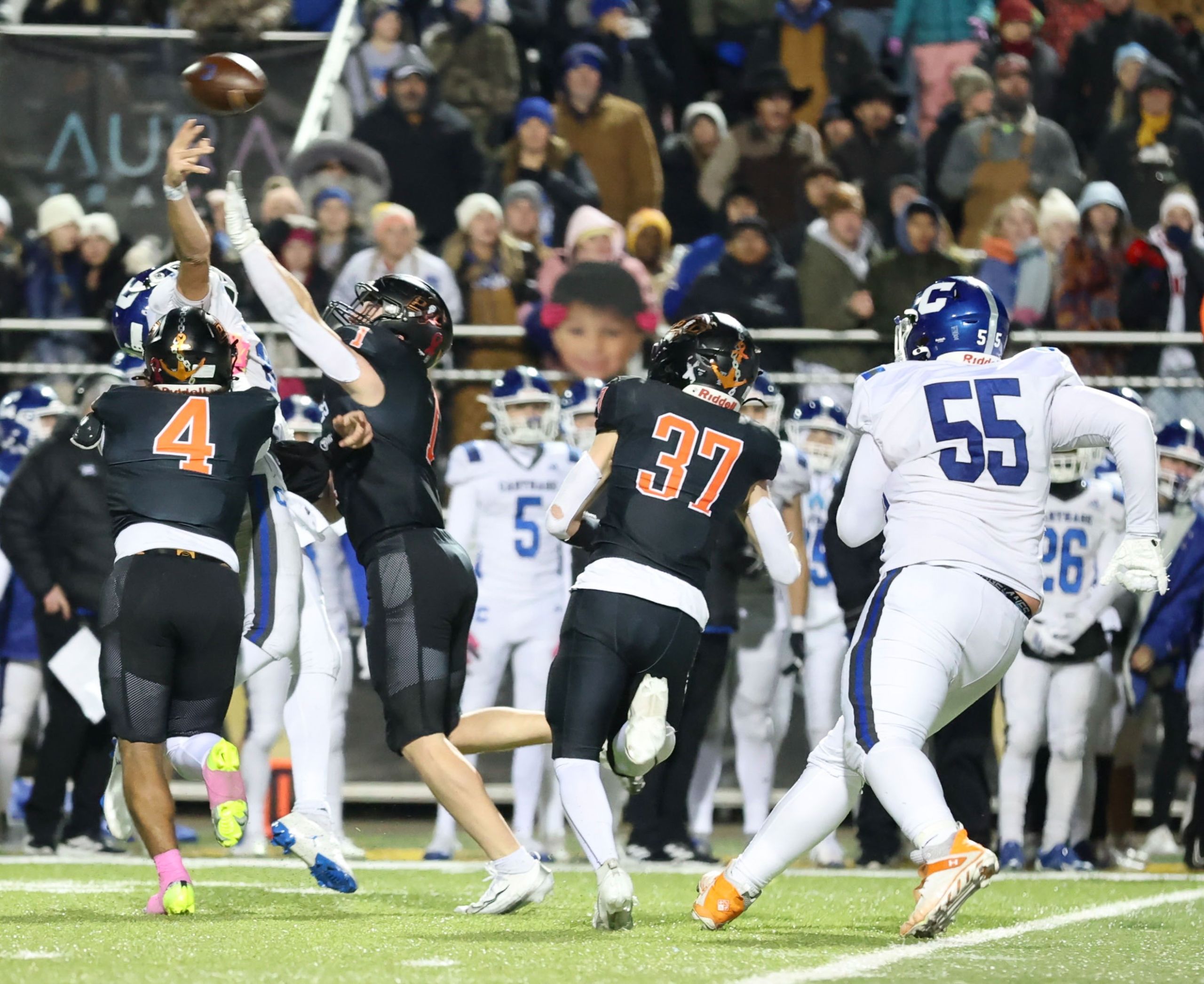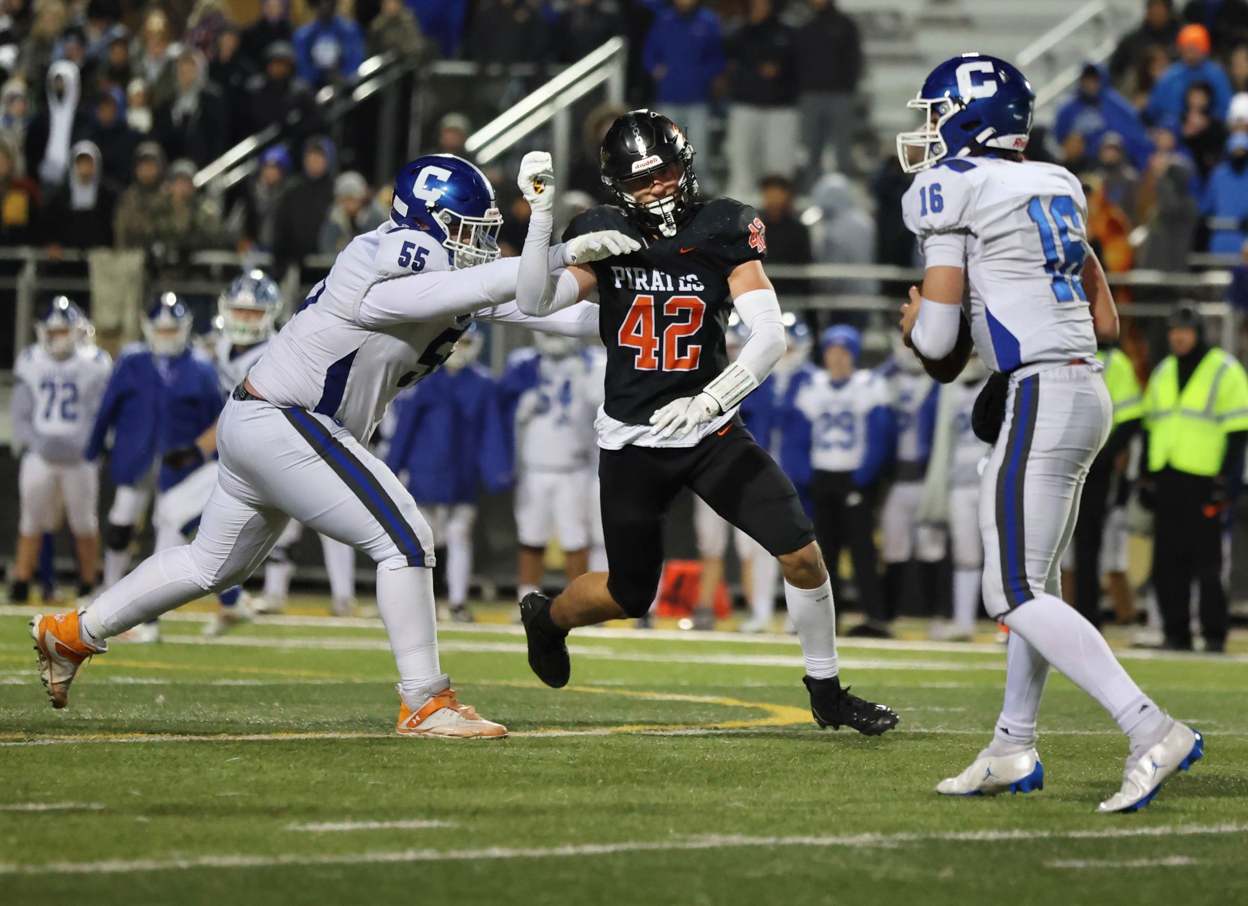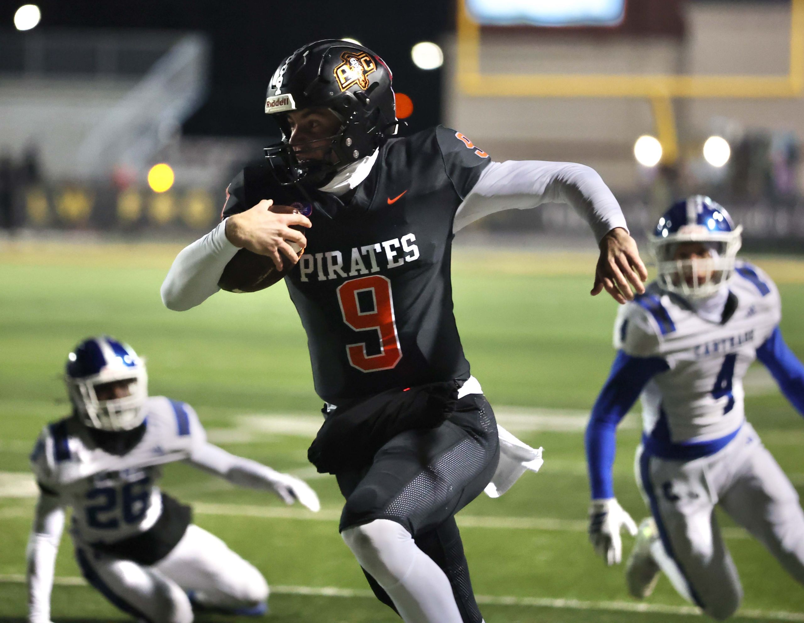Platte County won a second straight state championship with a 34-28 victory in overtime against Carthage on Friday at Spratt Stadium on the campus of Missouri Western State University in St. Joseph.
