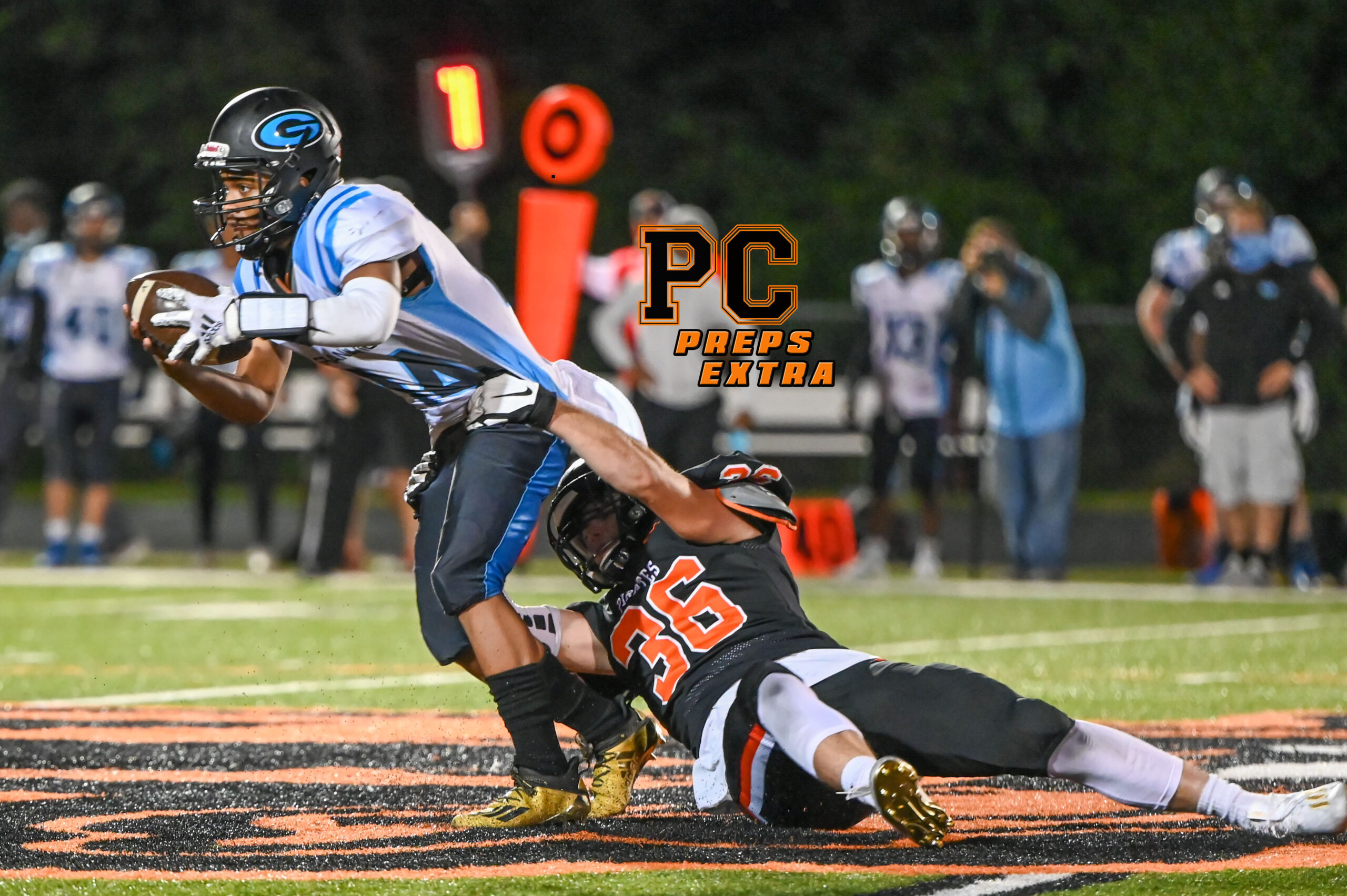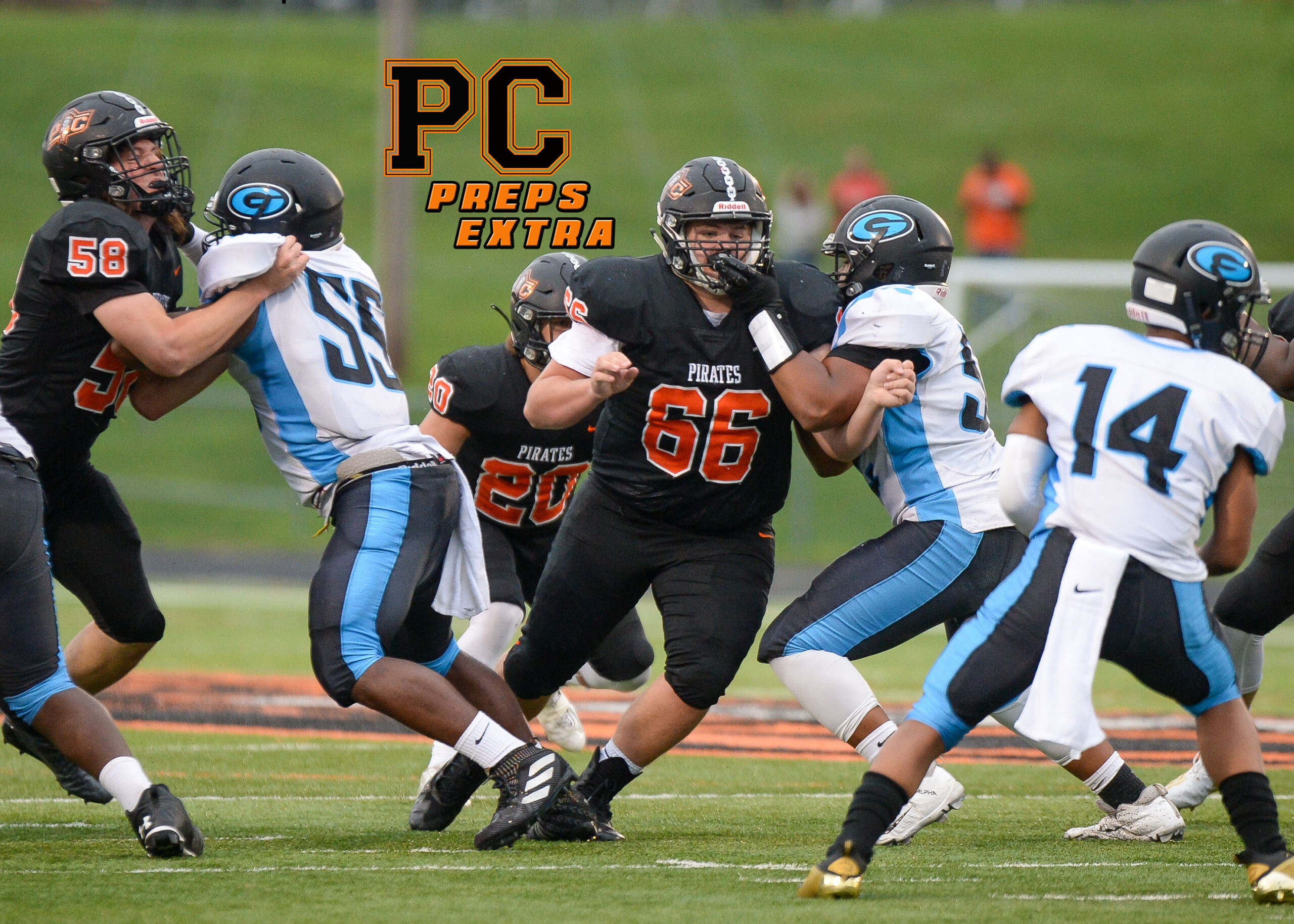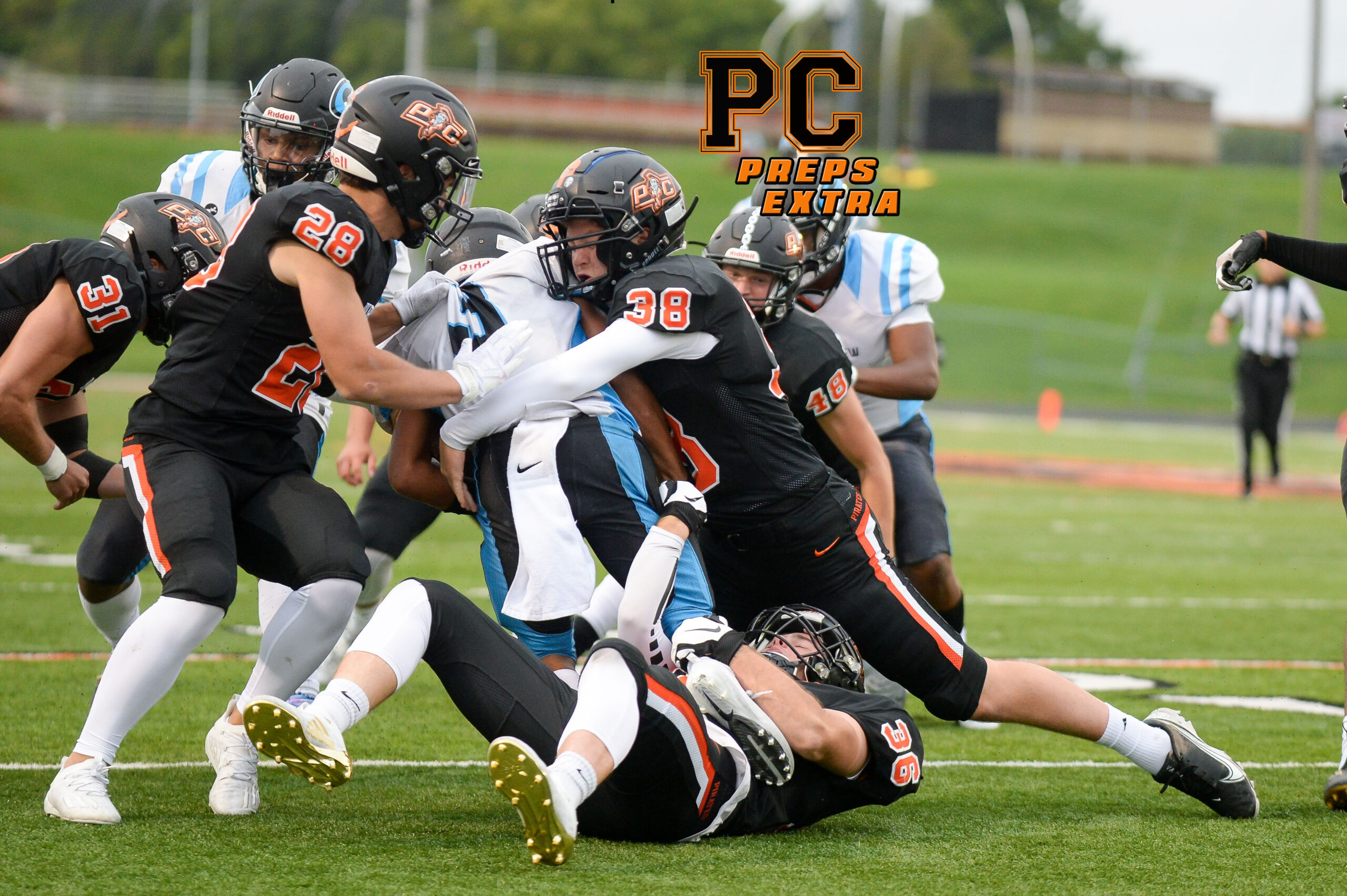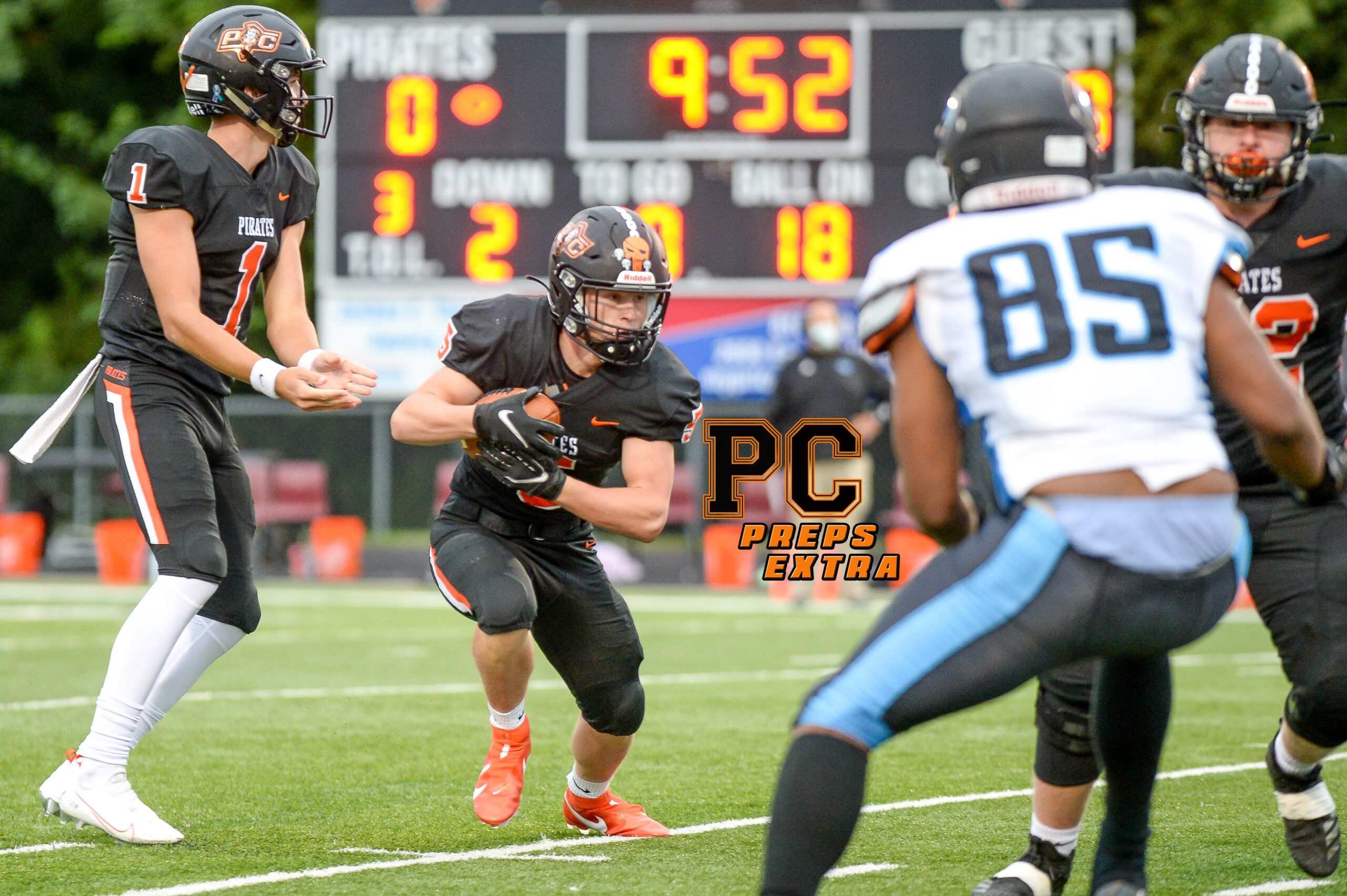 Platte County defeated Grandview 35-12 on Friday night at Pirate Stadium, improving to 3-0 on the season and 2-0 in Suburban Conference Blue Division play. For more photos and to purchase high-res versions, please visit Todd Nugent’s gallery at this link.