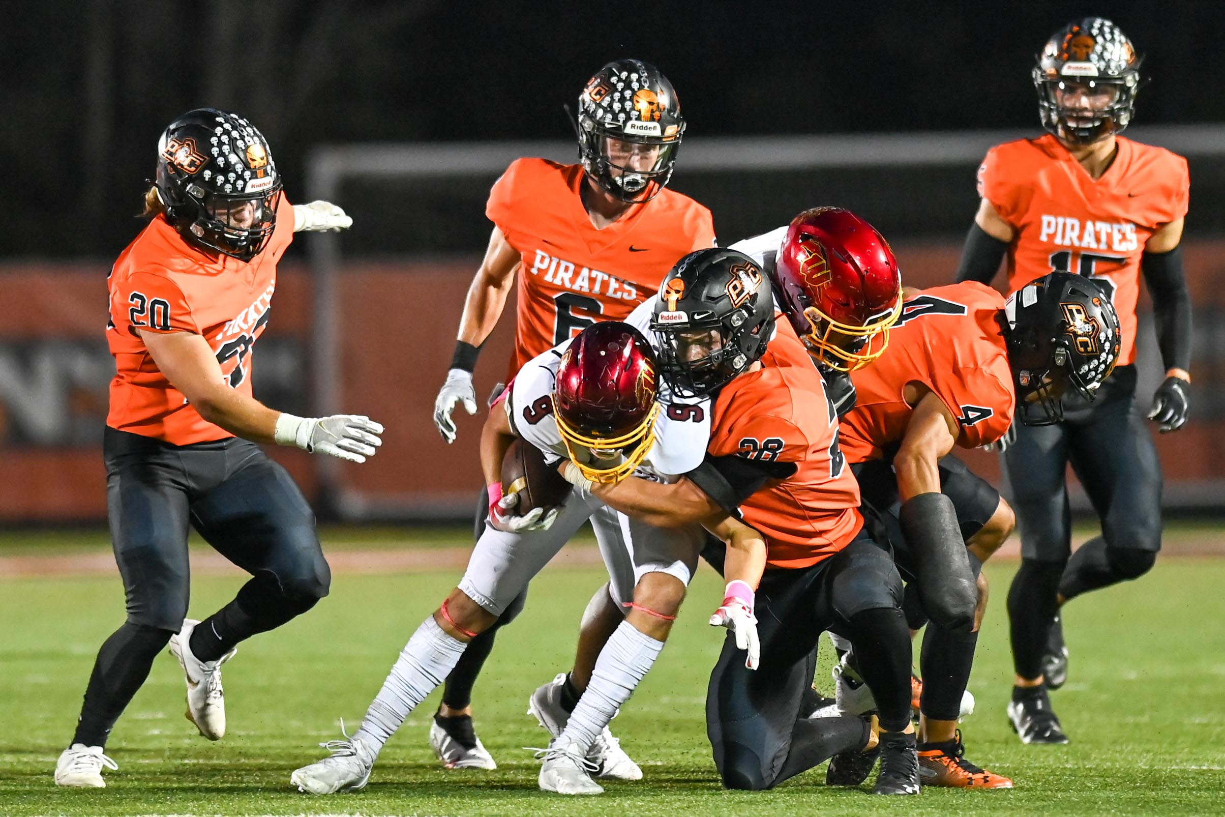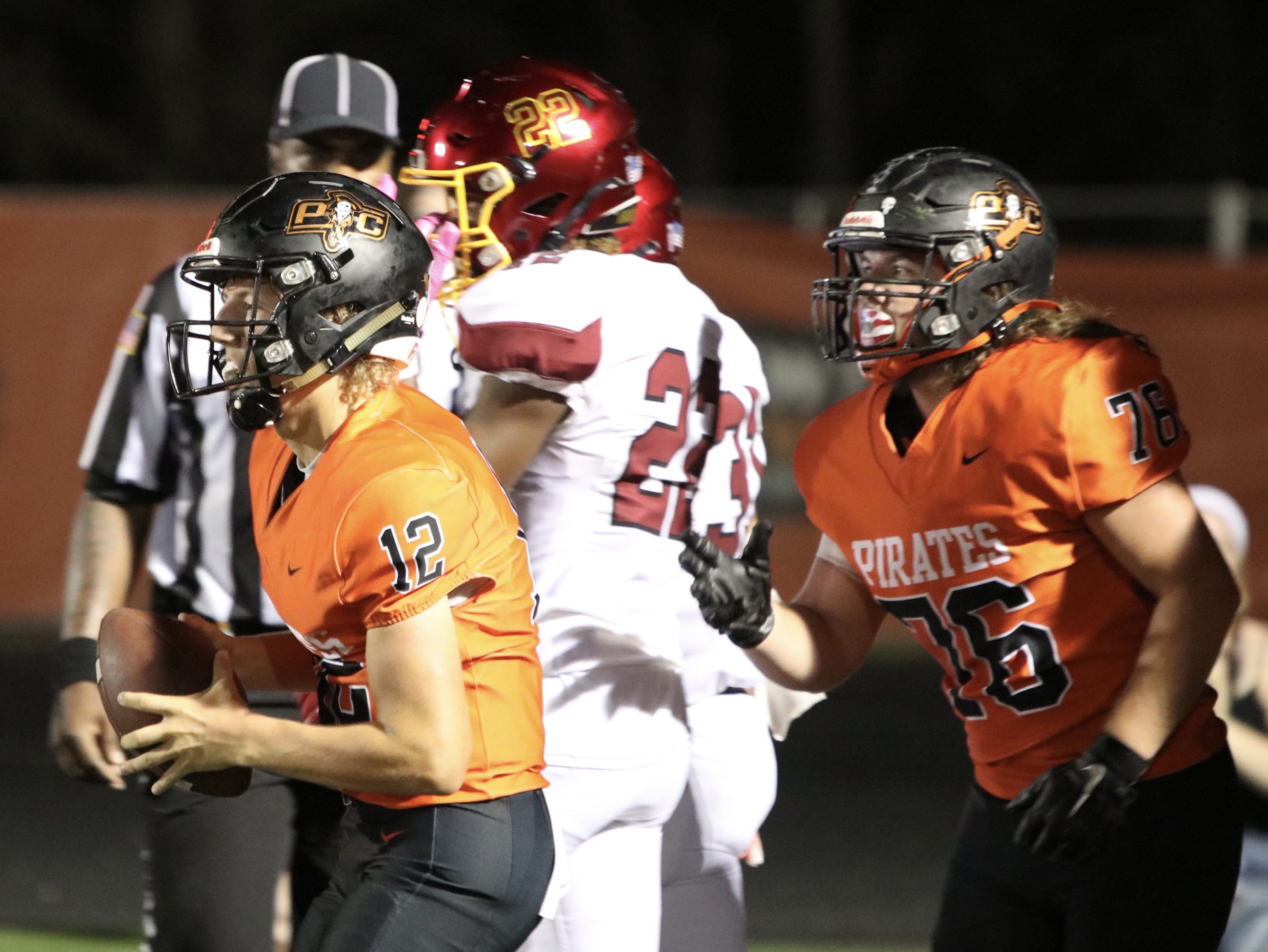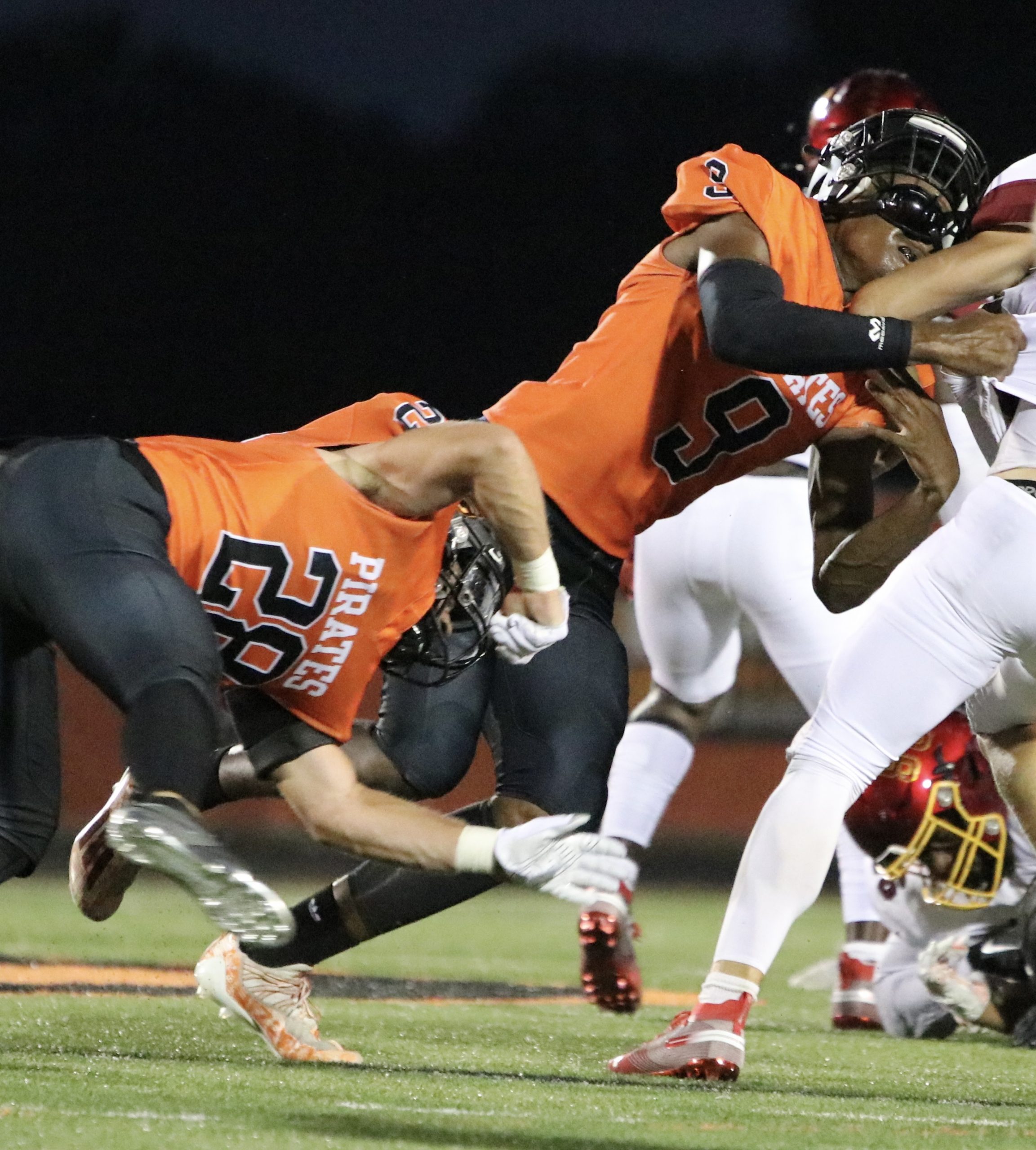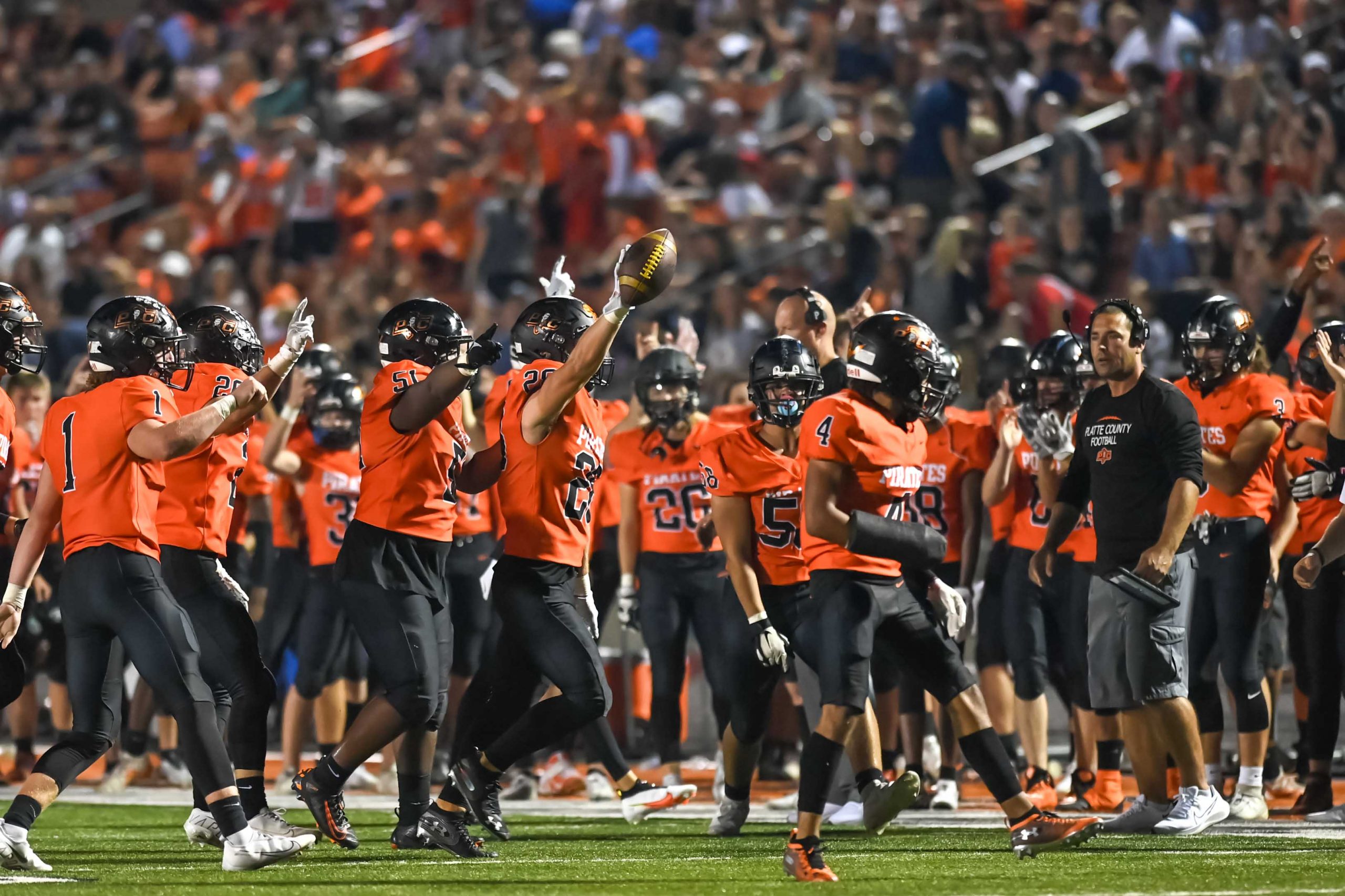 Platte County recorded a shutout in Suburban Conference Blue Division play with a 35-0 victory over Winnetonka on Friday at Pirate Stadium.