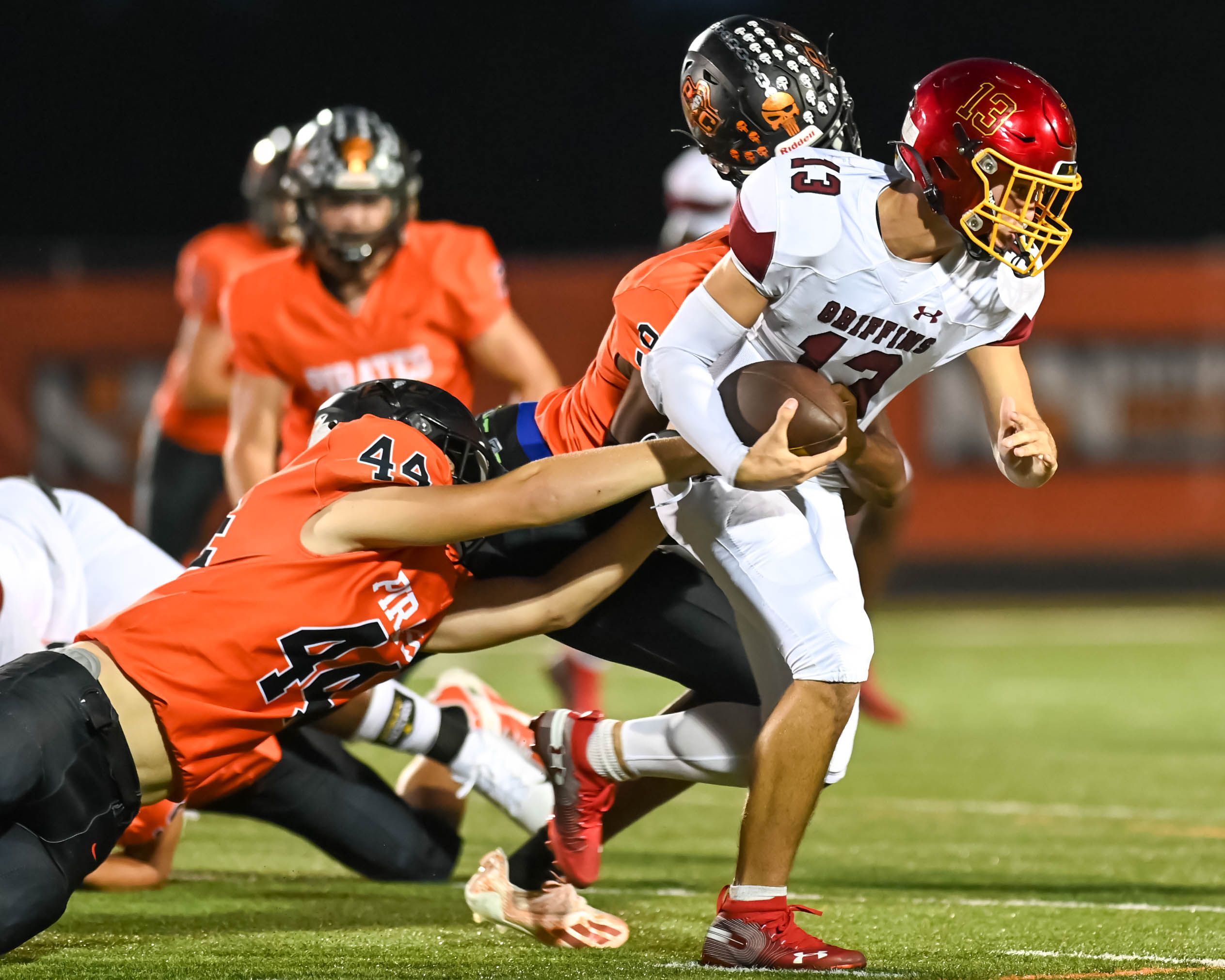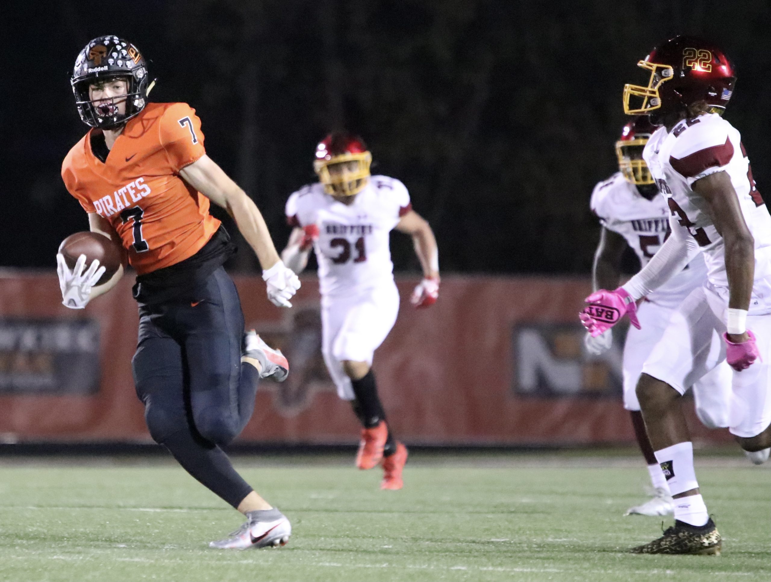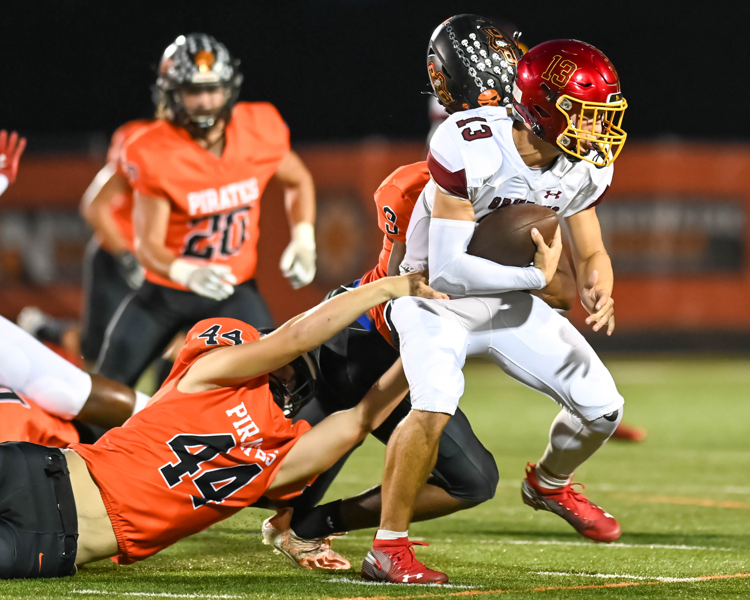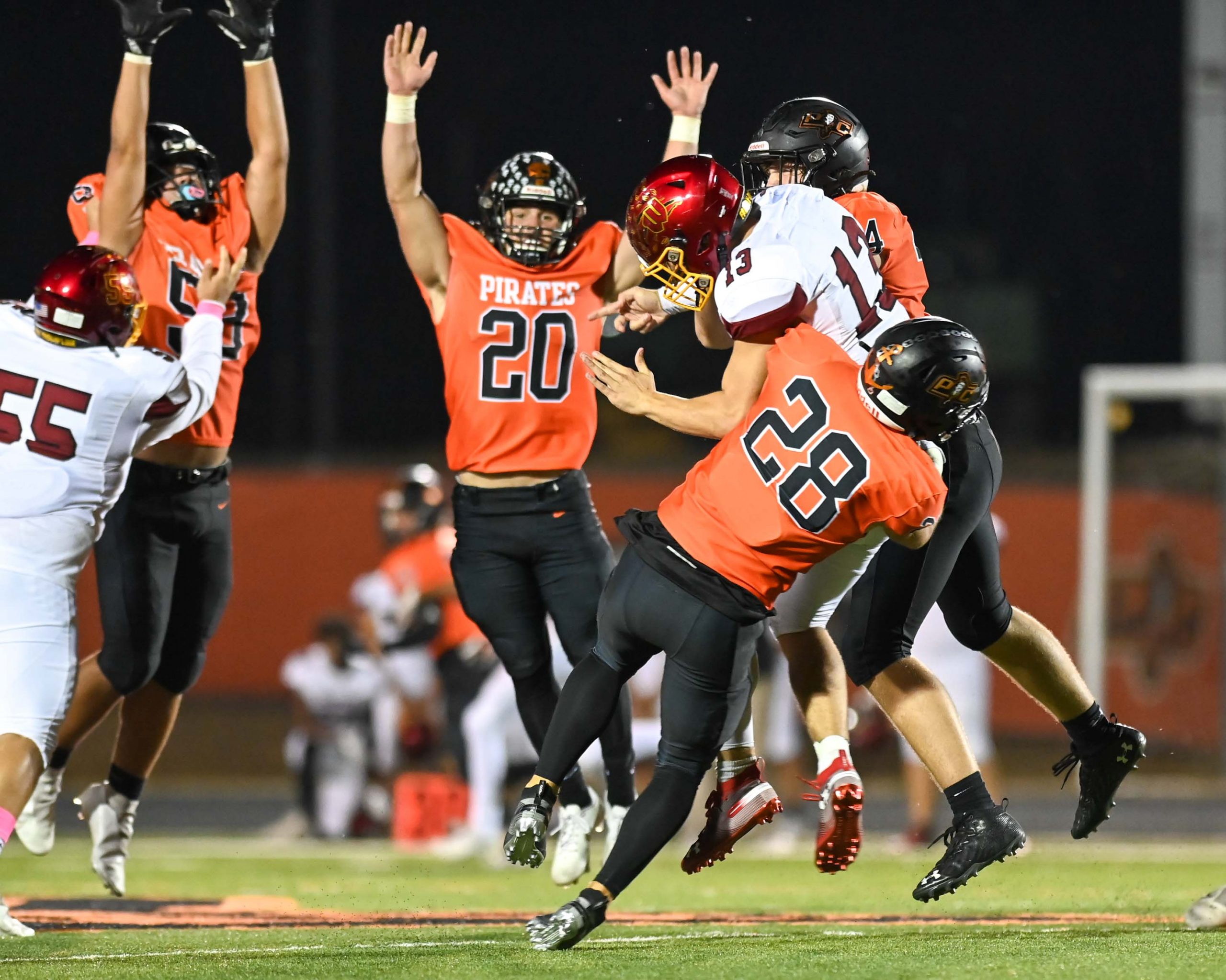 Platte County recorded a shutout in Suburban Conference Blue Division play with a 35-0 victory over Winnetonka on Friday at Pirate Stadium.