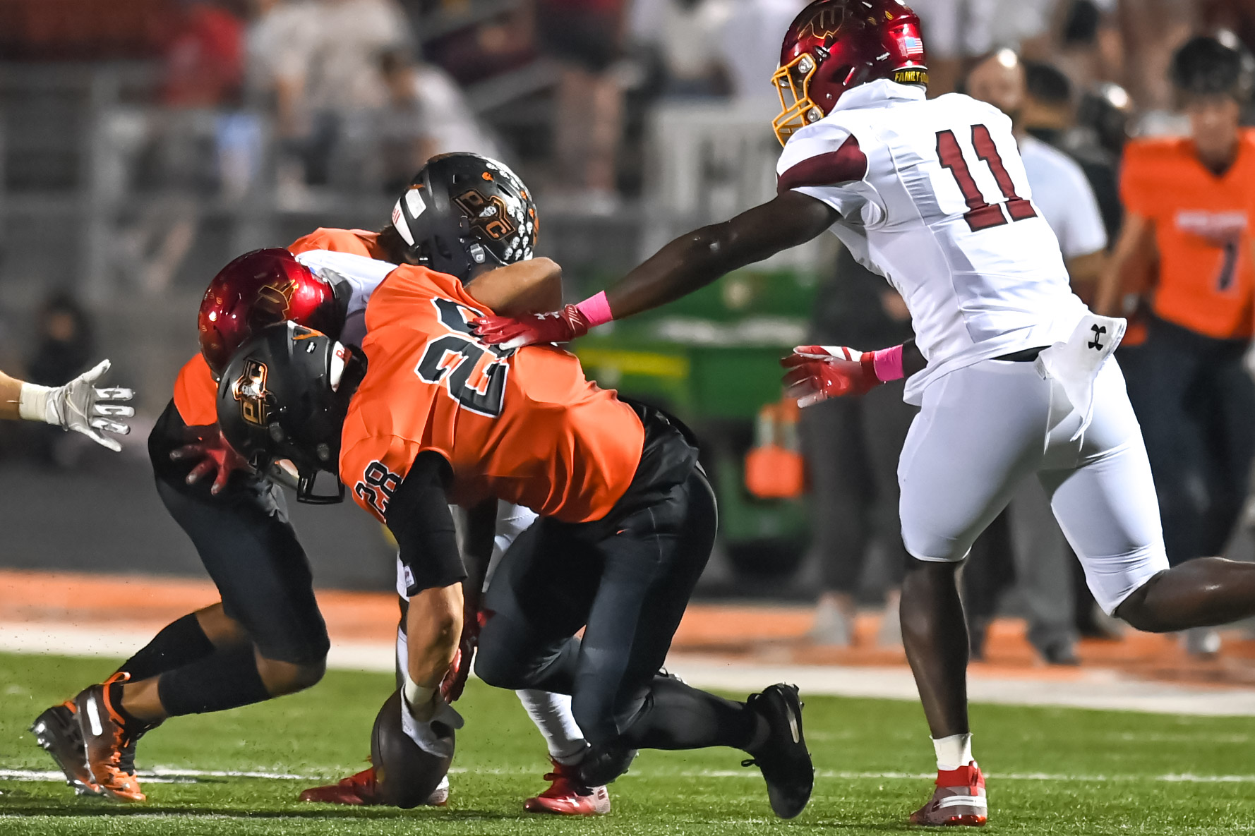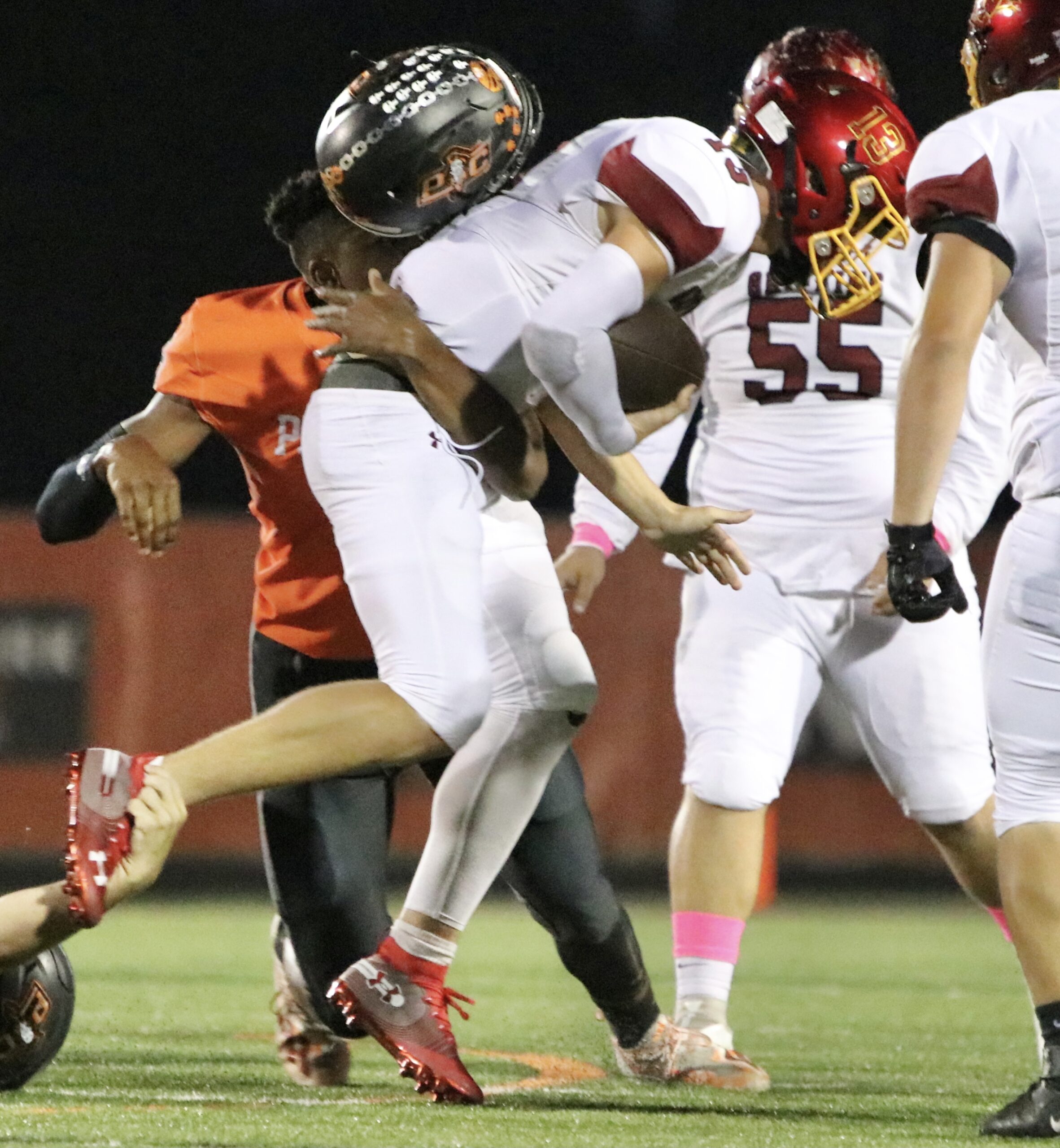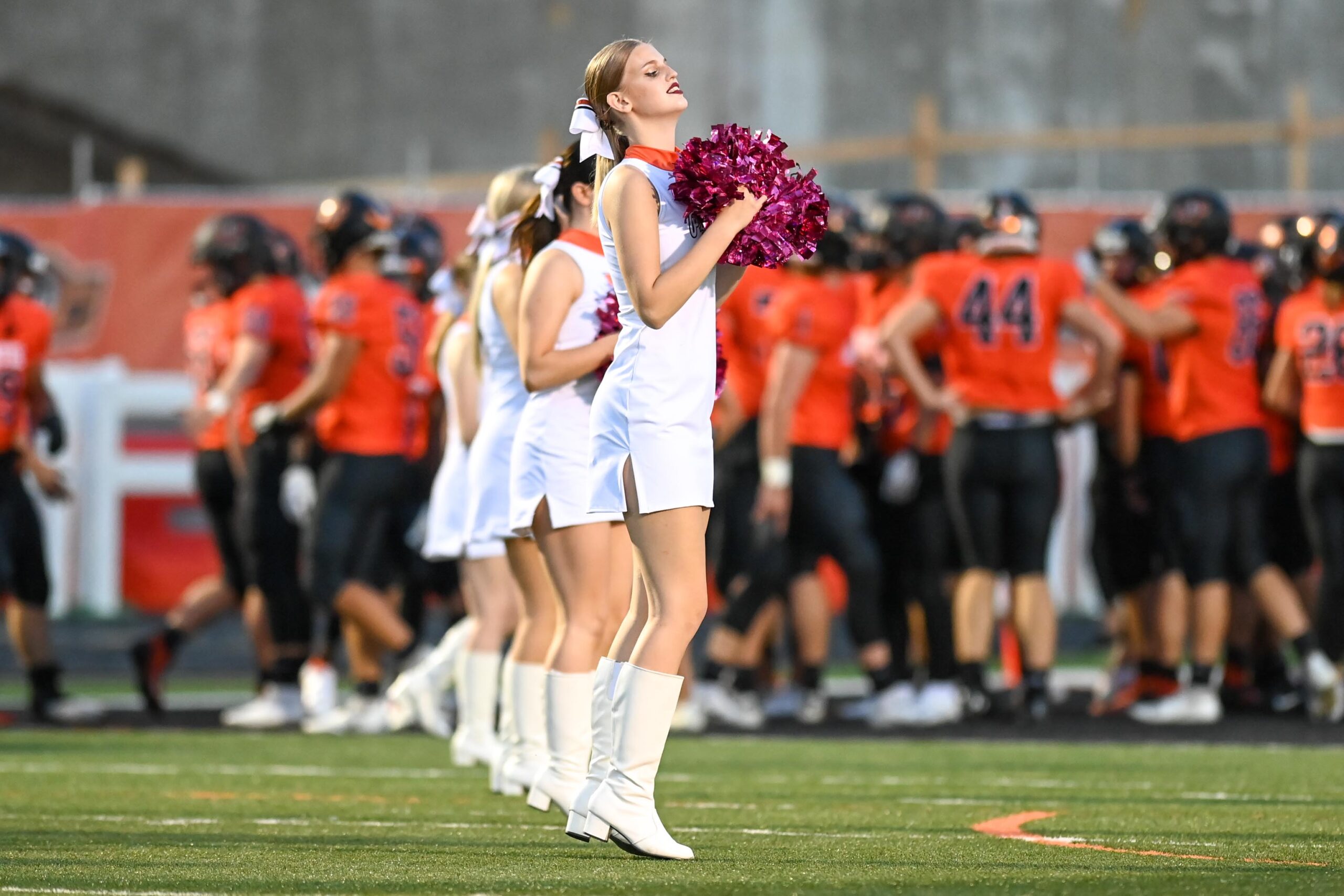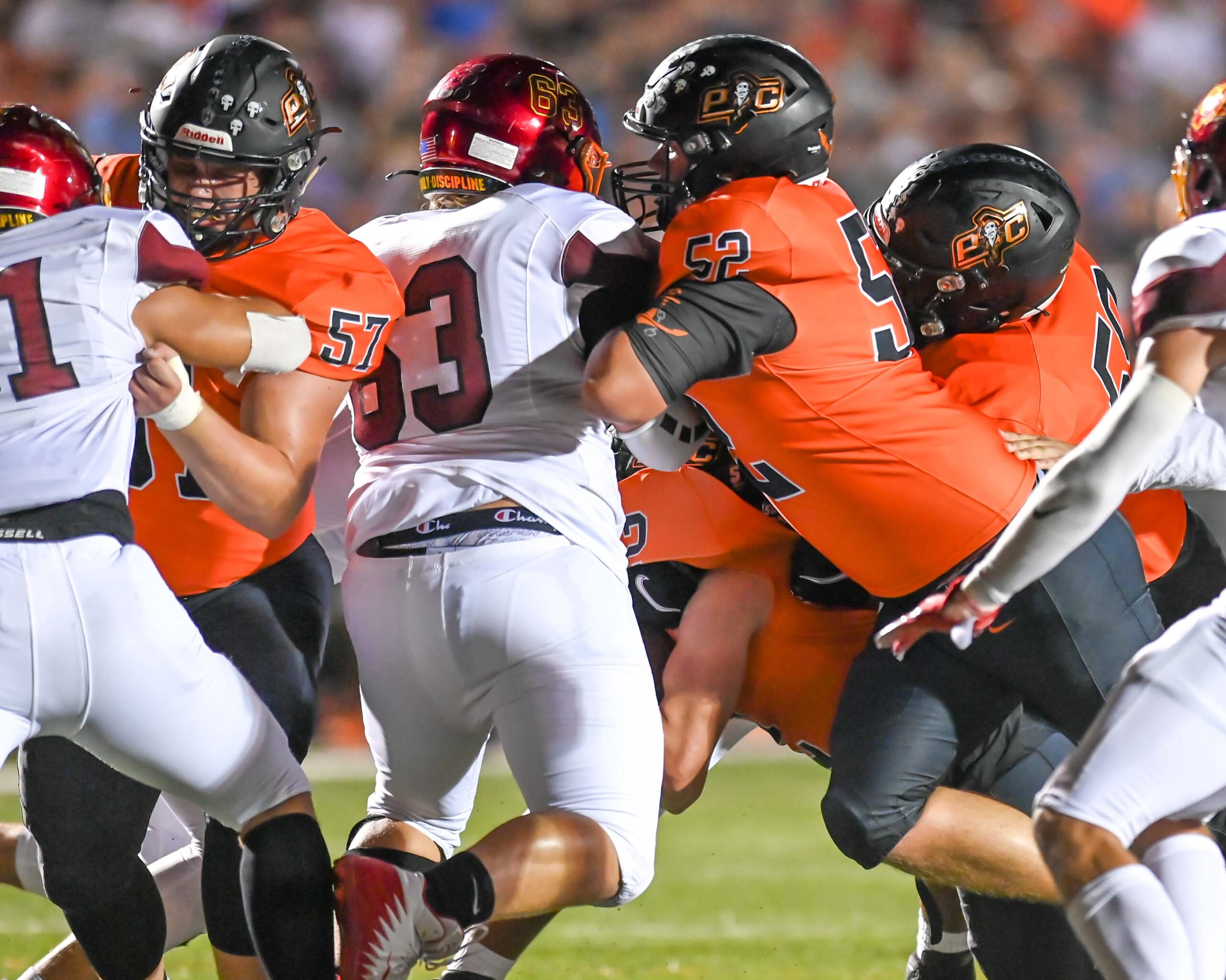 I do have one point of interest that I discovered as I scroll thru all the pictures. The number of action shots for the offensive line(2 tackles, 2 guards and the center) amounted to approximately a dozen shots. The cheerleaders had more than that. Those young bust there butt on every play and never here there name mentioned. I have seen tremendous blocks make where that put there opponent flat on there back. I wish I could see a series of pictures showing players delivering blocks and pulling to be in front on the runner or blocking down field after they completed there line block.
