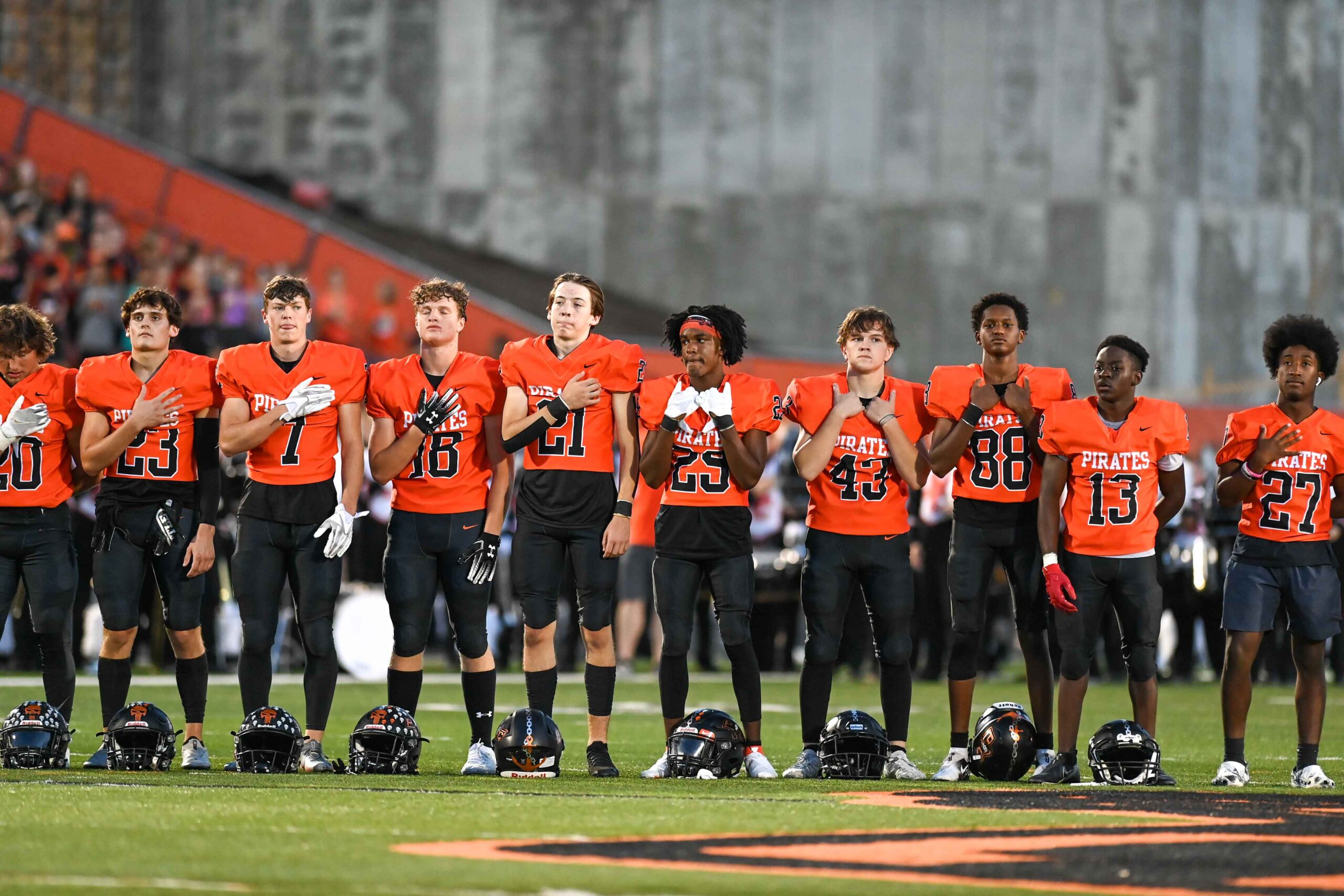 219 photos are a great collection of action in the the game, crowd, student body and cheer leaders. I especially liked the pictures of the players standing at attention for the national anthem.