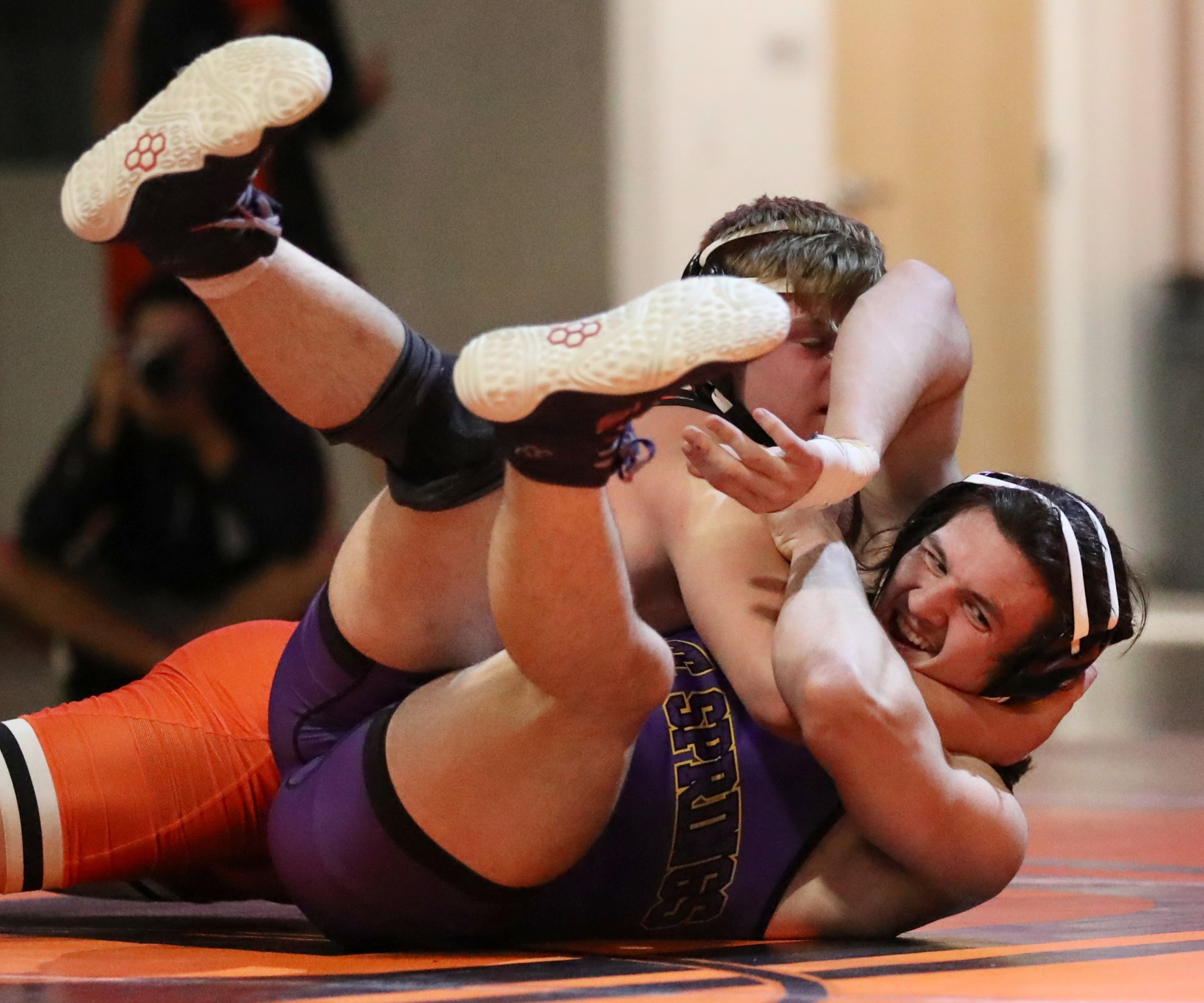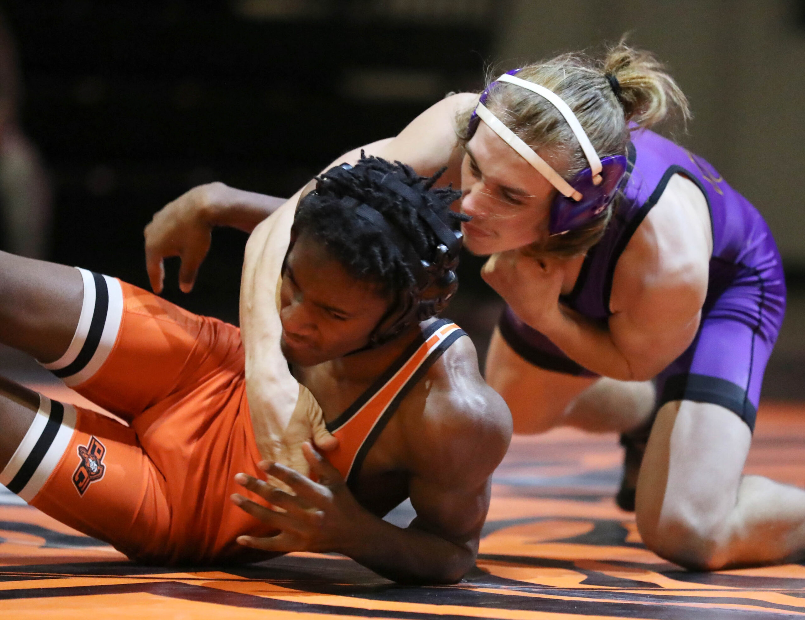 Platte County held on for a nonconference dual victory over Blue Springs on Thursday at Pirate Fieldhouse.