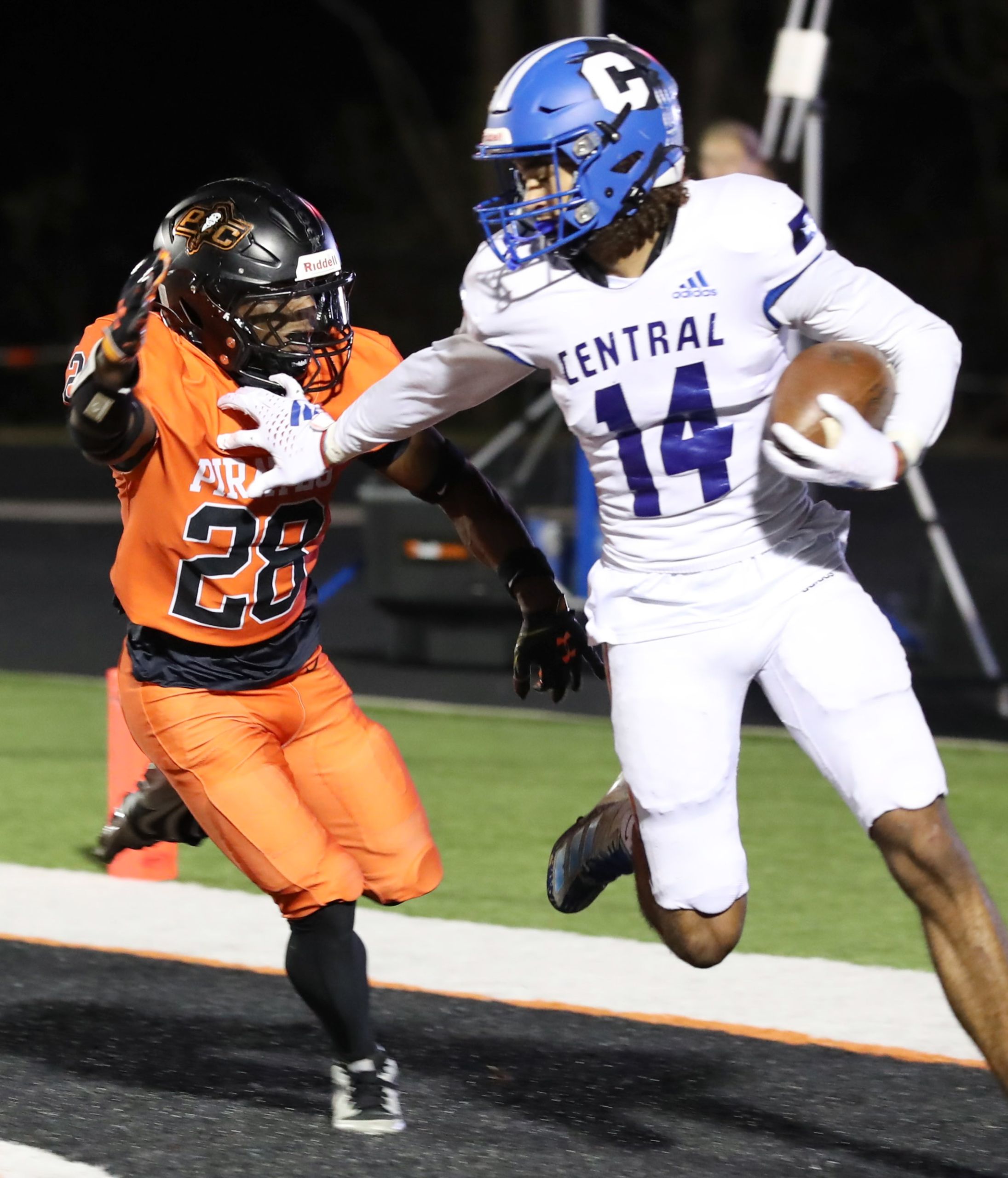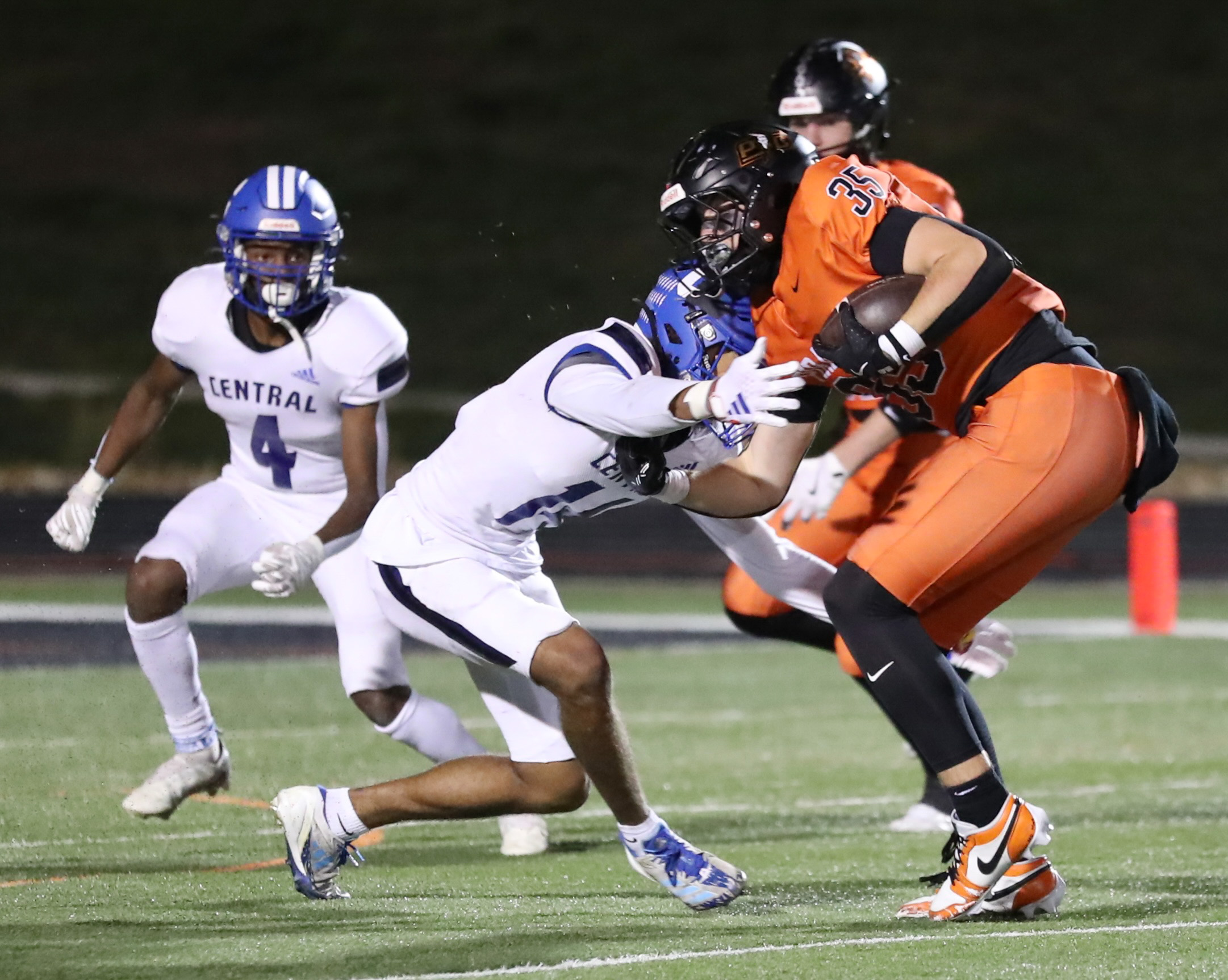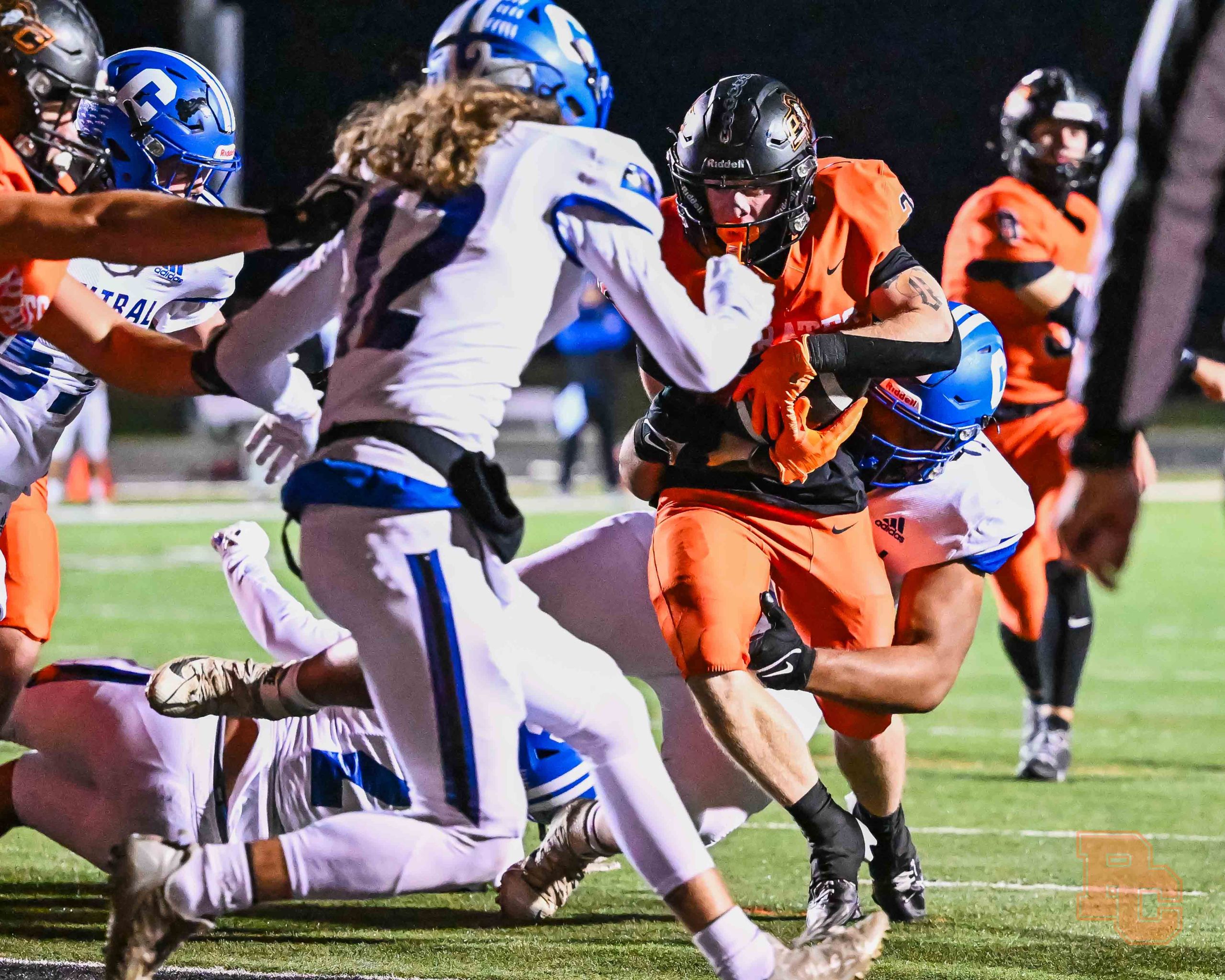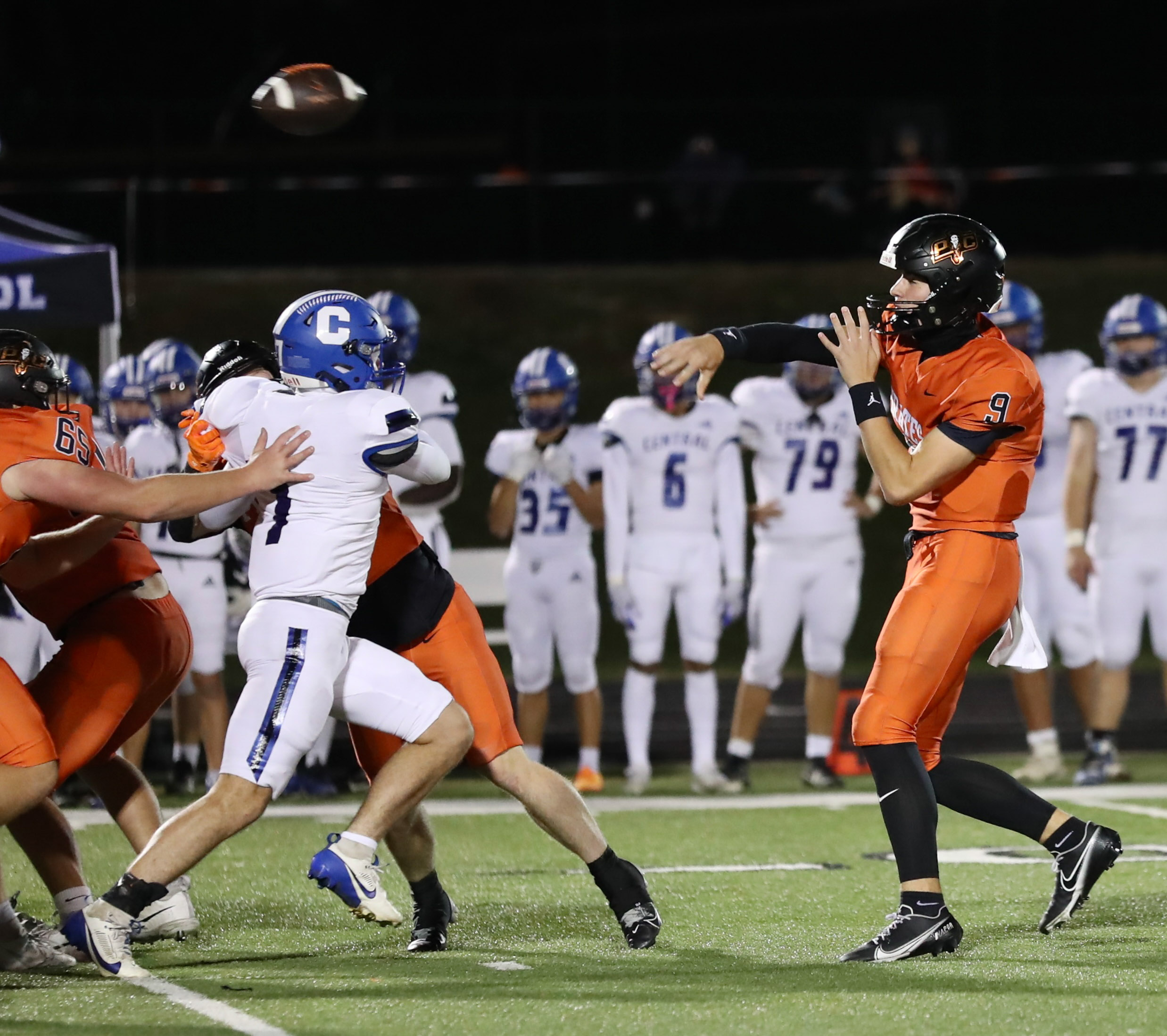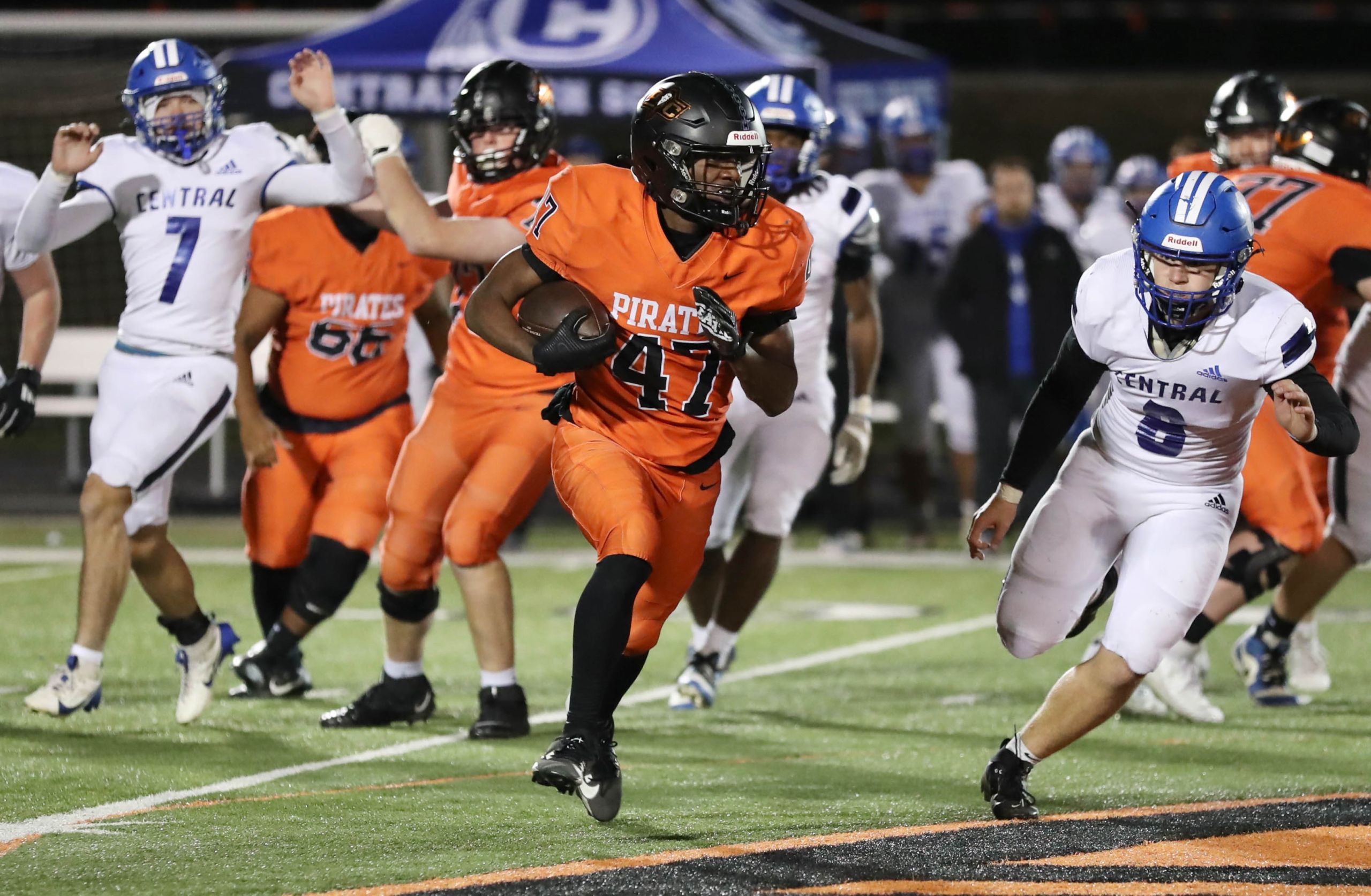 Platte County scored all the points during the first half of a 50-0 win over Central (St. Joseph) in a Class 5 District 8 semifinal Friday night at Pirate Stadium.