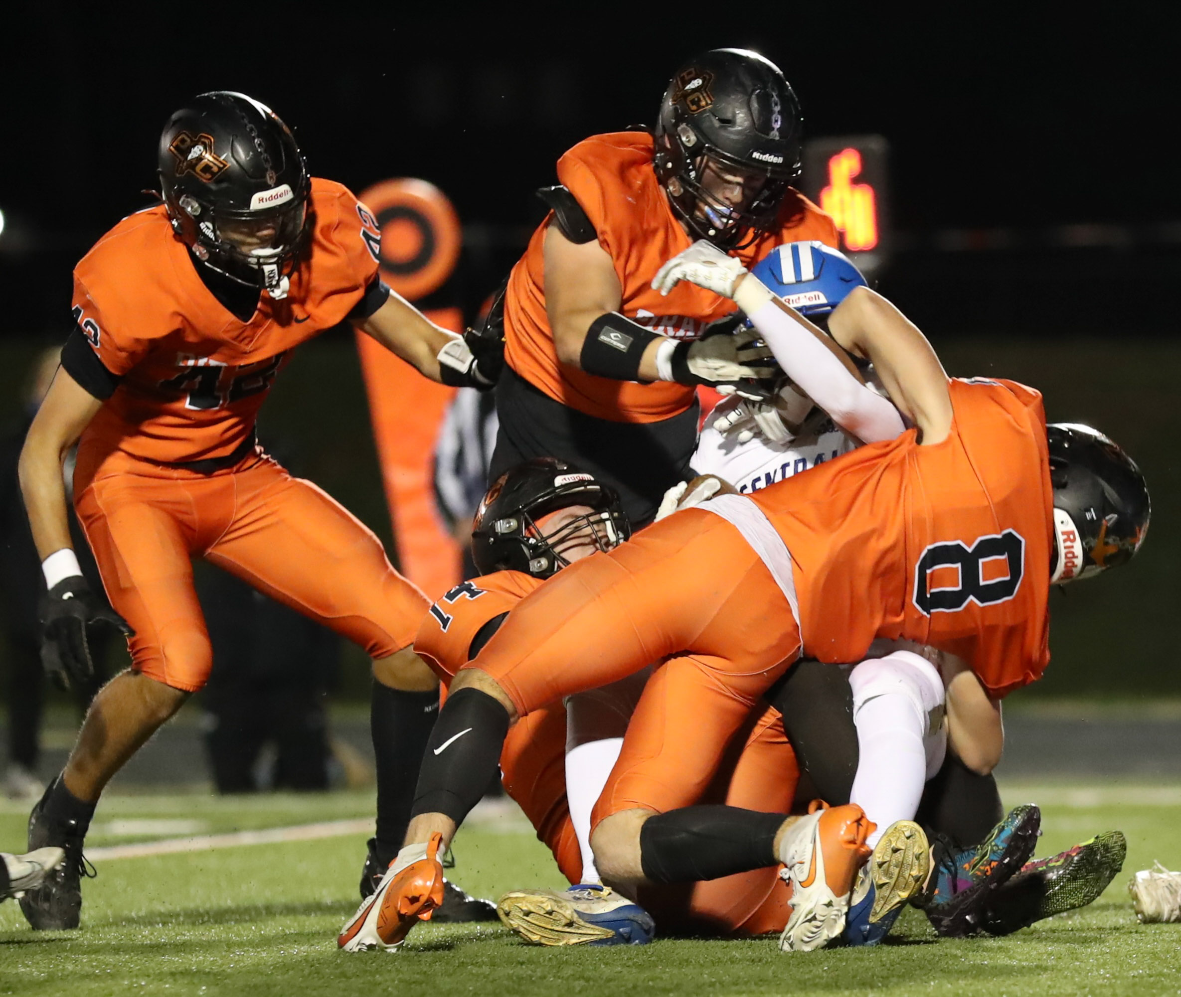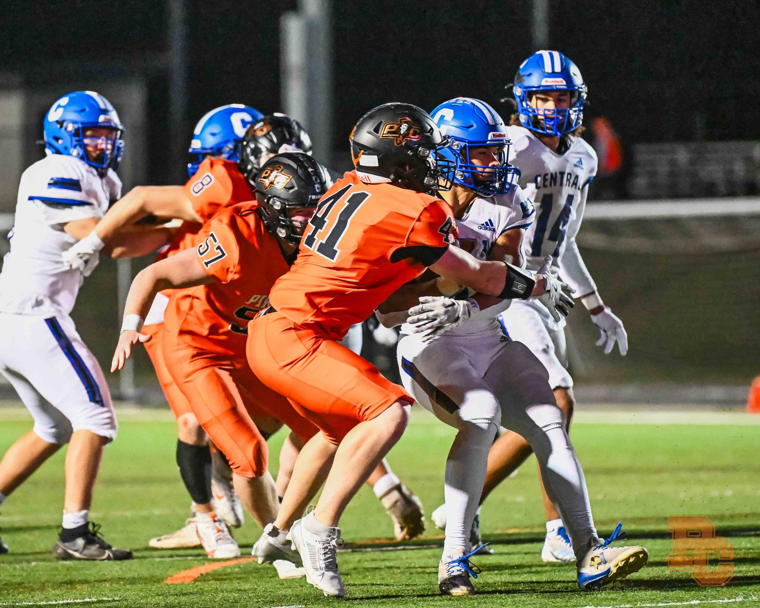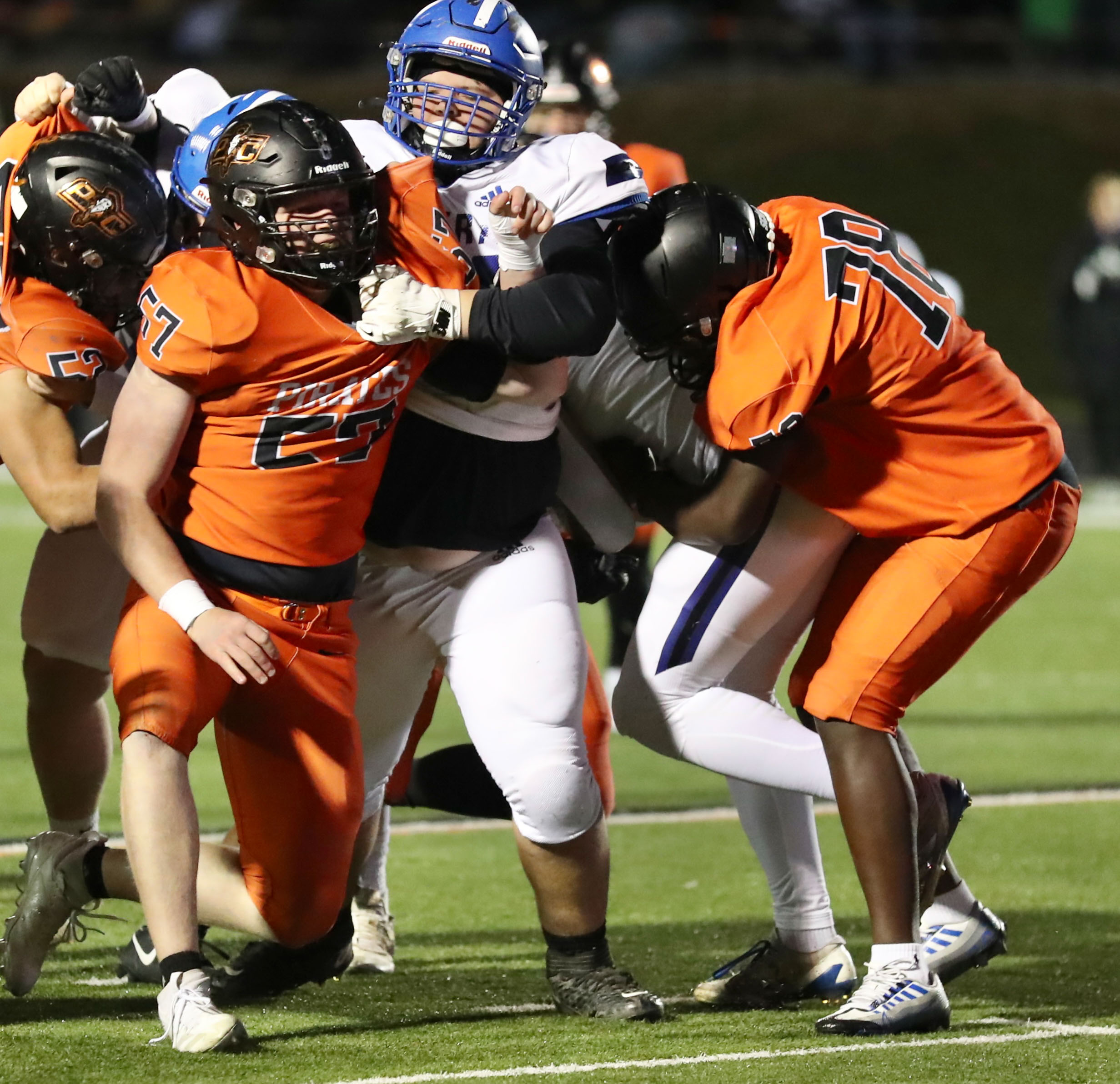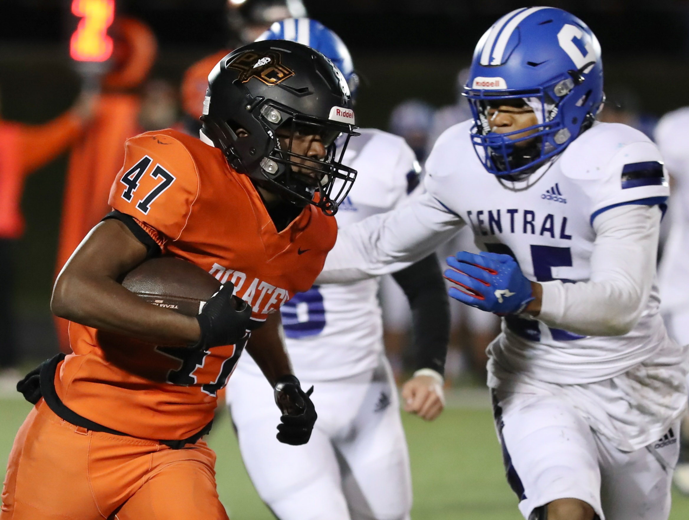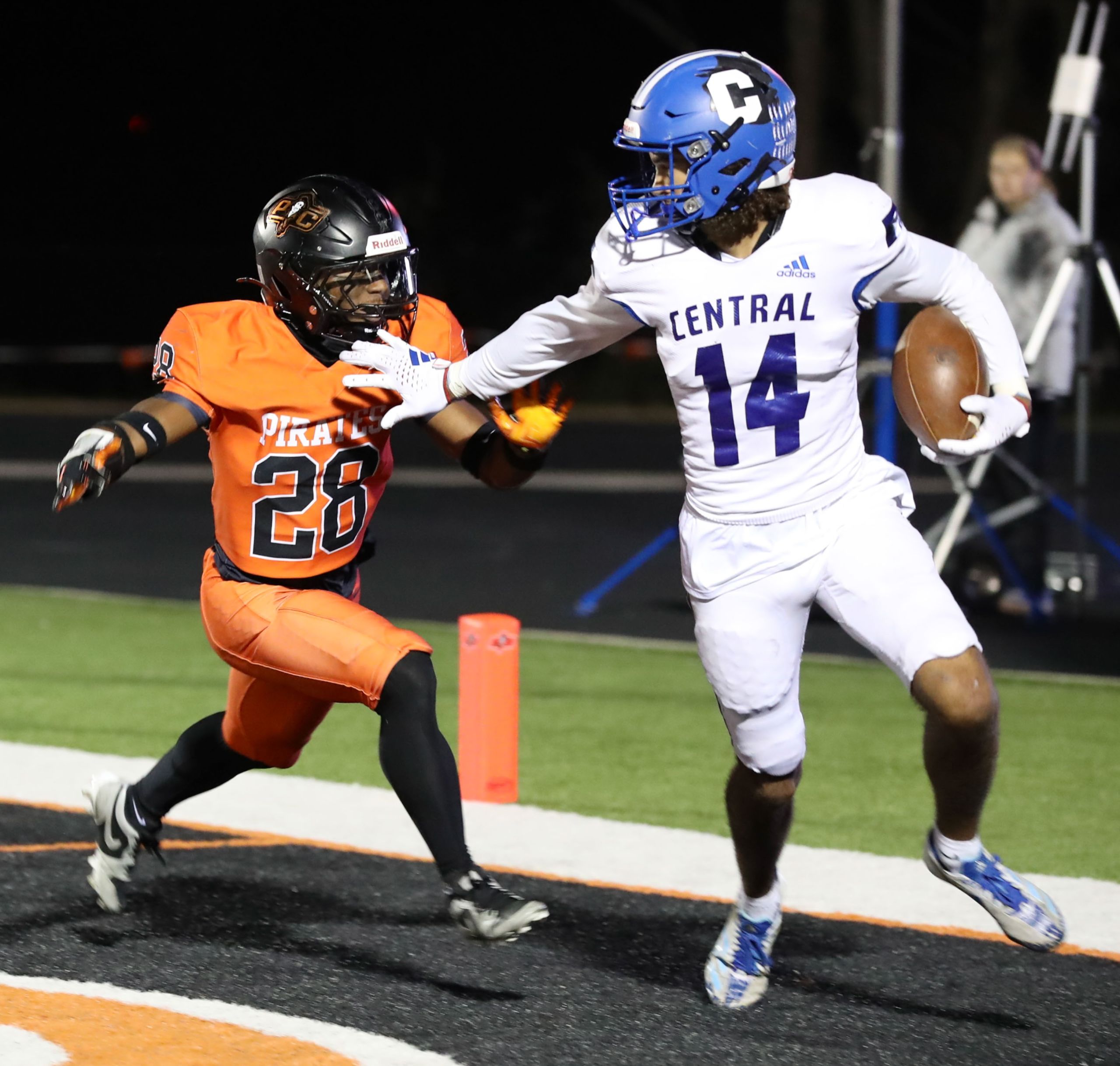 Platte County scored all the points during the first half of a 50-0 win over Central (St. Joseph) in a Class 5 District 8 semifinal Friday night at Pirate Stadium.
