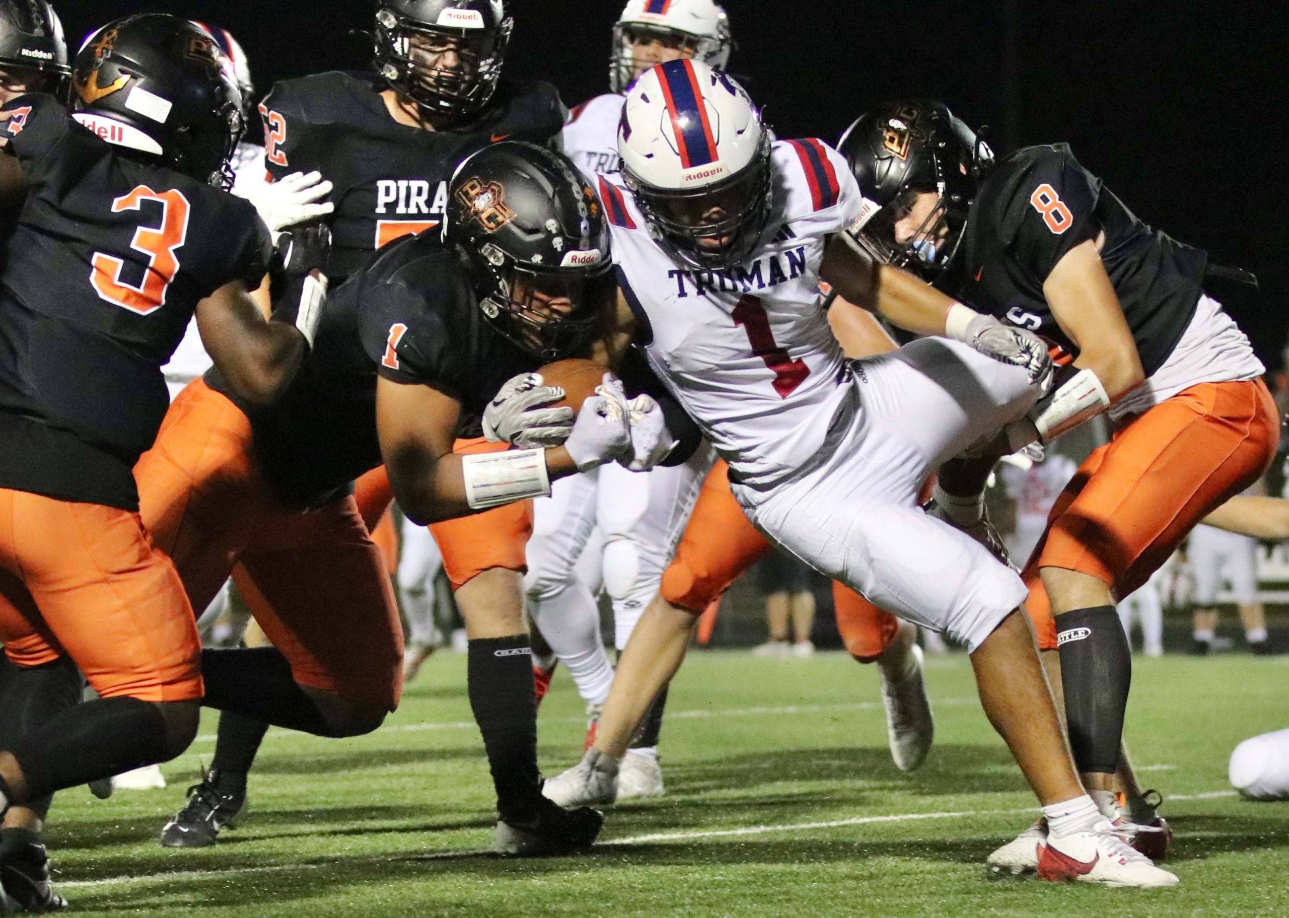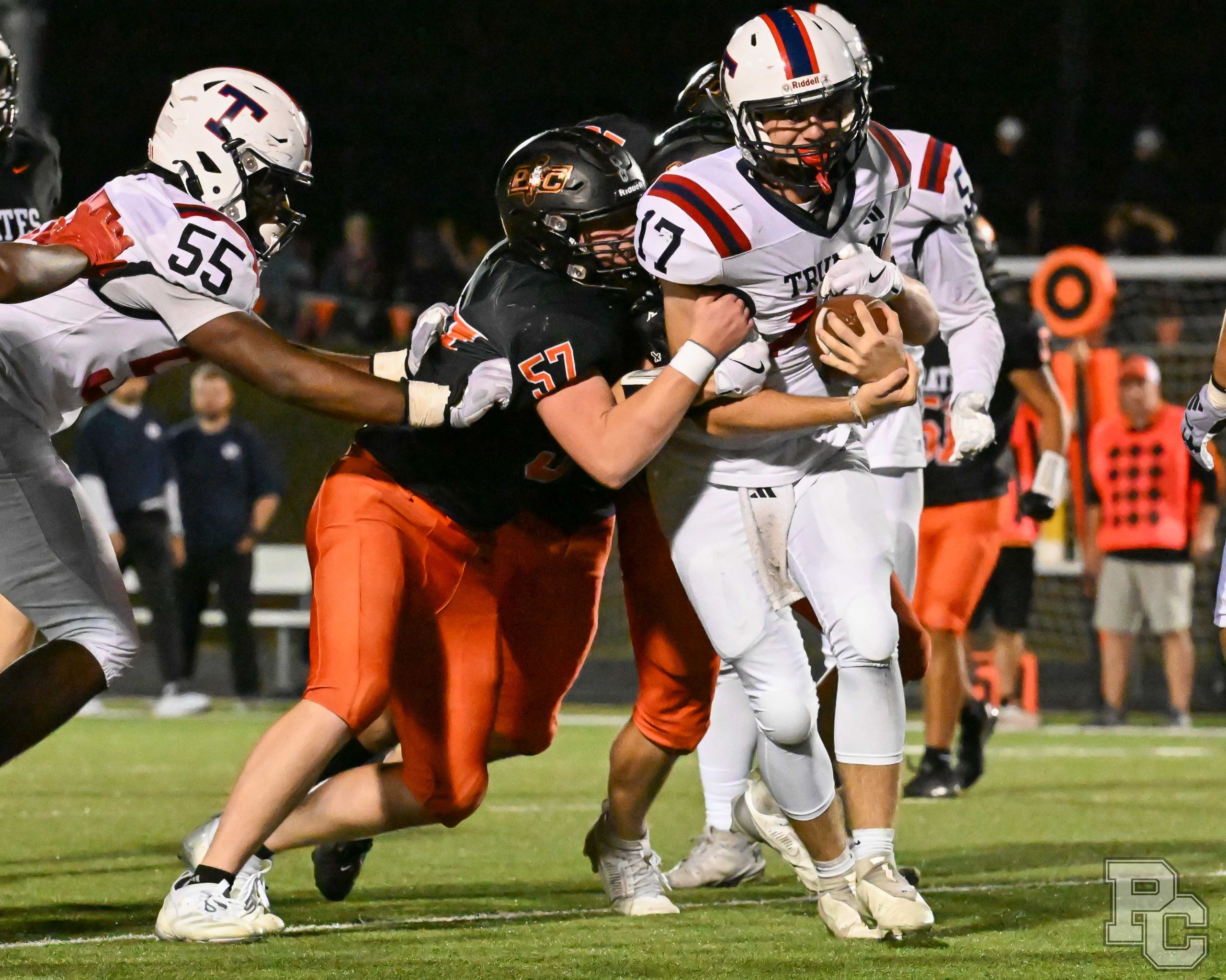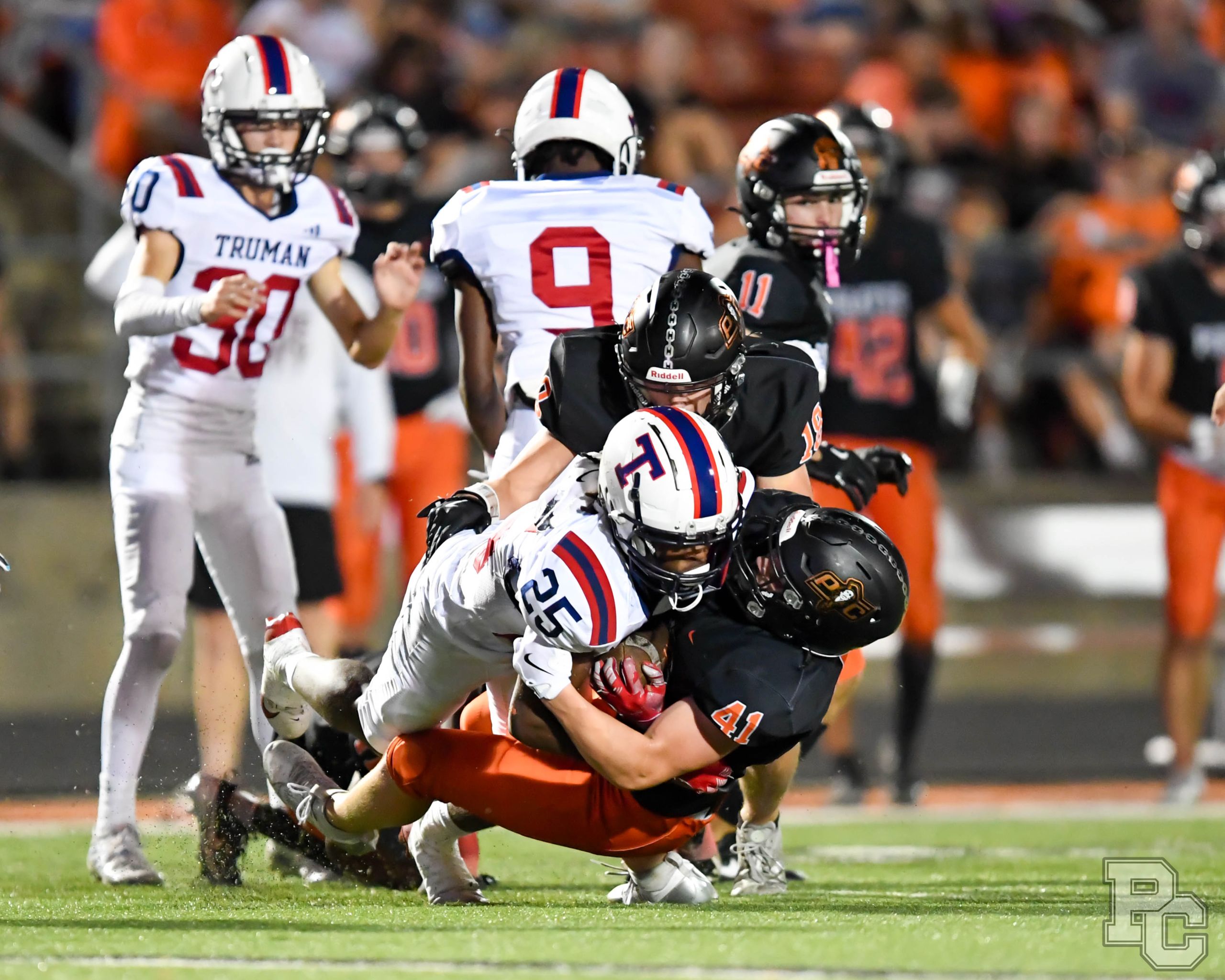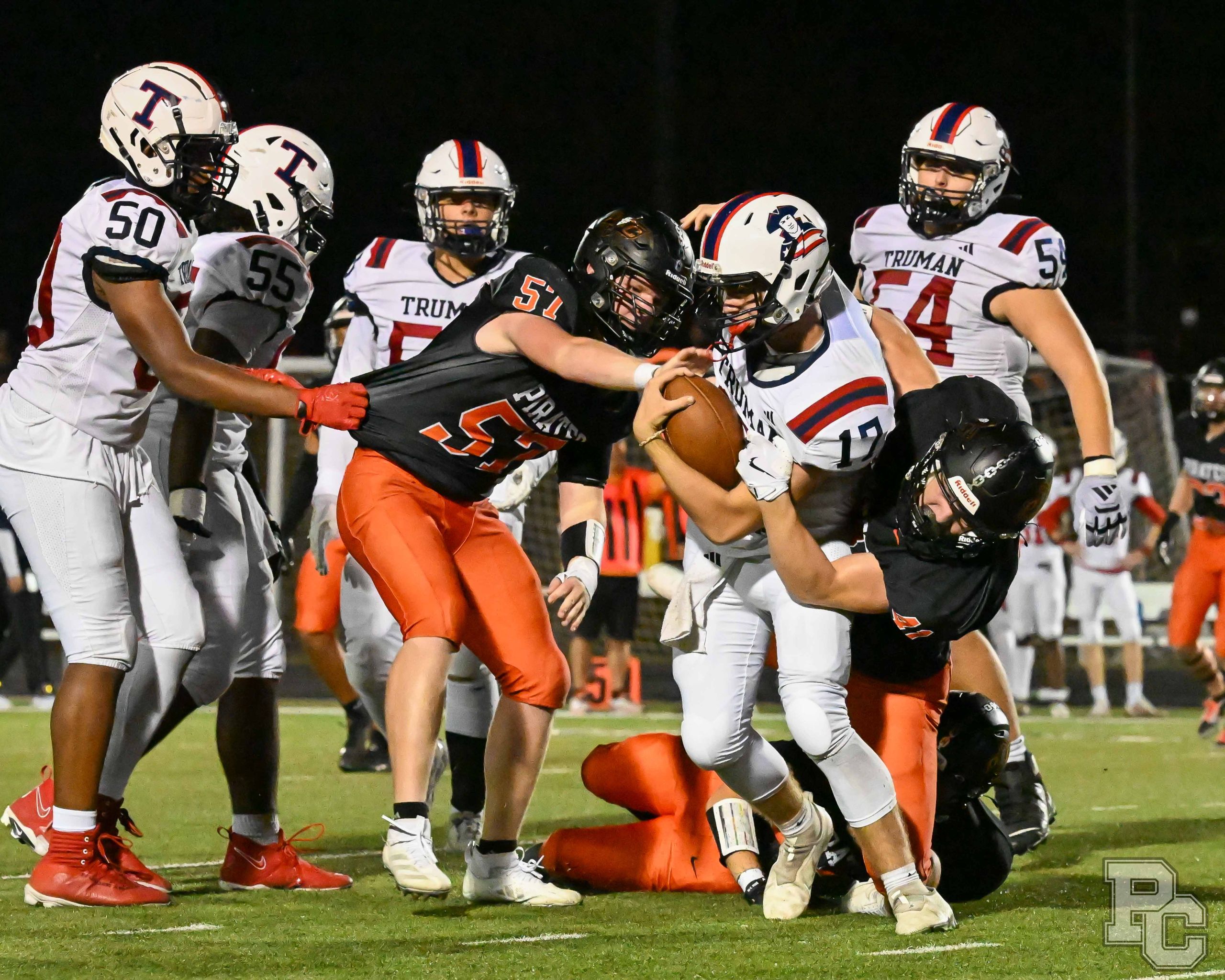 Platte County ran away with a 77-7 victory over Truman in a Suburban Conference White Division matchup Friday at Pirate Stadium.