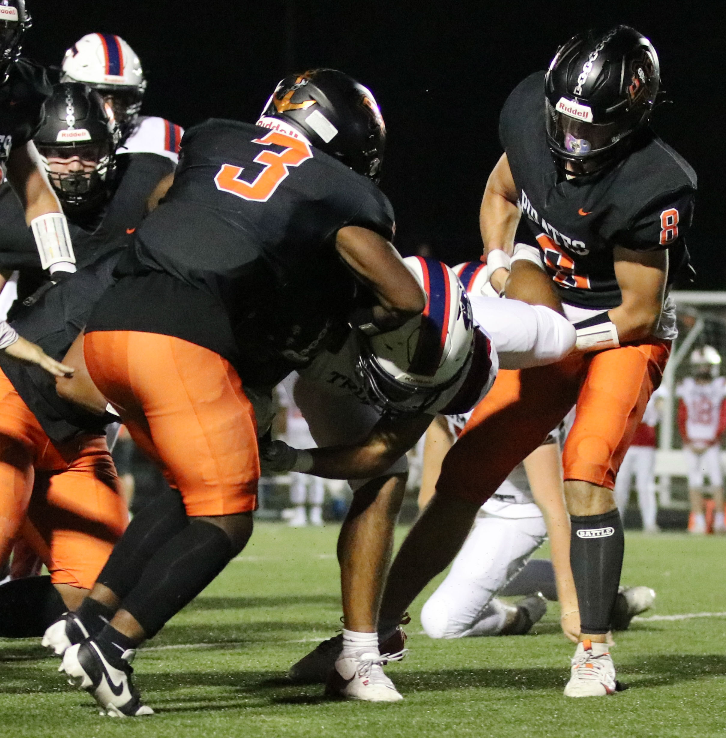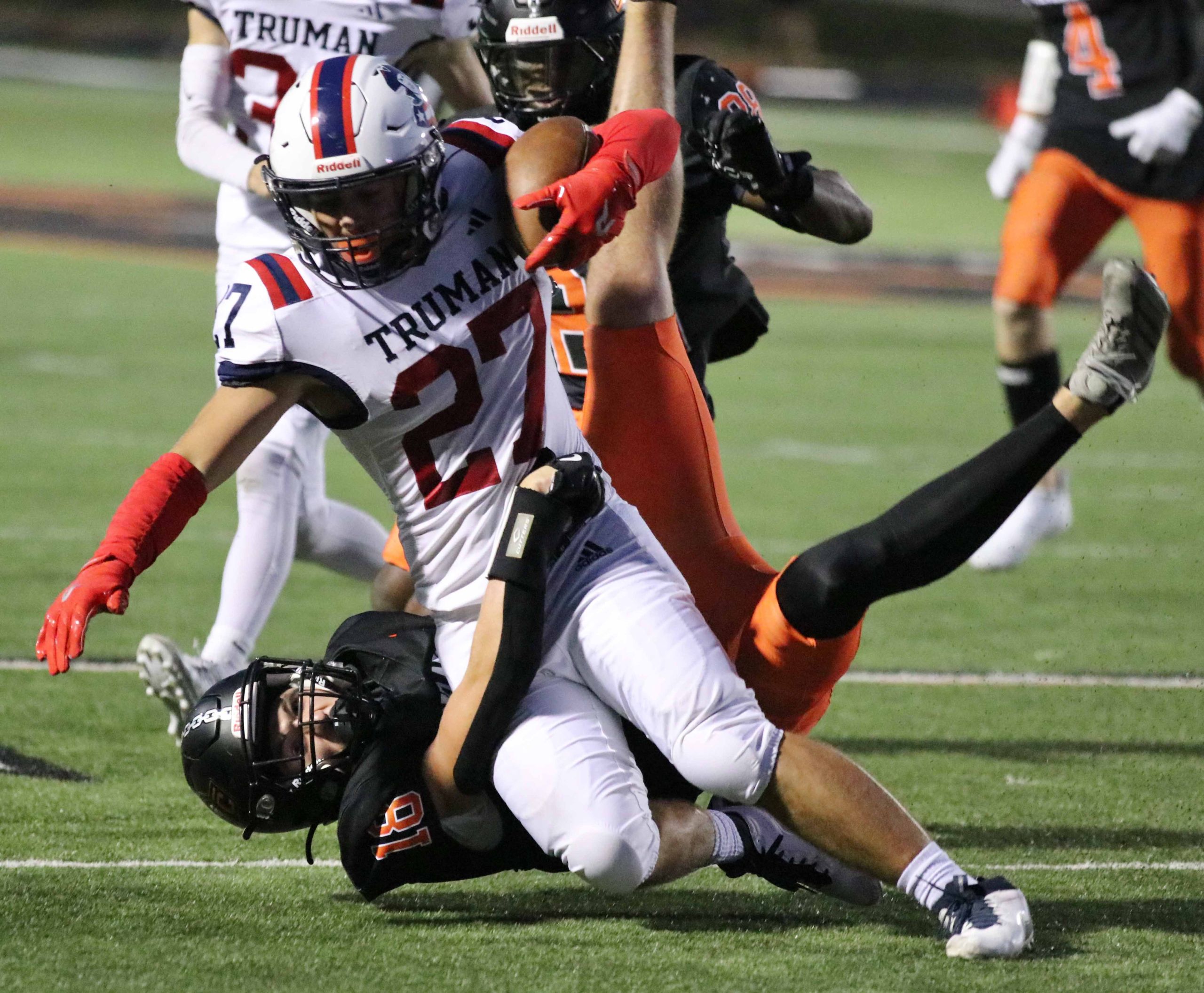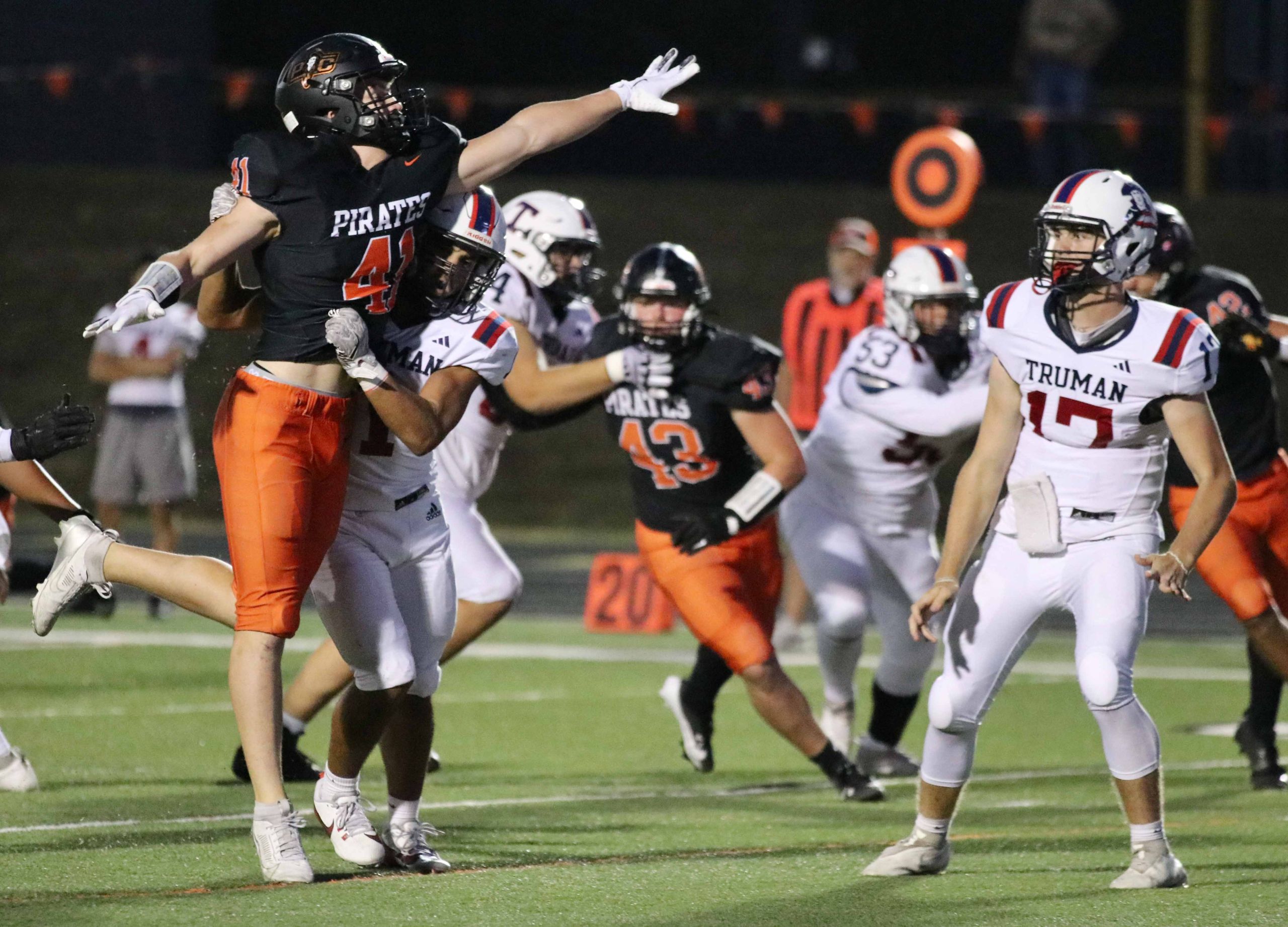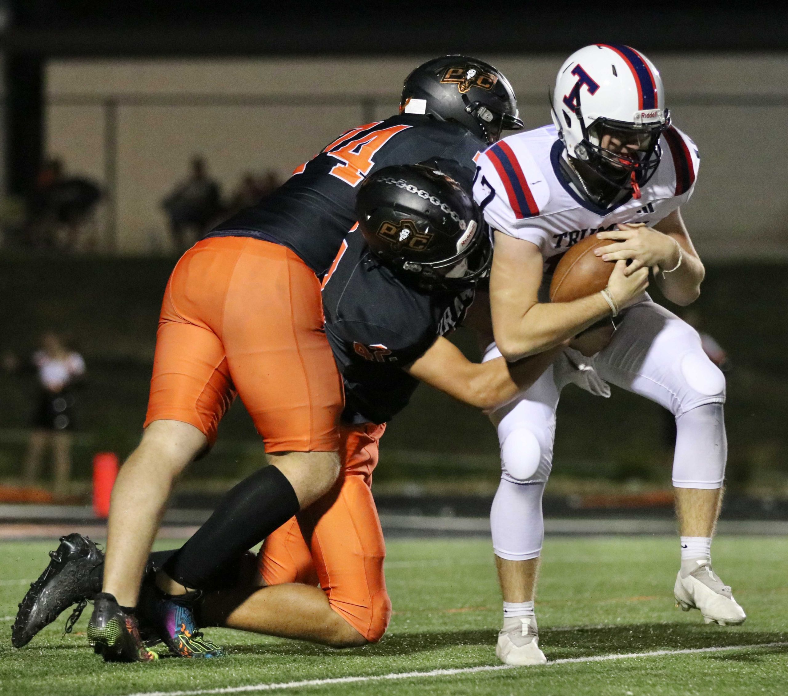 Platte County ran away with a 77-7 victory over Truman in a Suburban Conference White Division matchup Friday at Pirate Stadium.