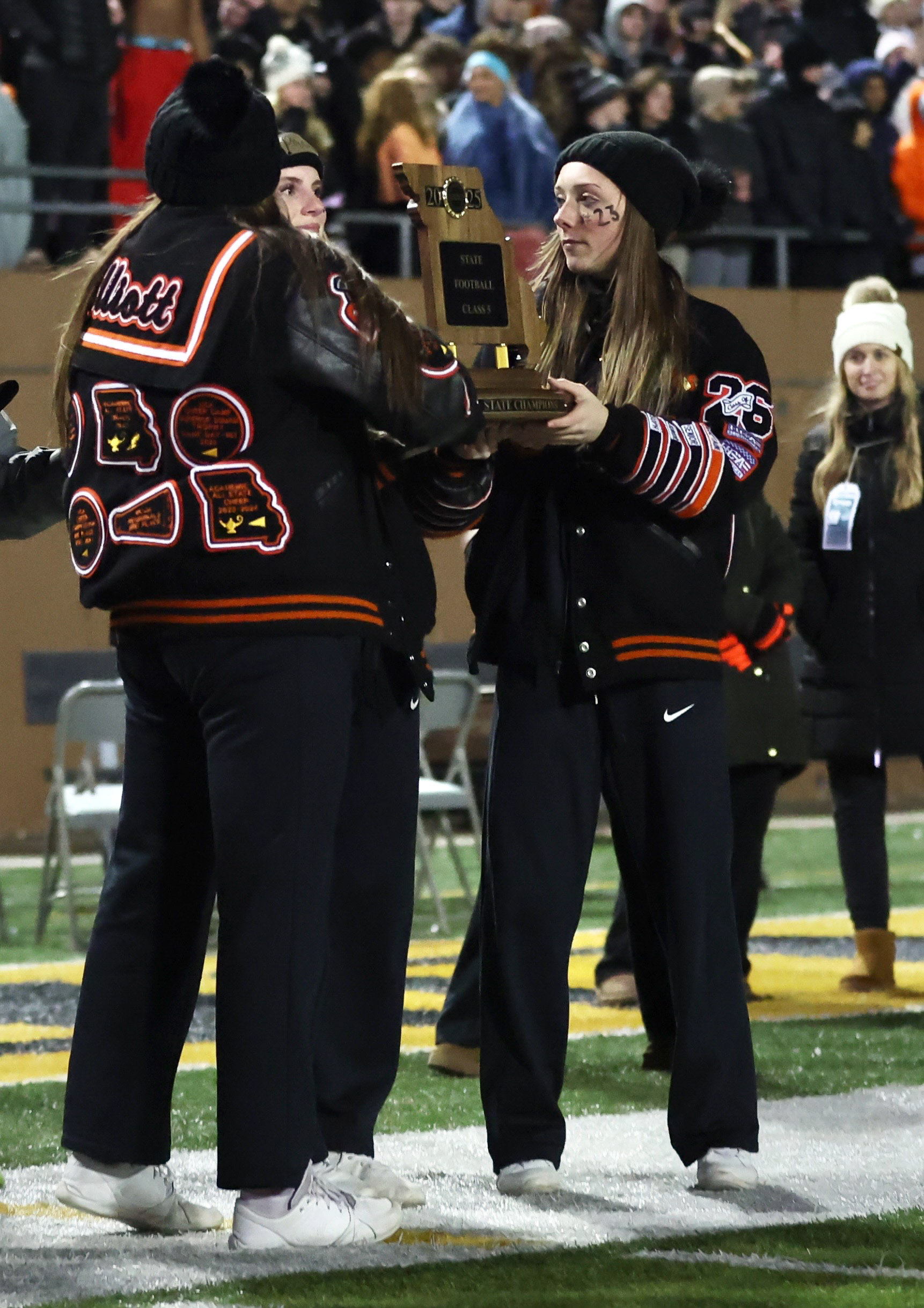 Platte County won a second consecutive state championship with a 34-28 victory in the Class 5 Show-Me Bowl over Carthage in overtime Friday at Spratt Stadium on the campus of Missouri Western State University in St. Joseph.