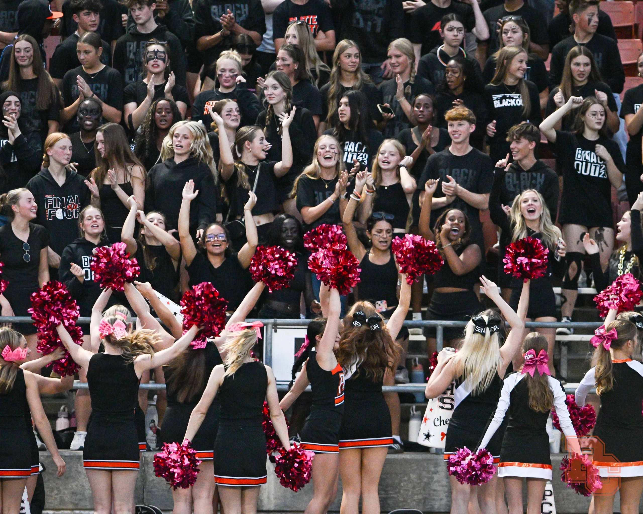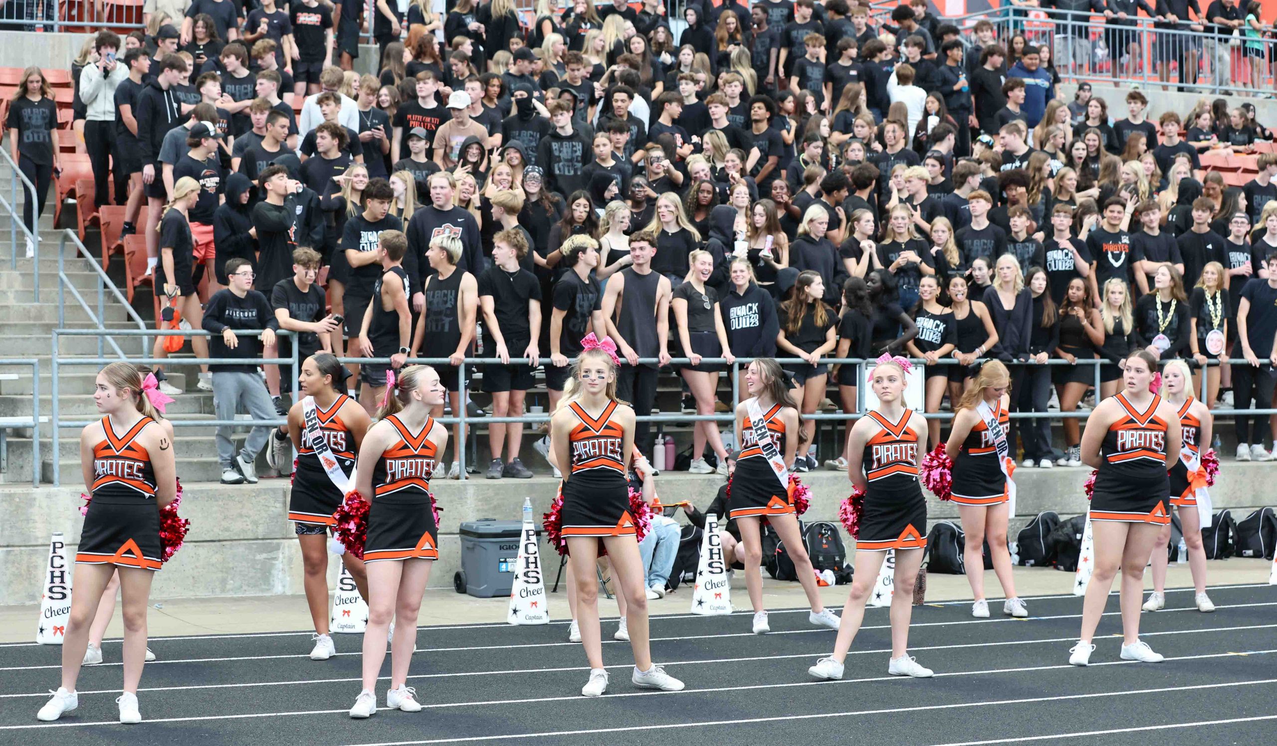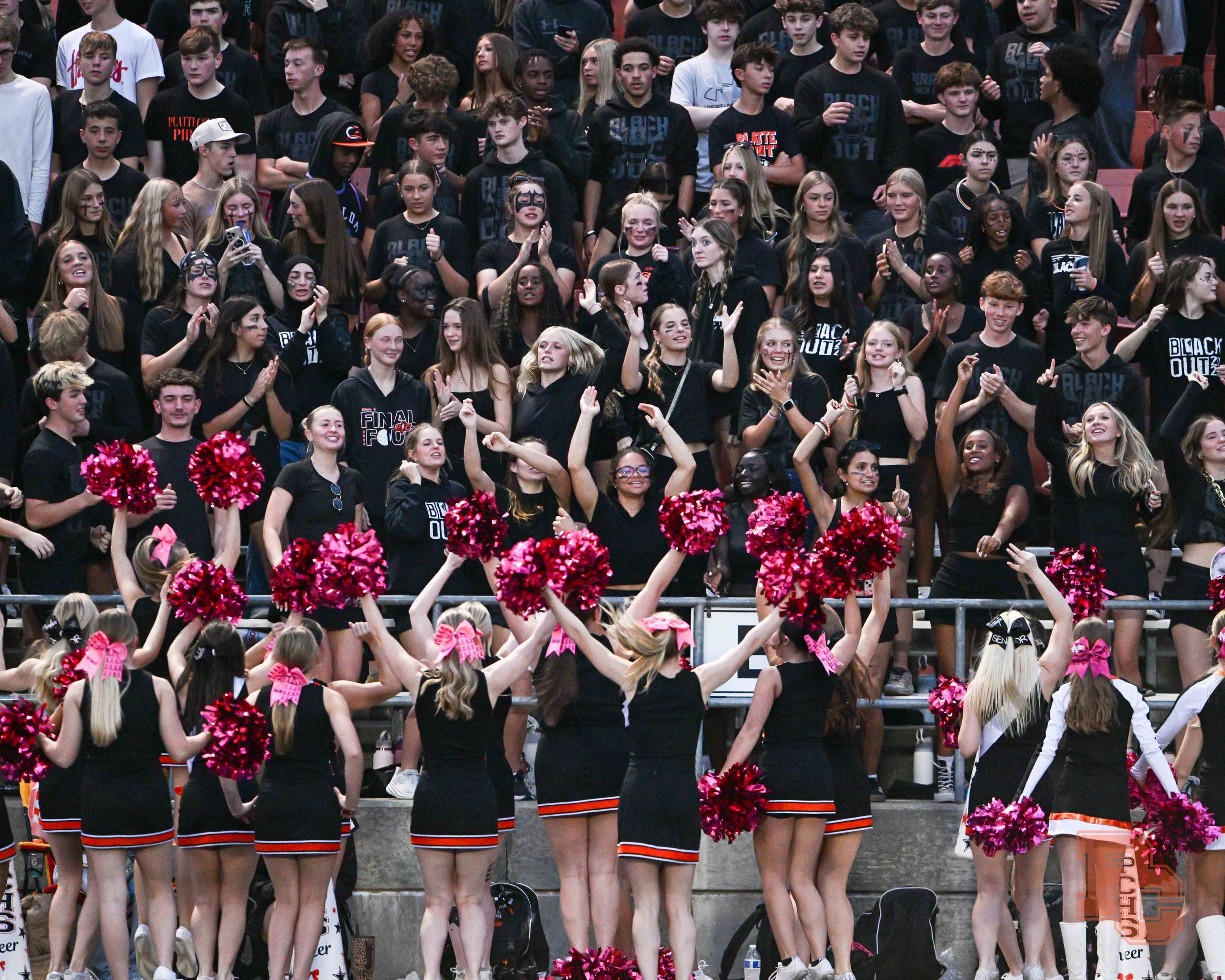 A look at Platte County’s student section, cheer and dance teams and band from Friday night’s football game against Ruskin at Pirate Stadium.