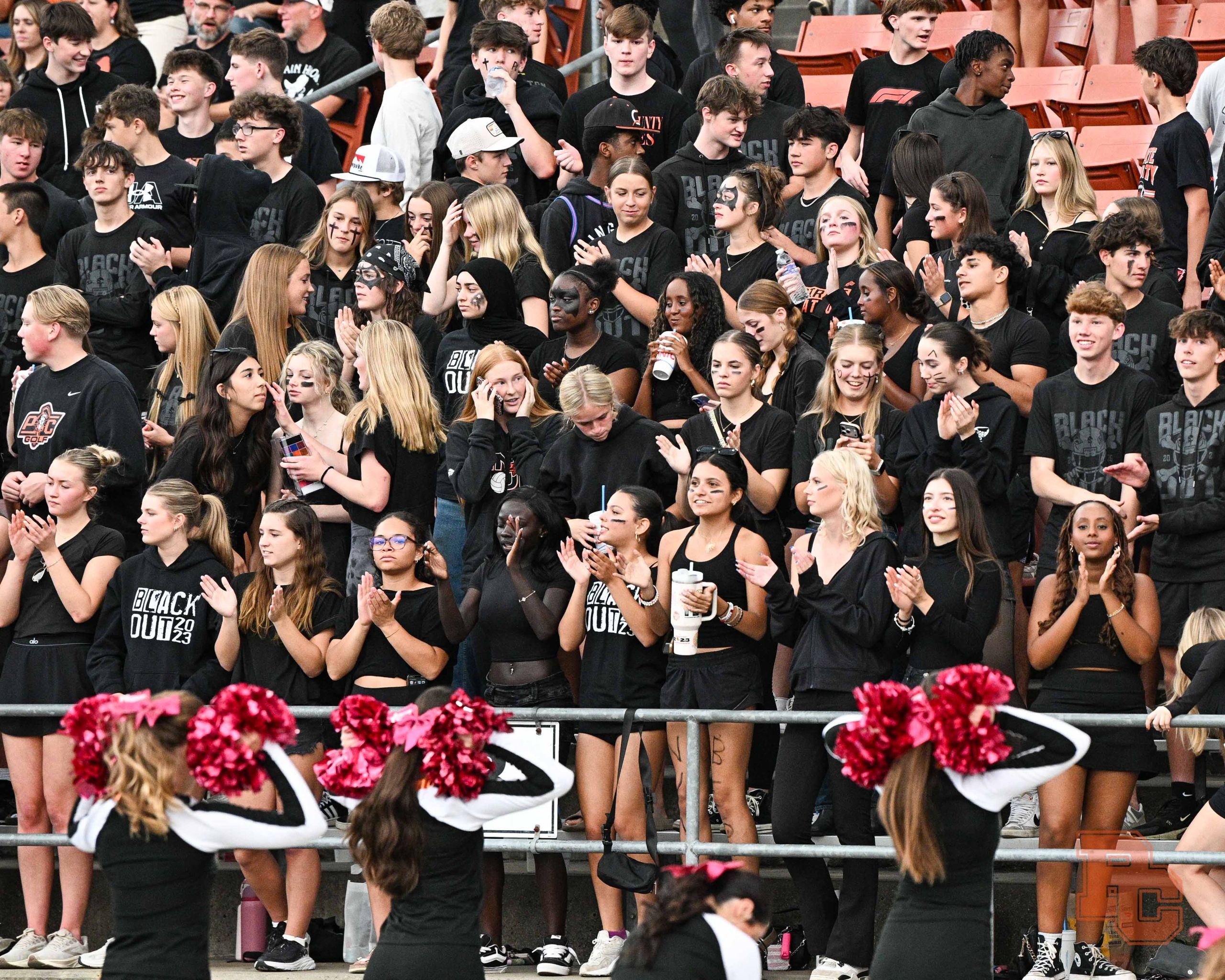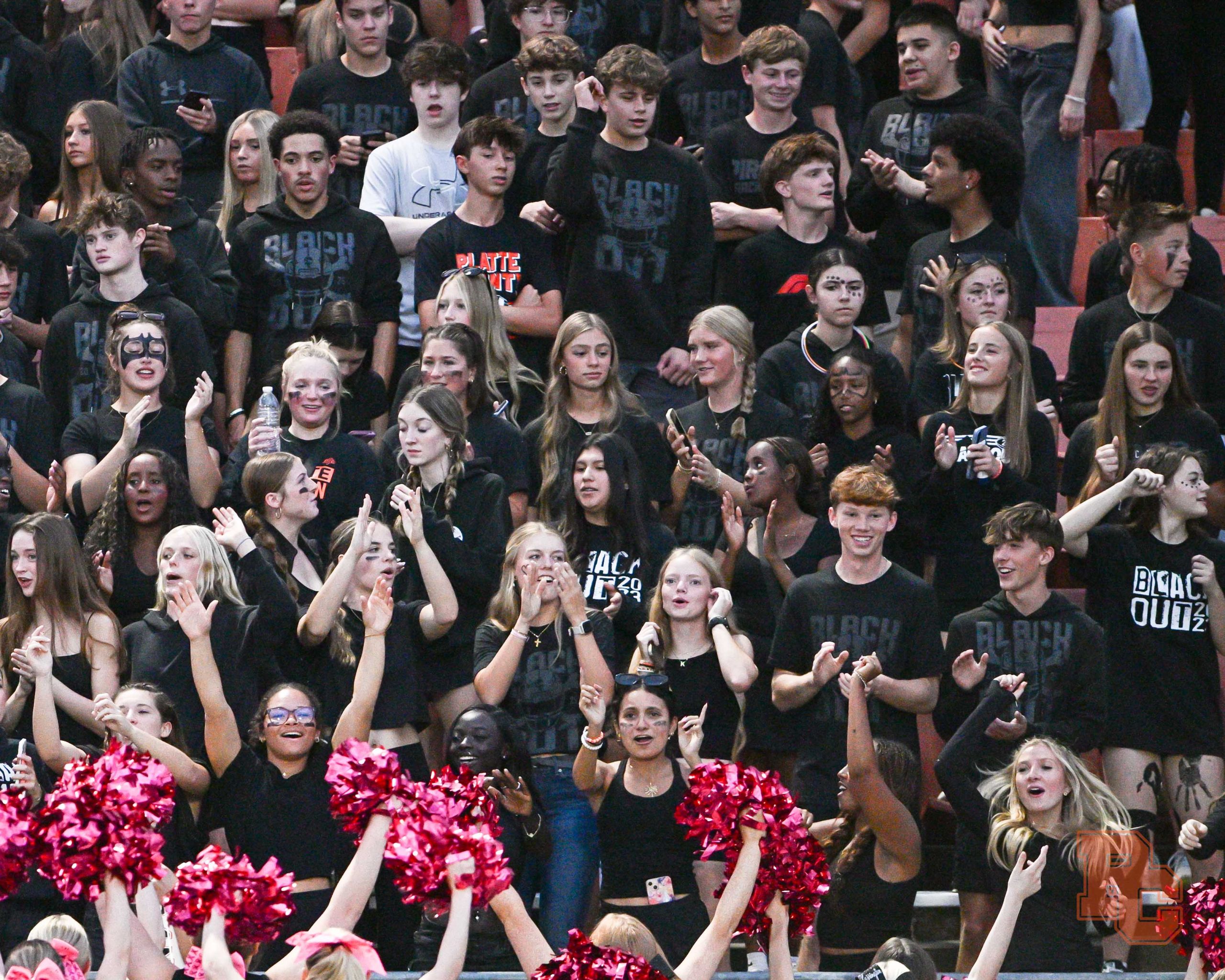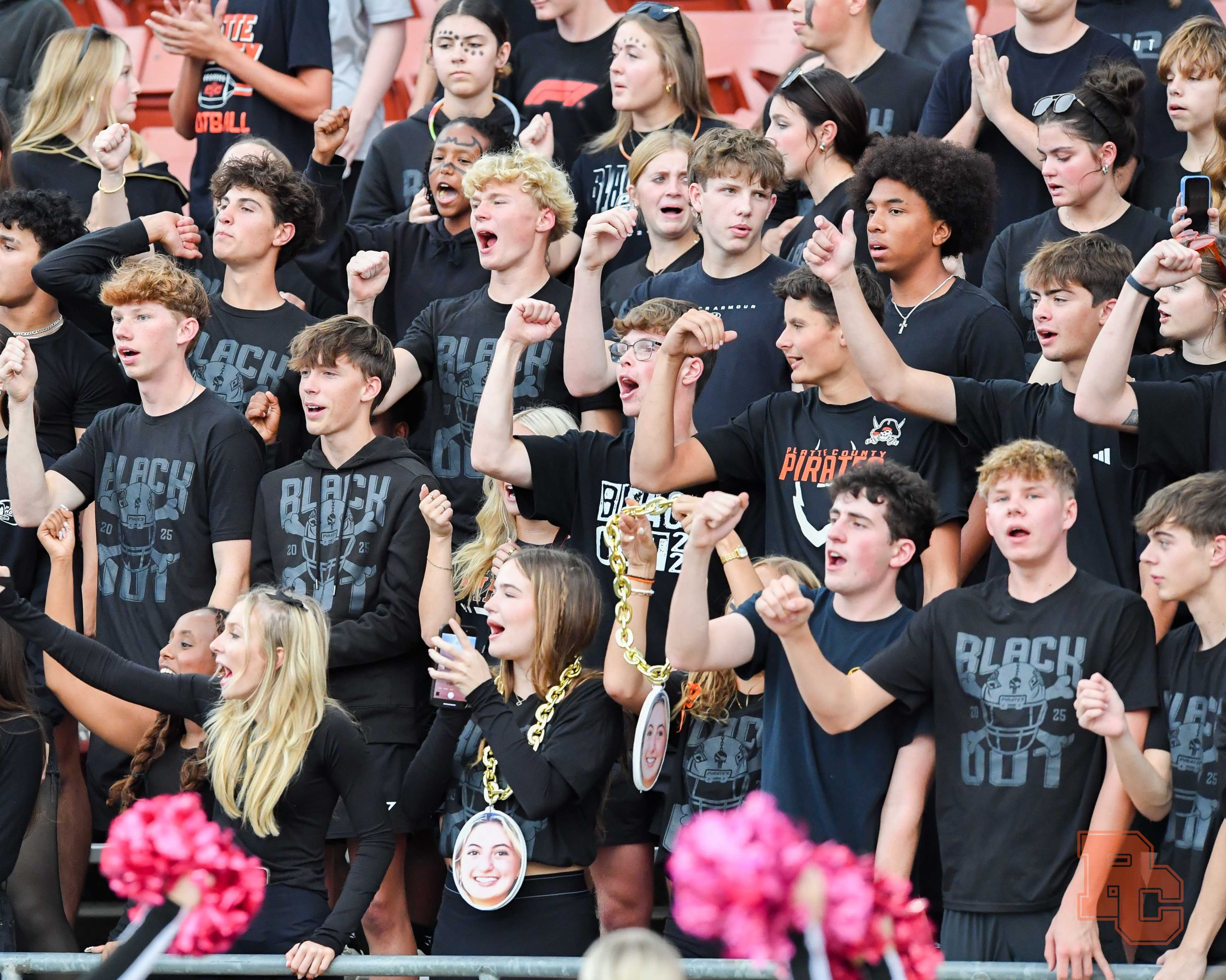 A look at Platte County’s student section, cheer and dance teams and band from Friday night’s football game against Ruskin at Pirate Stadium.