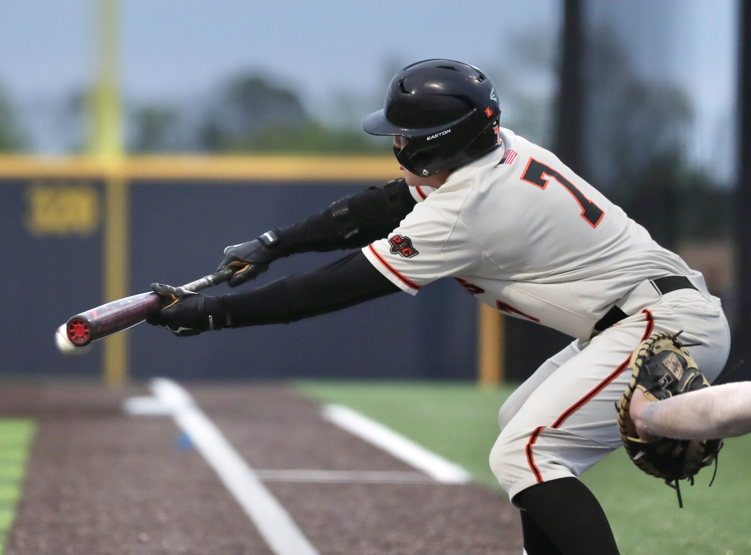 Platte County junior designated Liam Blacklock tries to lay down a bunt against Central (St. Joseph) on Friday at Platte County High School.