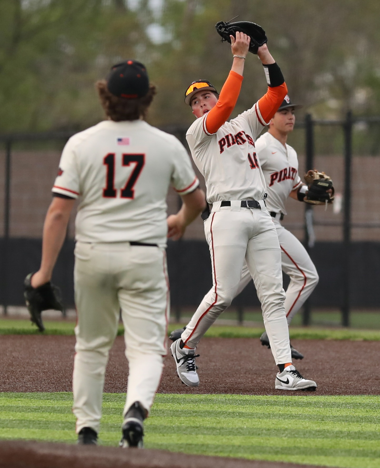 Central sophomore Emerson Berry pulled a ground ball deep into the hole, and Doll ranged to his right to field, initially bobbled but recovered to execute a jump throw that recorded the out and kept Platte County ahead. The inning started with McLaughlin making a tough play routine to record an out on another well-placed grounder that did not leave the infield. The Pirates were strong on defense throughout with Smith cleanly fielding a soft fly ball to right field to end the first on a rare defensive chance, and Boyer dove to make a highlight-reel catch for the second out in the second — a play that came right in front of a single.