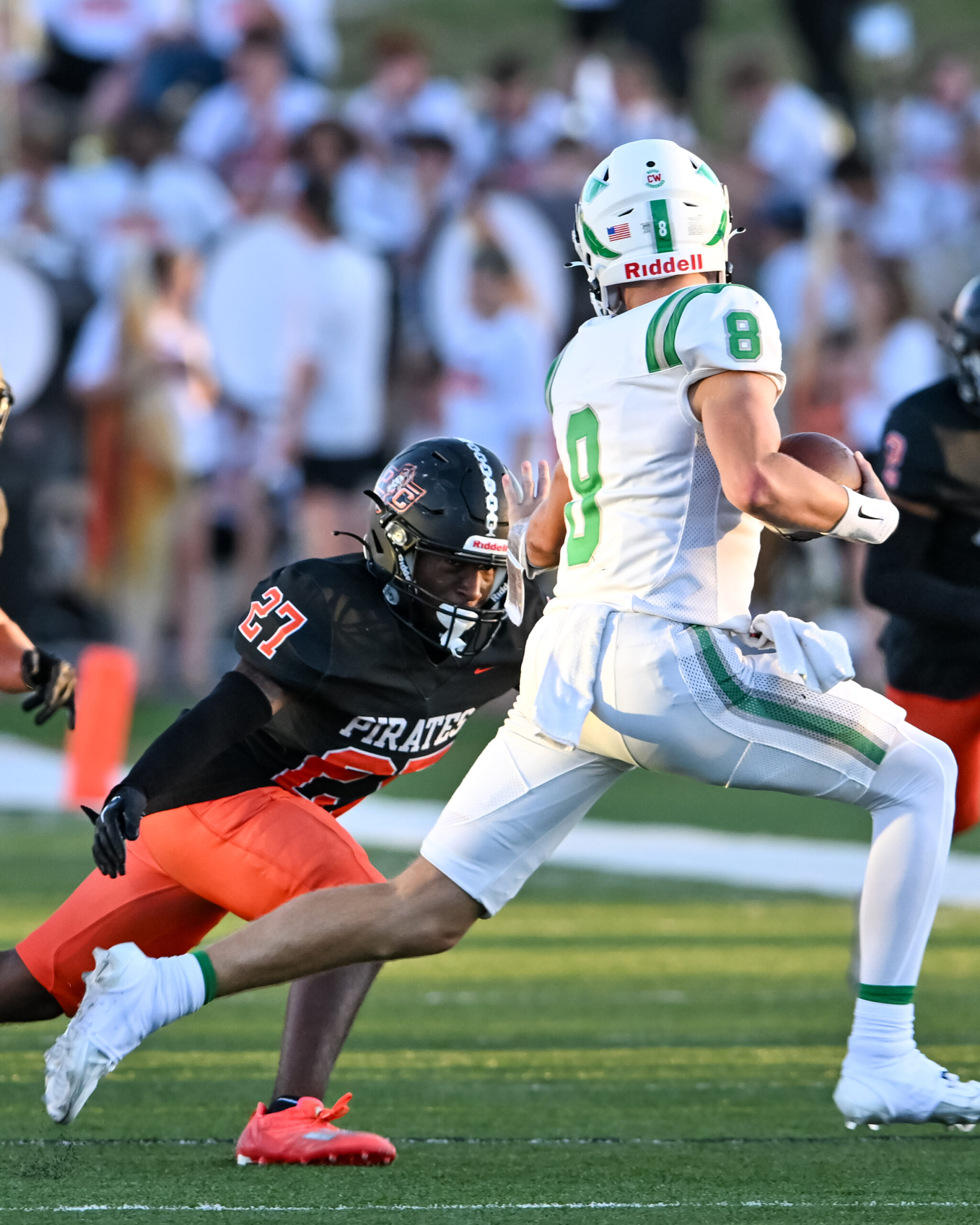 Platte County’s pass defense struggled with both coverage and missed tackles on catch-and-runs that led to three long scores in the first half. Pirates senior cornerback Jordan Burnett (three tackles) went down with a leg injury early, adding to depth issues with junior linebacker/safety Trevor Hay set to miss significant time after suffering a broken wrist against Kearney.