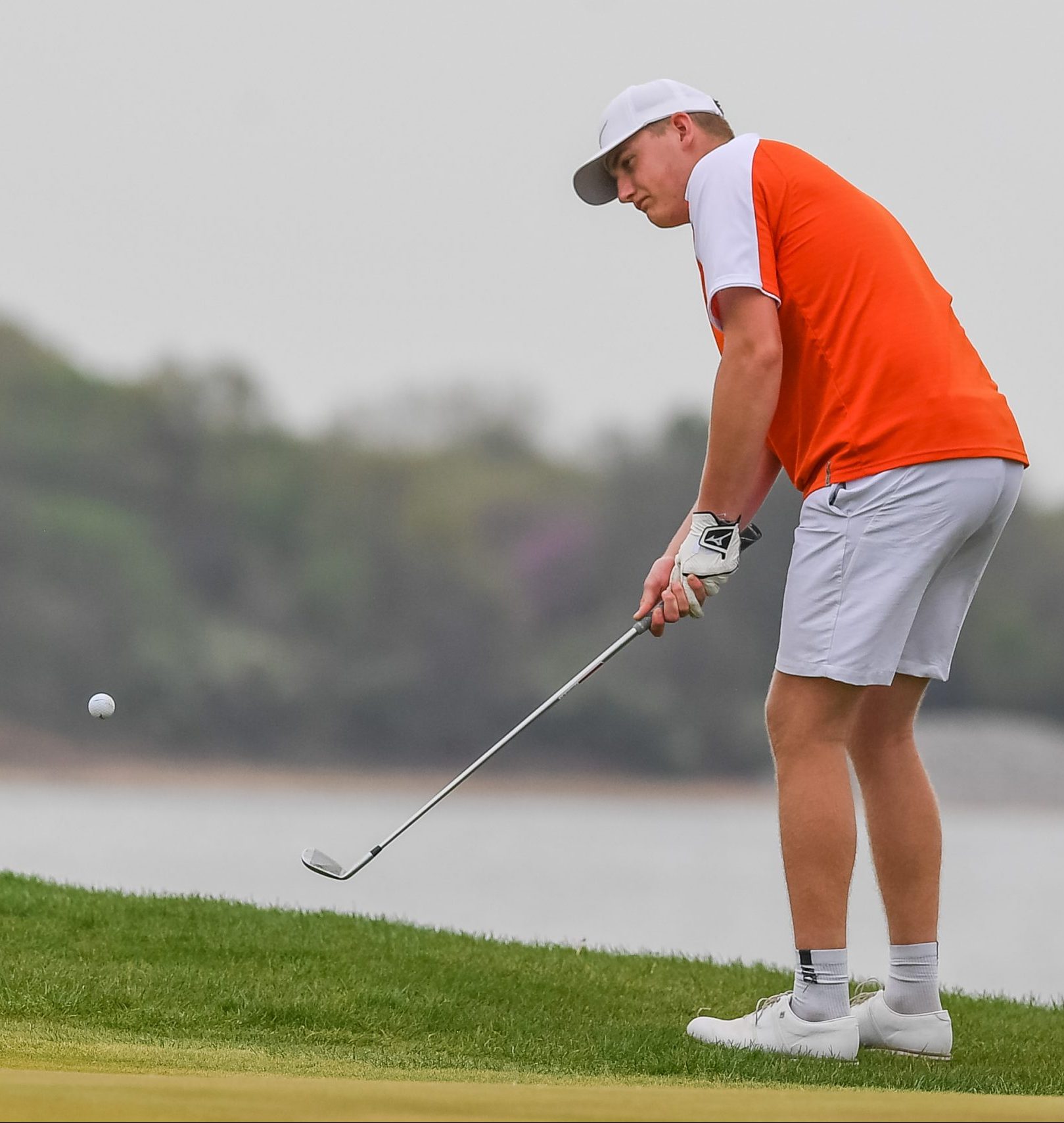 Platte County senior Colby Guffey hits a chip during the Highway 92 Showdown last week at Paradise Pointe Golf Complex in Smithville.