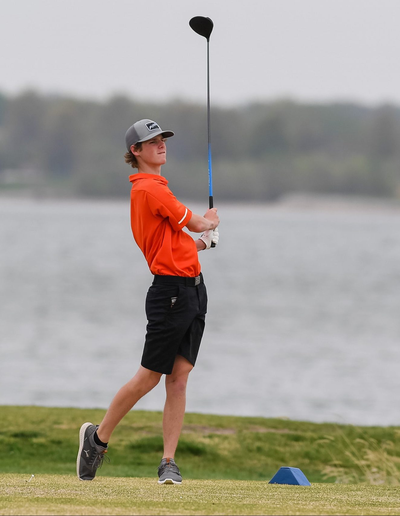 Platte County senior Evan Handke watches a drive in the Highway 92 Showdown last week at Paradise Pointe Golf Complex in Smithville.