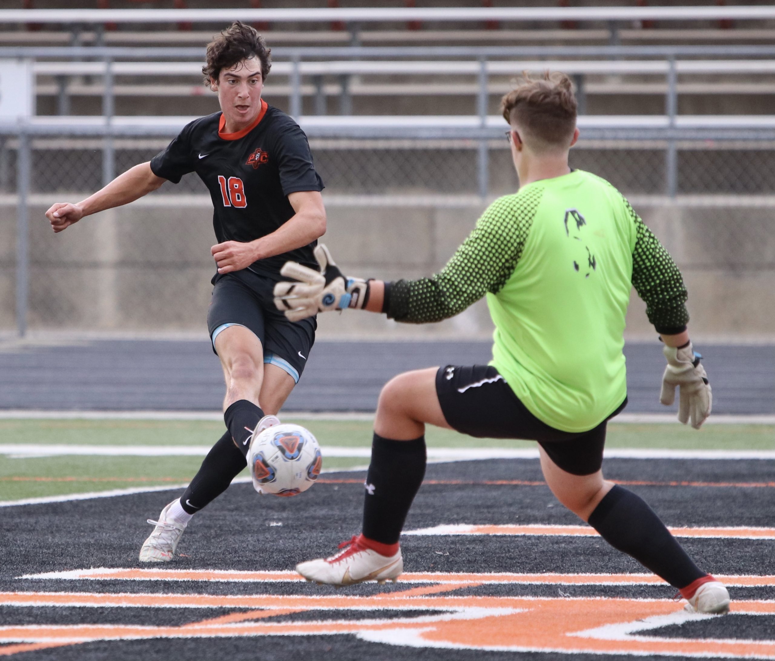 Platte County’s final goal came when Felix Victore took a pass outside the 18-yard box and drove to the middle, stopping and hitting a nondescript right-footed shot from 15 yards out that beat Hinkle just before halftime.