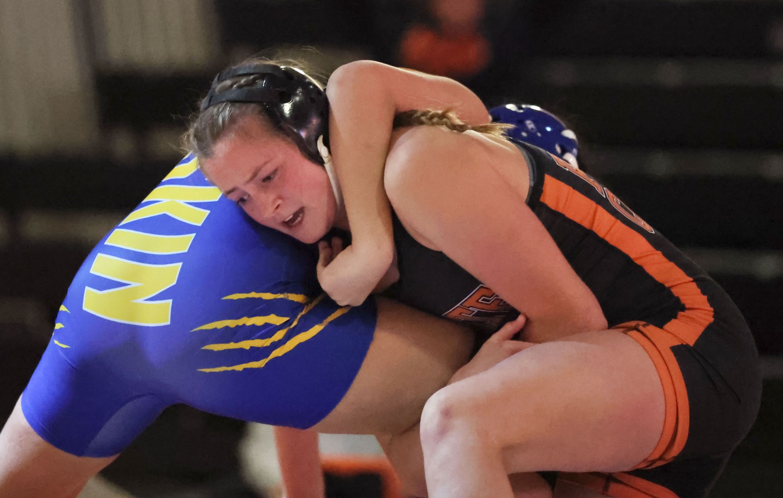 Friddell split her two matches at 105 with Kimberly Rodriguez of Highland Park (Topeka) securing the winning takedown in the final minute of the championship match. The two were tied 7-7 at that point, and Friddell scored the final point of a 10-8 loss by decision with an escape. She couldn’t come up with a winning takedown in the final 23 seconds.