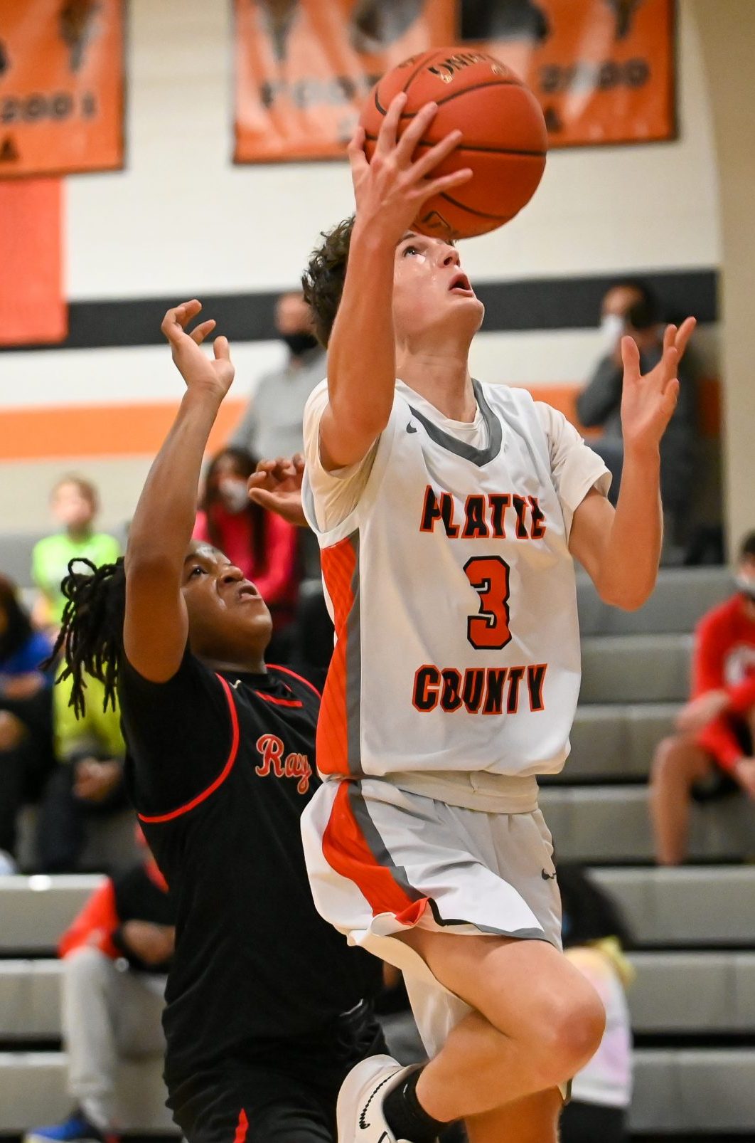 Platte County senior guard Jaden Burnett goes up for a layup against Raytown South on Thursday at Platte County High School.