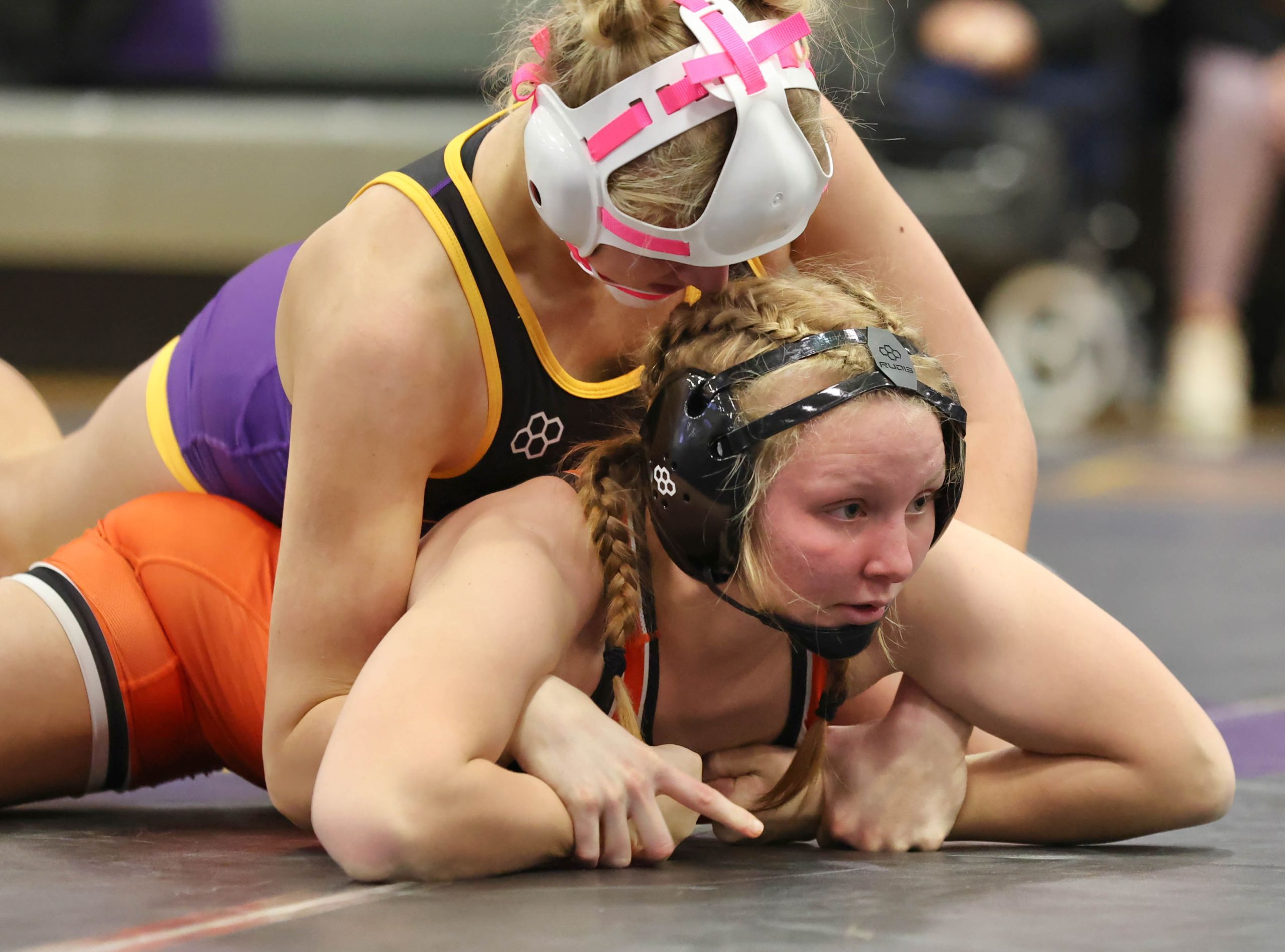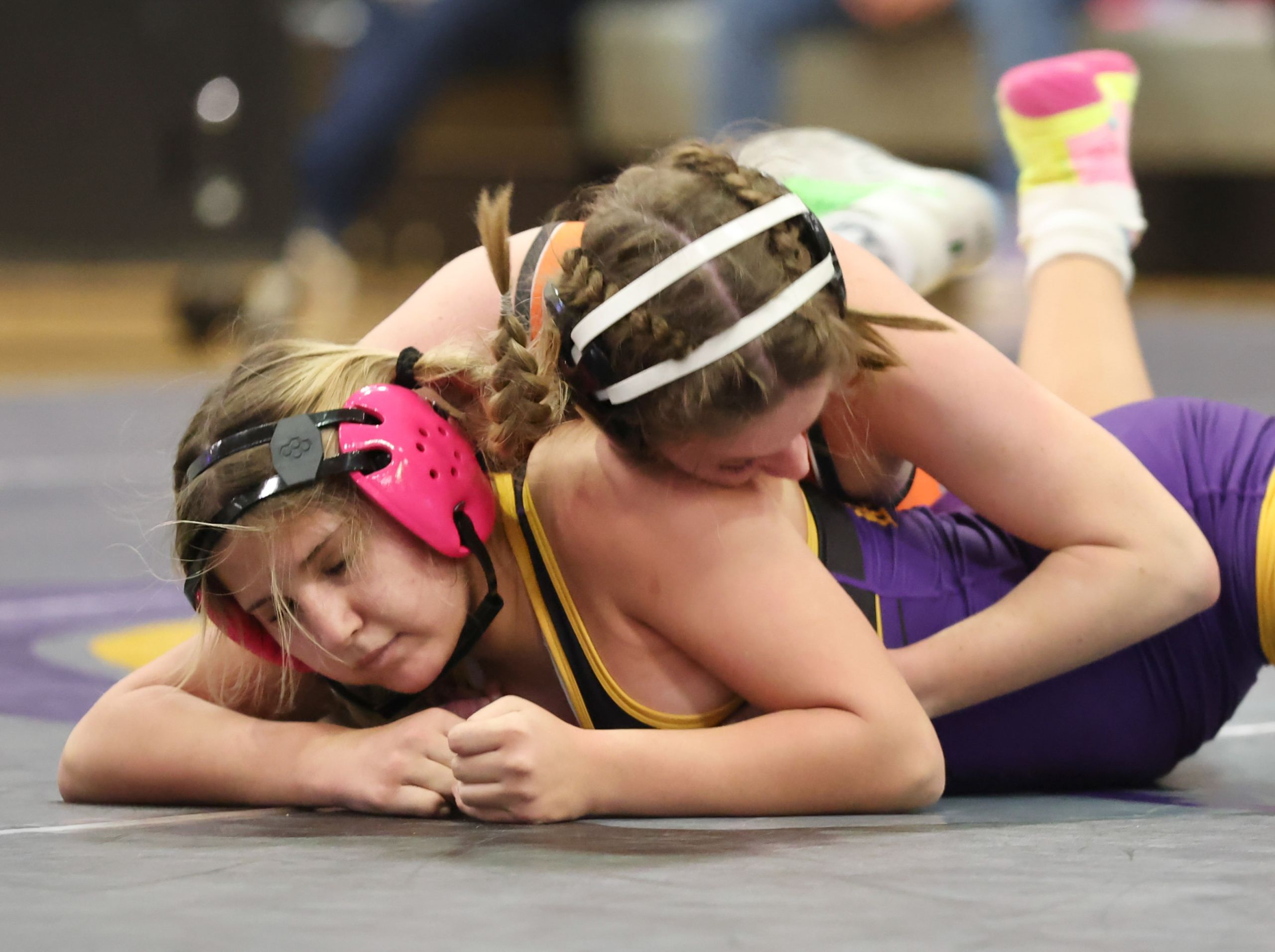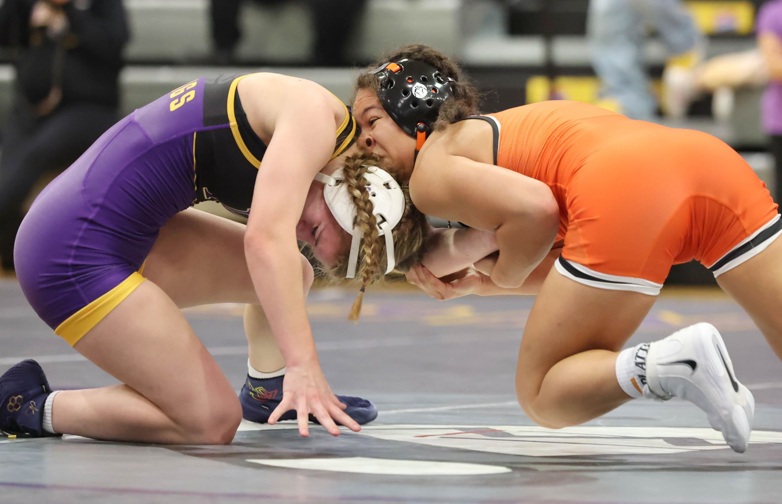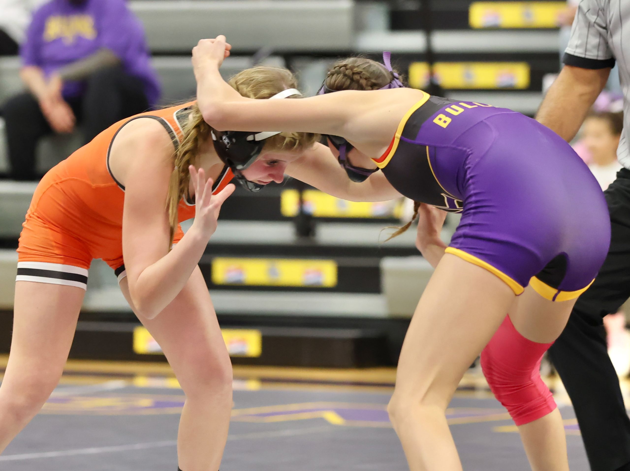 After Golden lost to standout freshman Zolah Williams at 110, Kearney led 12-6 ahead of a matchup of returning state medalists. Sims gave up the initial takedown in the 115 match to Bulldogs sophomore Myla Woolridge but then scored a reversal to pull within 3-2, a score that held until the start of the second period. Woolridge, who came in fifth at 105 in Class 1 as a freshman, then scored the next 12 points and put Sims to her back three times.