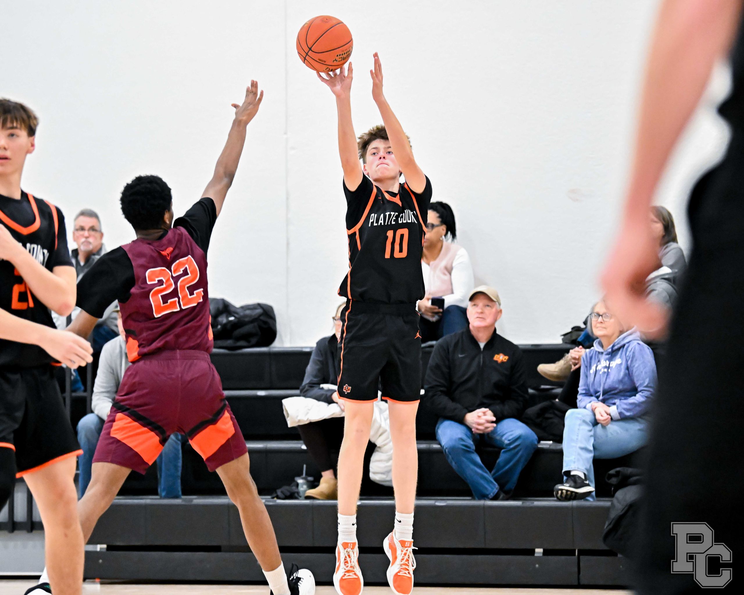 Martin shot 3-for-4 on 3-pointers and ends up with team-highs of 15 points, six rebounds and five assists, while Keith (nine), Hockaday (eight), sophomore MaCallen McMillian (eight) and junior Isaac Nelson (six) provided balance in scoring for Platte County, which again excelled on outside shooting. Keith added three 3s, McMillian two and Nelson one with the Pirates going into halftime up 43-8.